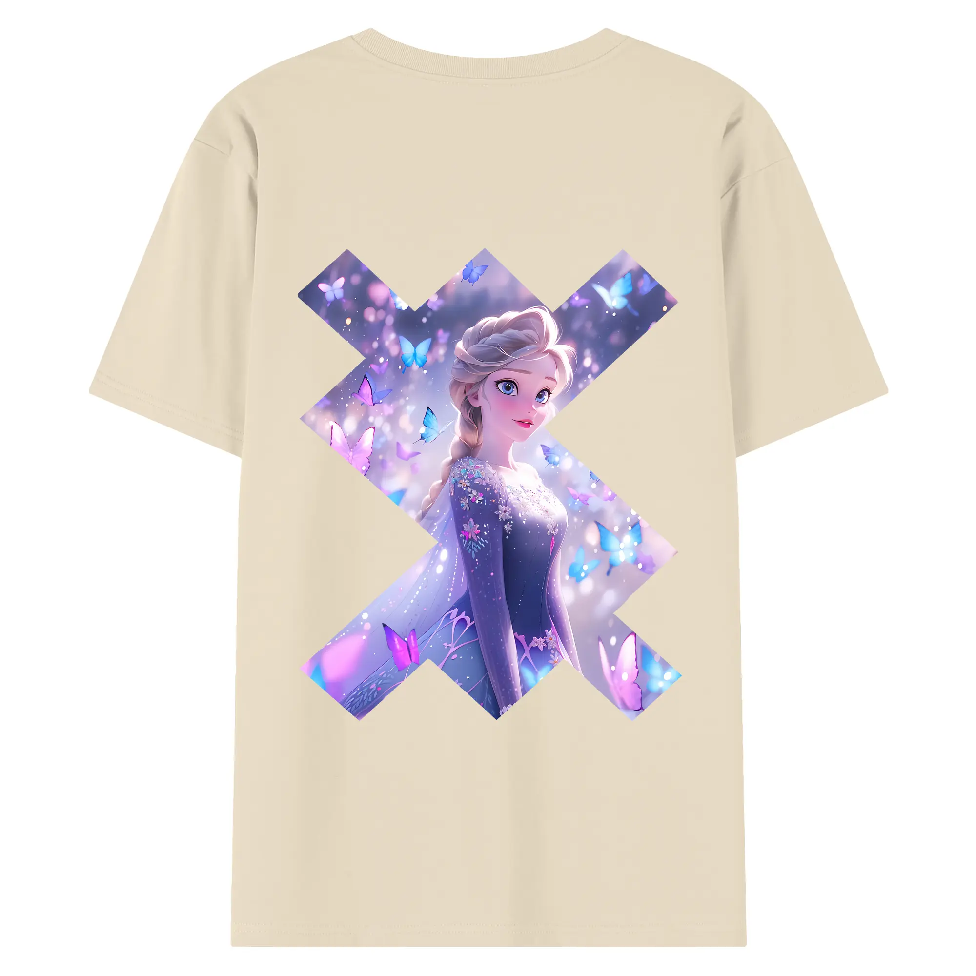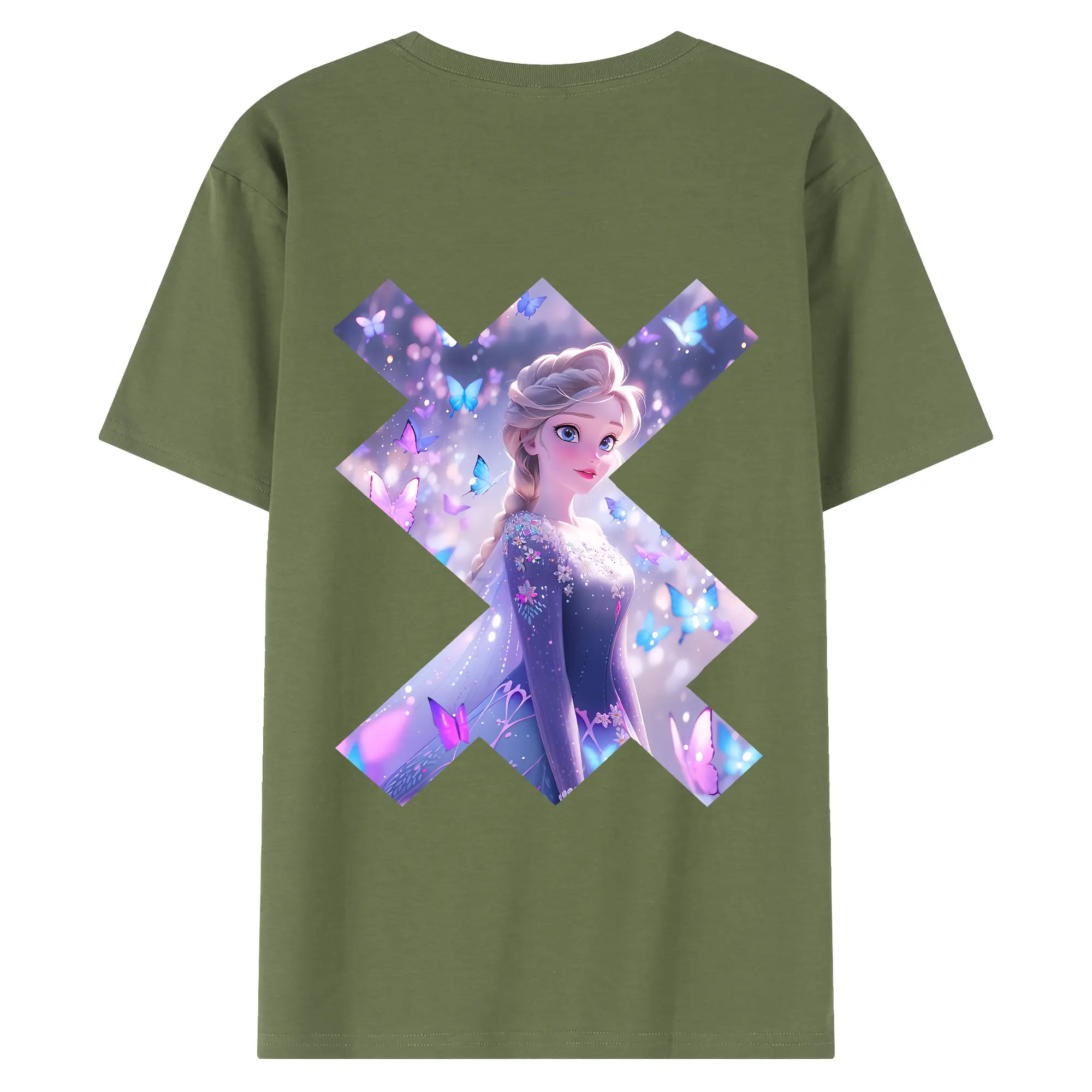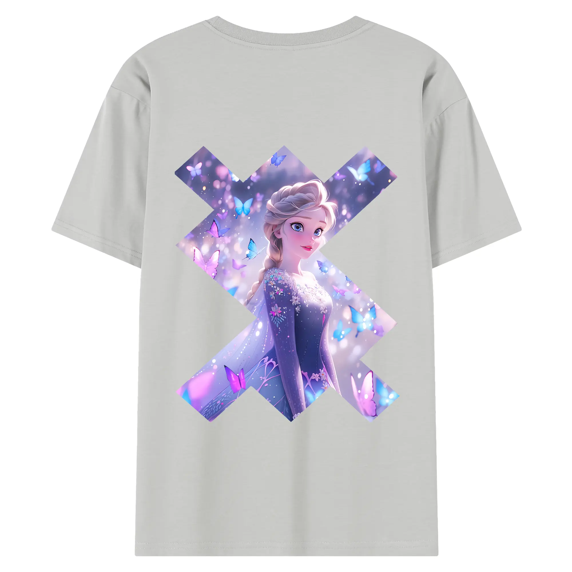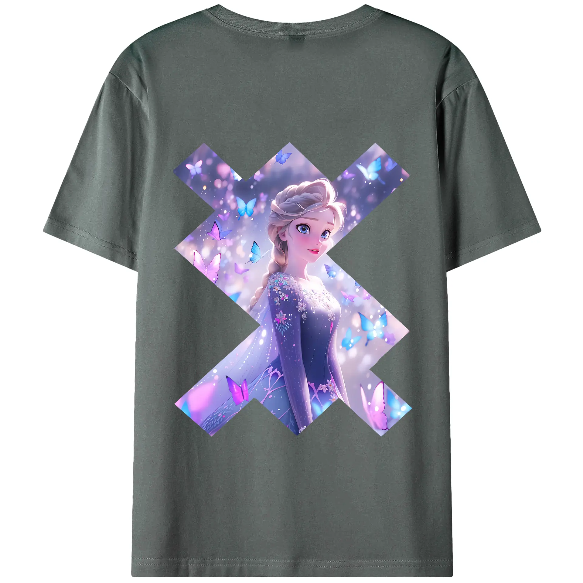 アナと雪の女王(Frozen) グッズ エルサ(Elsa) - 綿100% 半袖Tシャツ ・ フロントプリント ・ 快適 通気性 ・ 日常使い 散歩 スポーツ用