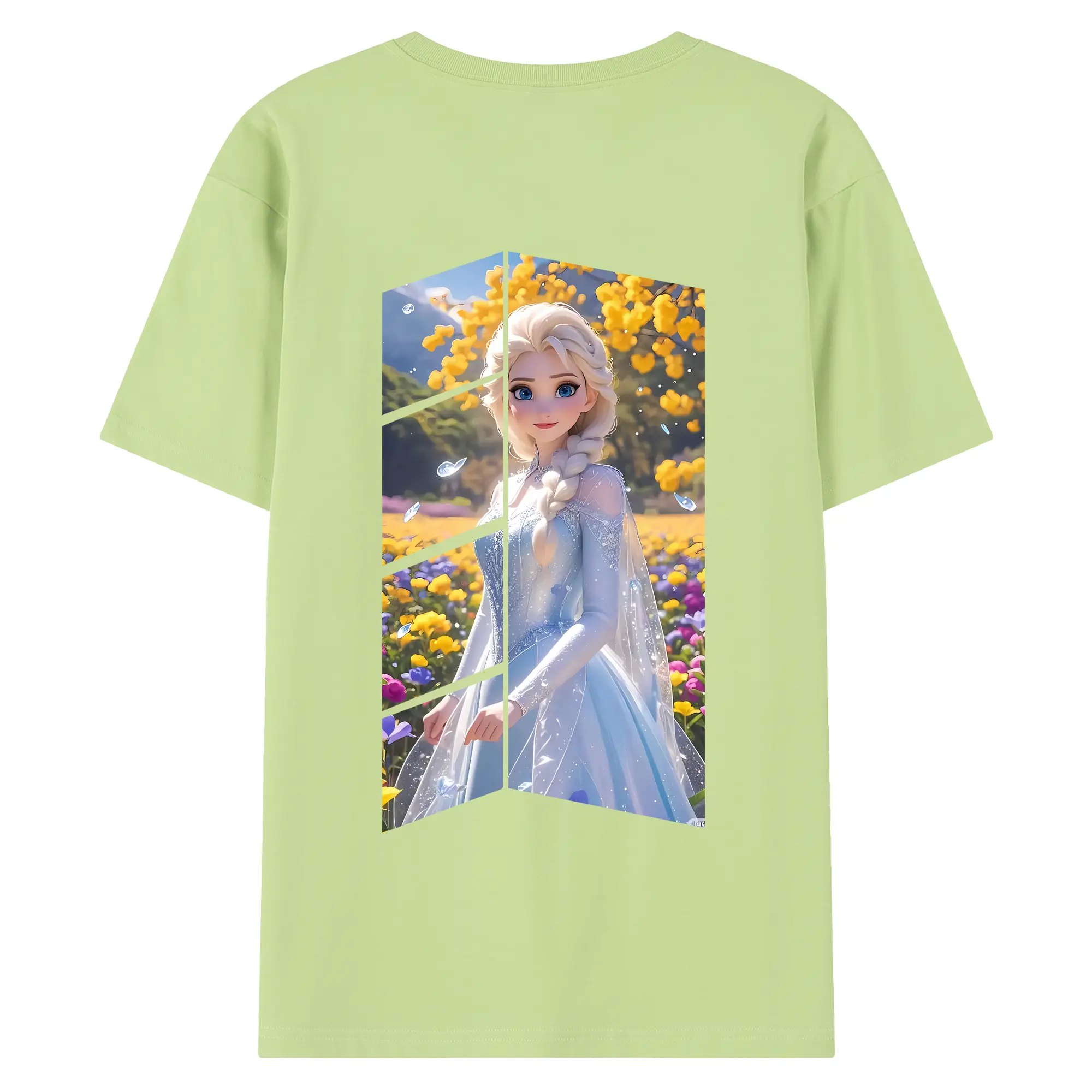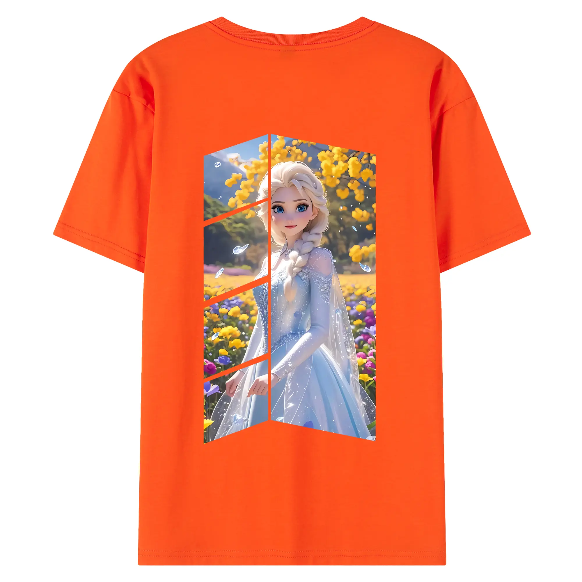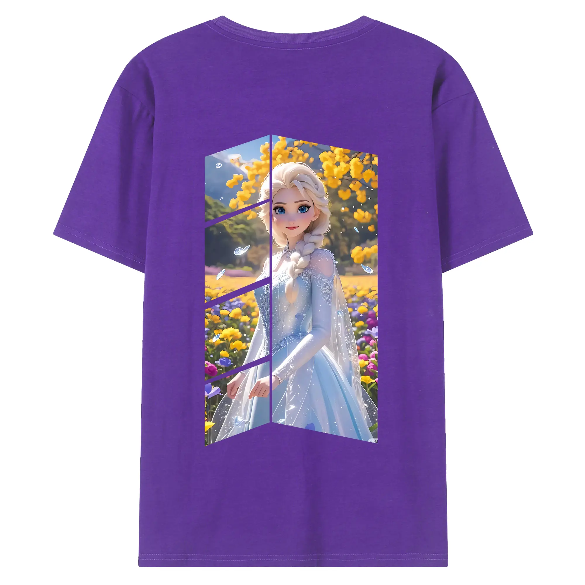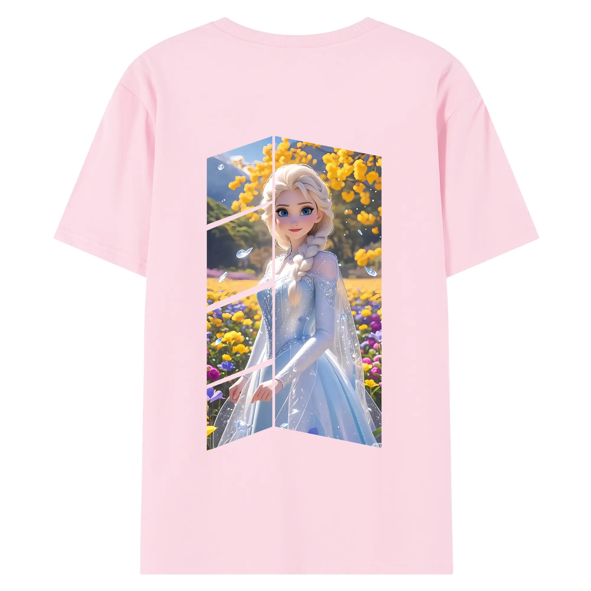 アナと雪の女王(Frozen) グッズ エルサ(Elsa) - 綿100% 半袖Tシャツ ・ フロントプリント ・ 快適 通気性 ・ 日常使い 散歩 スポーツ用