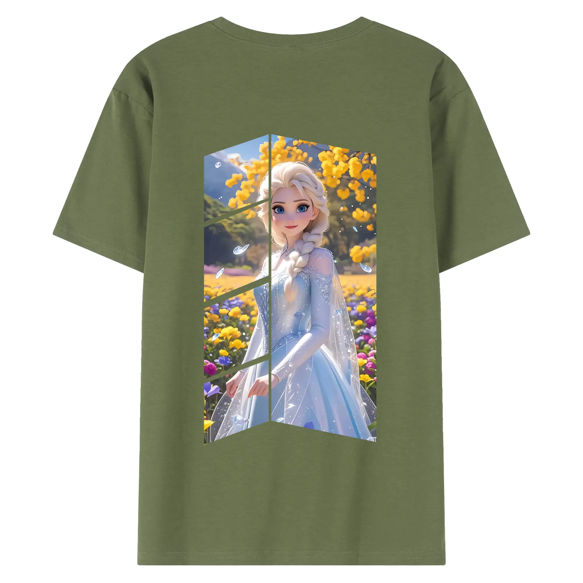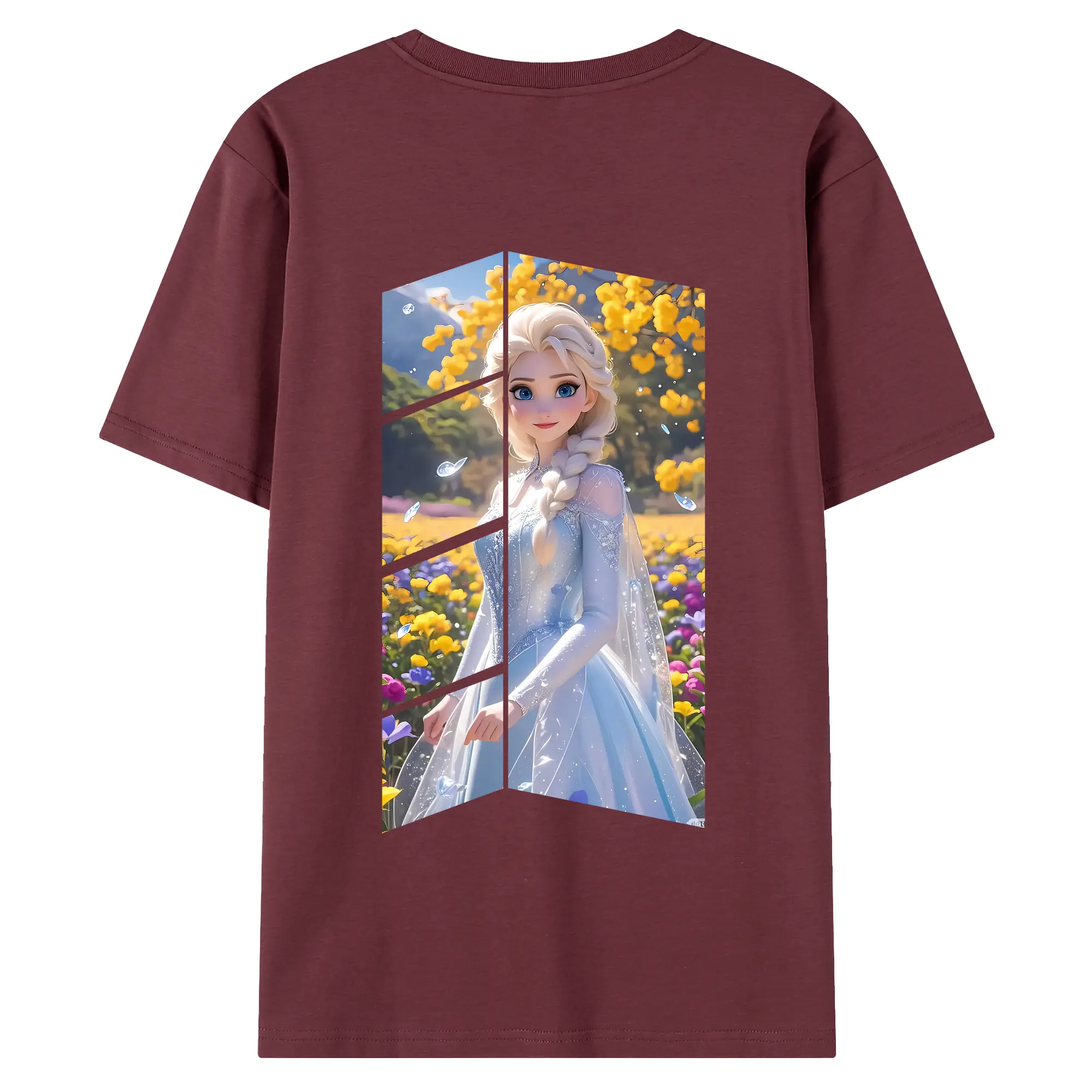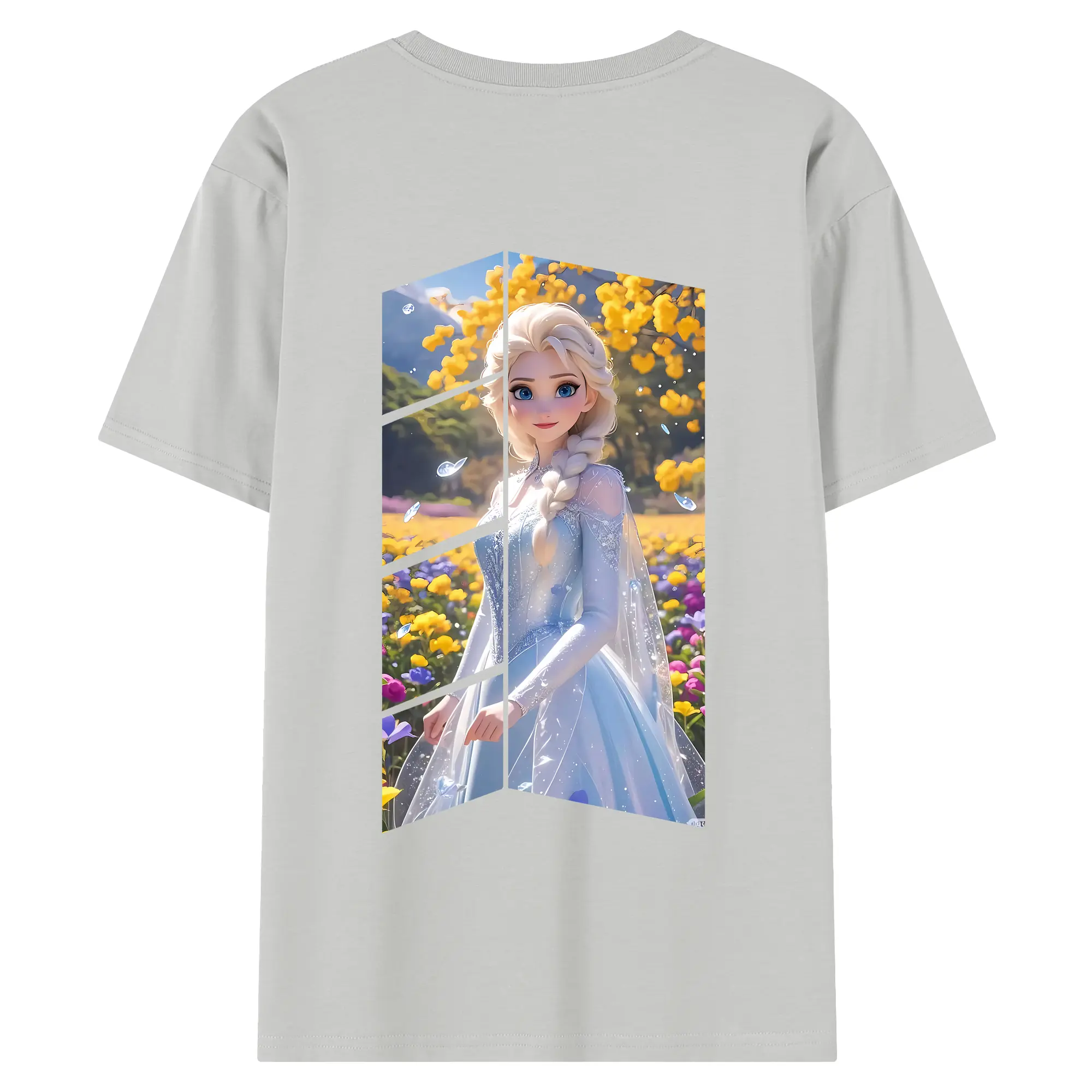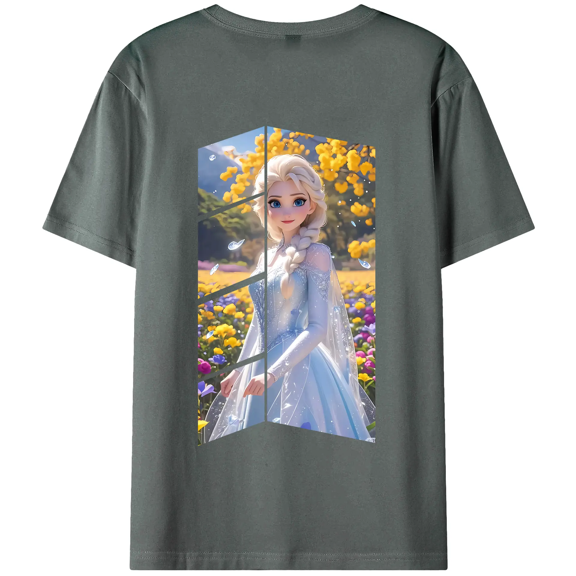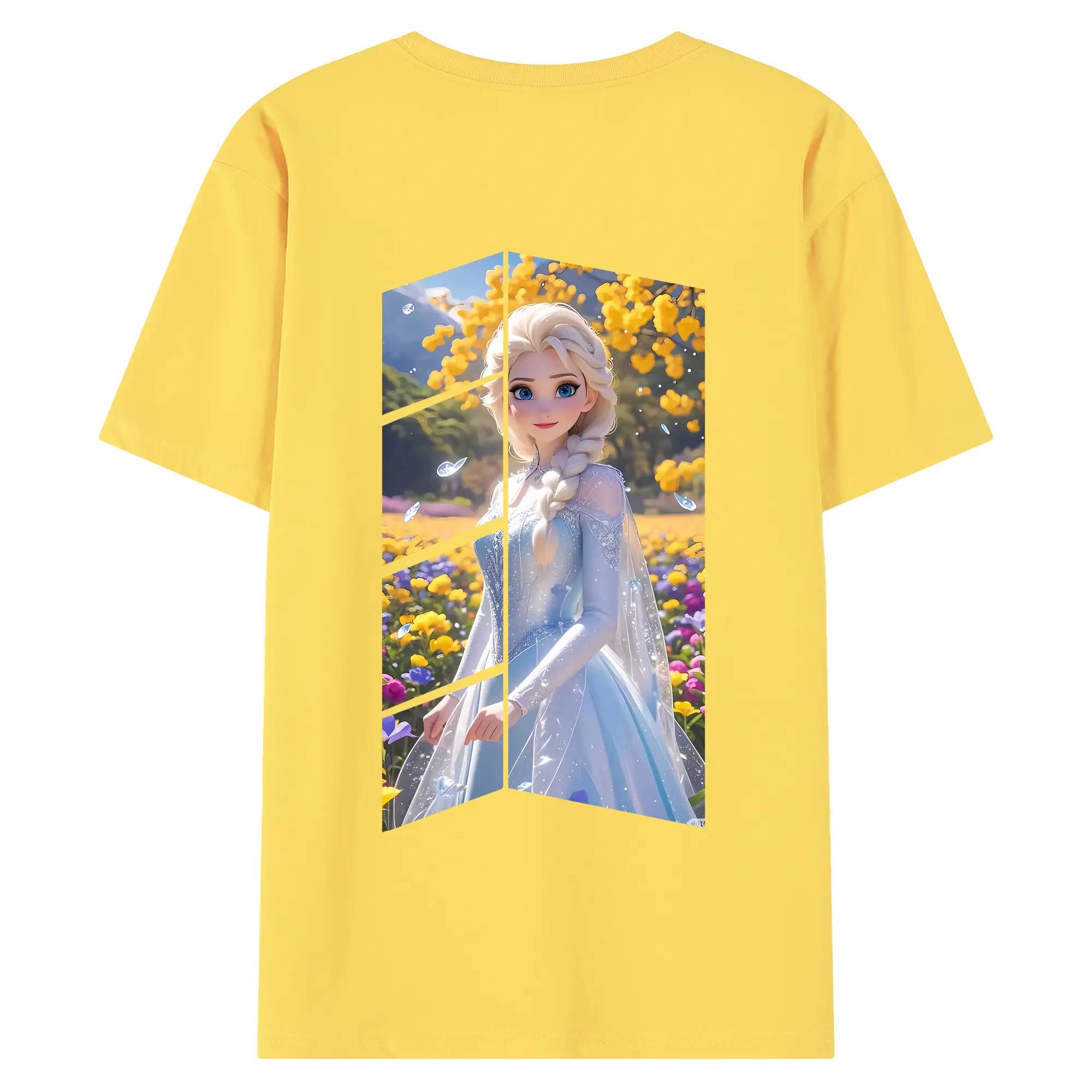 アナと雪の女王(Frozen) グッズ エルサ(Elsa) - 綿100% 半袖Tシャツ ・ フロントプリント ・ 快適 通気性 ・ 日常使い 散歩 スポーツ用