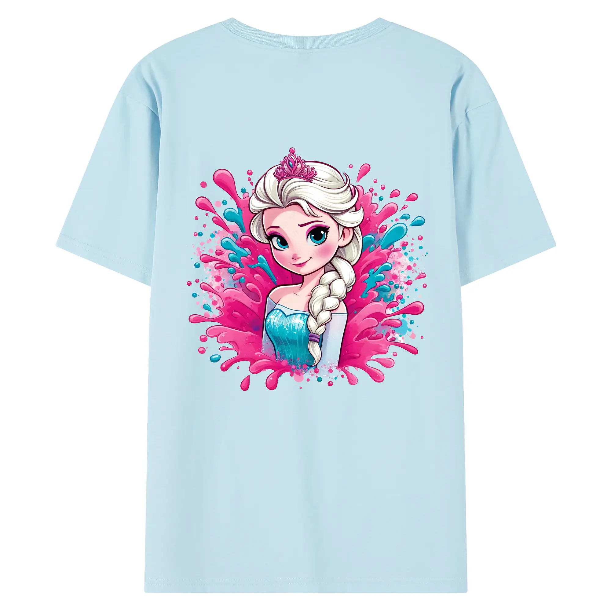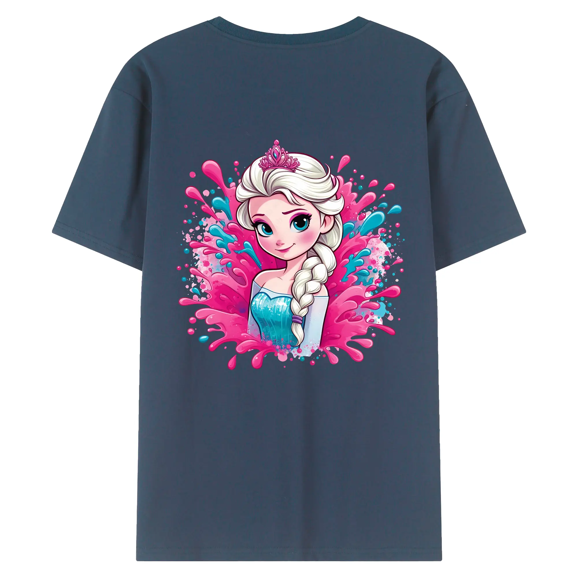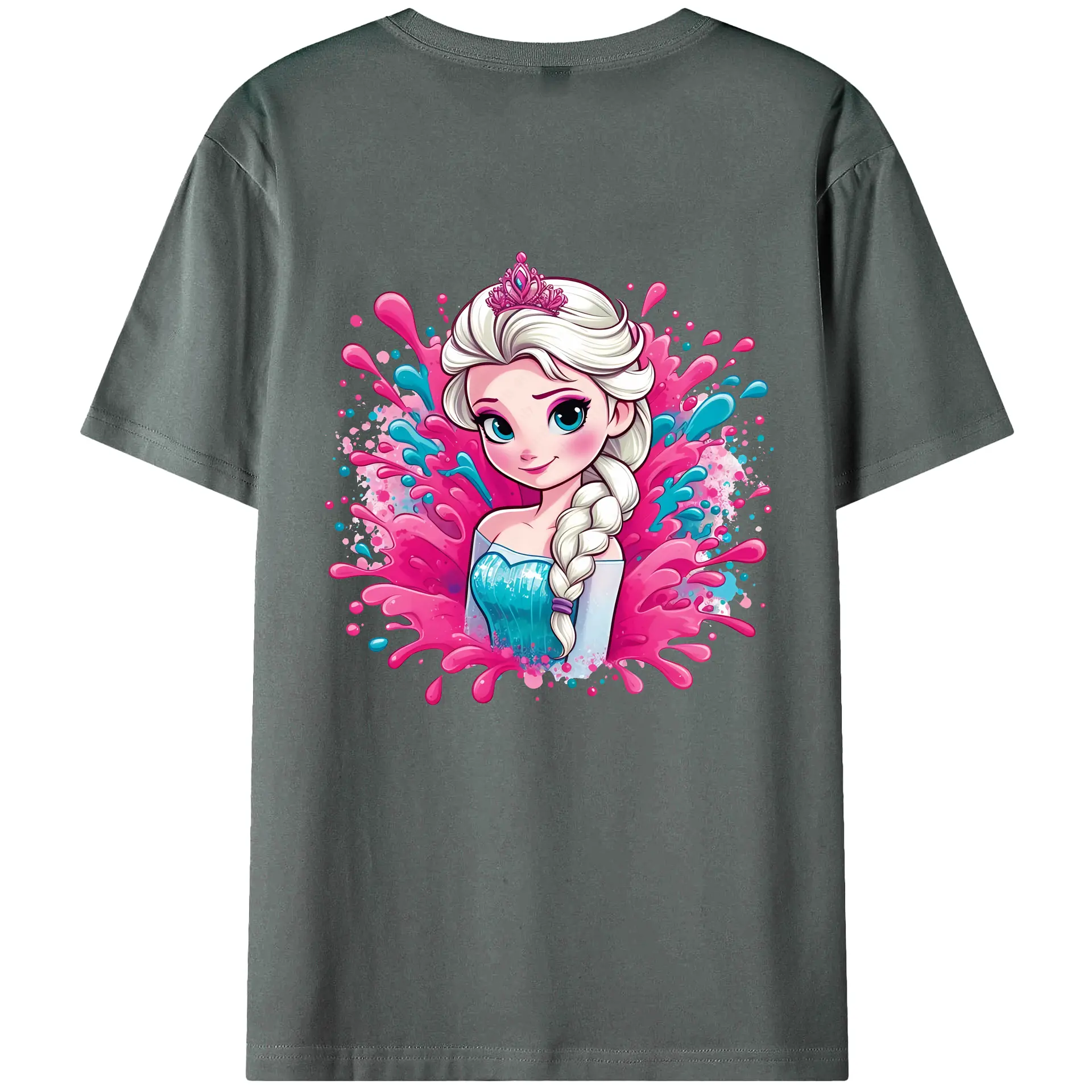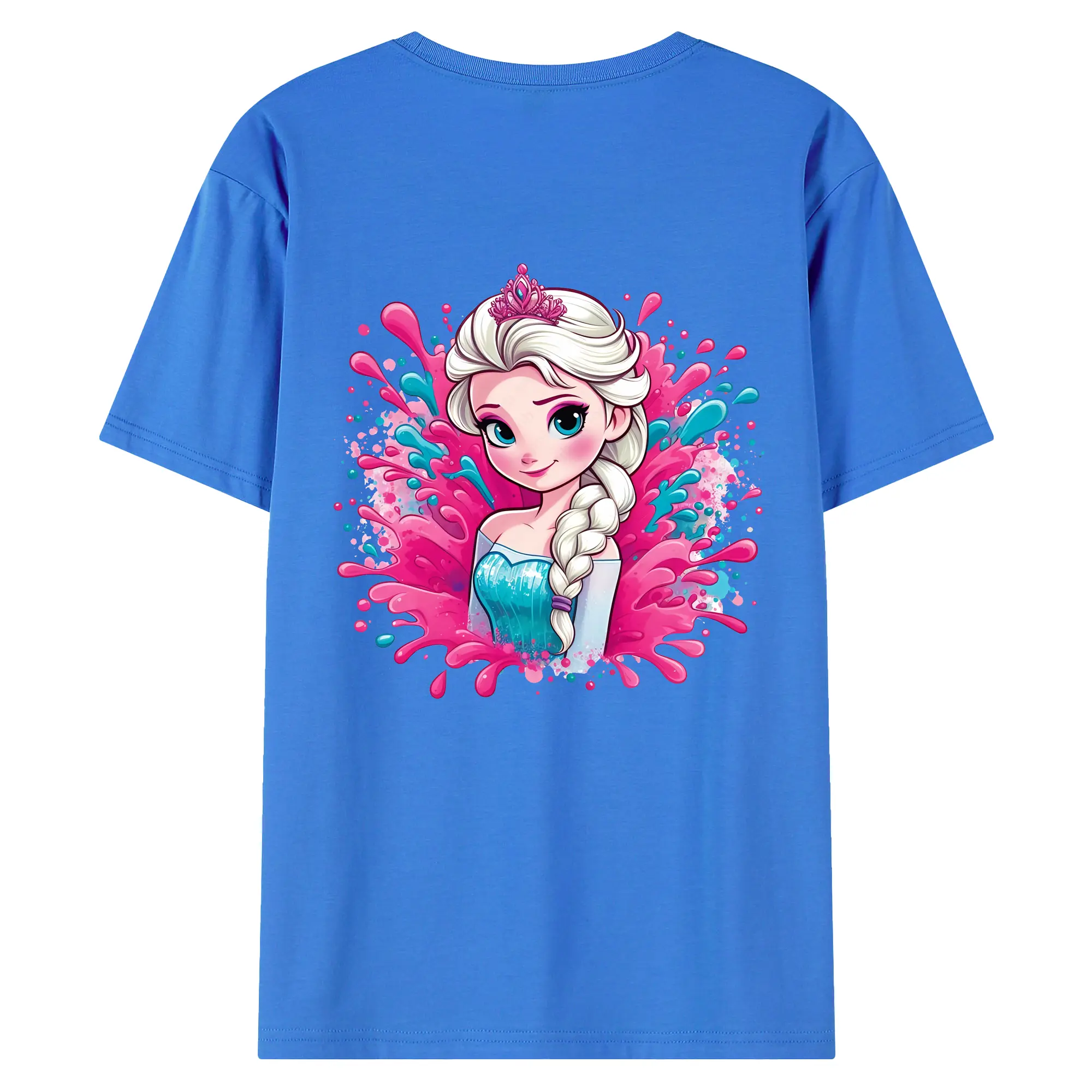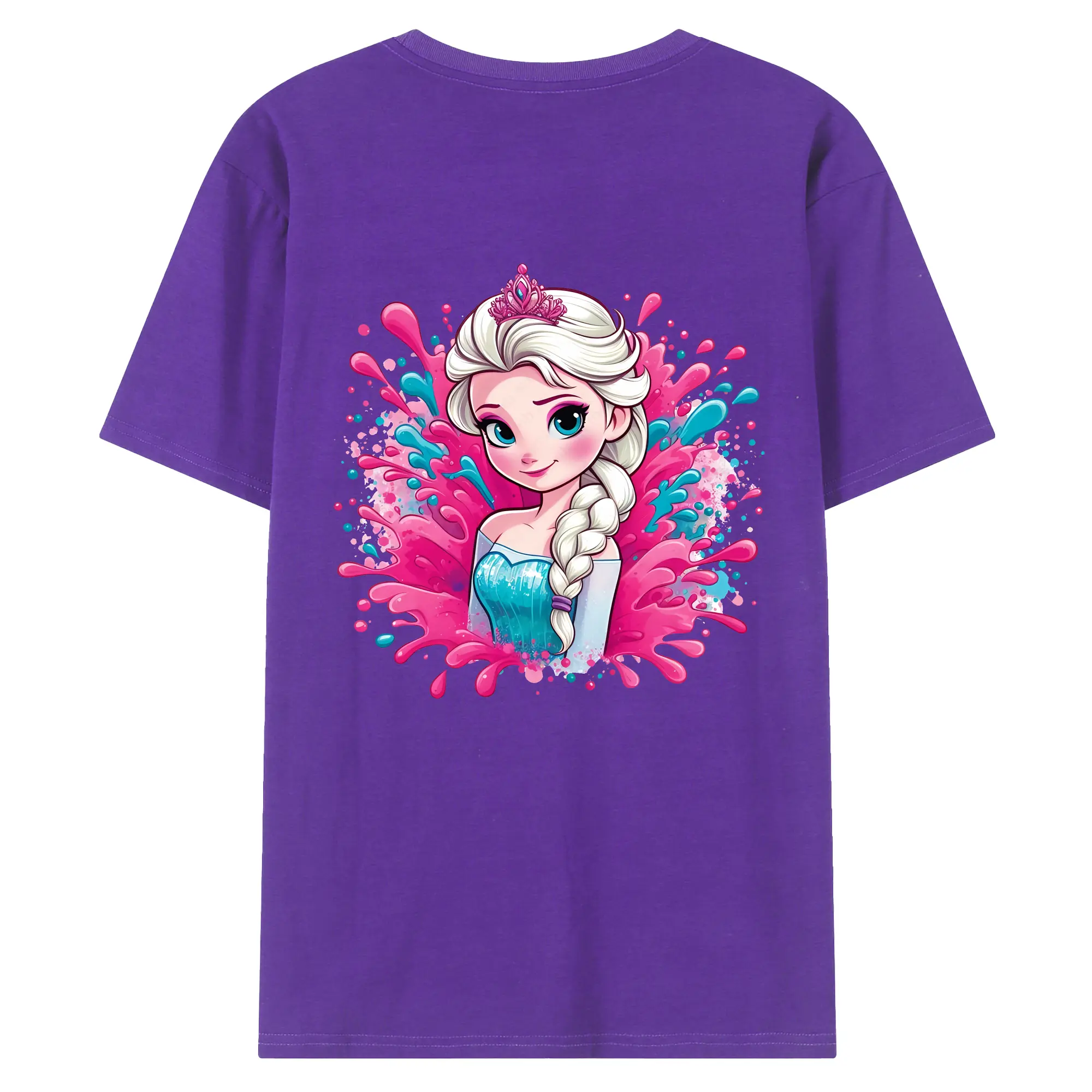 アナと雪の女王(Frozen) グッズ エルサ(Elsa) - 綿100% 半袖Tシャツ ・ フロントプリント ・ 快適 通気性 ・ 日常使い 散歩 スポーツ用