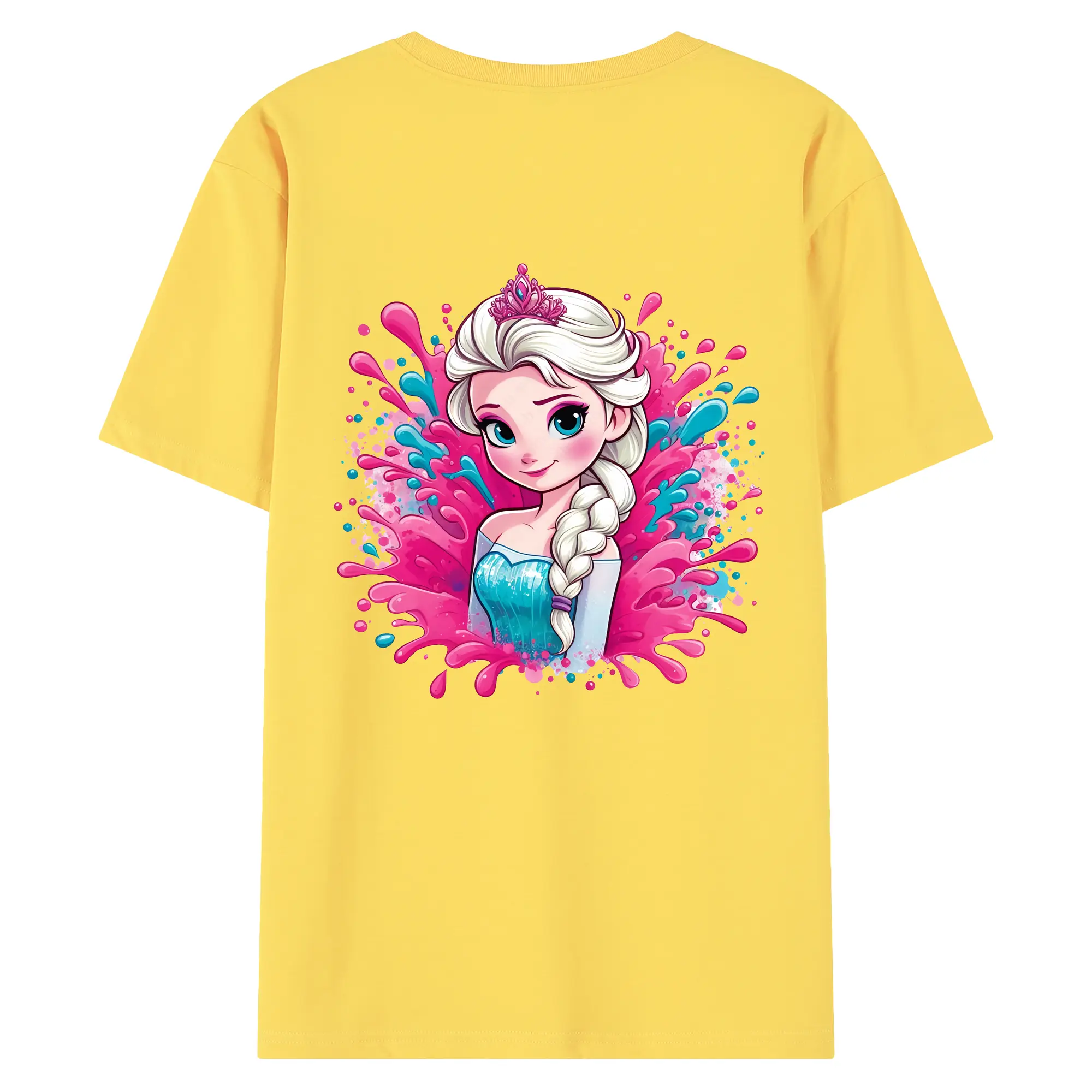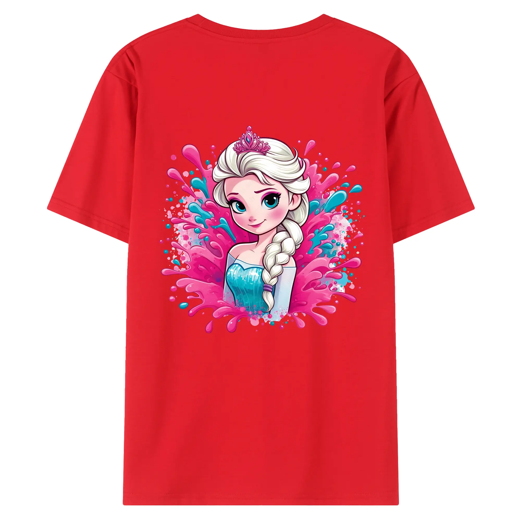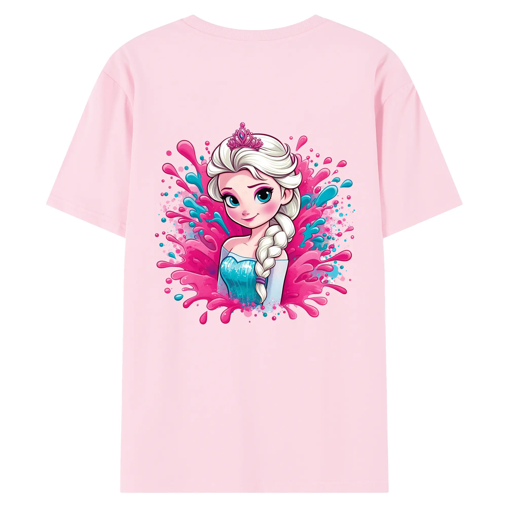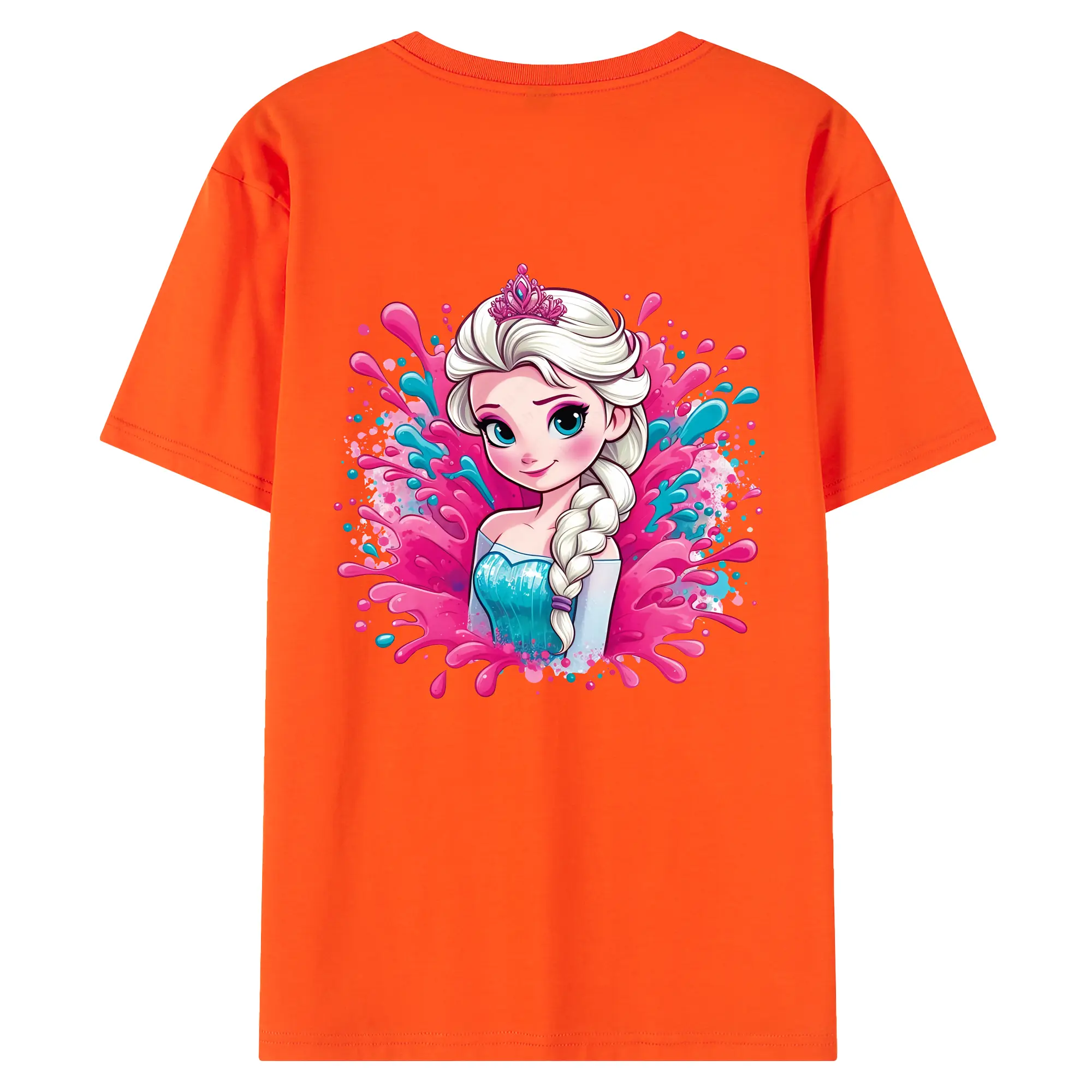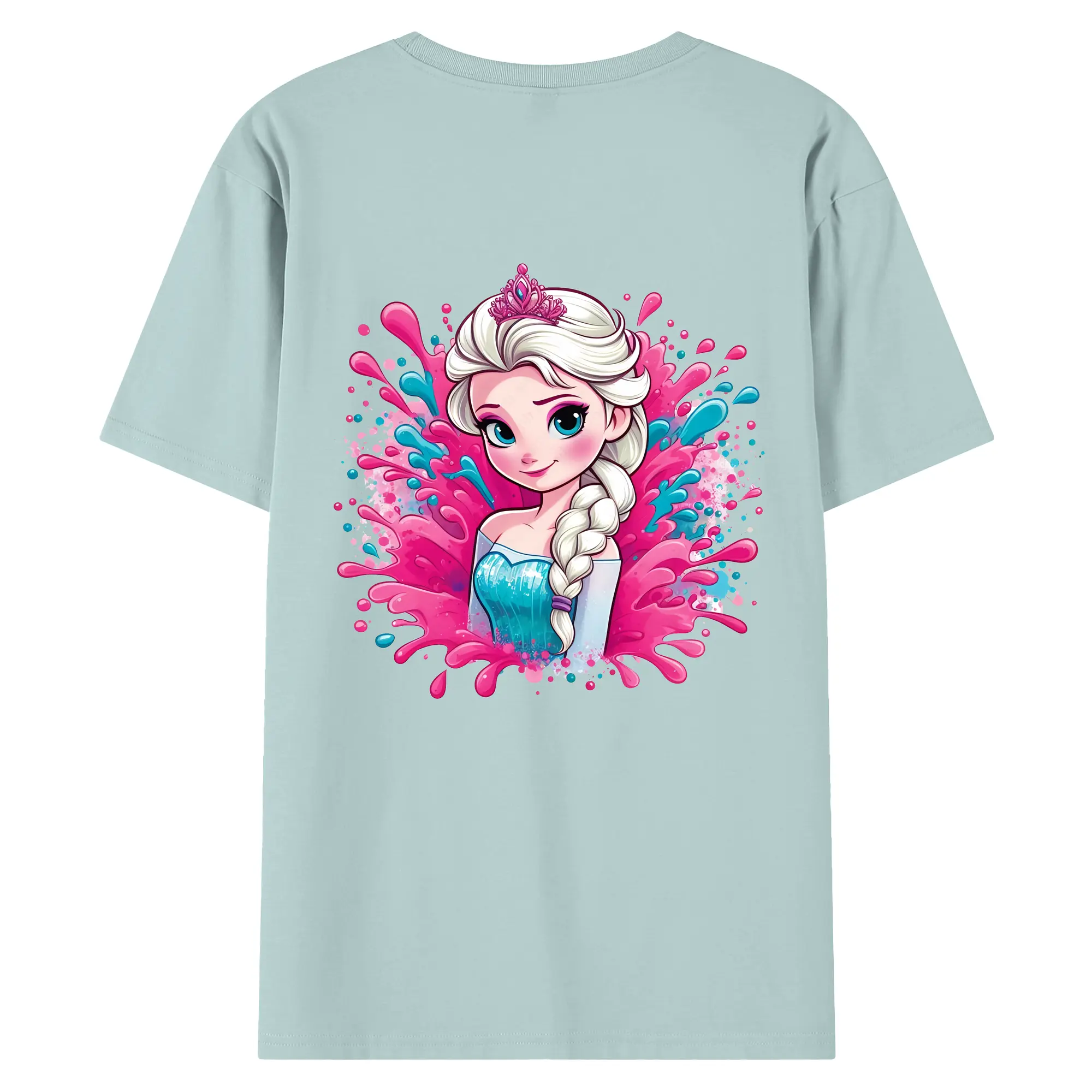 アナと雪の女王(Frozen) グッズ エルサ(Elsa) - 綿100% 半袖Tシャツ ・ フロントプリント ・ 快適 通気性 ・ 日常使い 散歩 スポーツ用