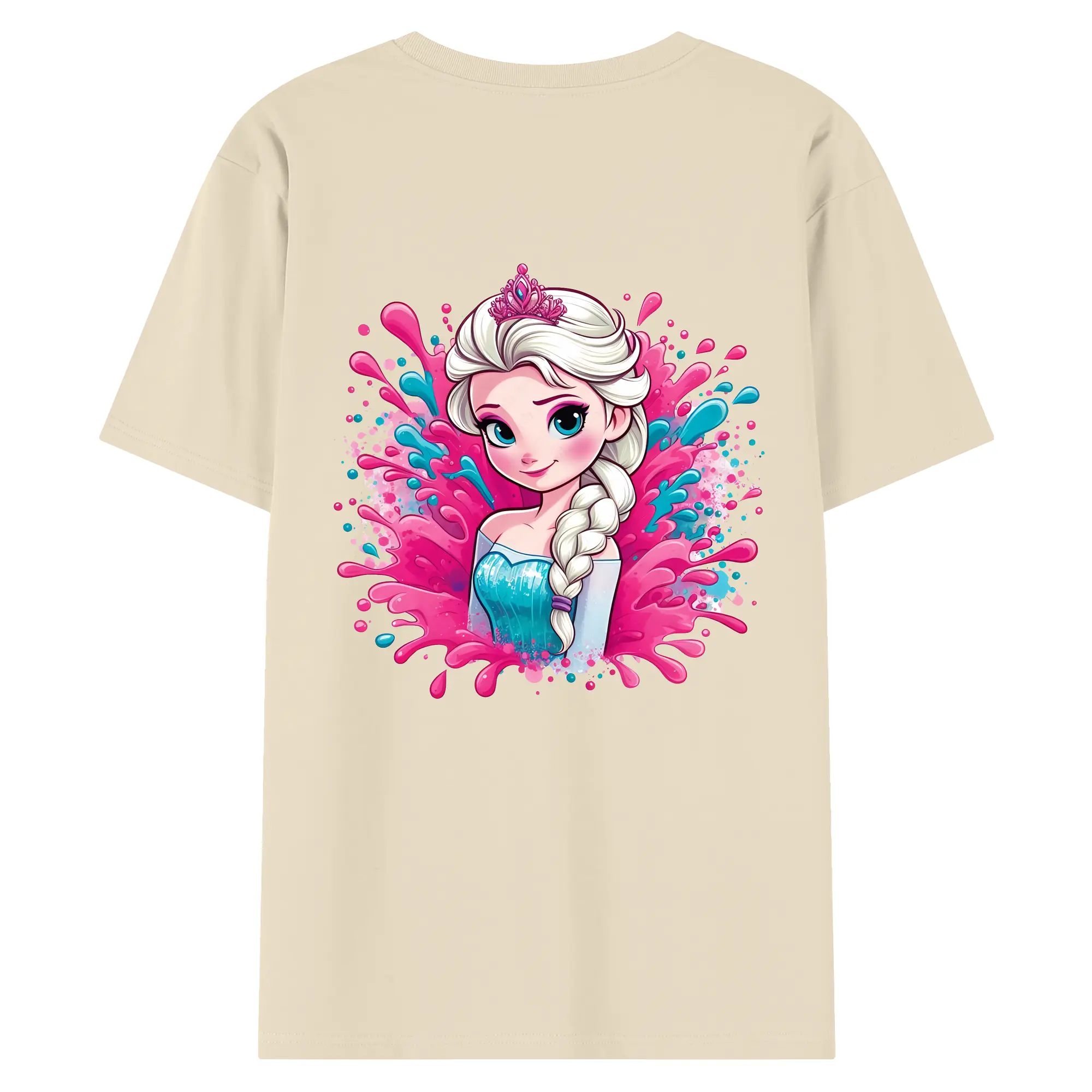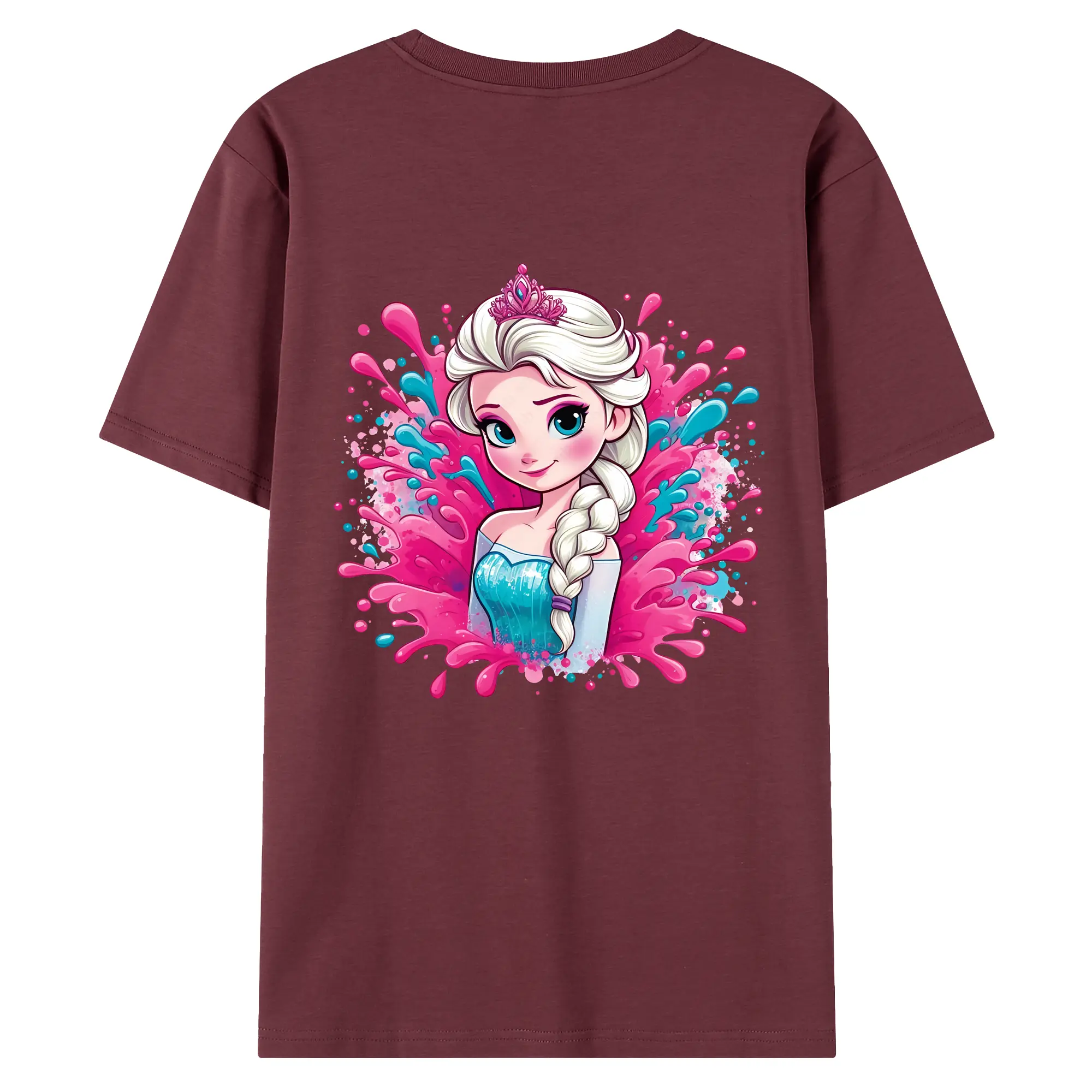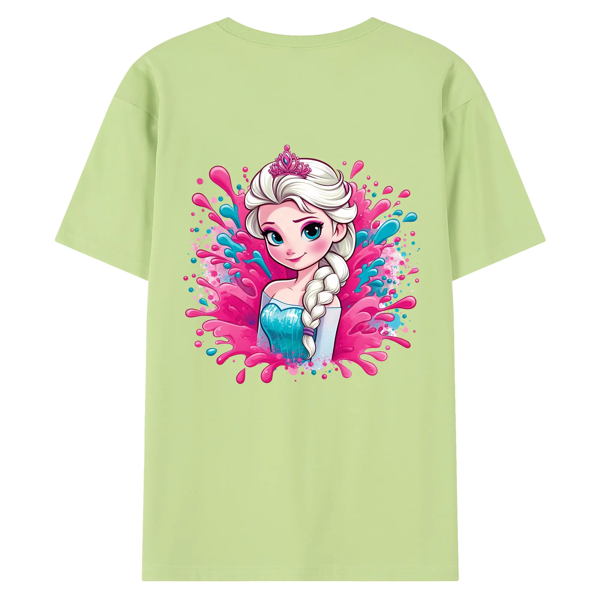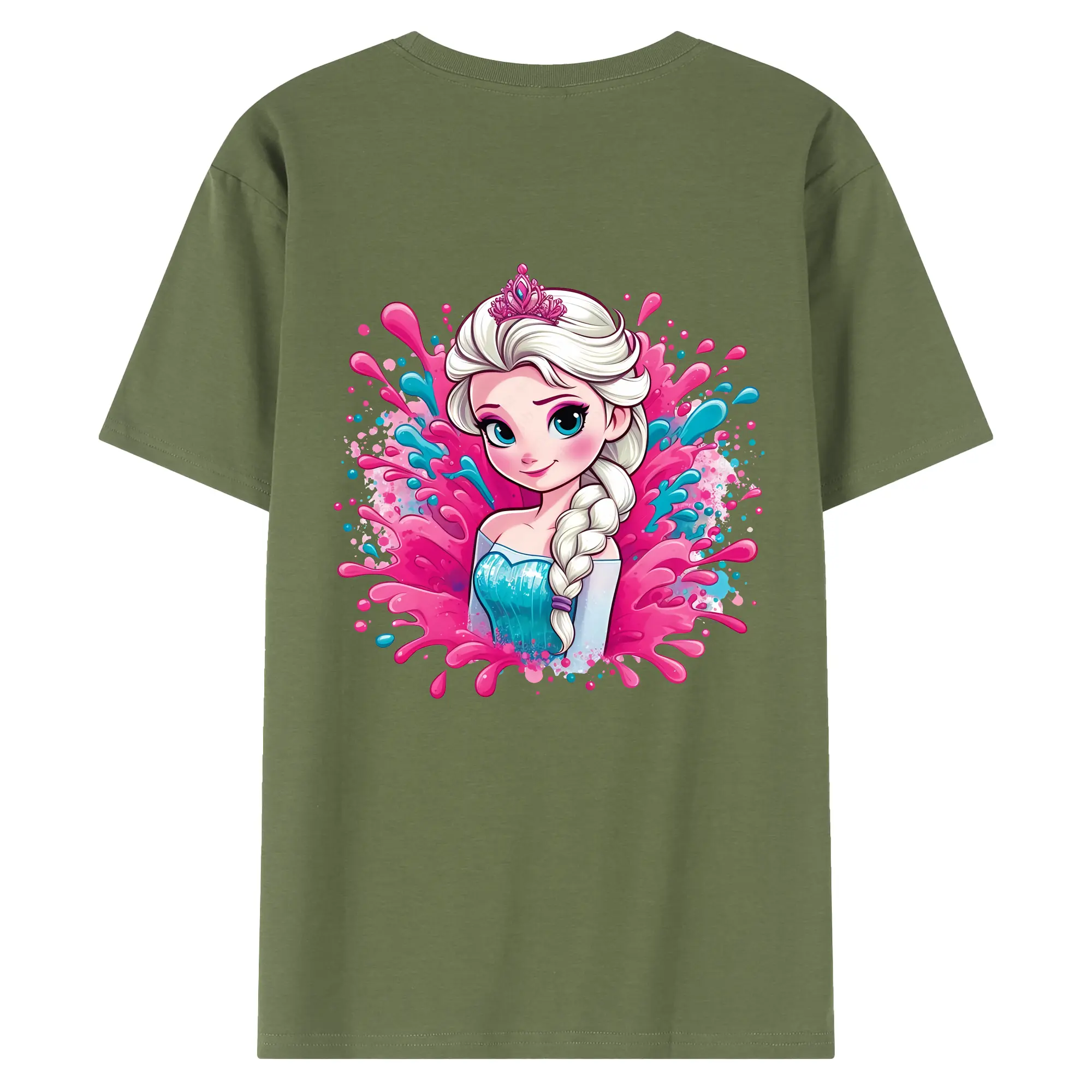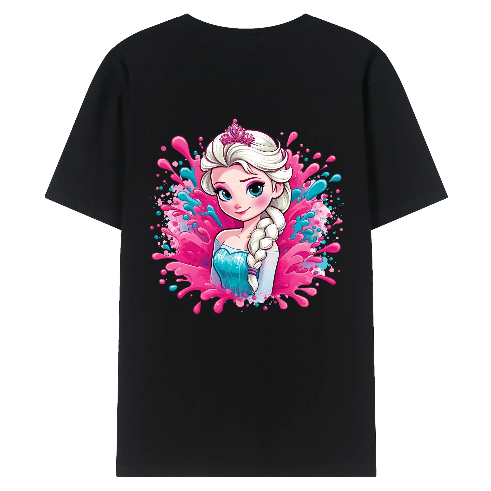 アナと雪の女王(Frozen) グッズ エルサ(Elsa) - 綿100% 半袖Tシャツ ・ フロントプリント ・ 快適 通気性 ・ 日常使い 散歩 スポーツ用