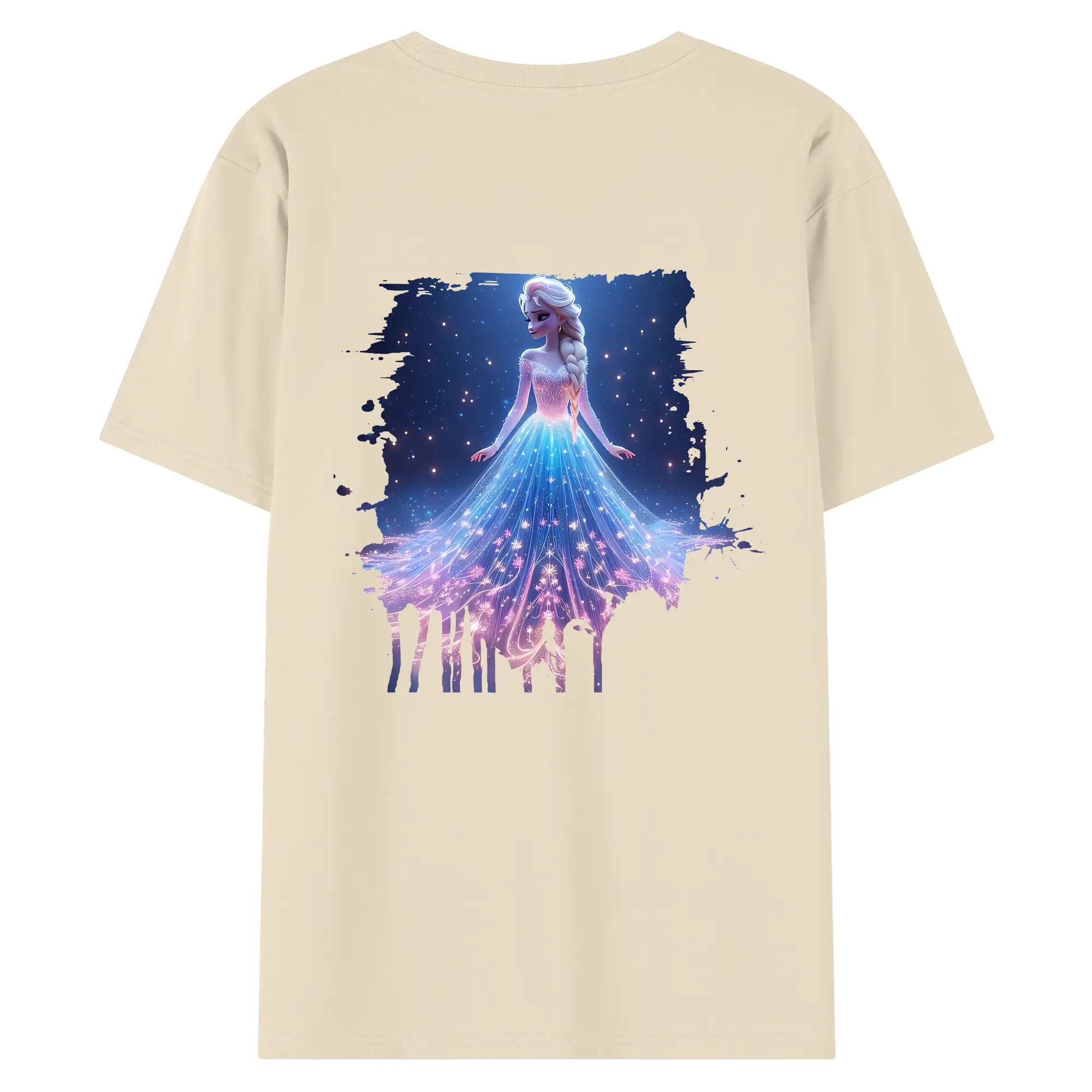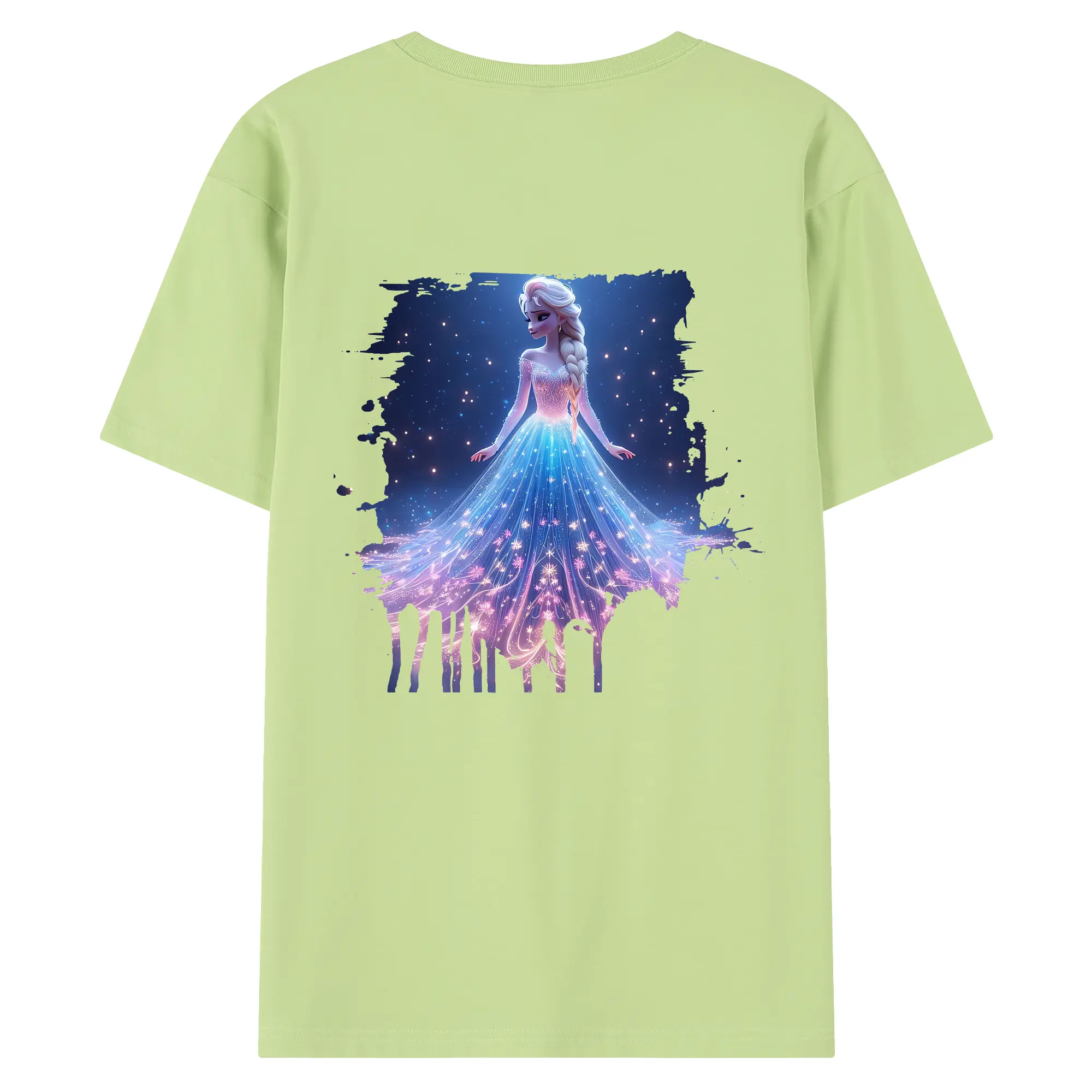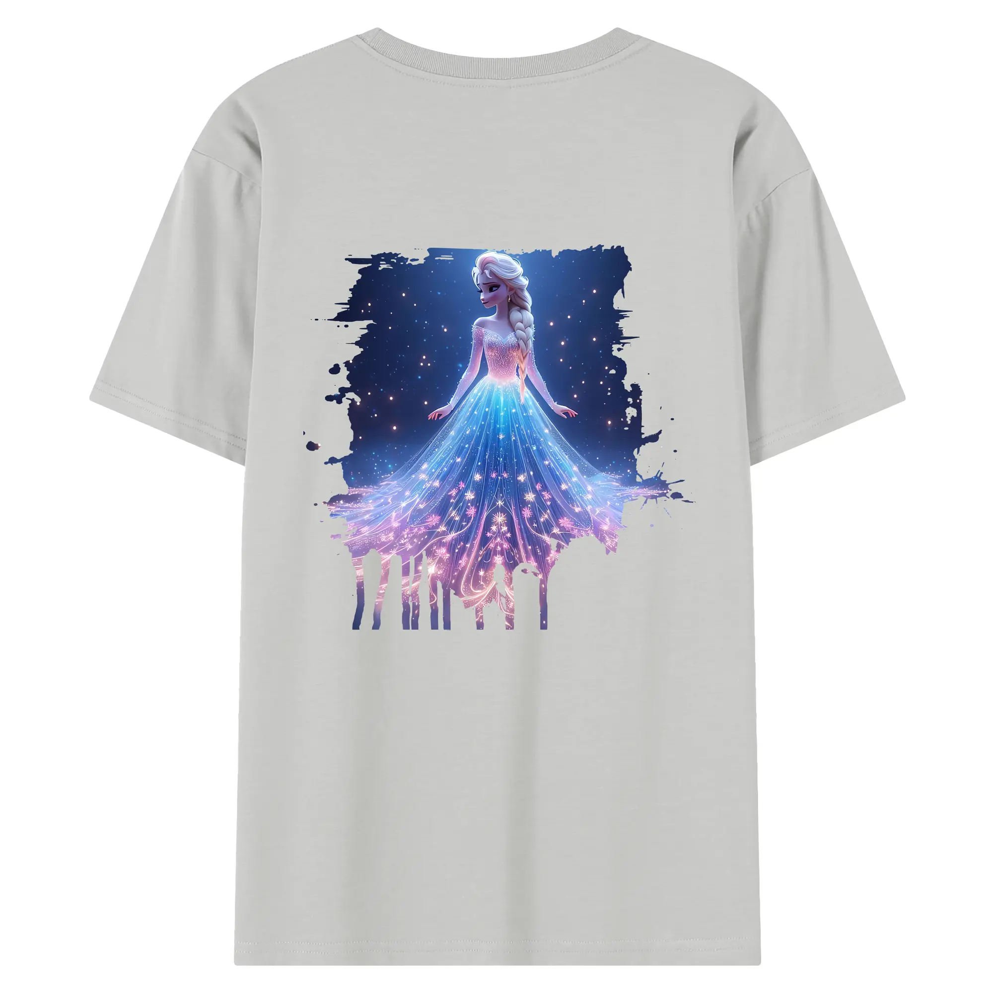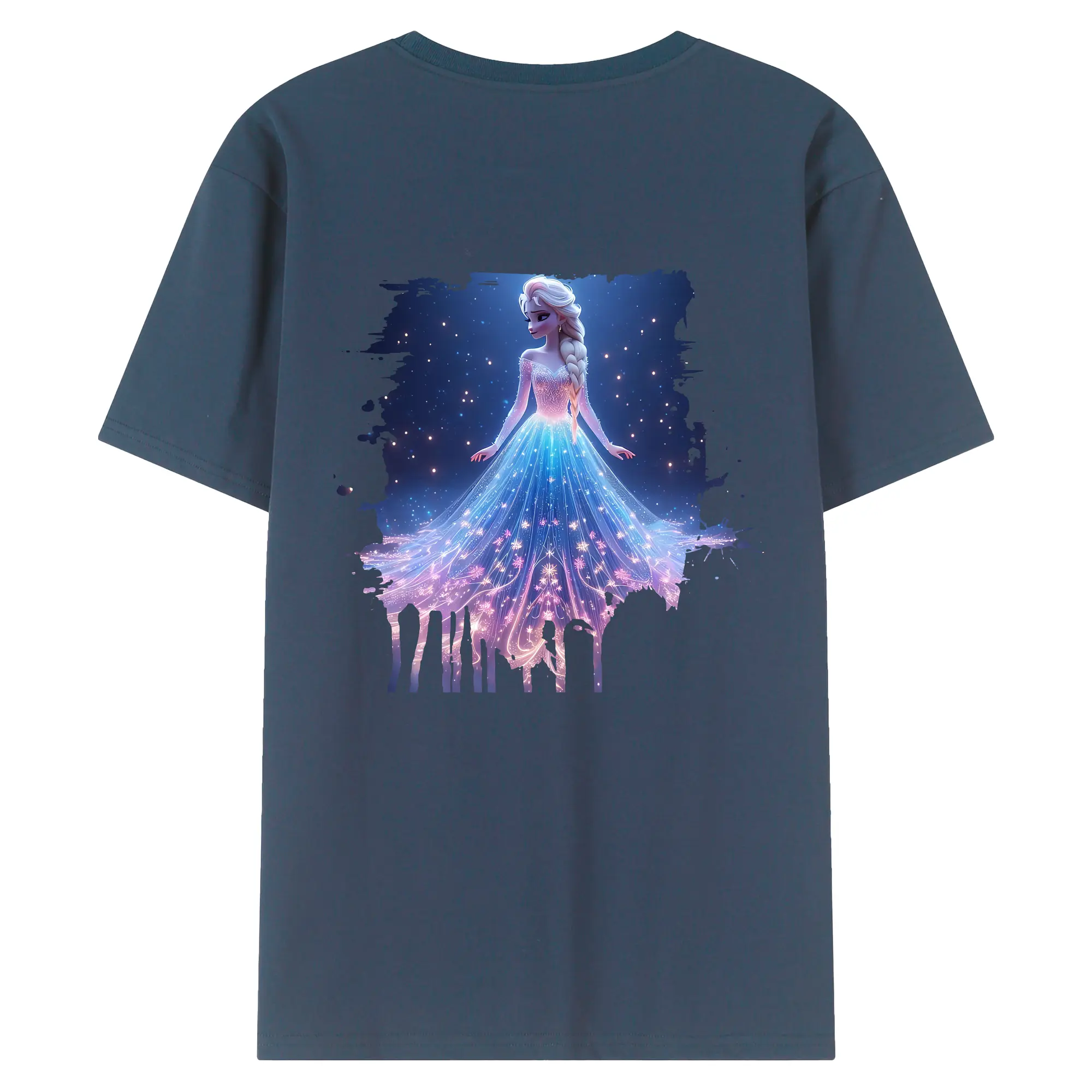 アナと雪の女王(Frozen) グッズ エルサ(Elsa) - 綿100% ヴィンテージ風 半袖Tシャツ ・ 背面プリント ・ 柔らか肌触り ・ 通気性 快適 ・ スポーツ カジュアル 外出用