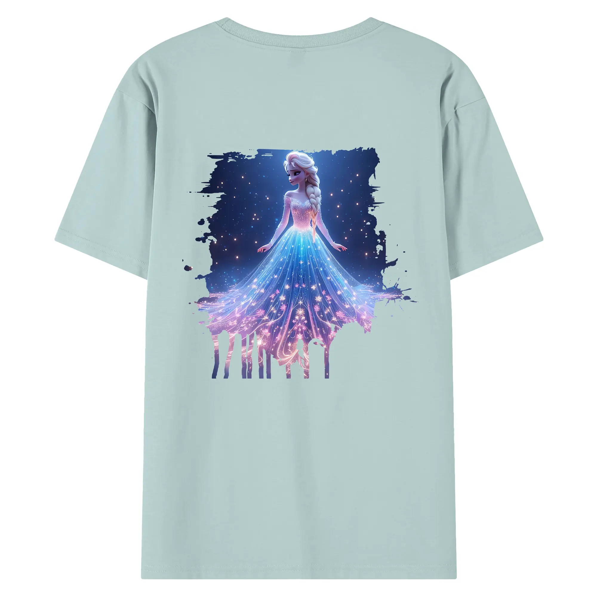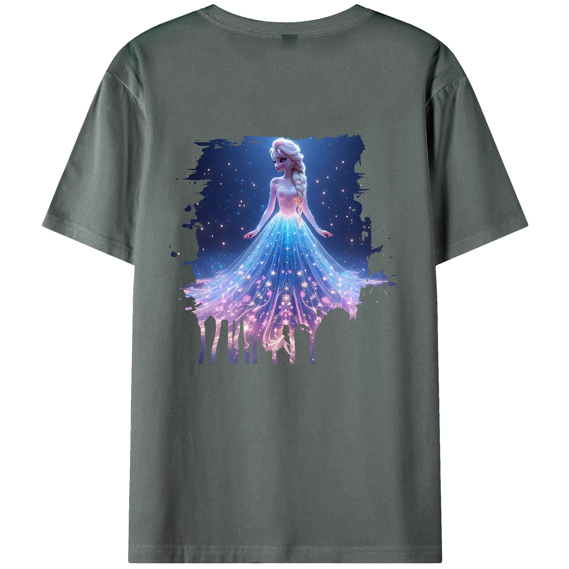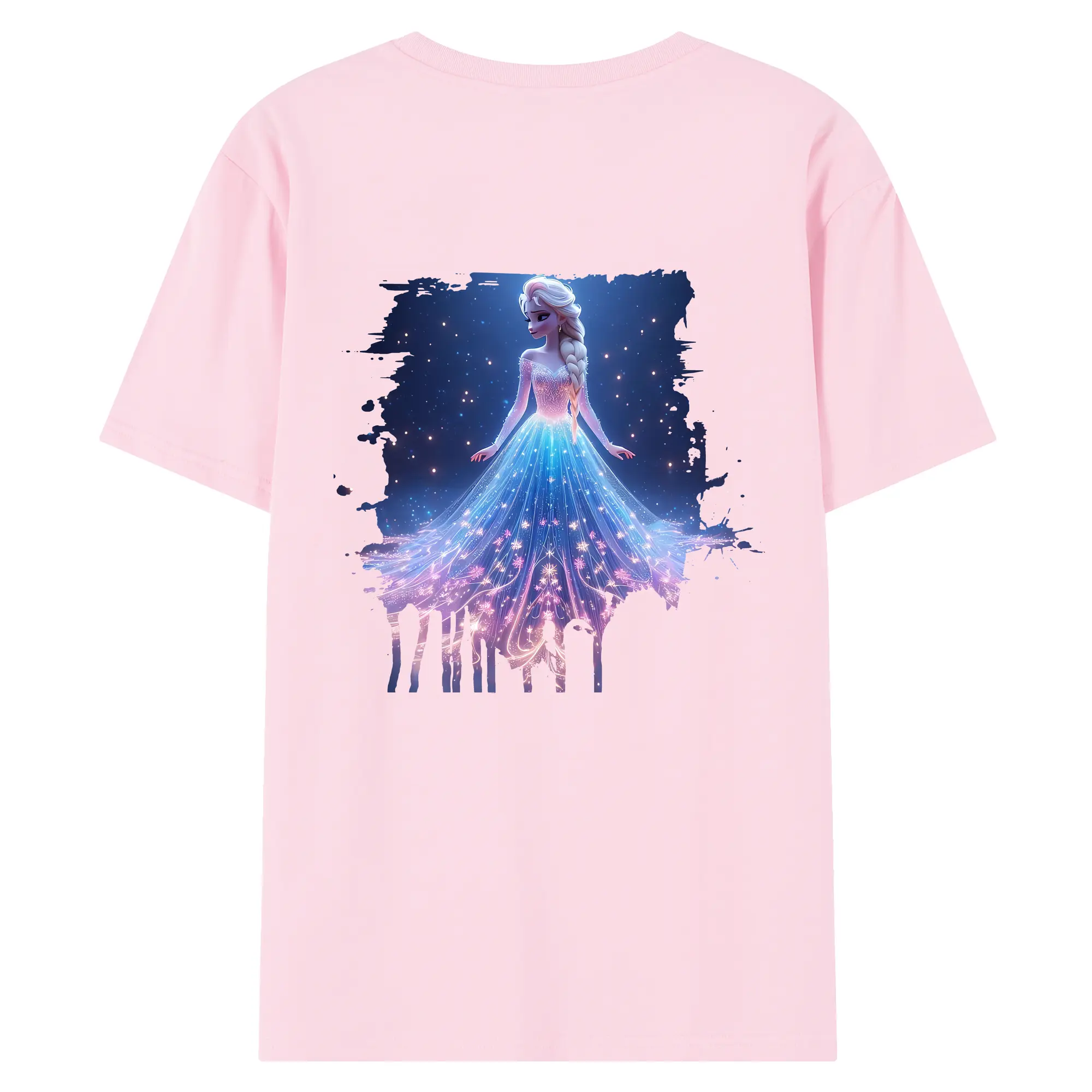 アナと雪の女王(Frozen) グッズ エルサ(Elsa) - 綿100% 半袖Tシャツ ・ フロントプリント ・ 快適 通気性 ・ 日常使い 散歩 スポーツ用