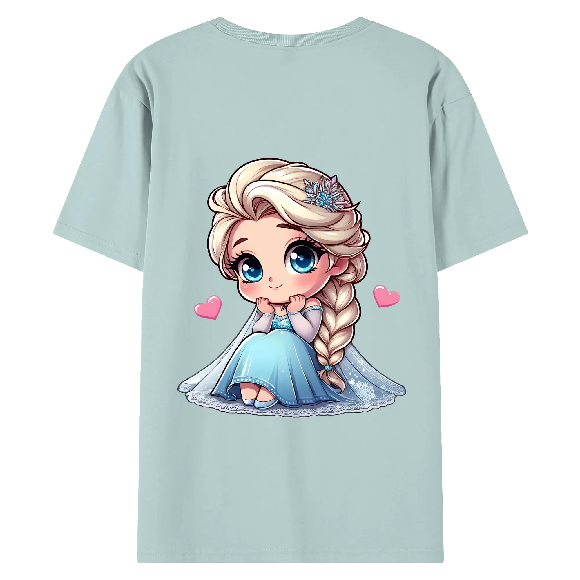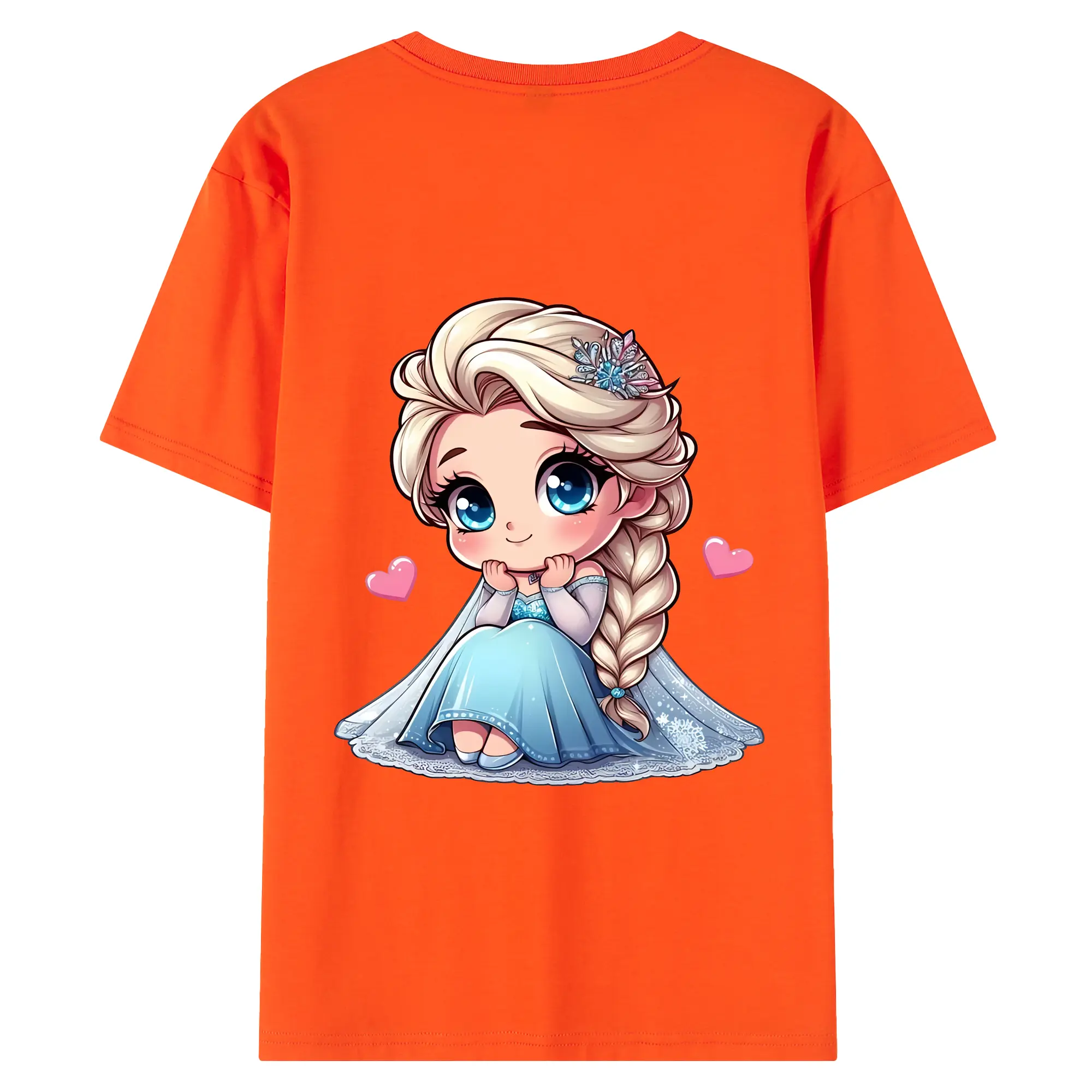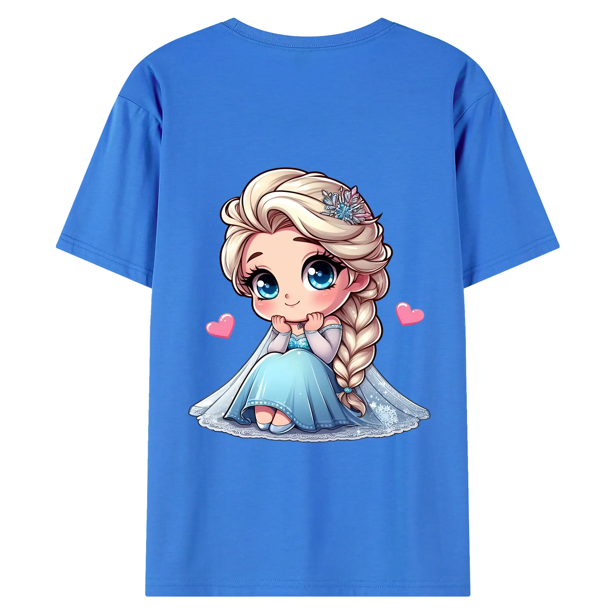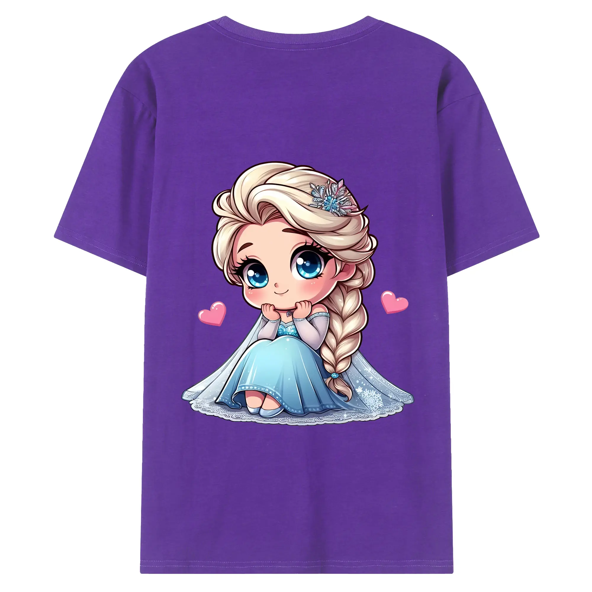 アナと雪の女王(Frozen) グッズ エルサ(Elsa) - 綿100% 半袖Tシャツ ・ フロントプリント ・ 快適 通気性 ・ 日常使い 散歩 スポーツ用
