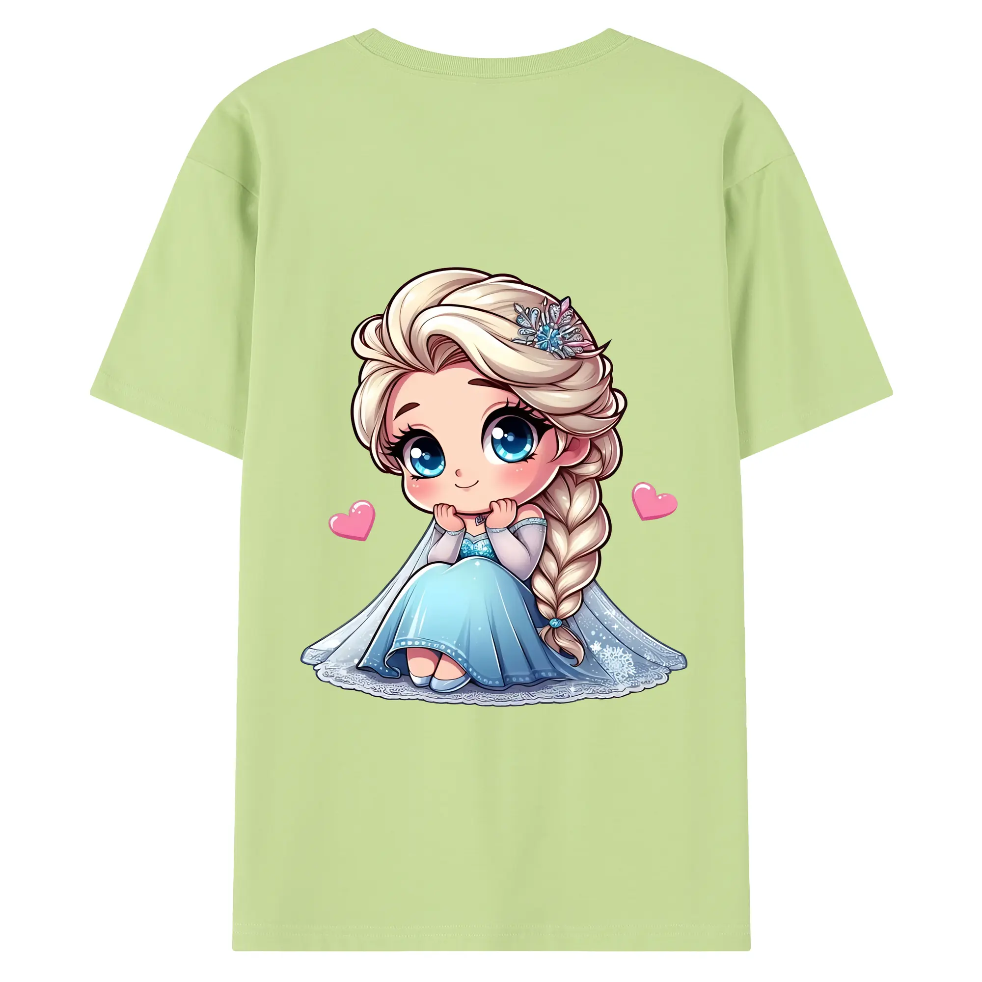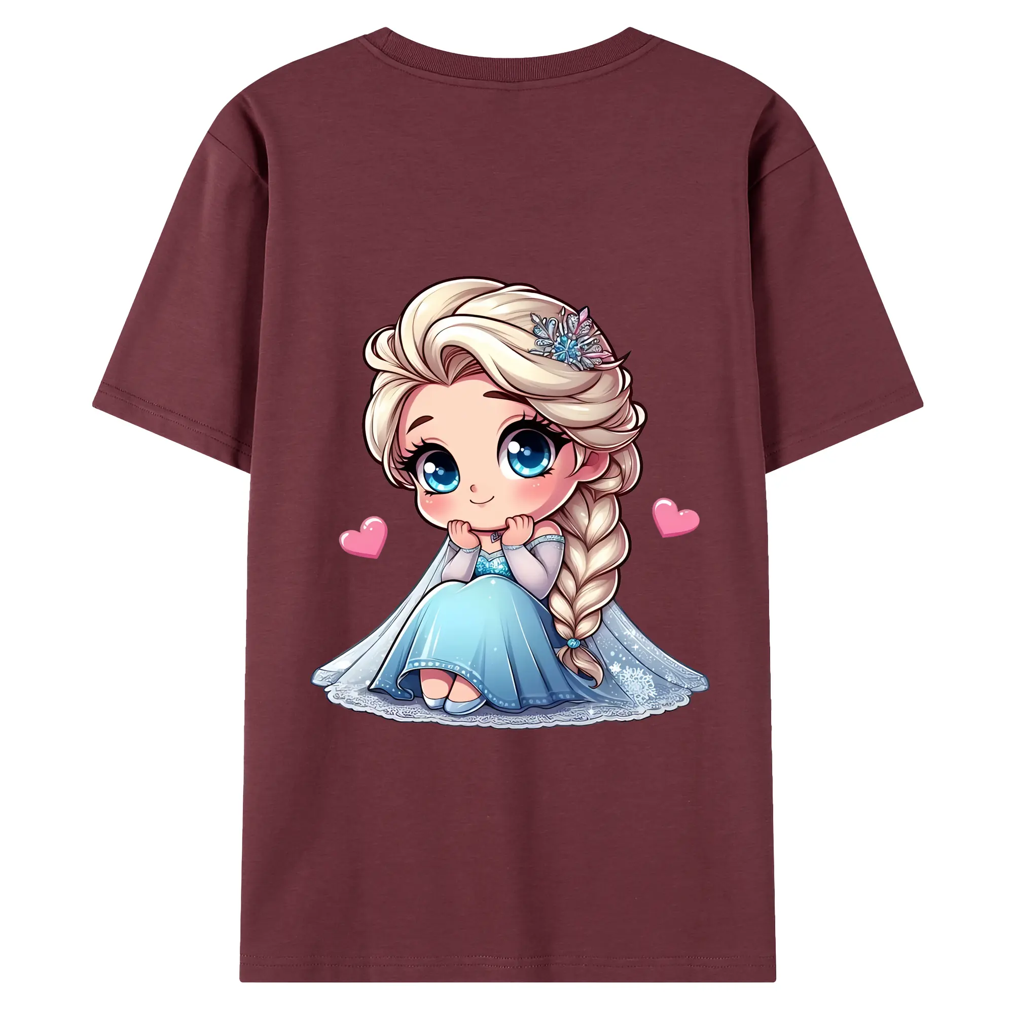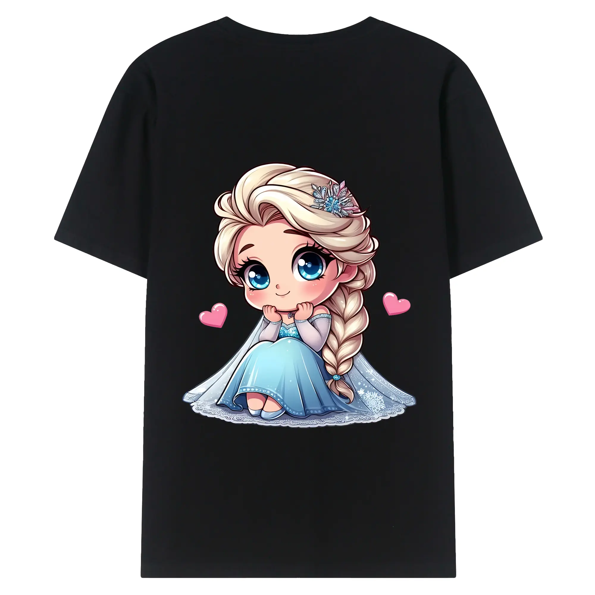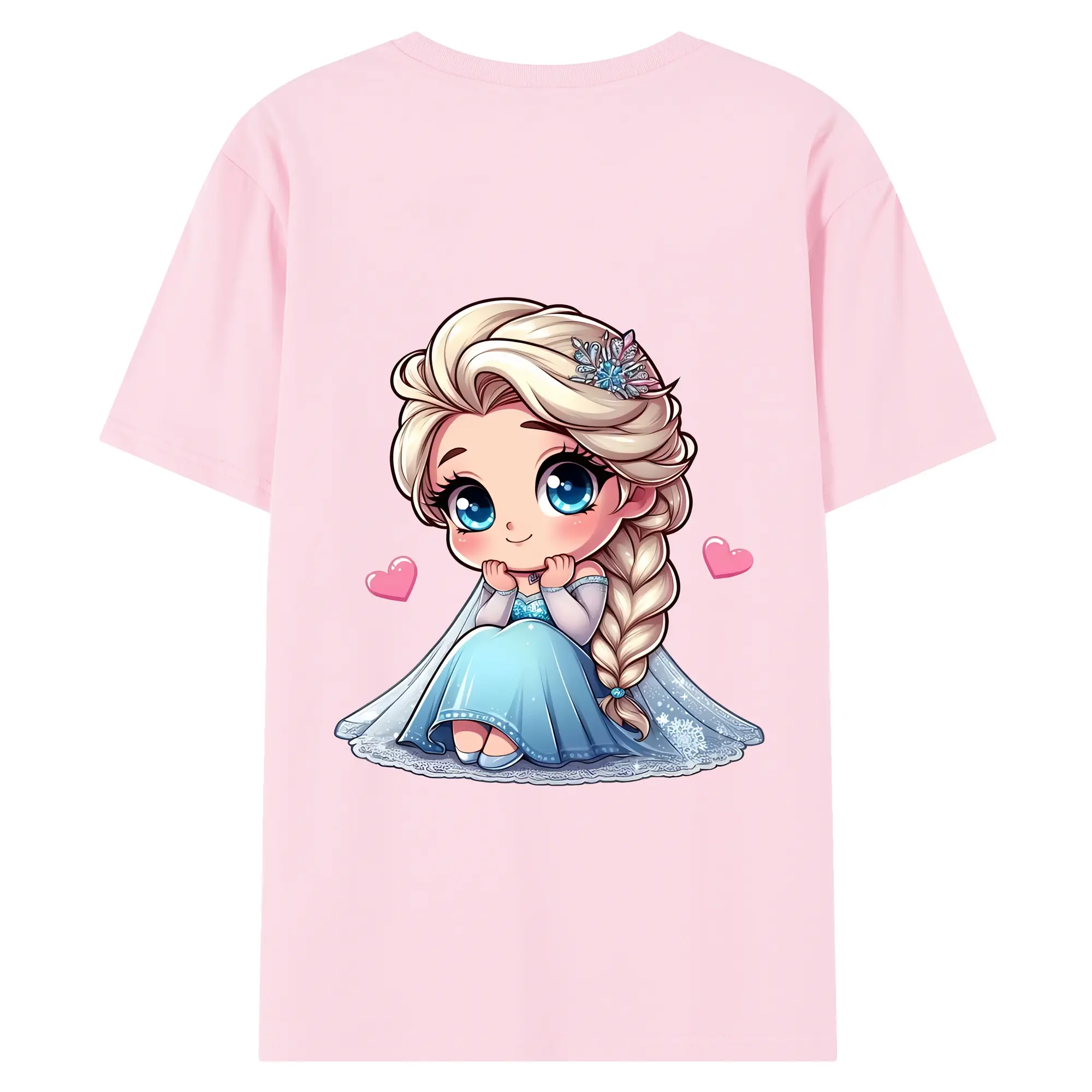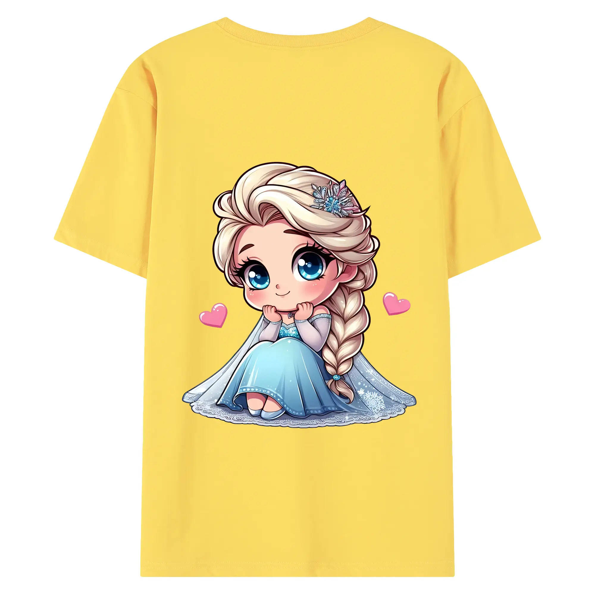 アナと雪の女王(Frozen) グッズ エルサ(Elsa) - 綿100% 半袖Tシャツ ・ フロントプリント ・ 快適 通気性 ・ 日常使い 散歩 スポーツ用