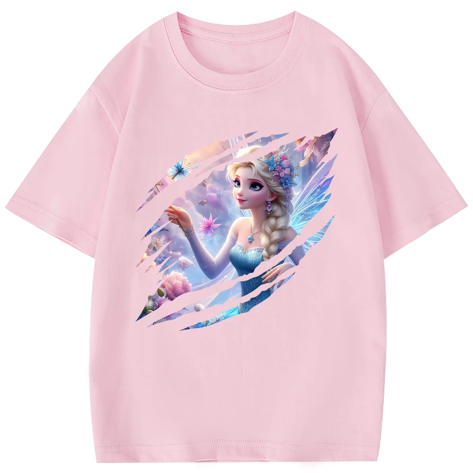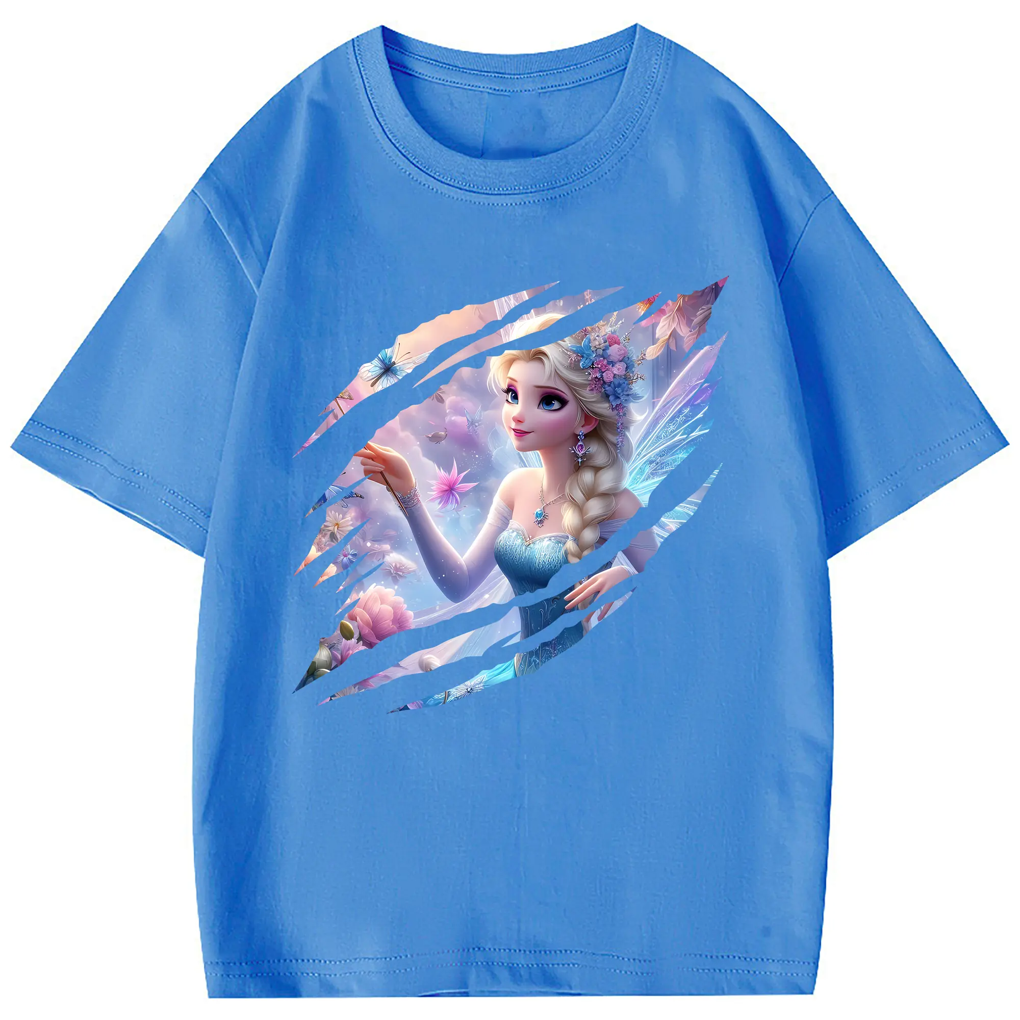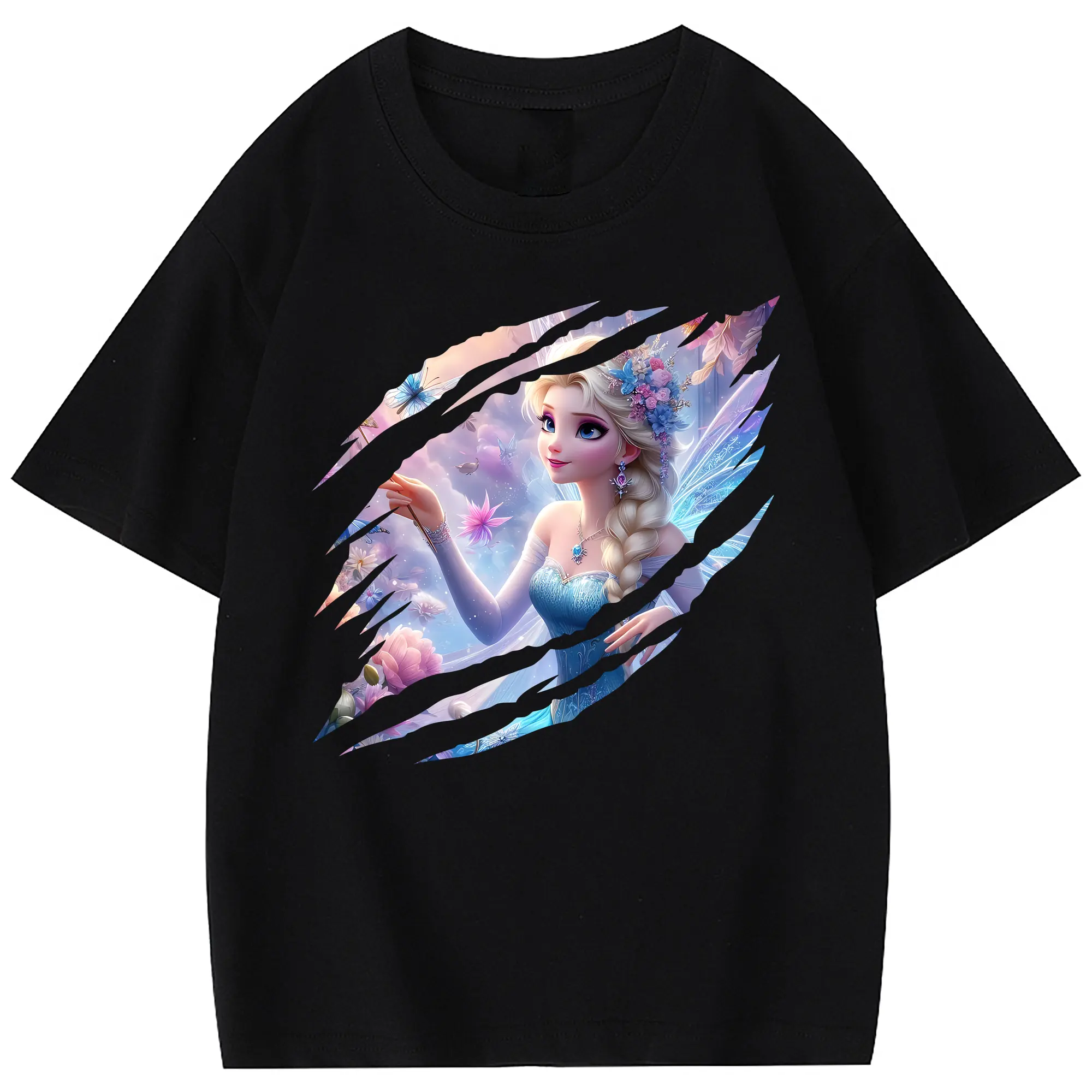 アナと雪の女王(Frozen) グッズ エルサ(Elsa) - 綿100% 半袖Tシャツ ・ フロントプリント ・ 快適 通気性 ・ 日常使い 散歩 スポーツ用