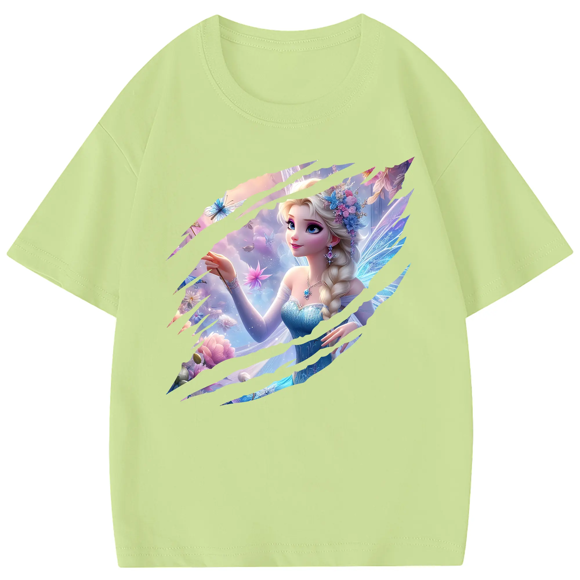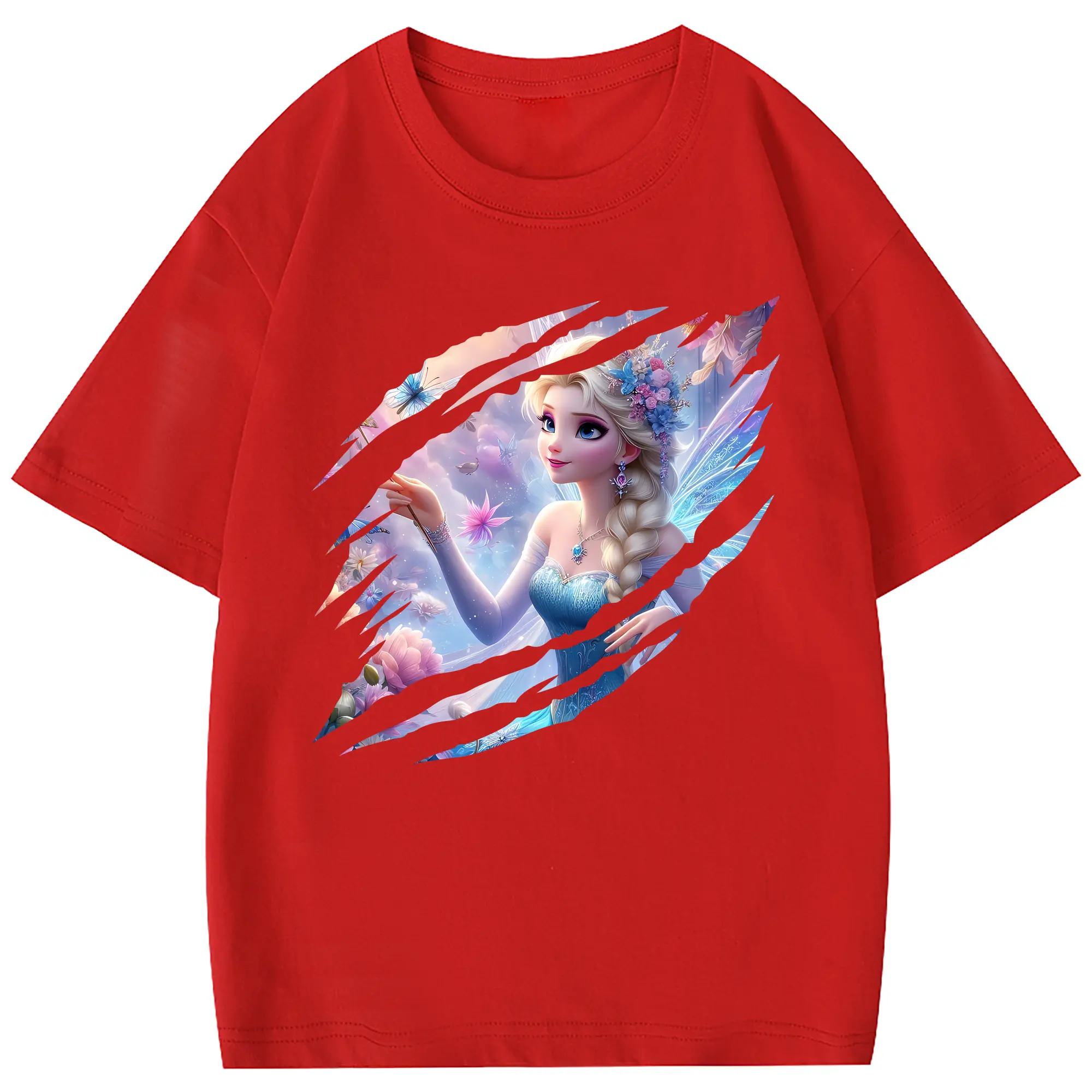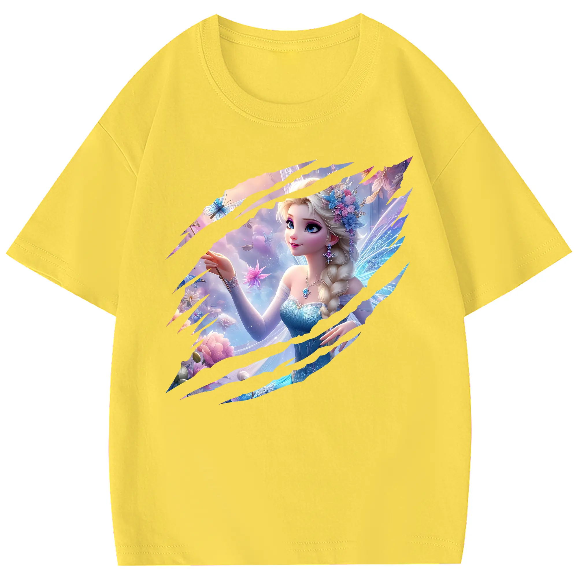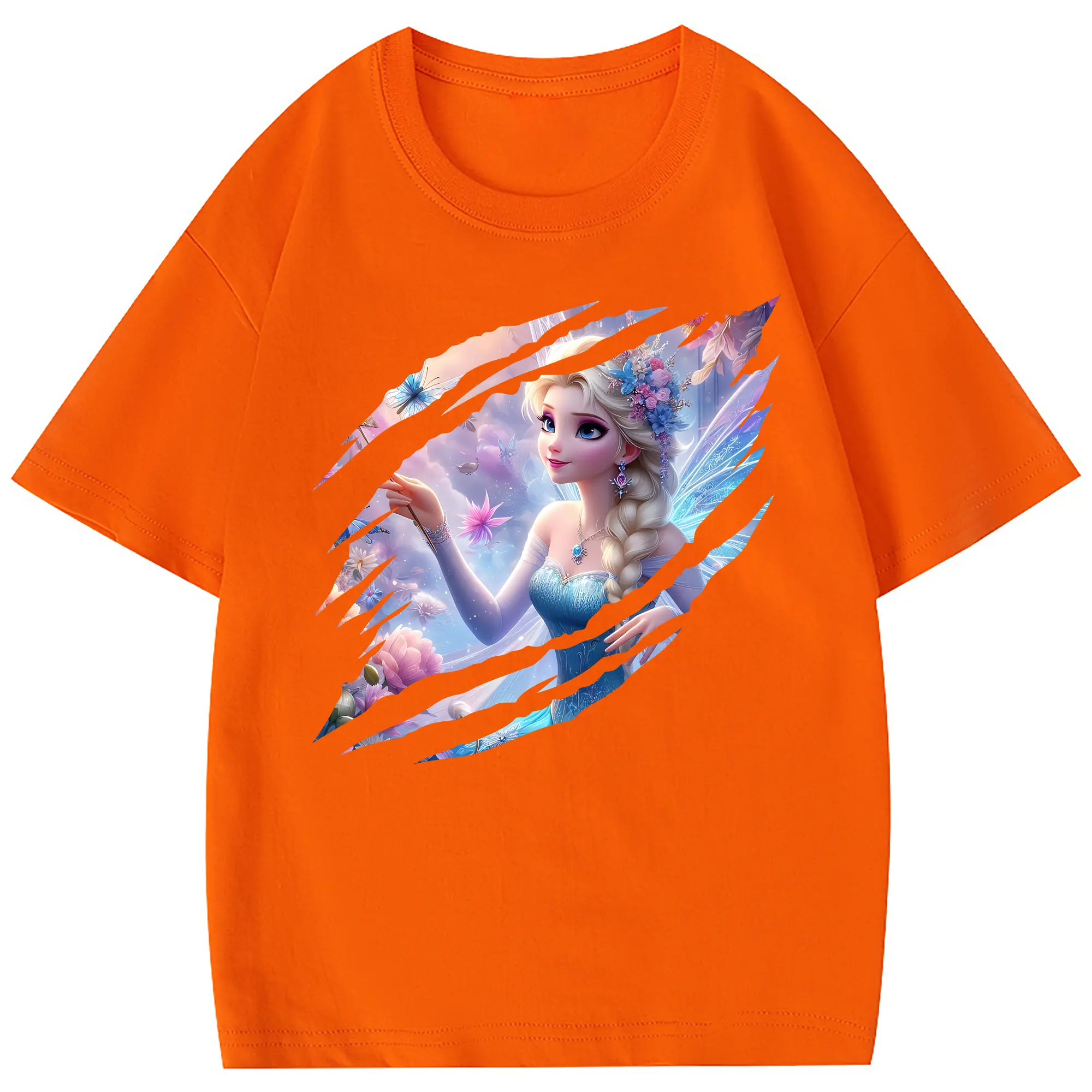 アナと雪の女王(Frozen) グッズ エルサ(Elsa) - 綿100% 半袖Tシャツ ・ フロントプリント ・ 快適 通気性 ・ 日常使い 散歩 スポーツ用