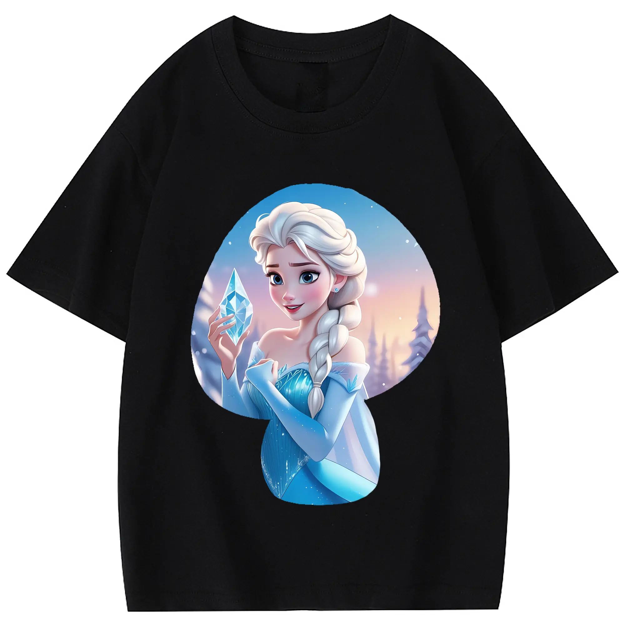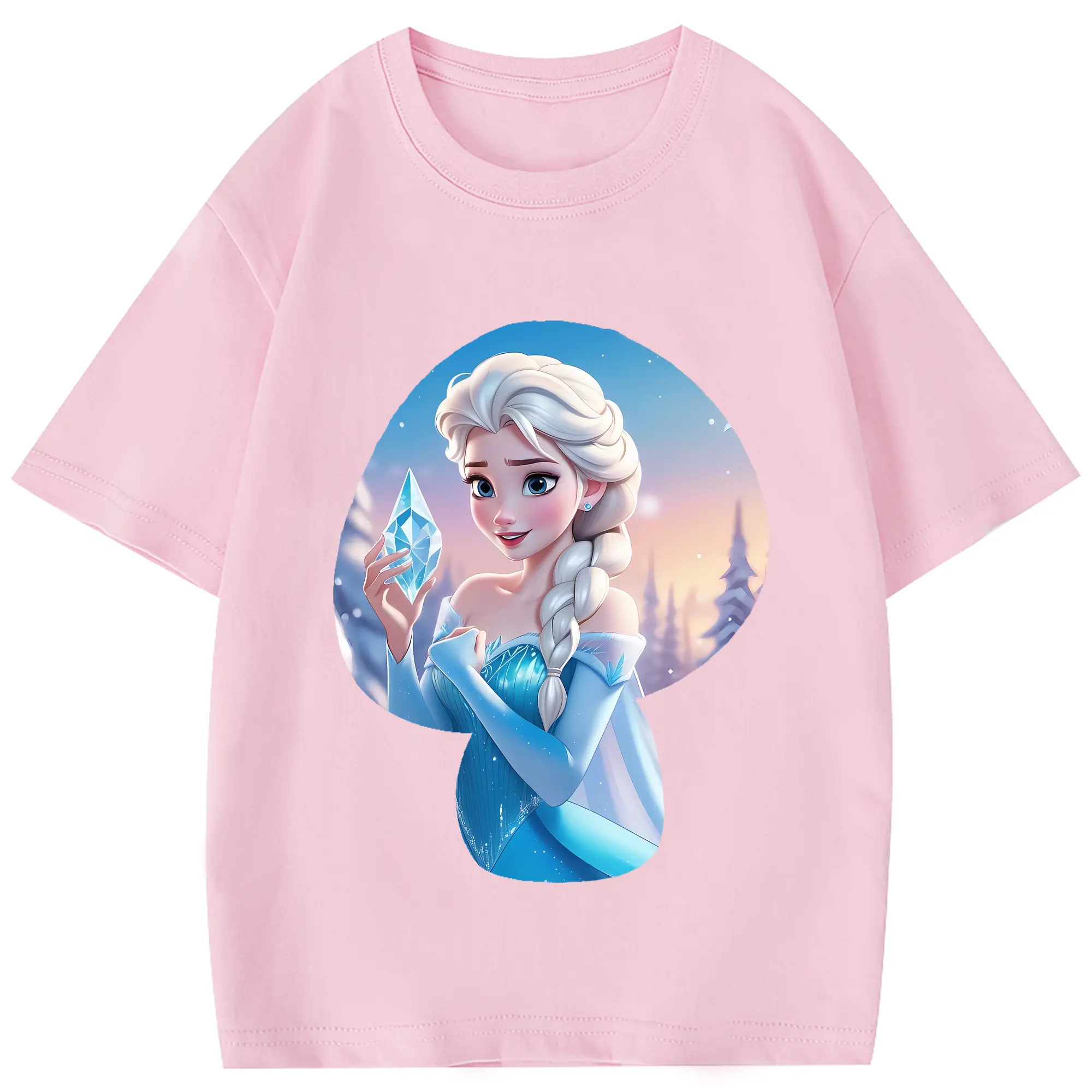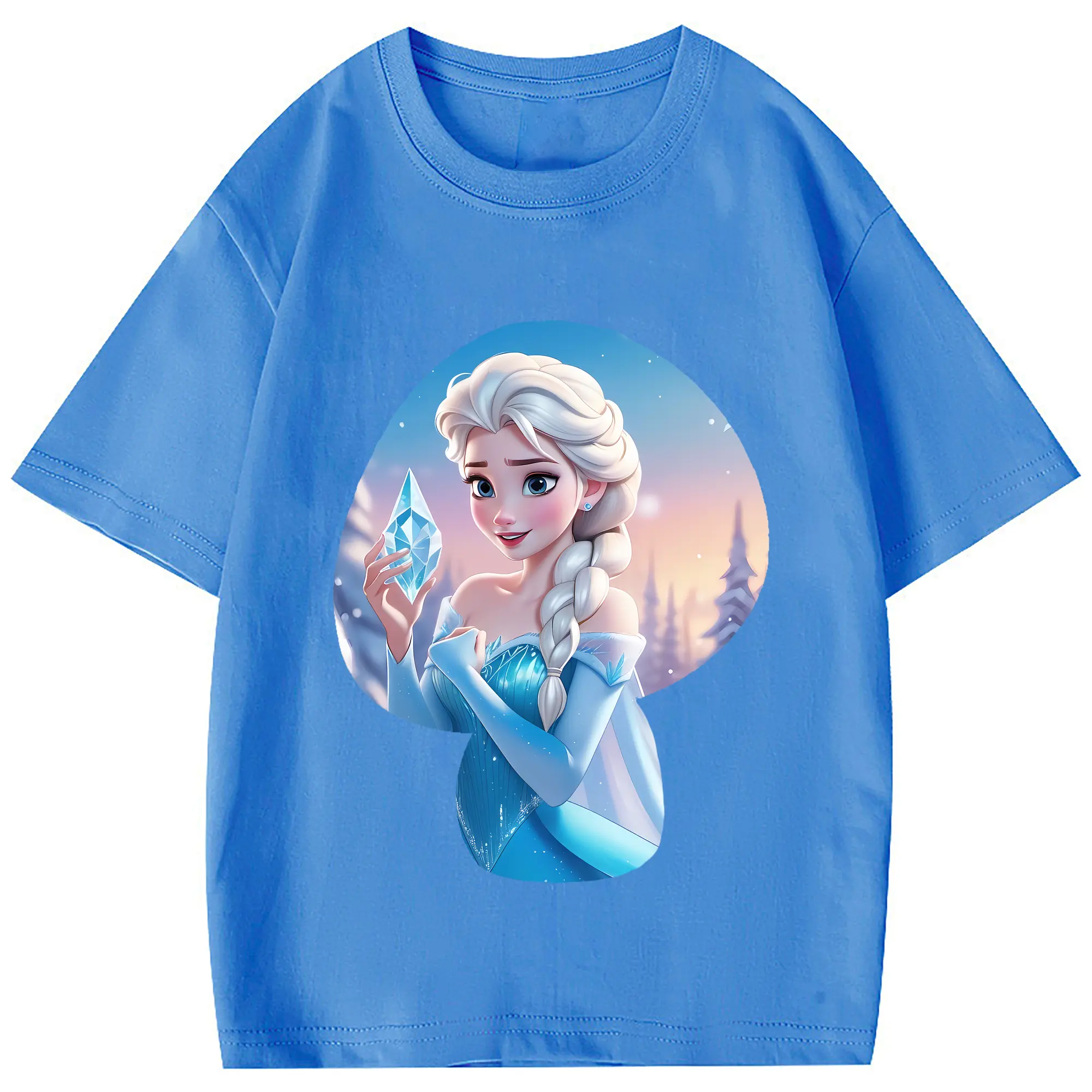 アナと雪の女王(Frozen) グッズ エルサ(Elsa) - 綿100% 半袖Tシャツ ・ フロントプリント ・ 快適 通気性 ・ 日常使い 散歩 スポーツ用