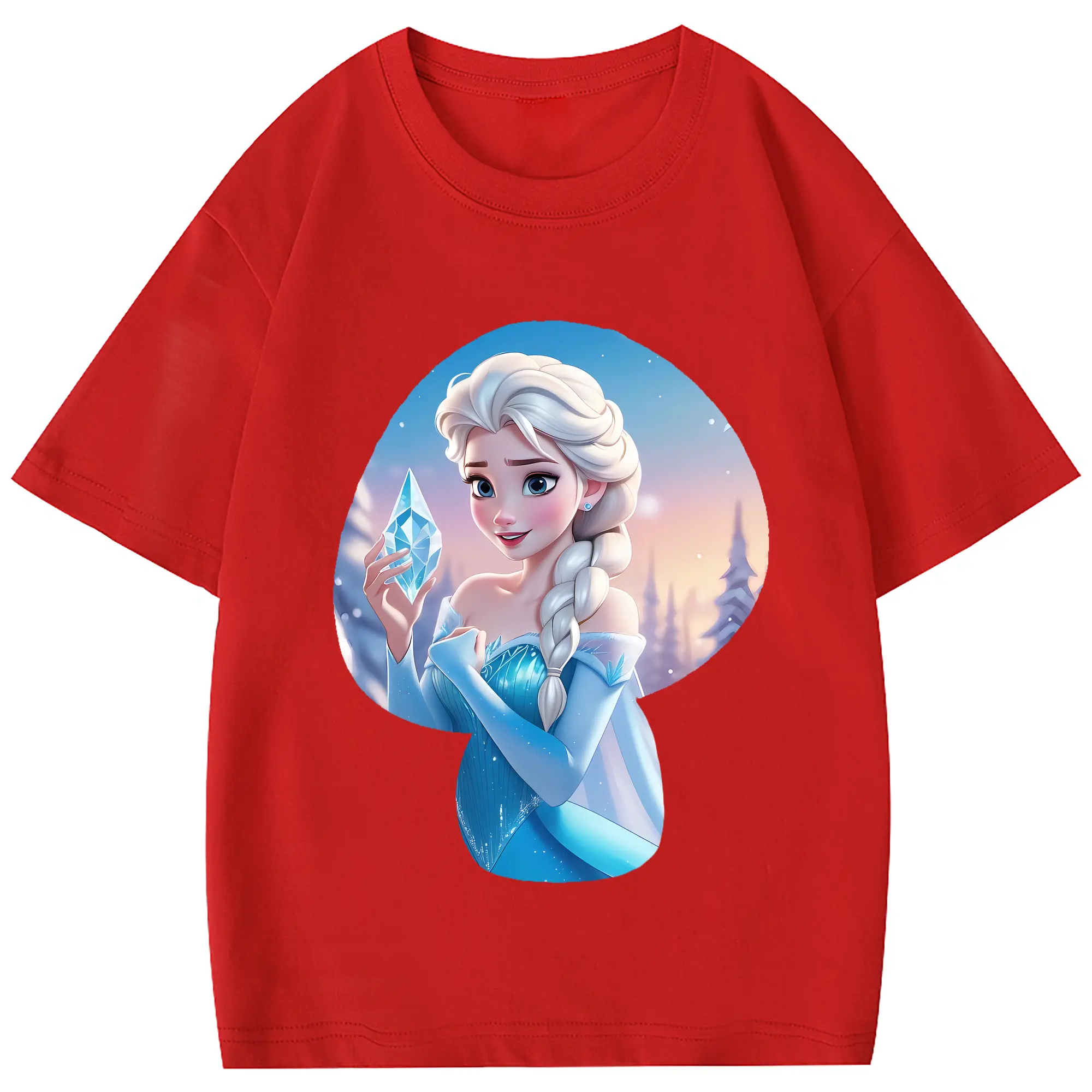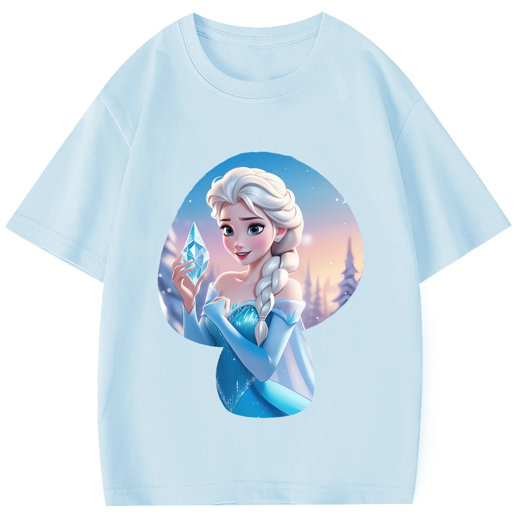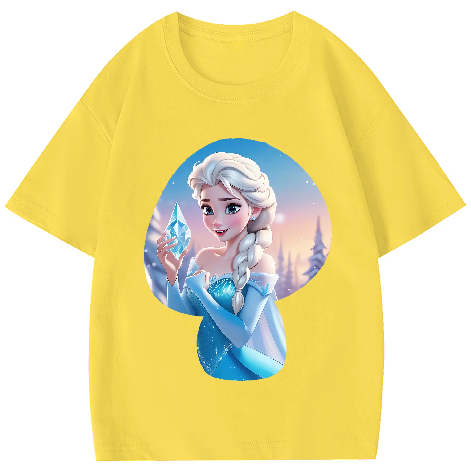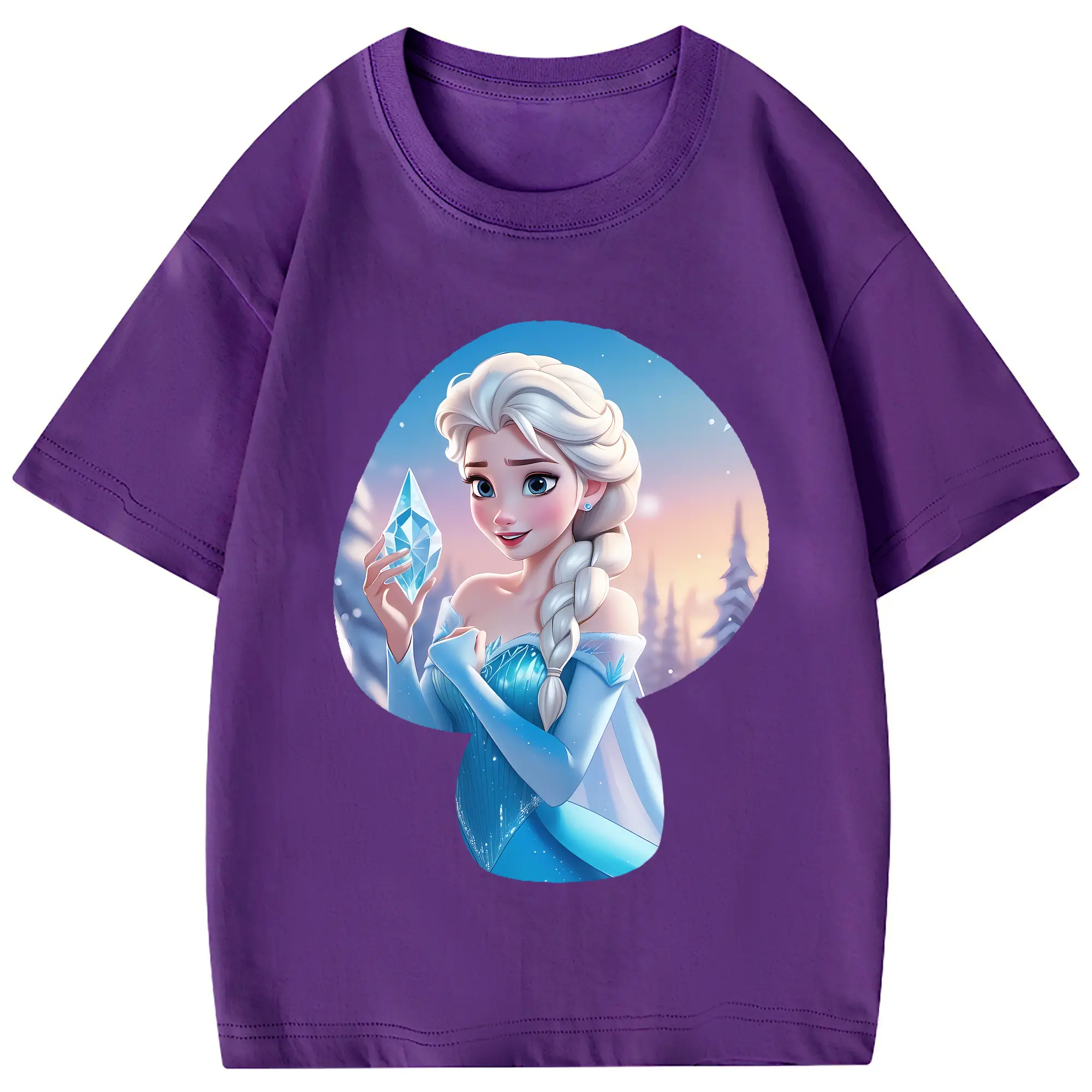 アナと雪の女王(Frozen) グッズ エルサ(Elsa) - 綿100% 半袖Tシャツ ・ フロントプリント ・ 快適 通気性 ・ 日常使い 散歩 スポーツ用