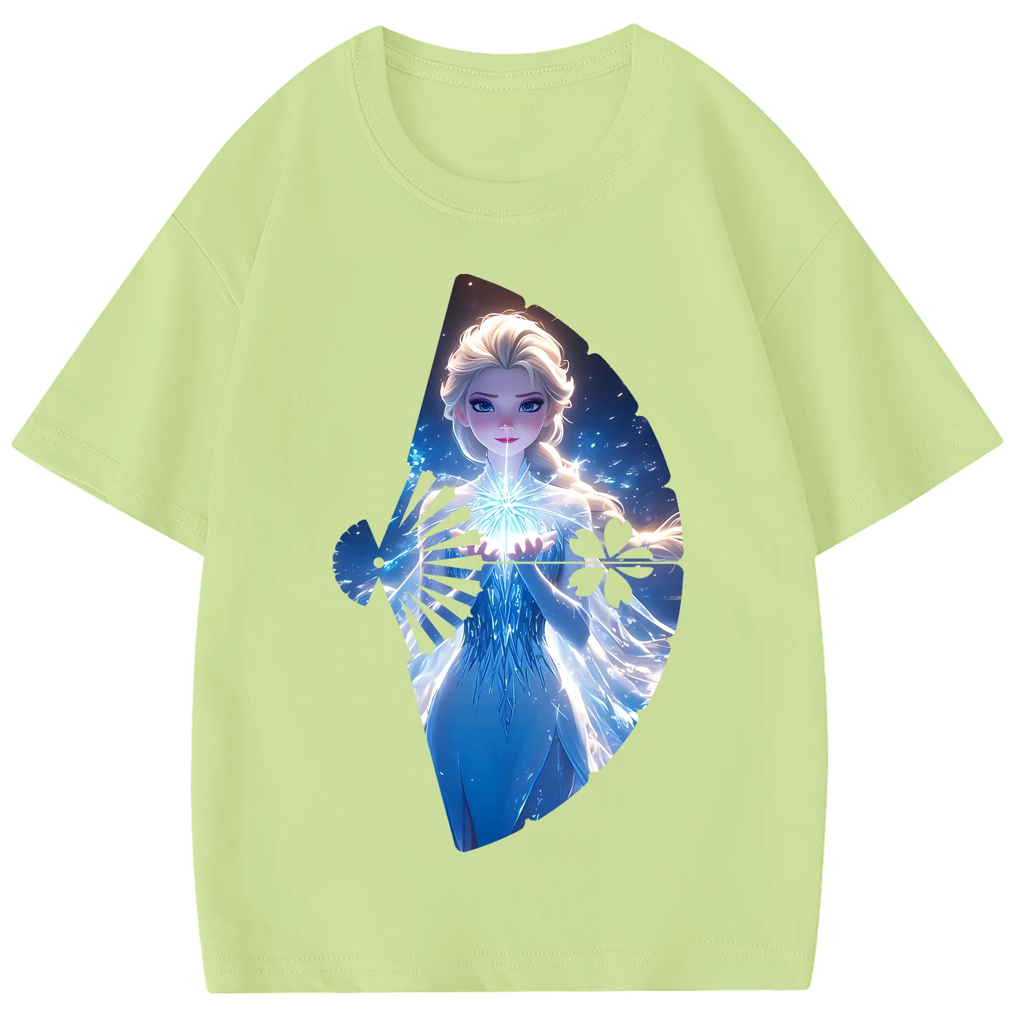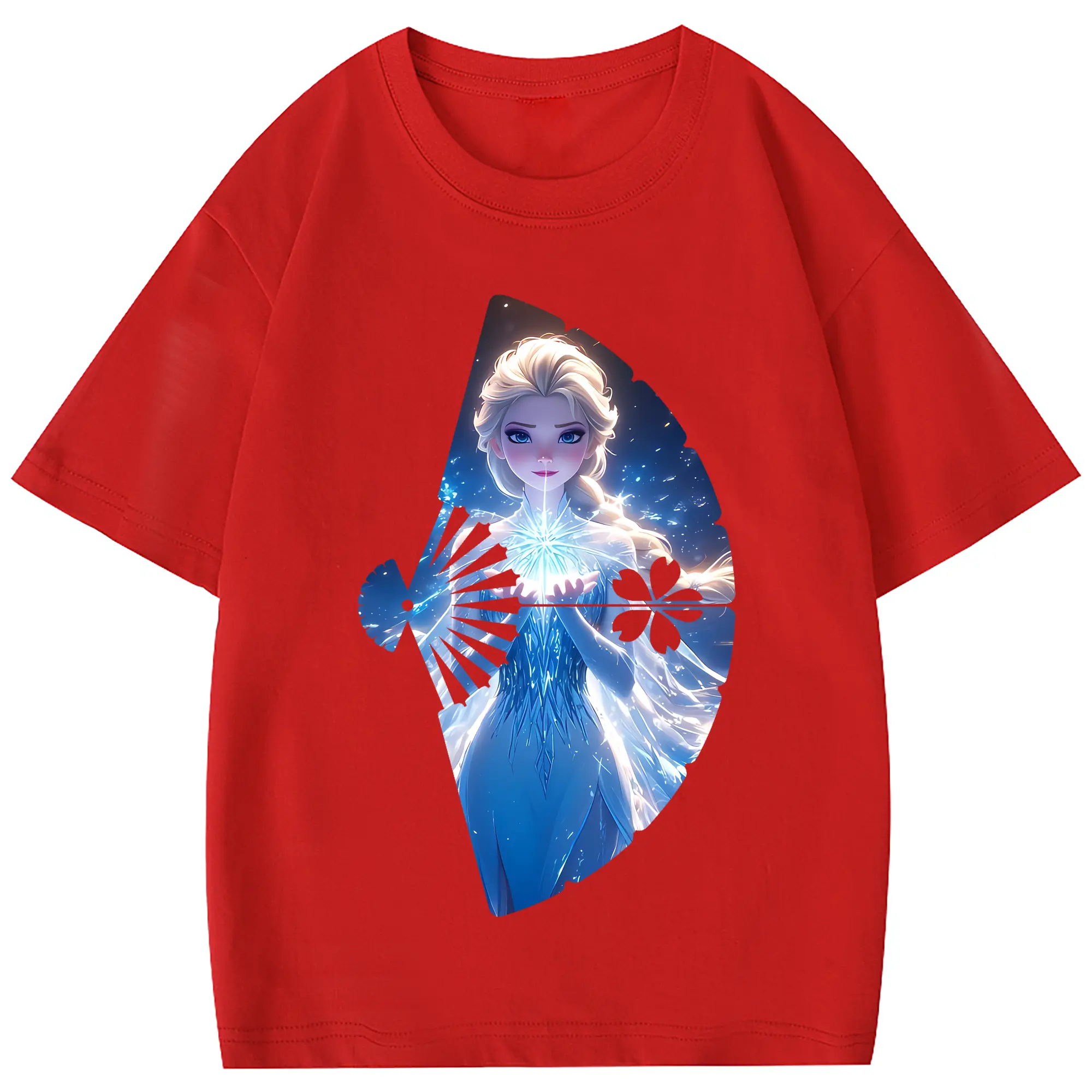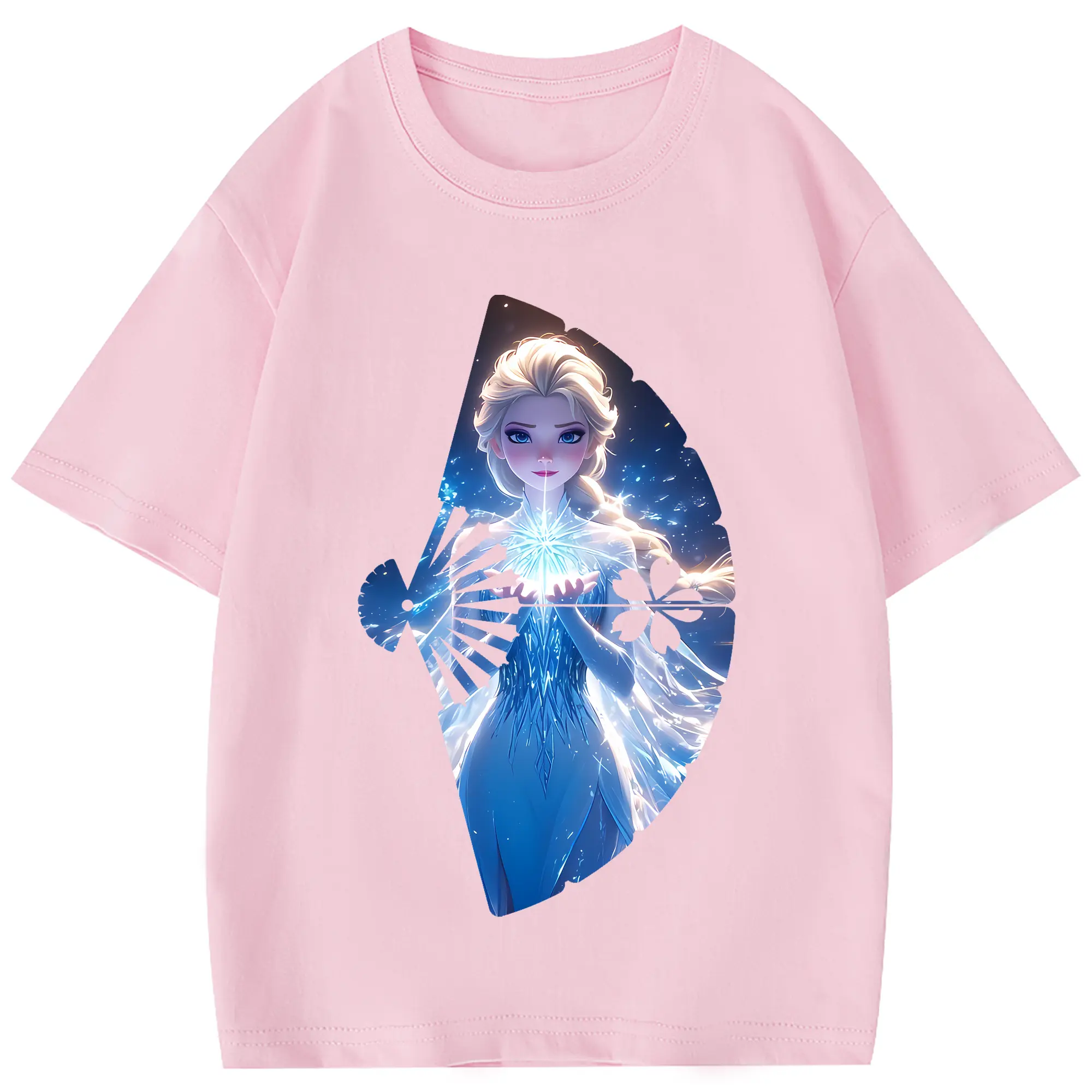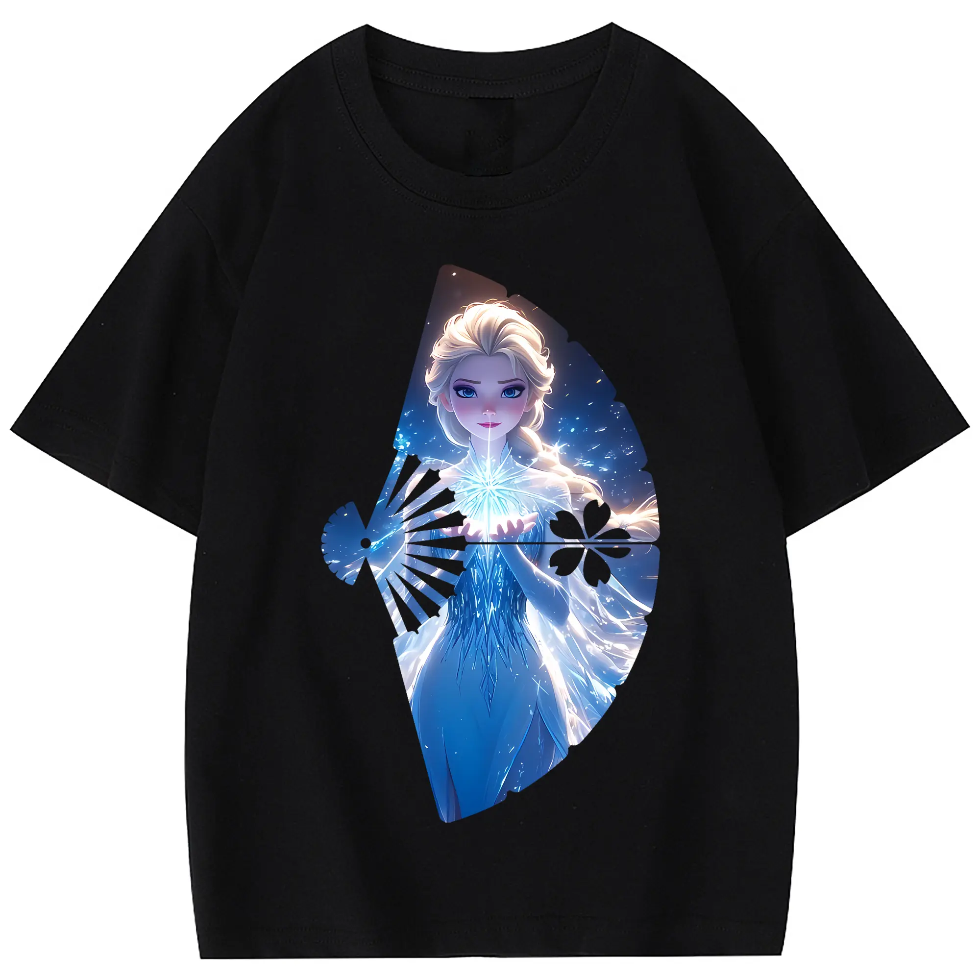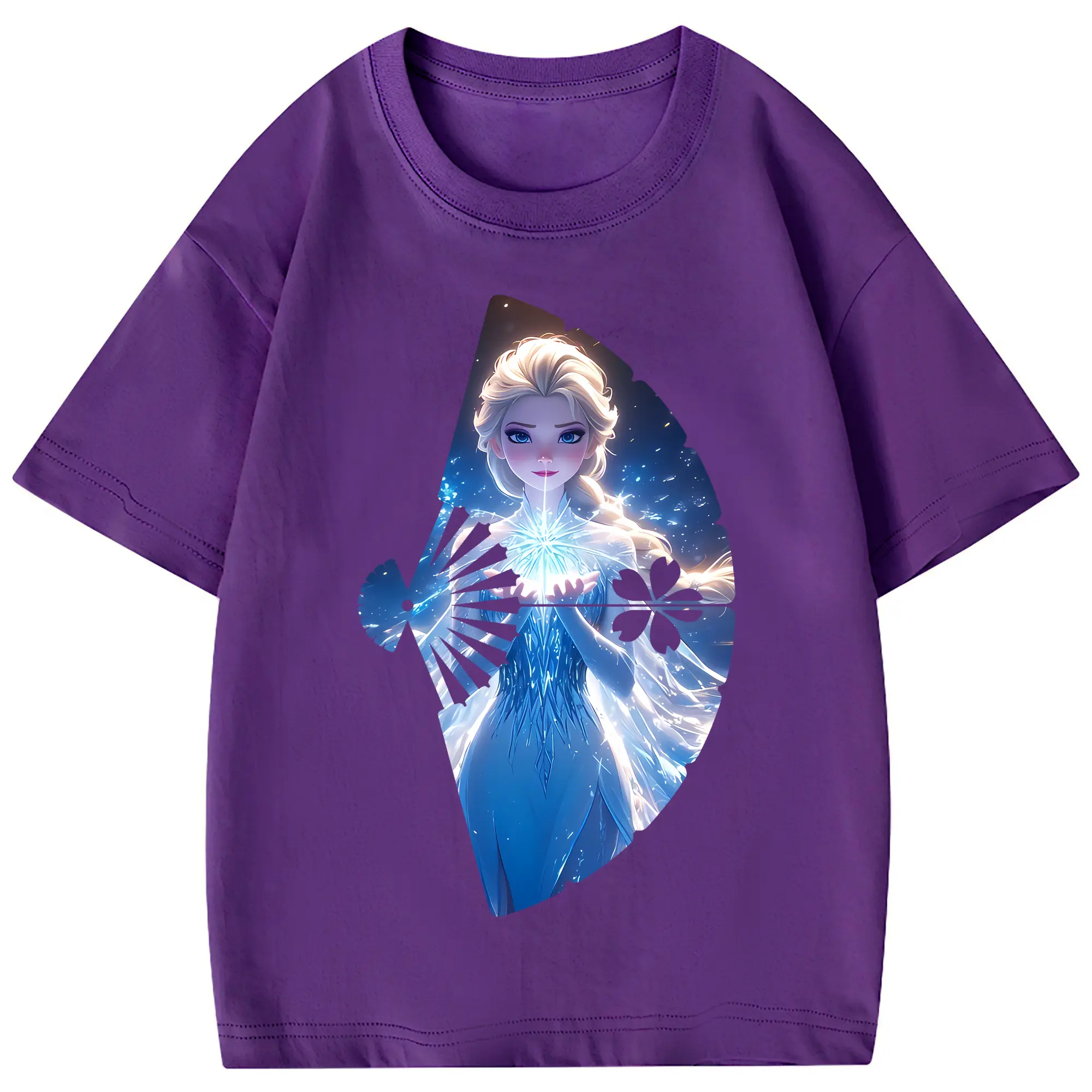 アナと雪の女王(Frozen) グッズ エルサ(Elsa) - 綿100% 半袖Tシャツ ・ フロントプリント ・ 快適 通気性 ・ 日常使い 散歩 スポーツ用