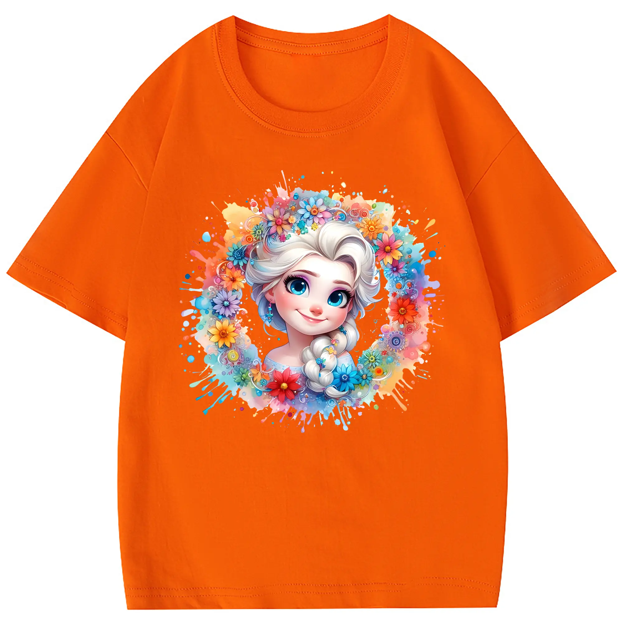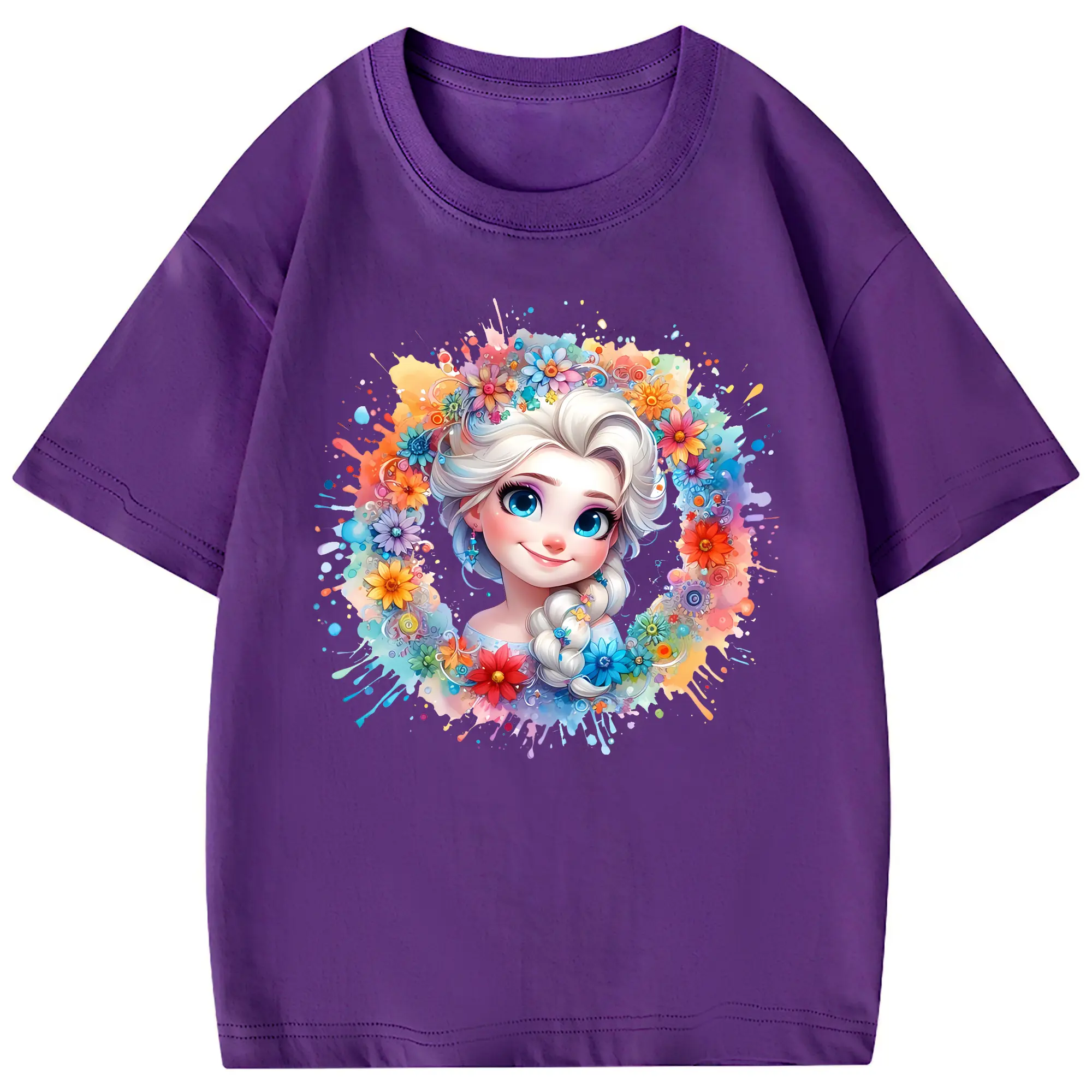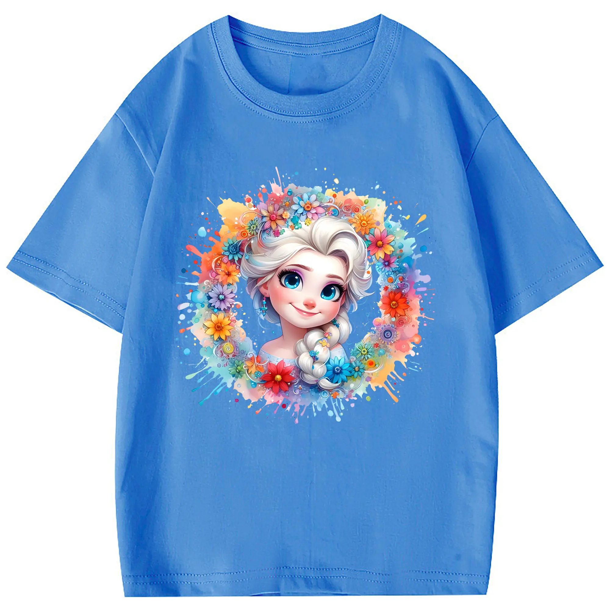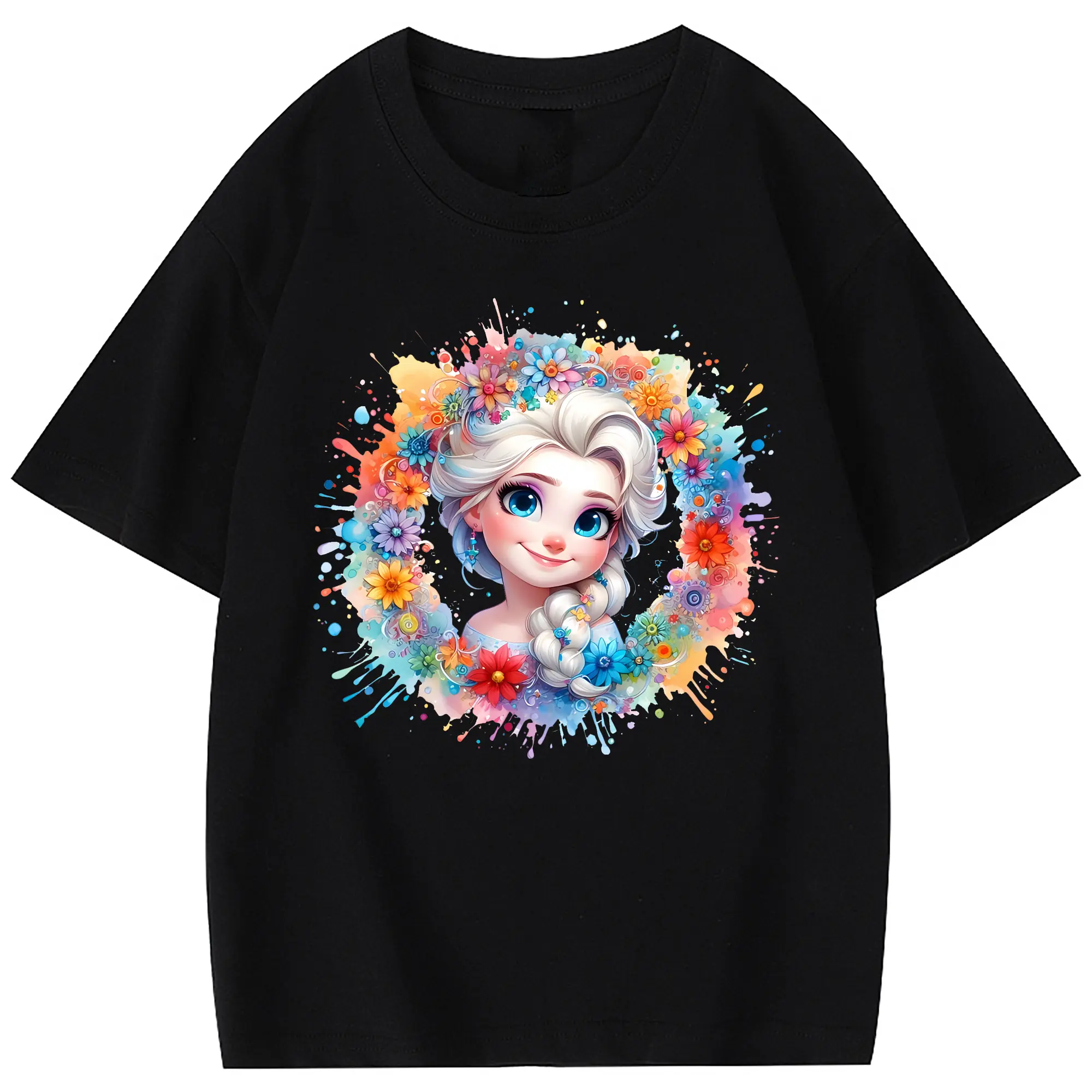 アナと雪の女王(Frozen) グッズ エルサ(Elsa) - 綿100% 半袖Tシャツ ・ フロントプリント ・ 快適 通気性 ・ 日常使い 散歩 スポーツ用