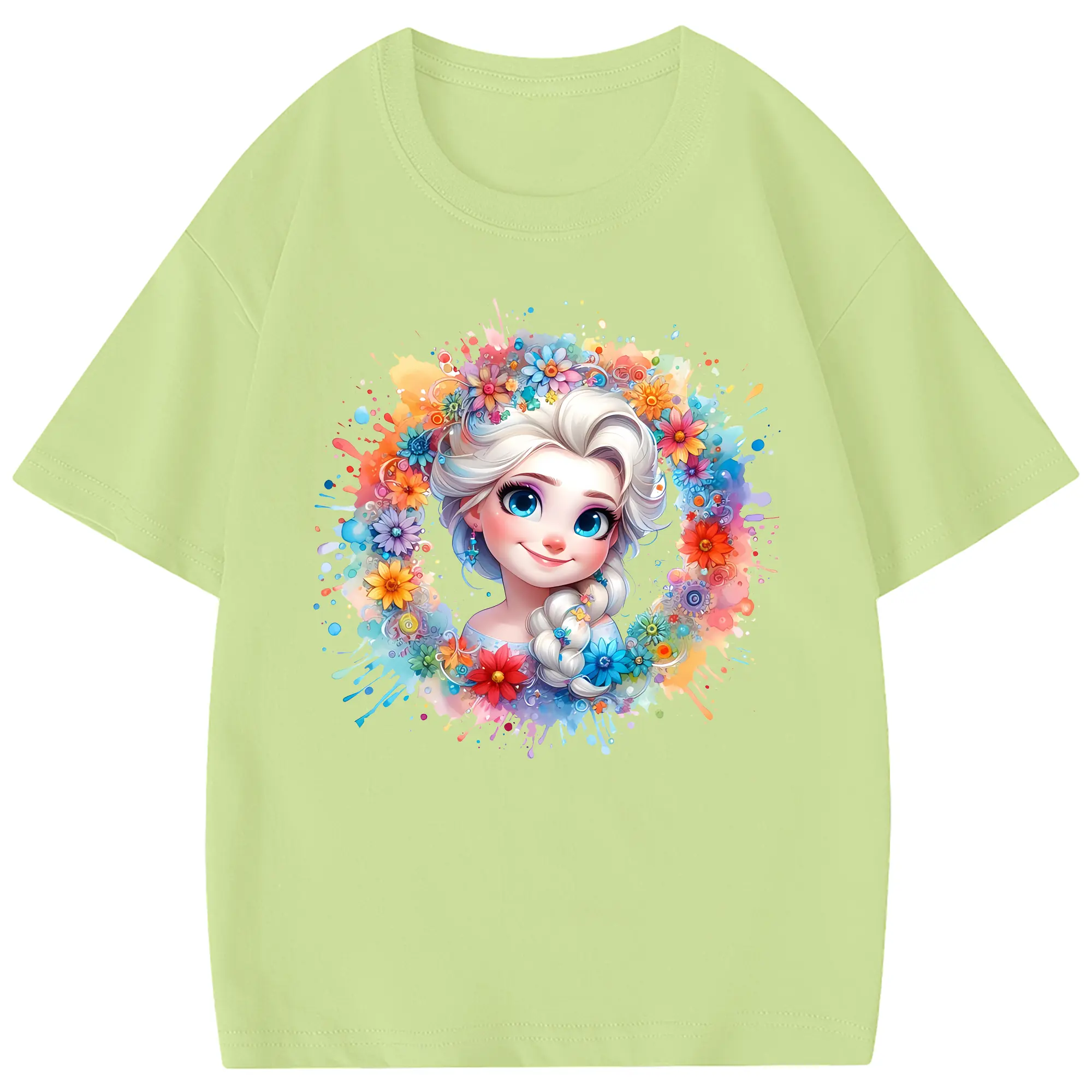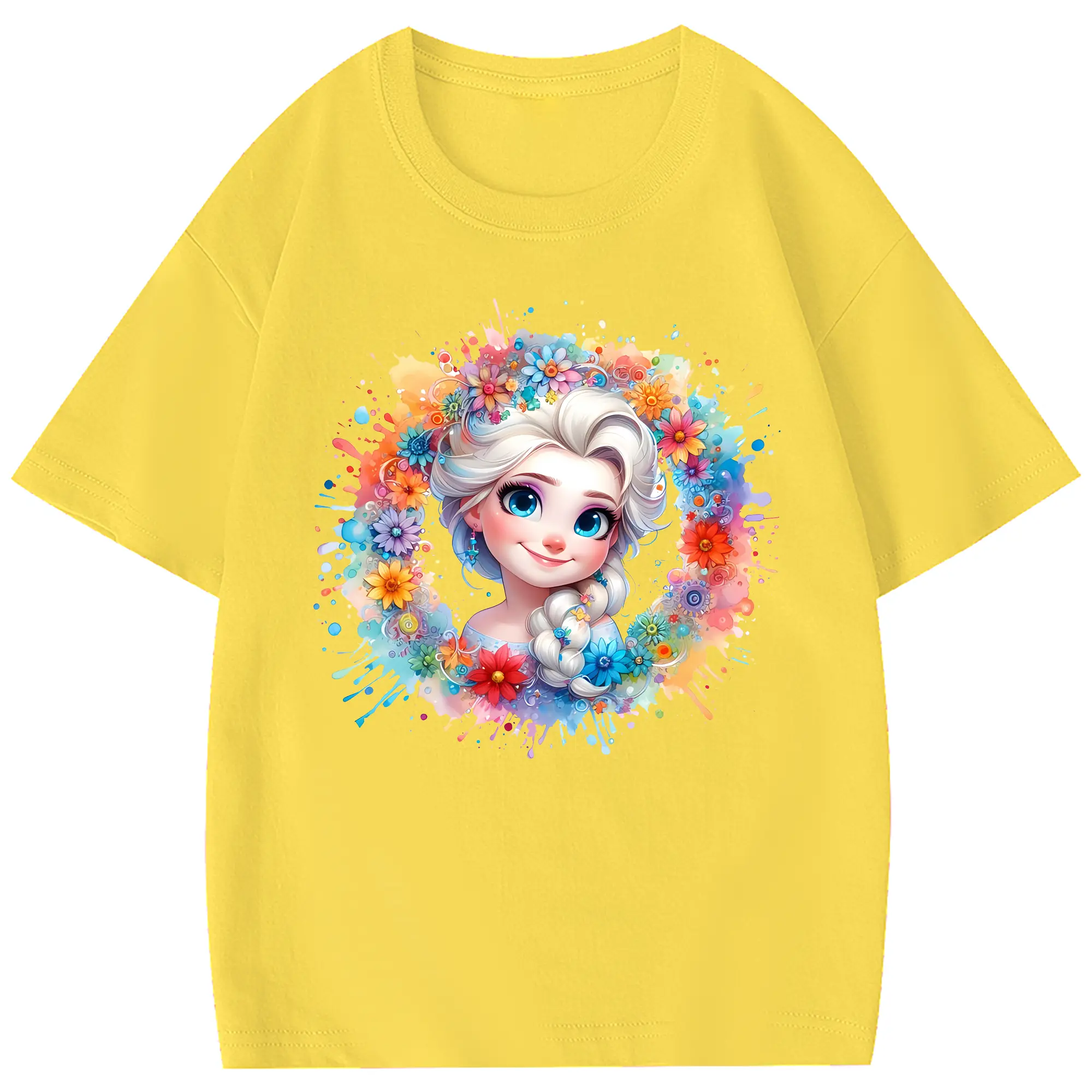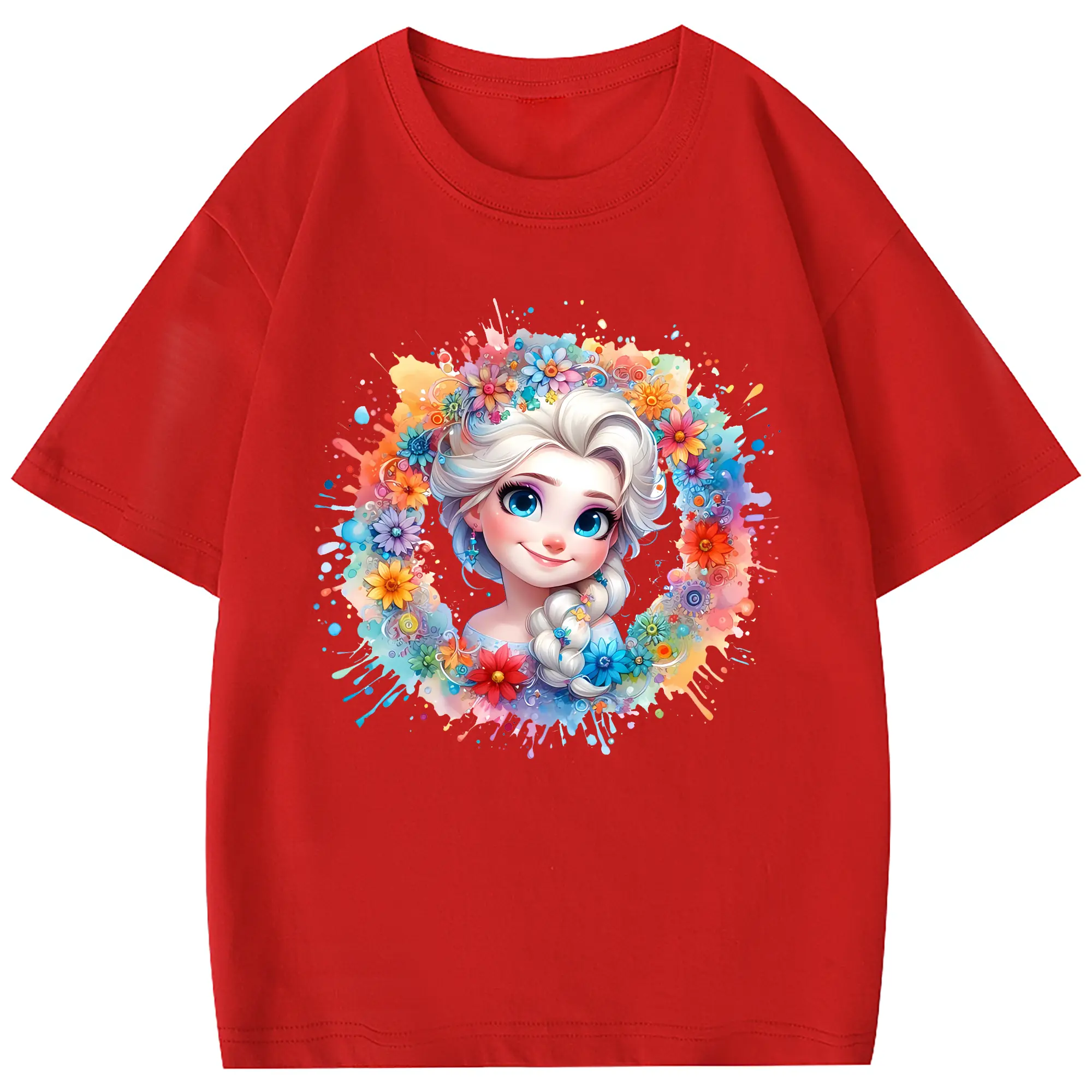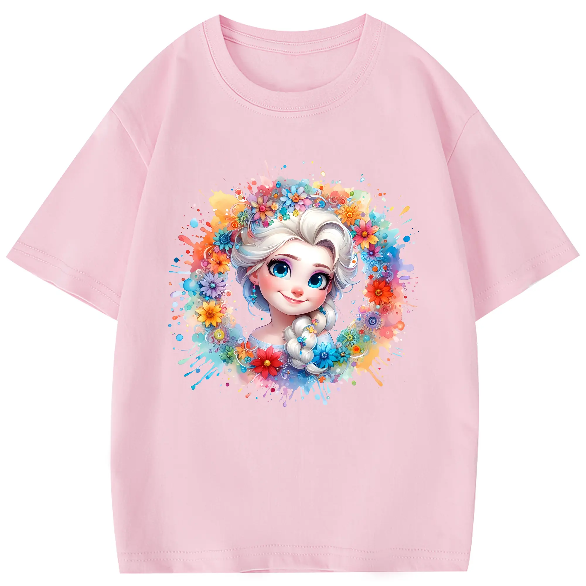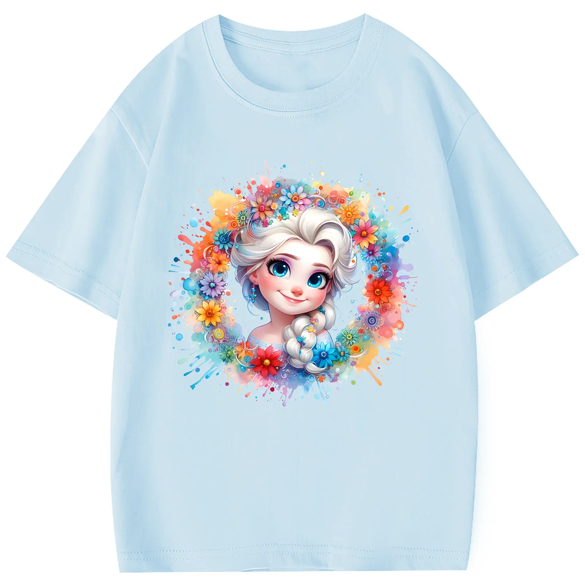 アナと雪の女王(Frozen) グッズ エルサ(Elsa) - 綿100% 半袖Tシャツ ・ フロントプリント ・ 快適 通気性 ・ 日常使い 散歩 スポーツ用