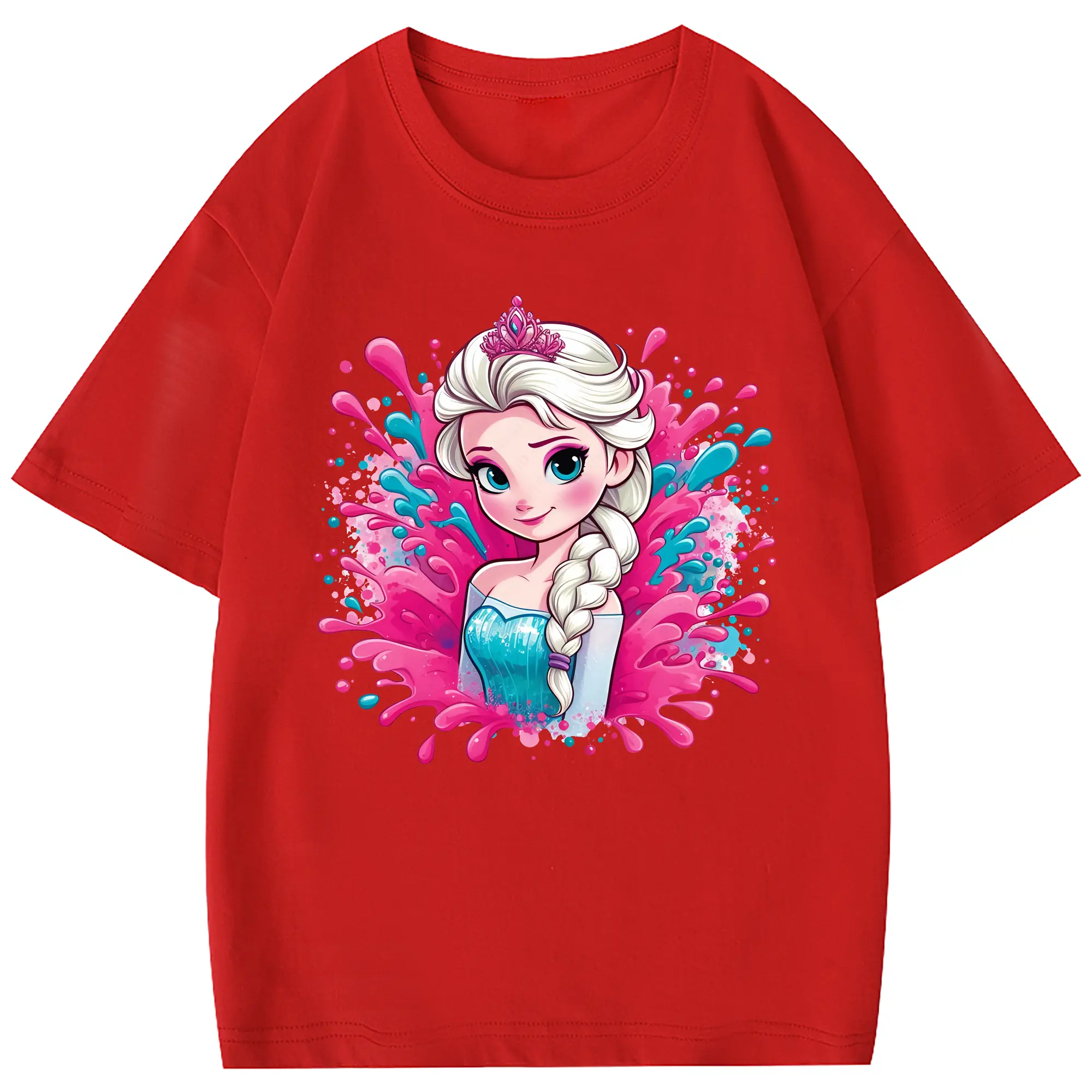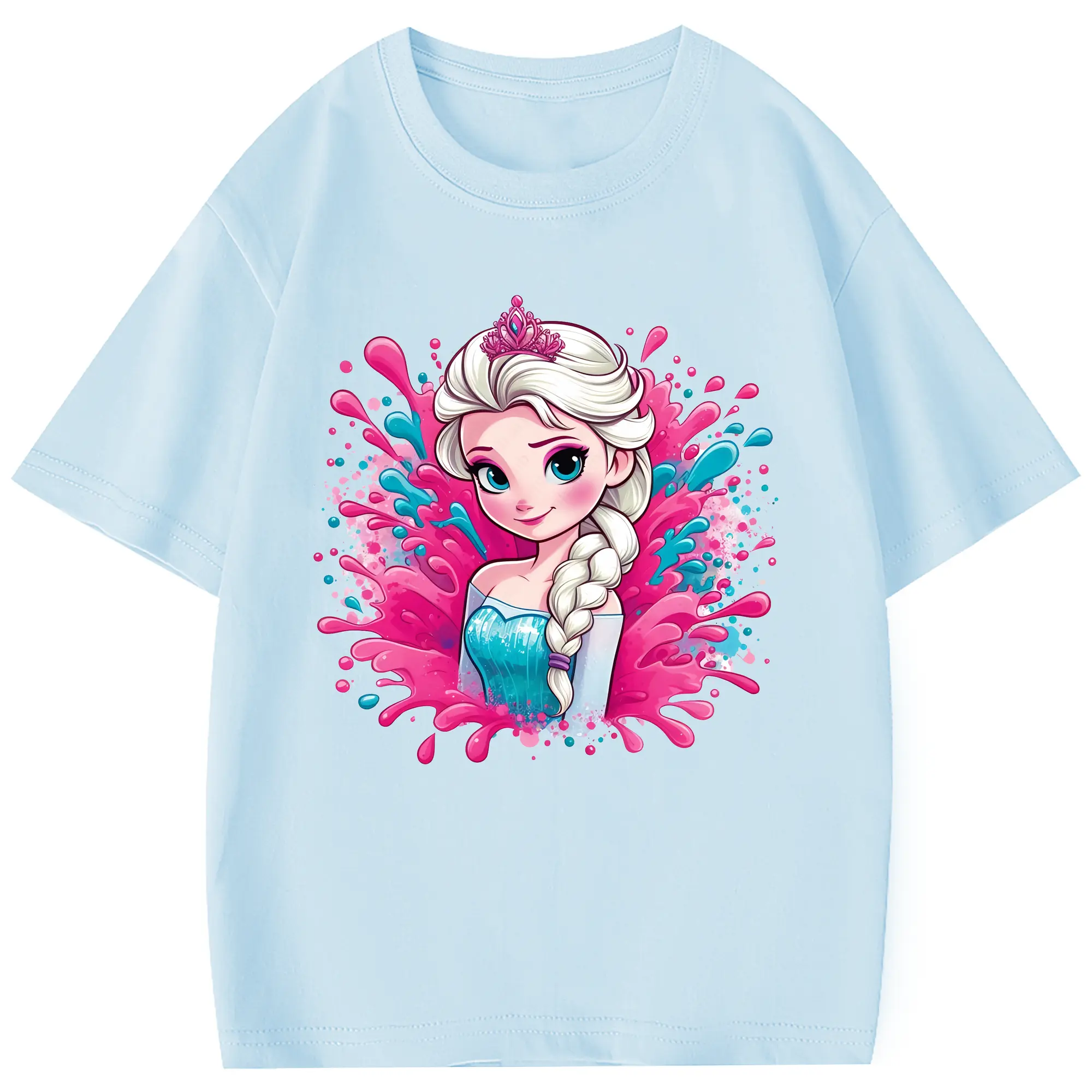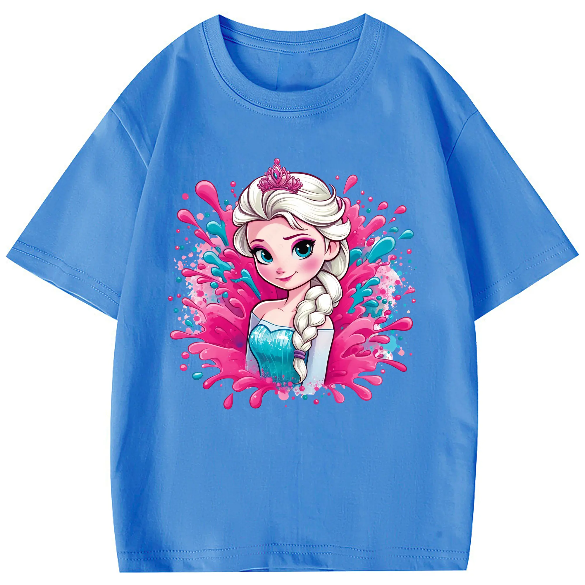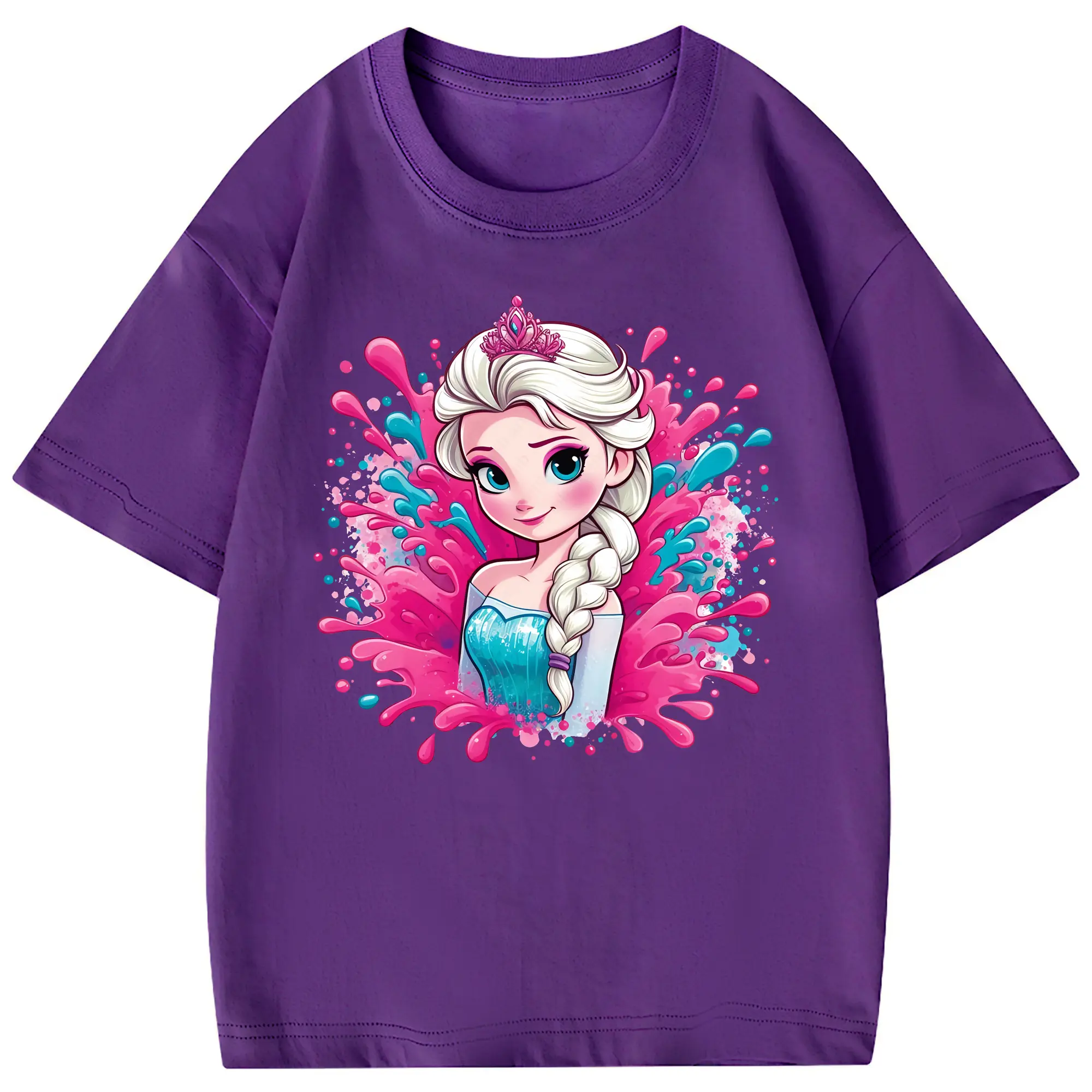 アナと雪の女王(Frozen) グッズ エルサ(Elsa) - 綿100% 半袖Tシャツ ・ フロントプリント ・ 快適 通気性 ・ 日常使い 散歩 スポーツ用