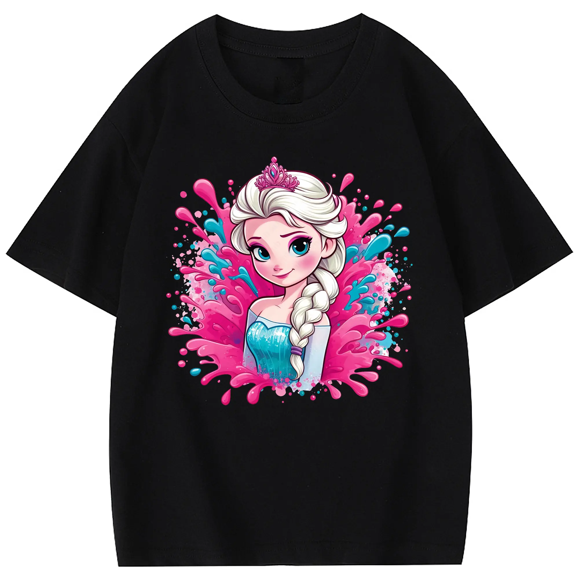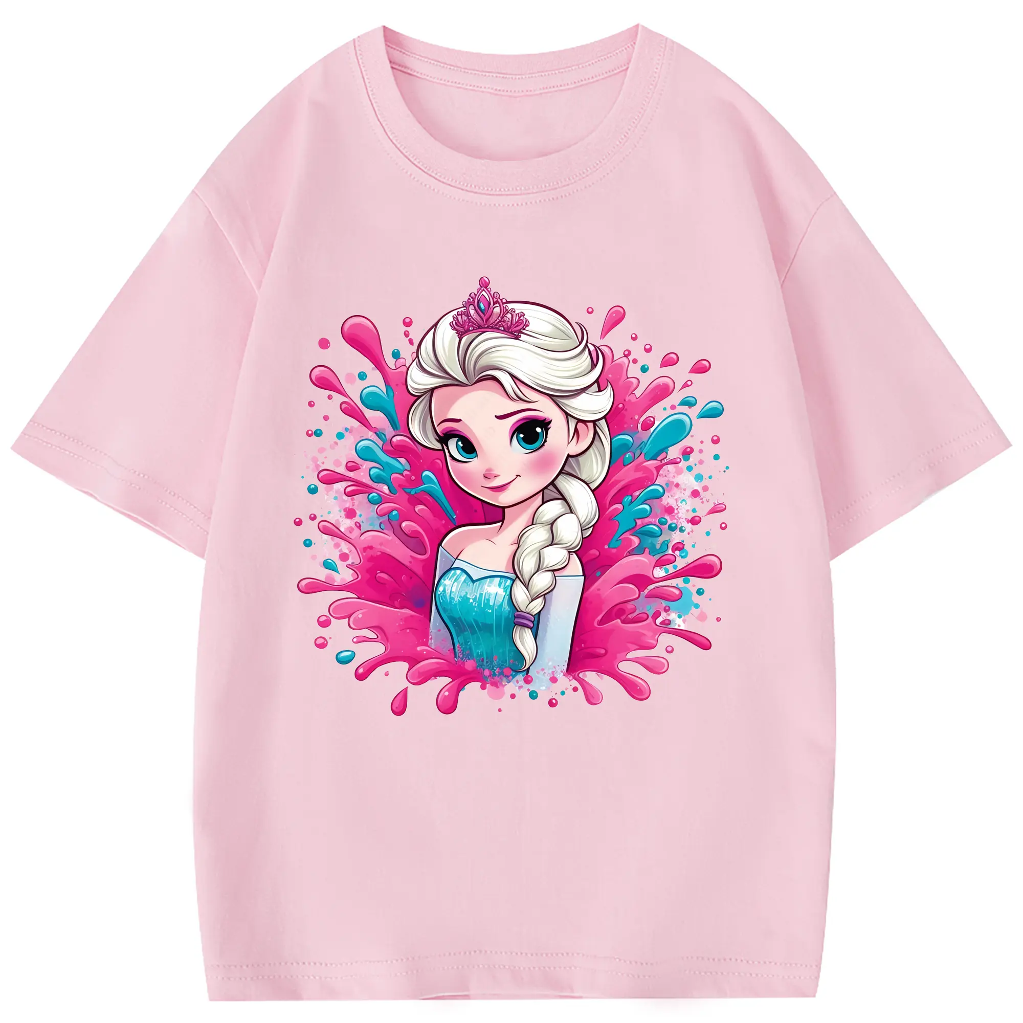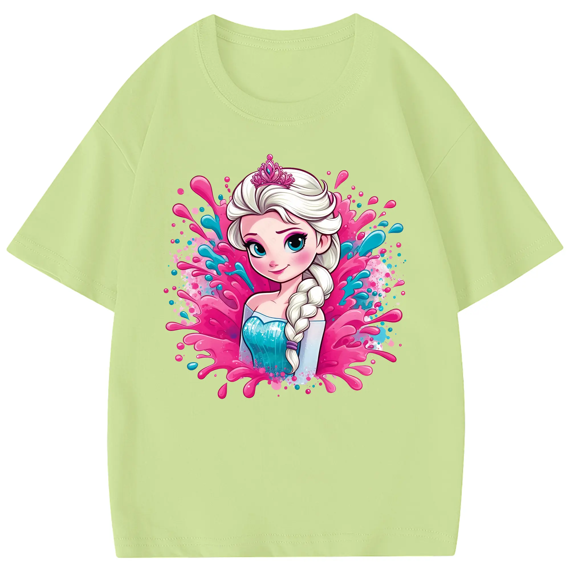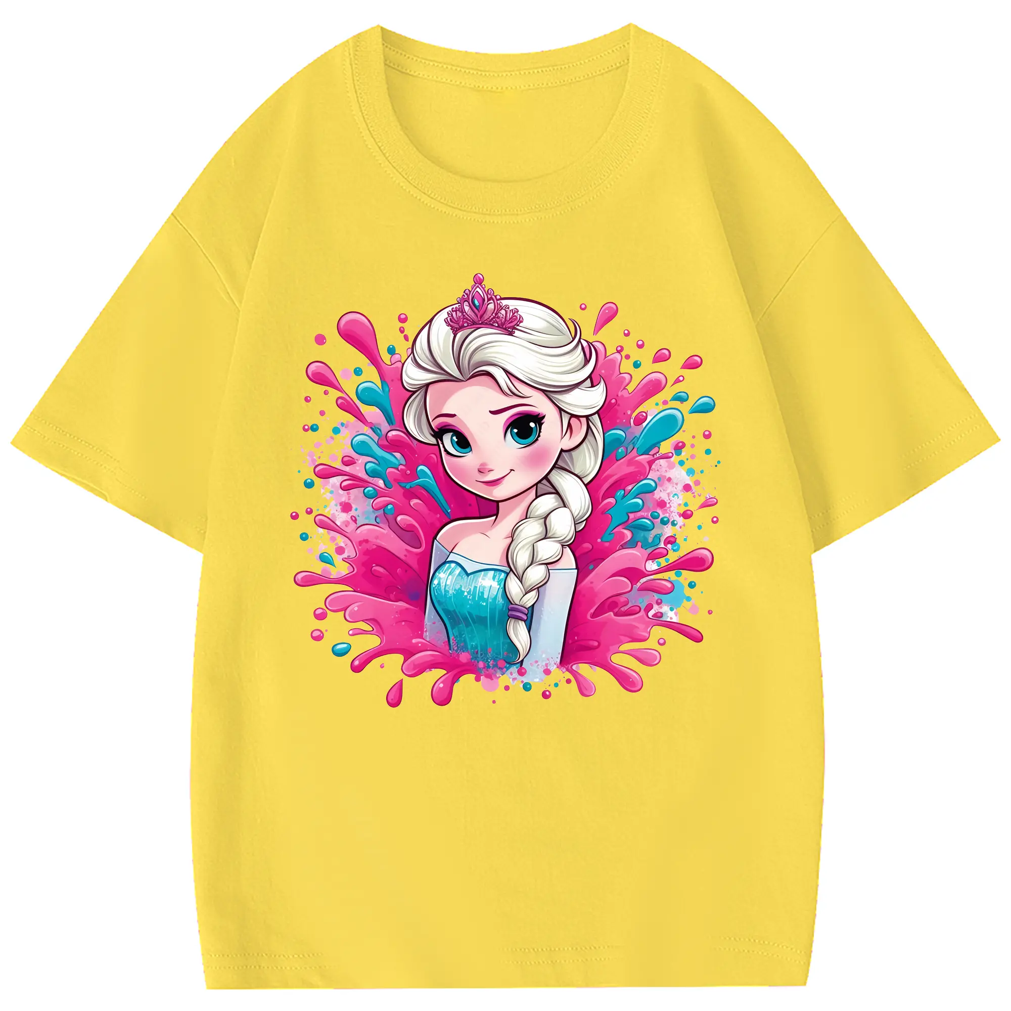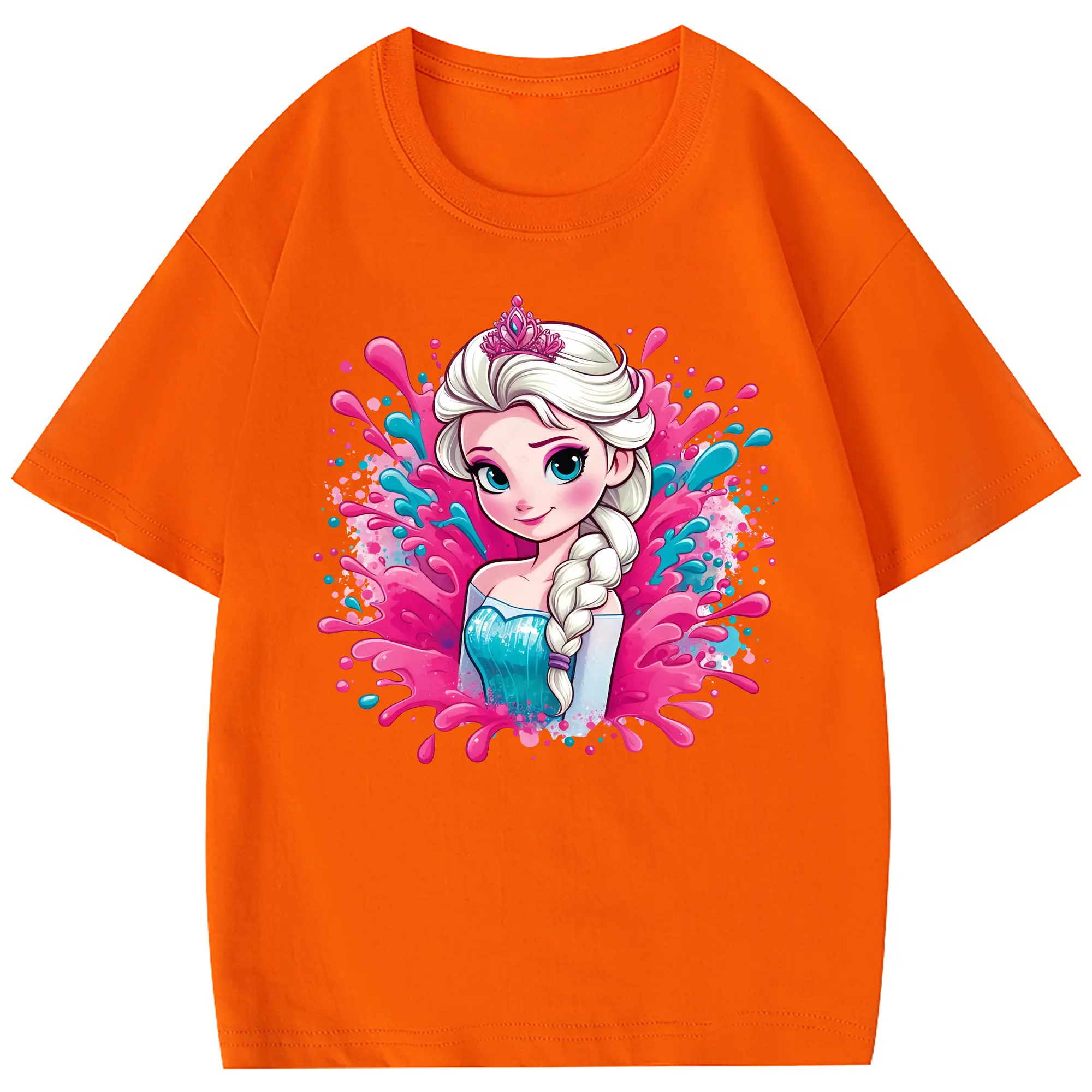 アナと雪の女王(Frozen) グッズ エルサ(Elsa) - 綿100% 半袖Tシャツ ・ フロントプリント ・ 快適 通気性 ・ 日常使い 散歩 スポーツ用