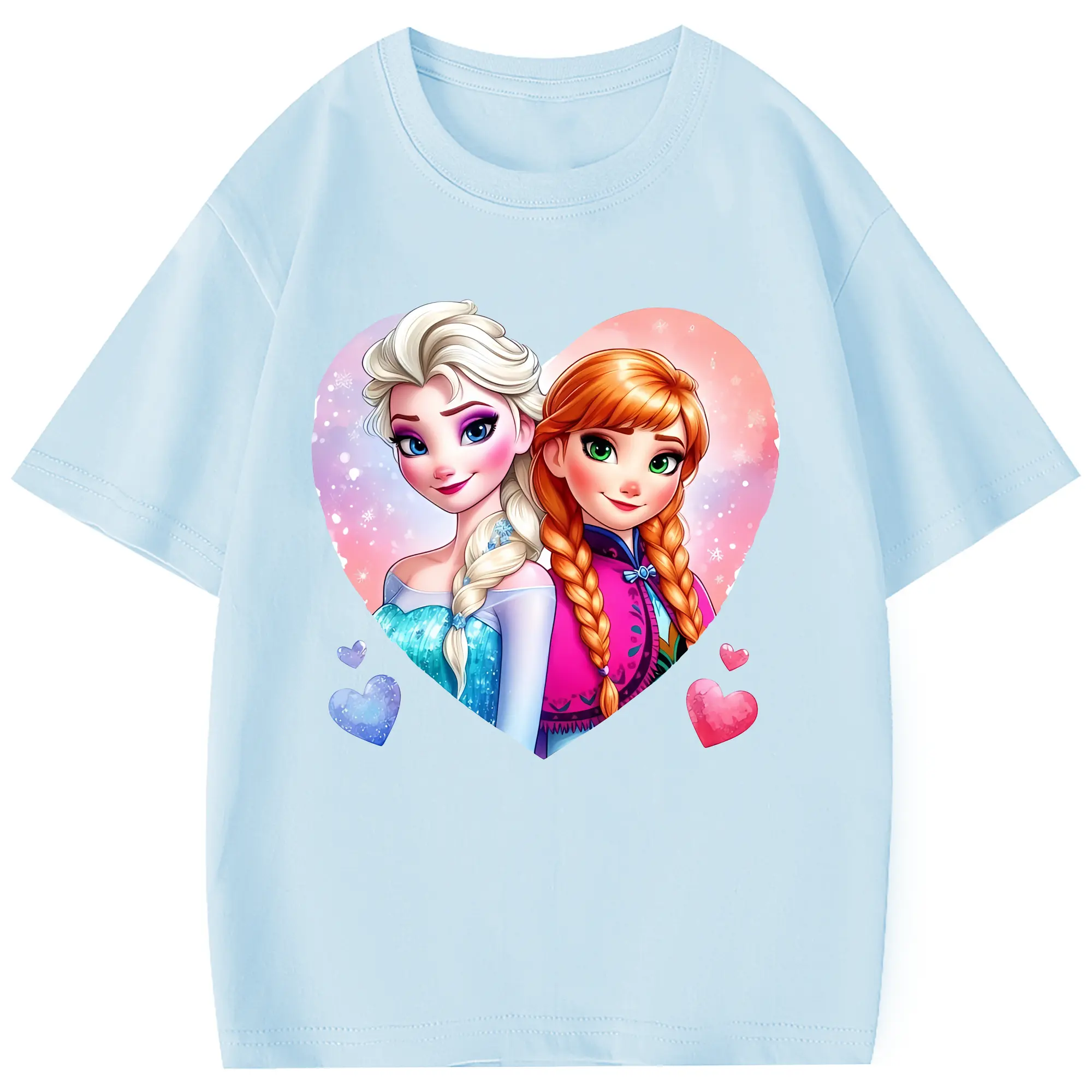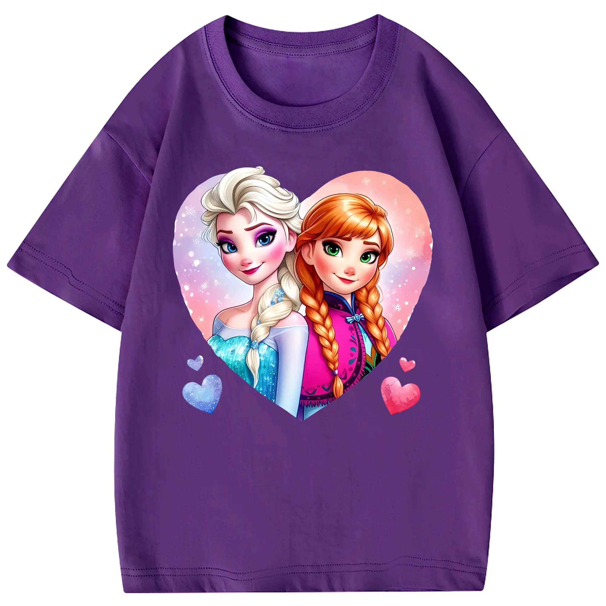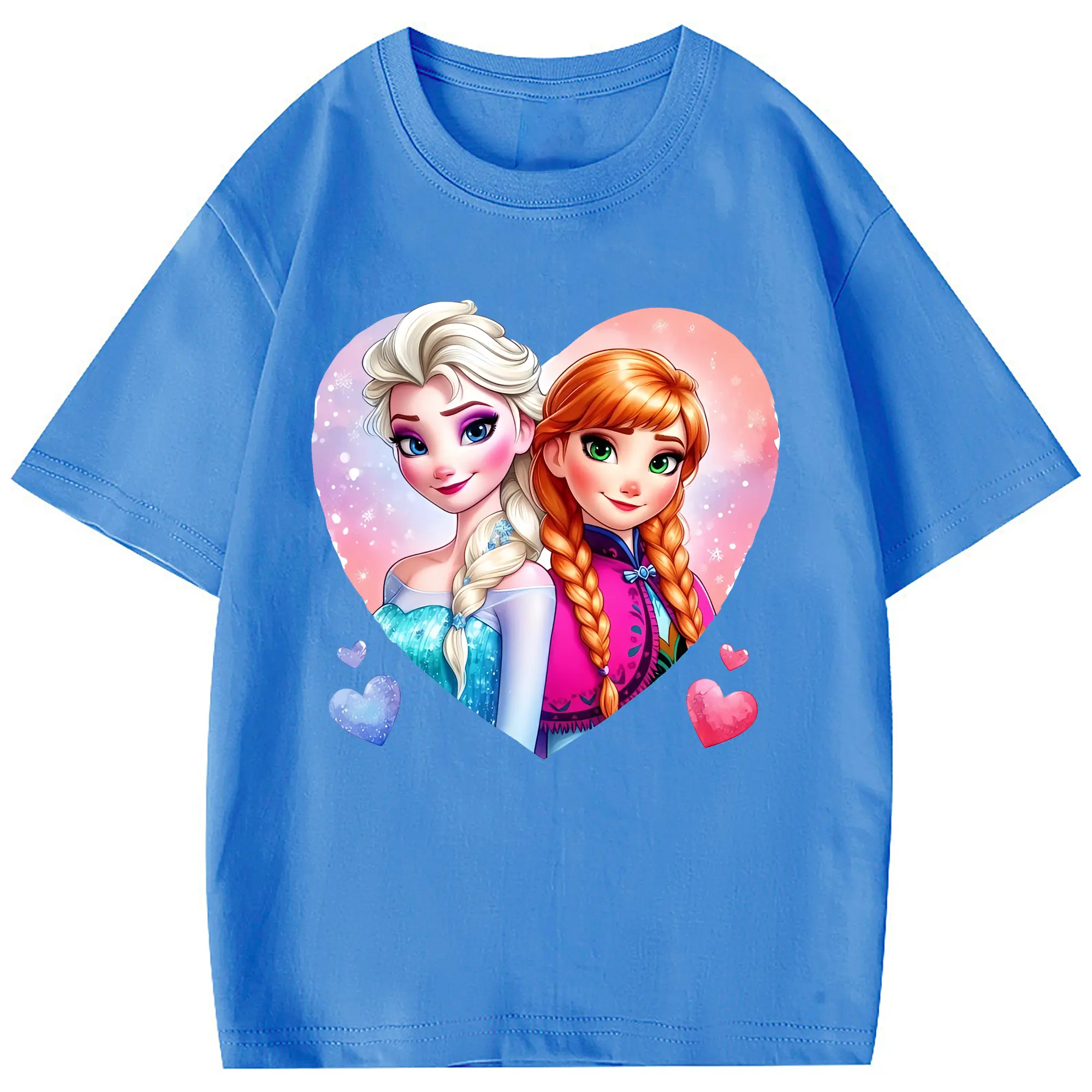 アナと雪の女王(Frozen) グッズ エルサ(Elsa) - 綿100% 半袖Tシャツ ・ フロントプリント ・ 快適 通気性 ・ 日常使い 散歩 スポーツ用