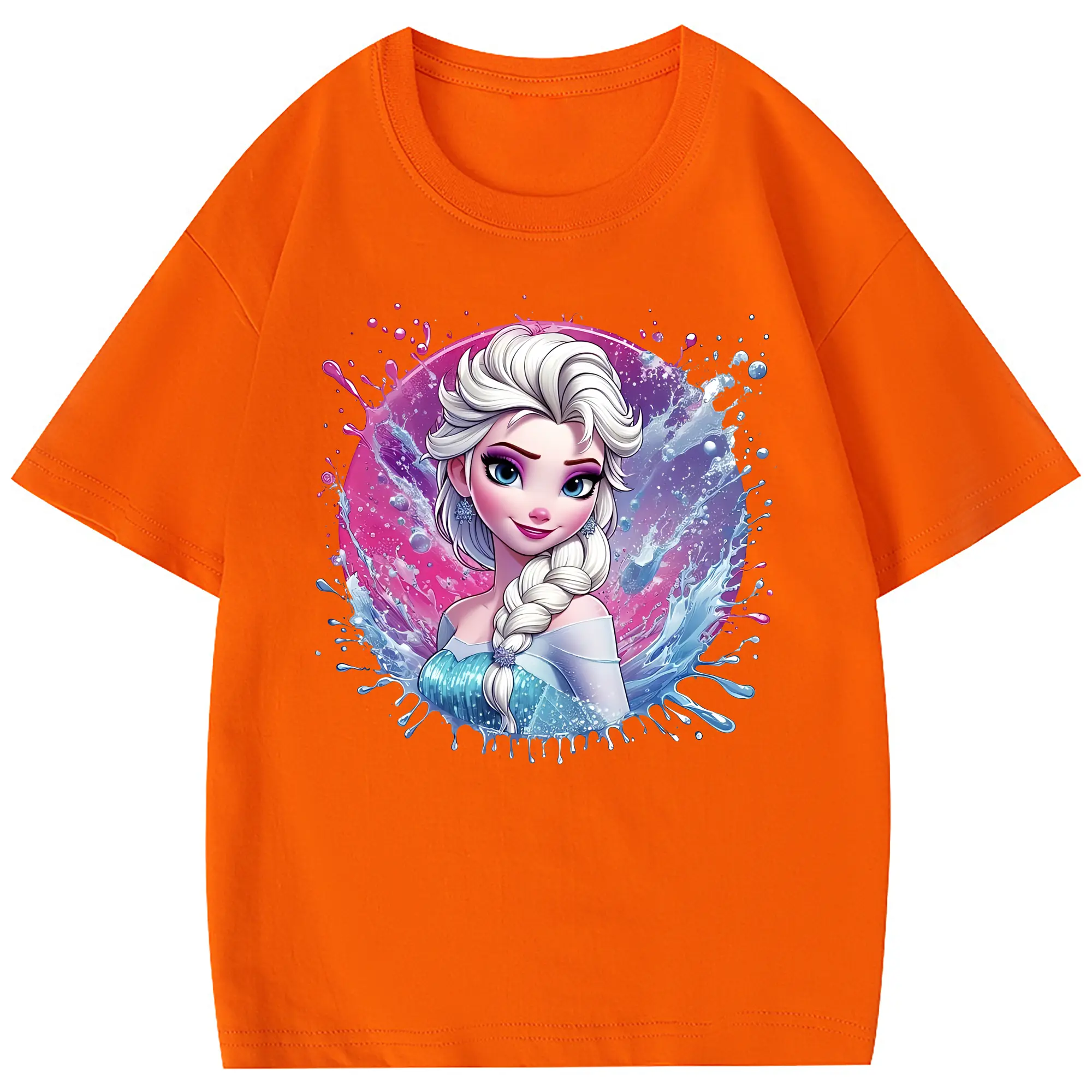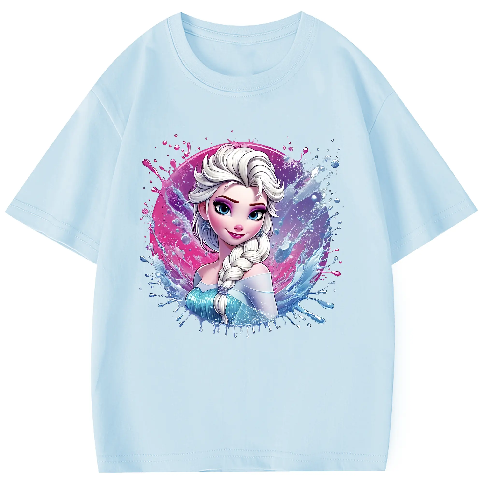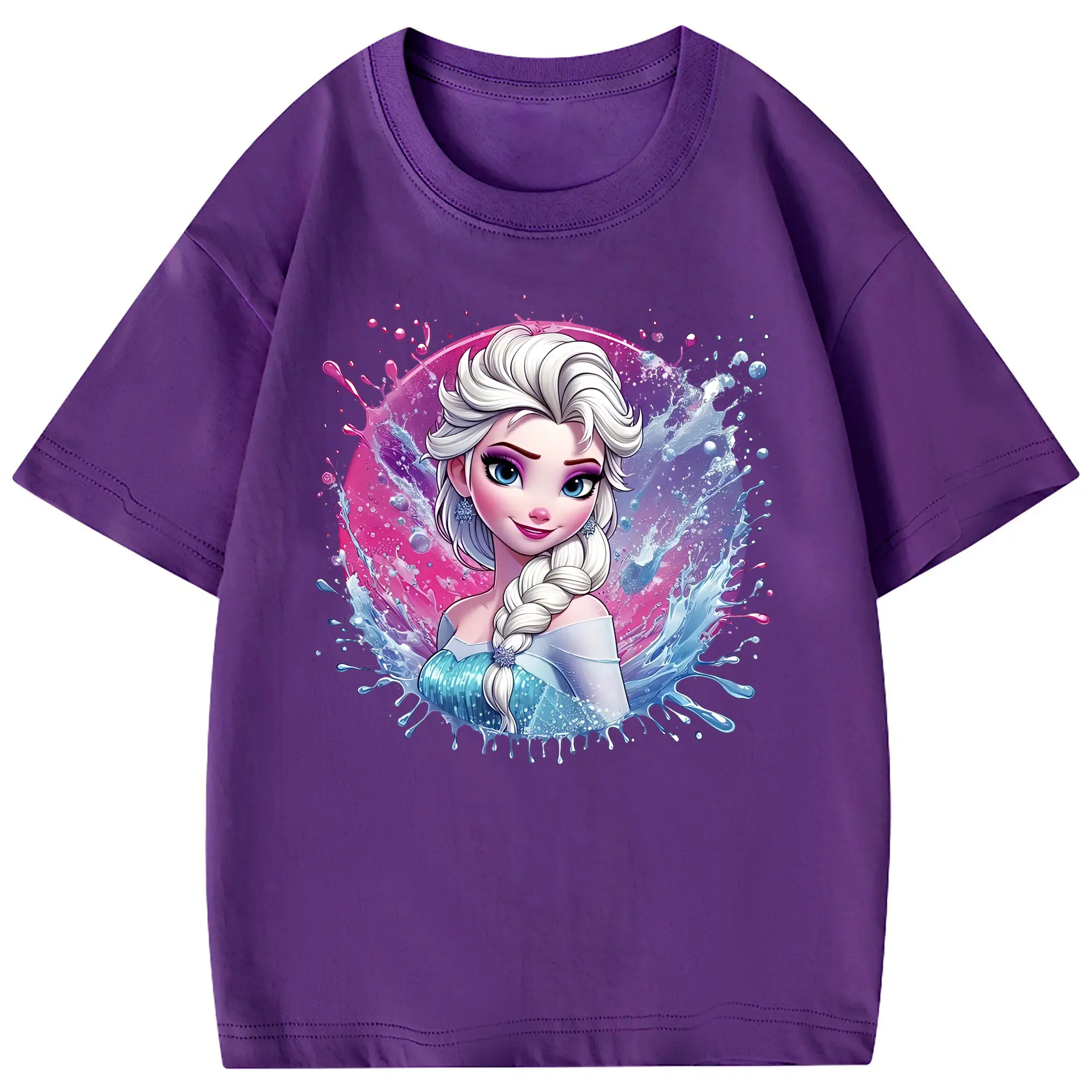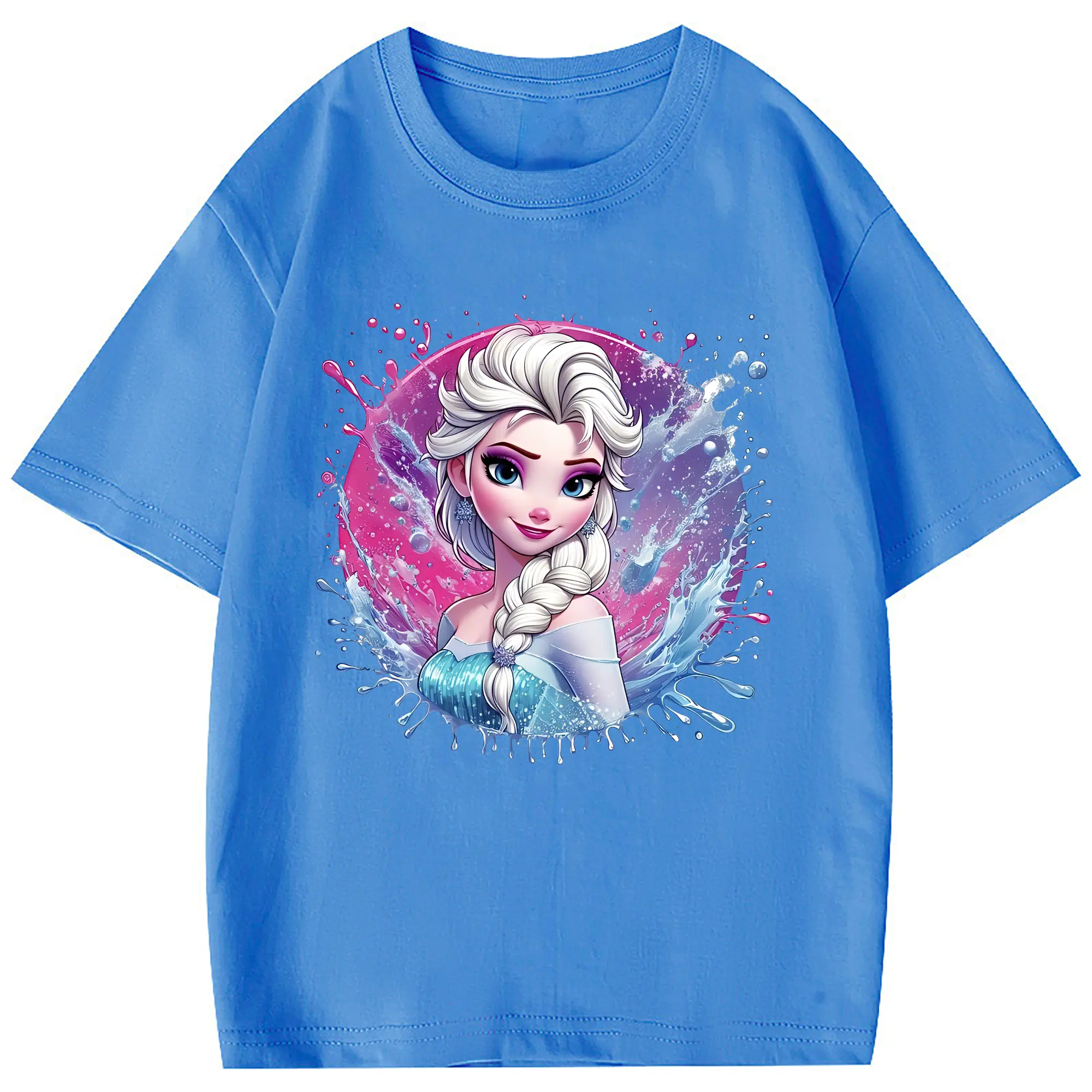 アナと雪の女王(Frozen) グッズ エルサ(Elsa) - 綿100% 半袖Tシャツ ・ フロントプリント ・ 快適 通気性 ・ 日常使い 散歩 スポーツ用