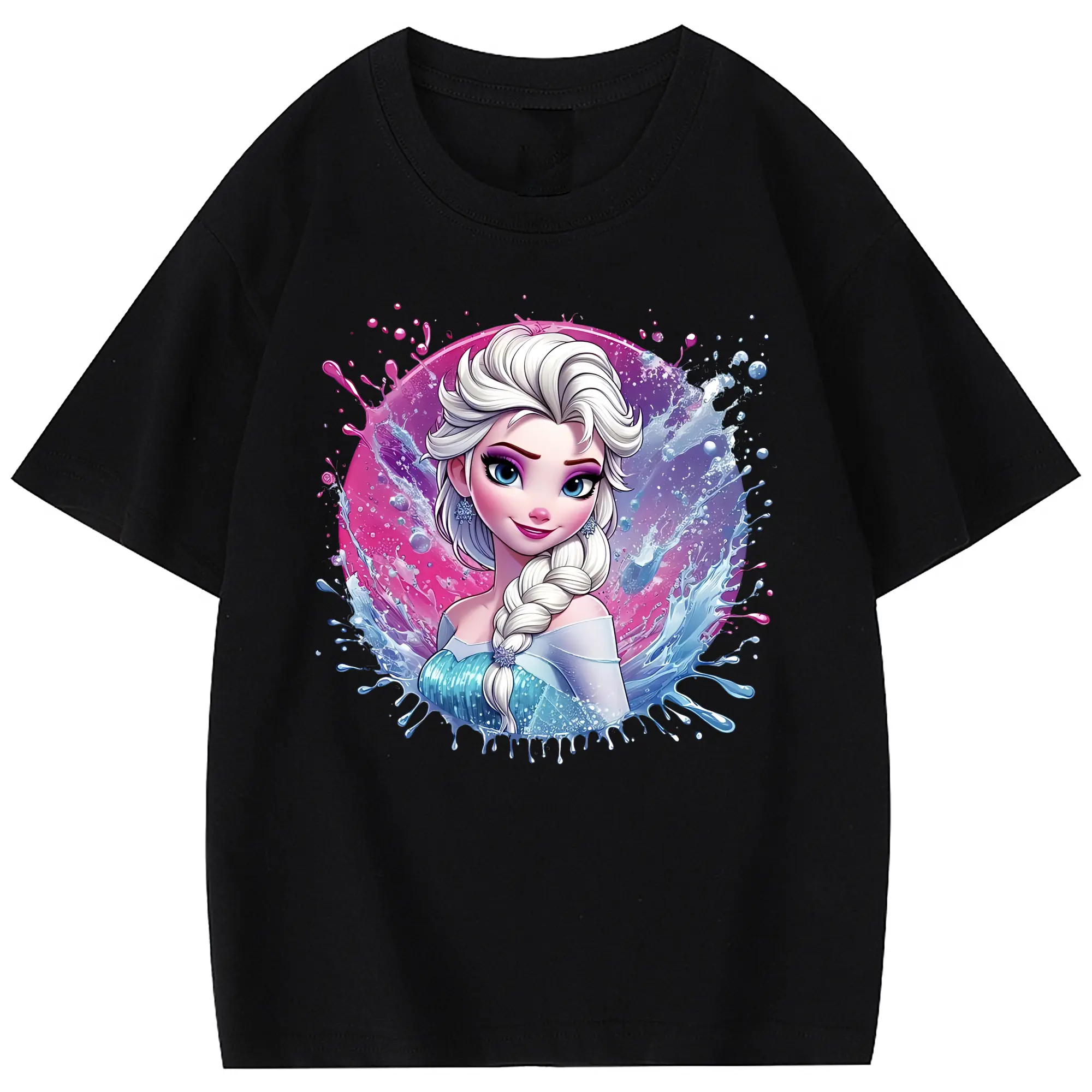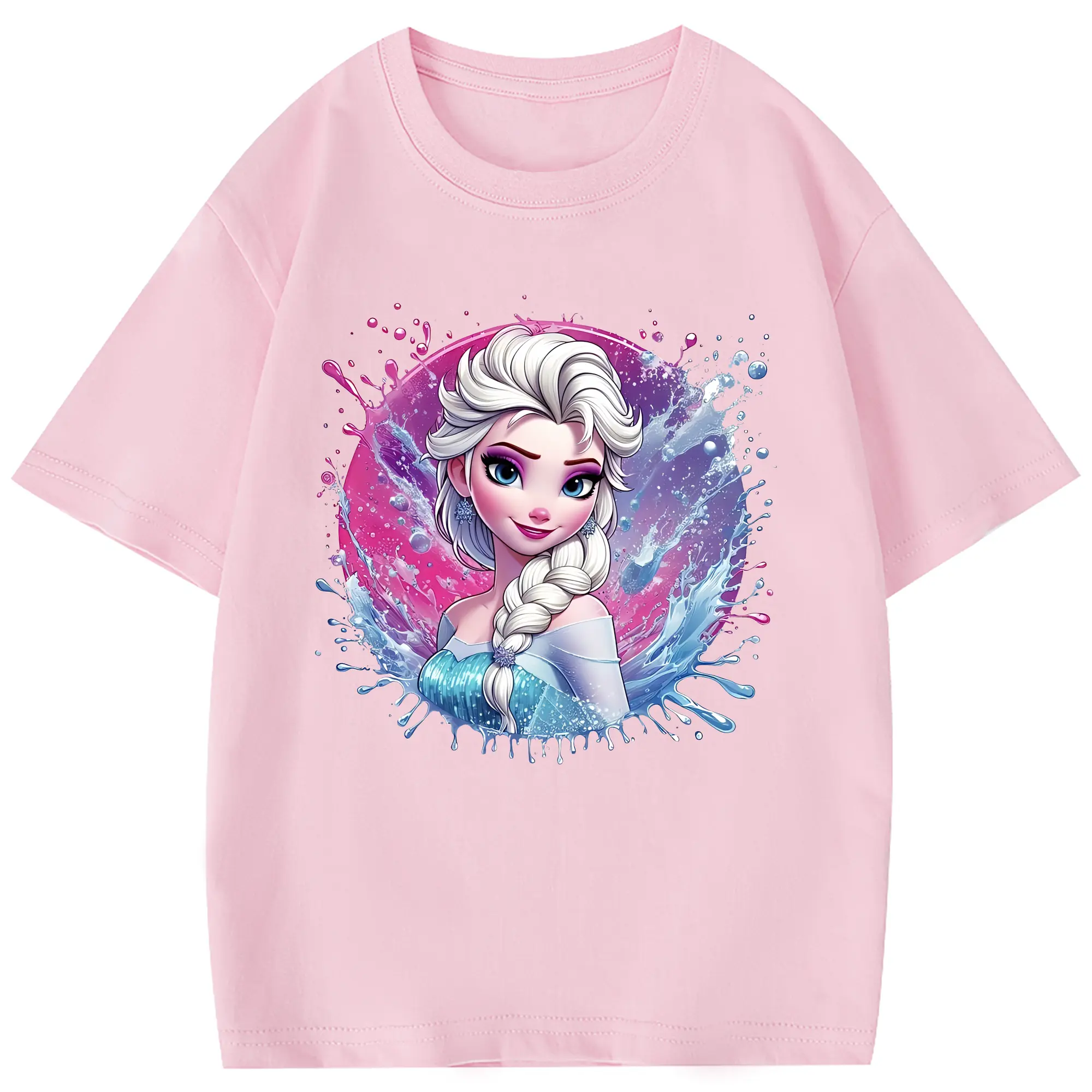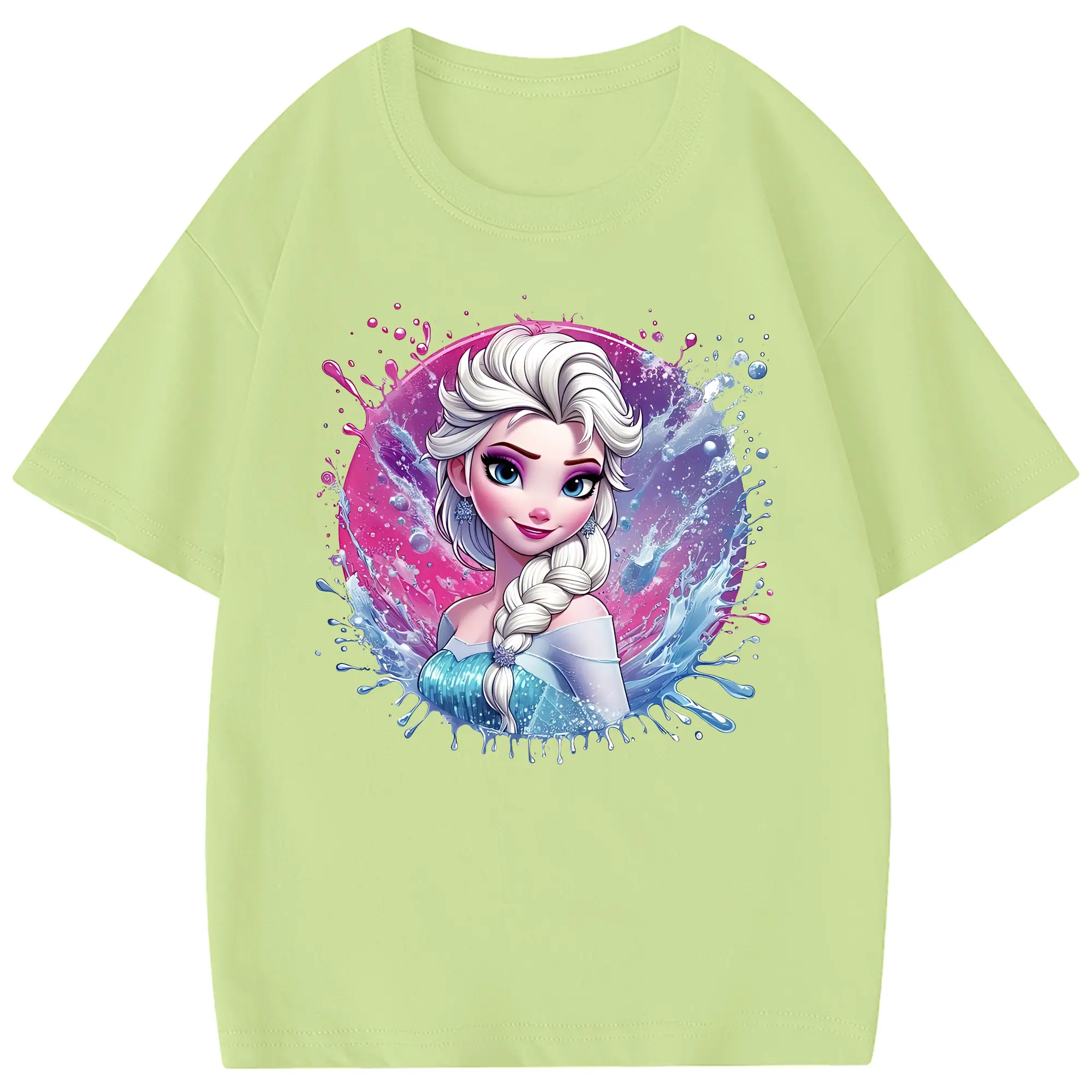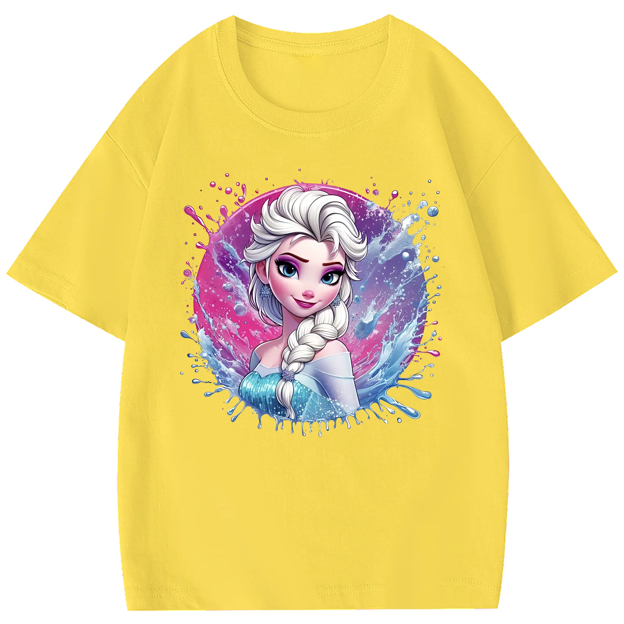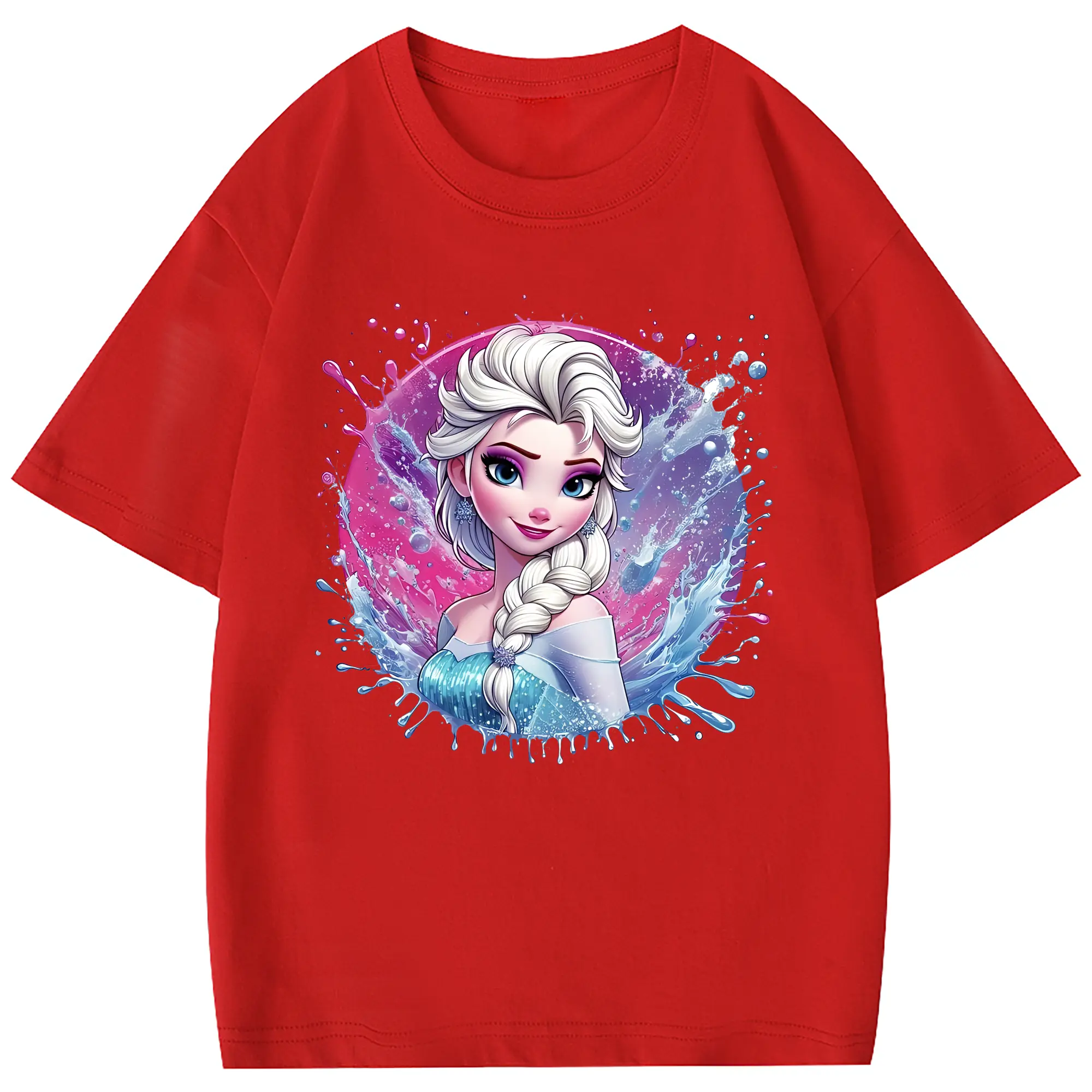 アナと雪の女王(Frozen) グッズ エルサ(Elsa) - 綿100% 半袖Tシャツ ・ フロントプリント ・ 快適 通気性 ・ 日常使い 散歩 スポーツ用