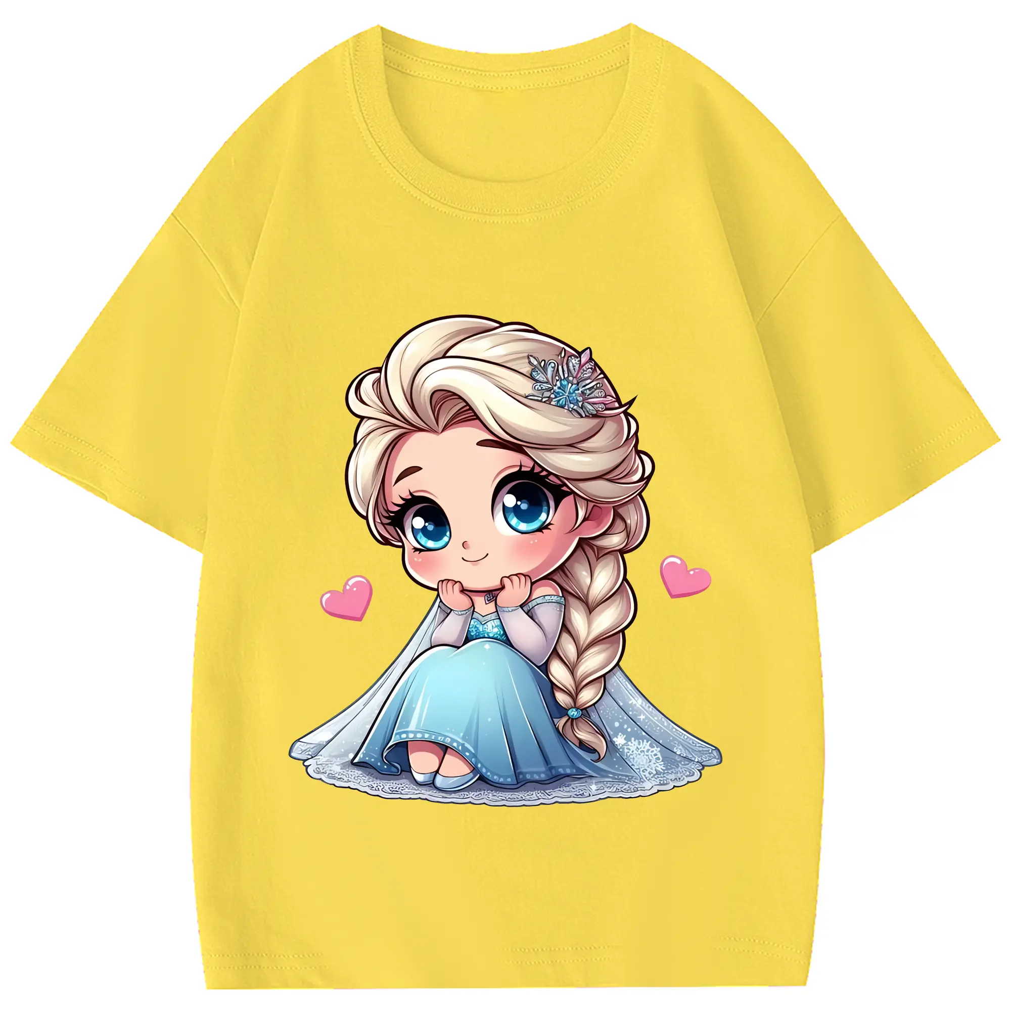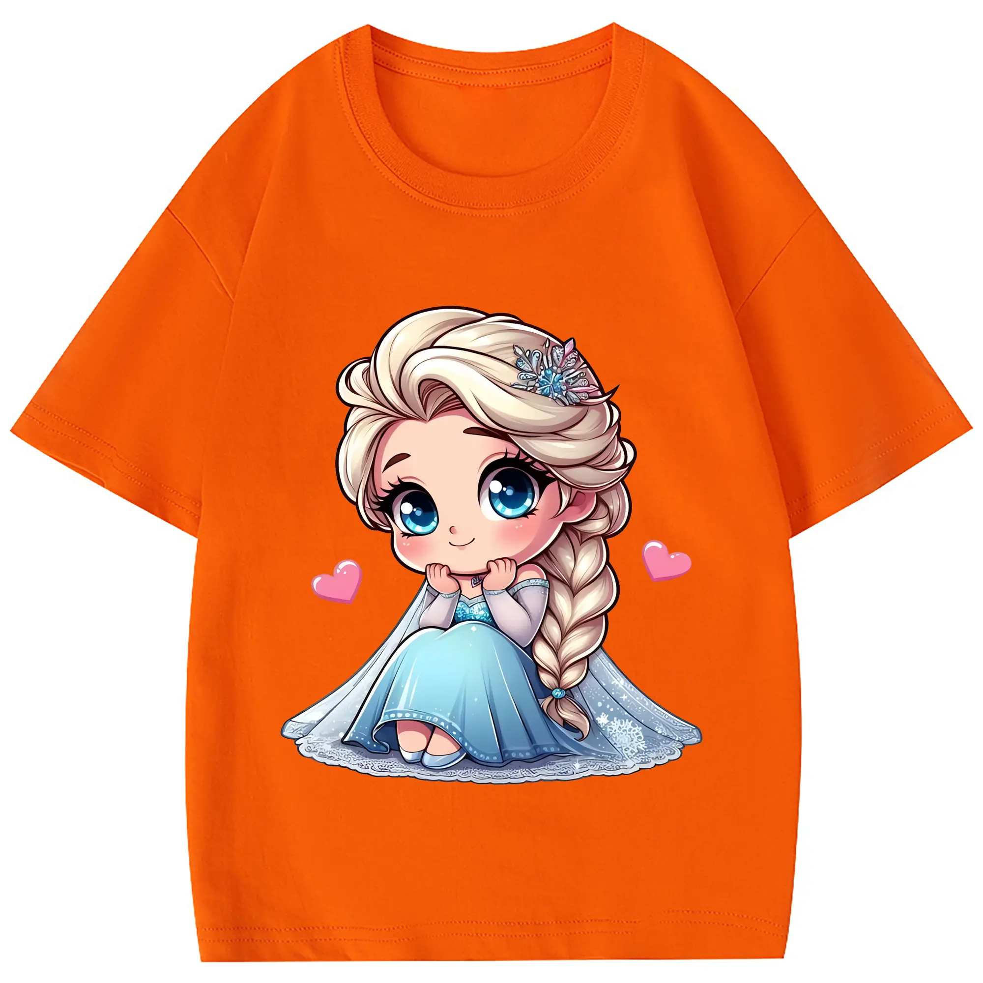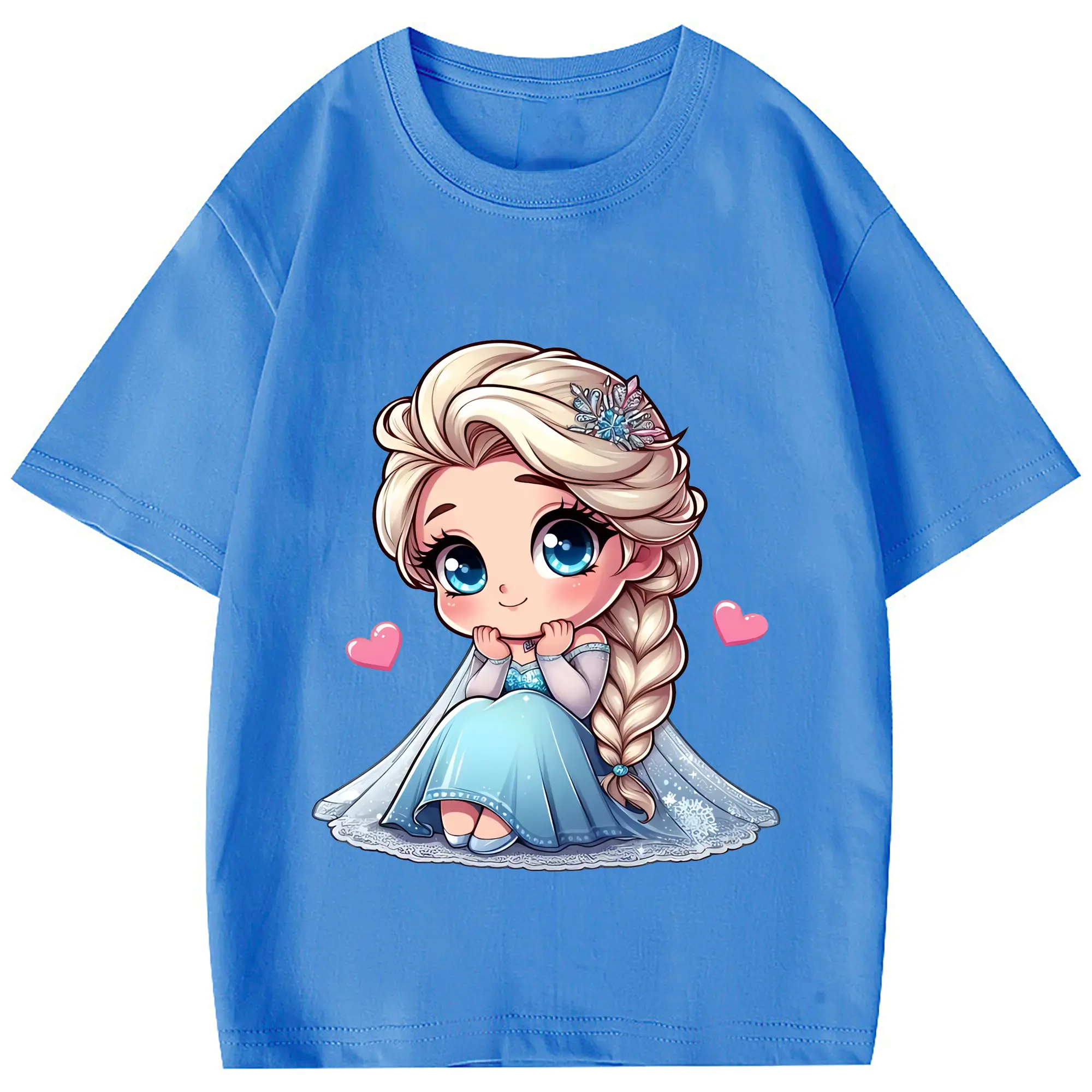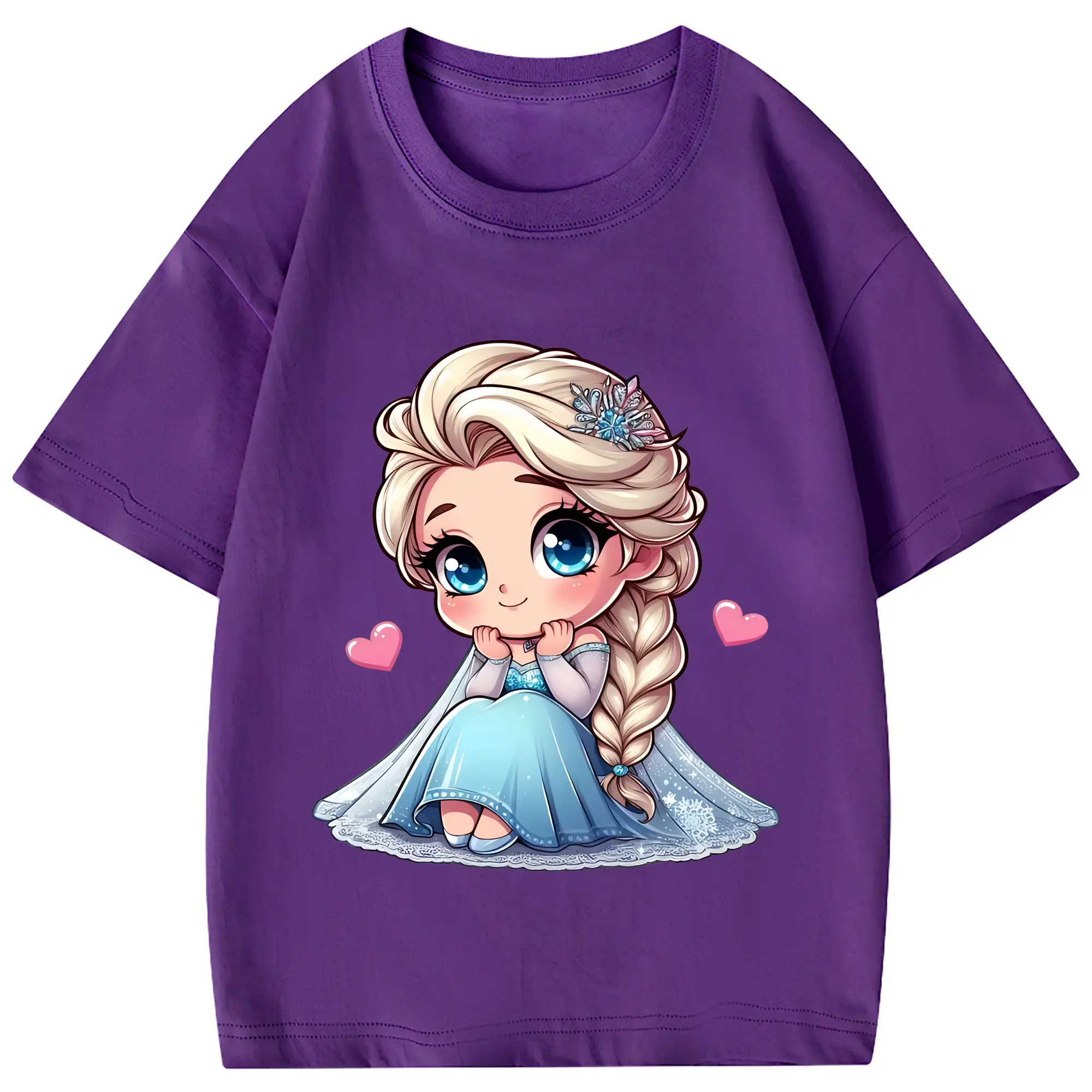 アナと雪の女王(Frozen) グッズ エルサ(Elsa) - 綿100% 半袖Tシャツ ・ フロントプリント ・ 快適 通気性 ・ 日常使い 散歩 スポーツ用