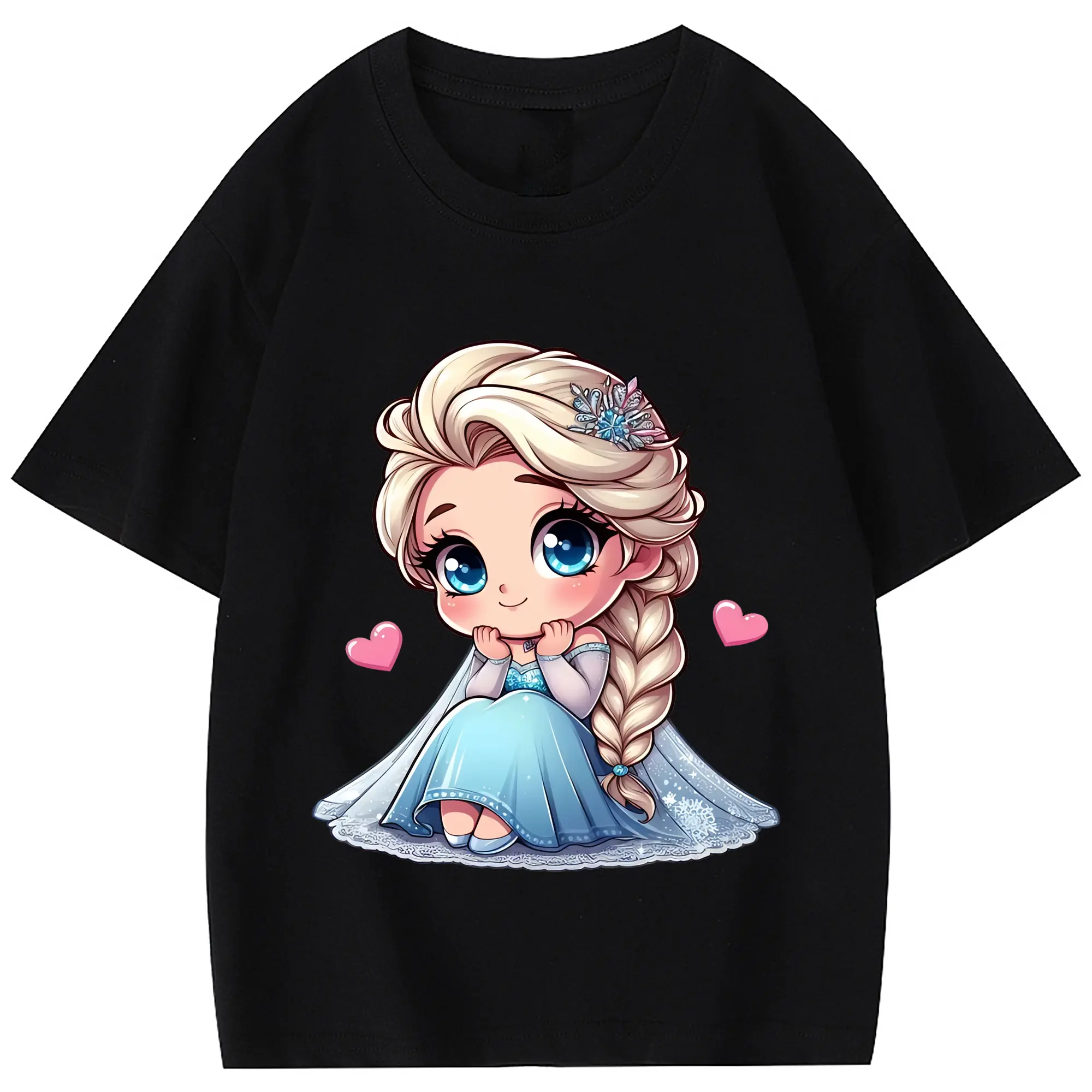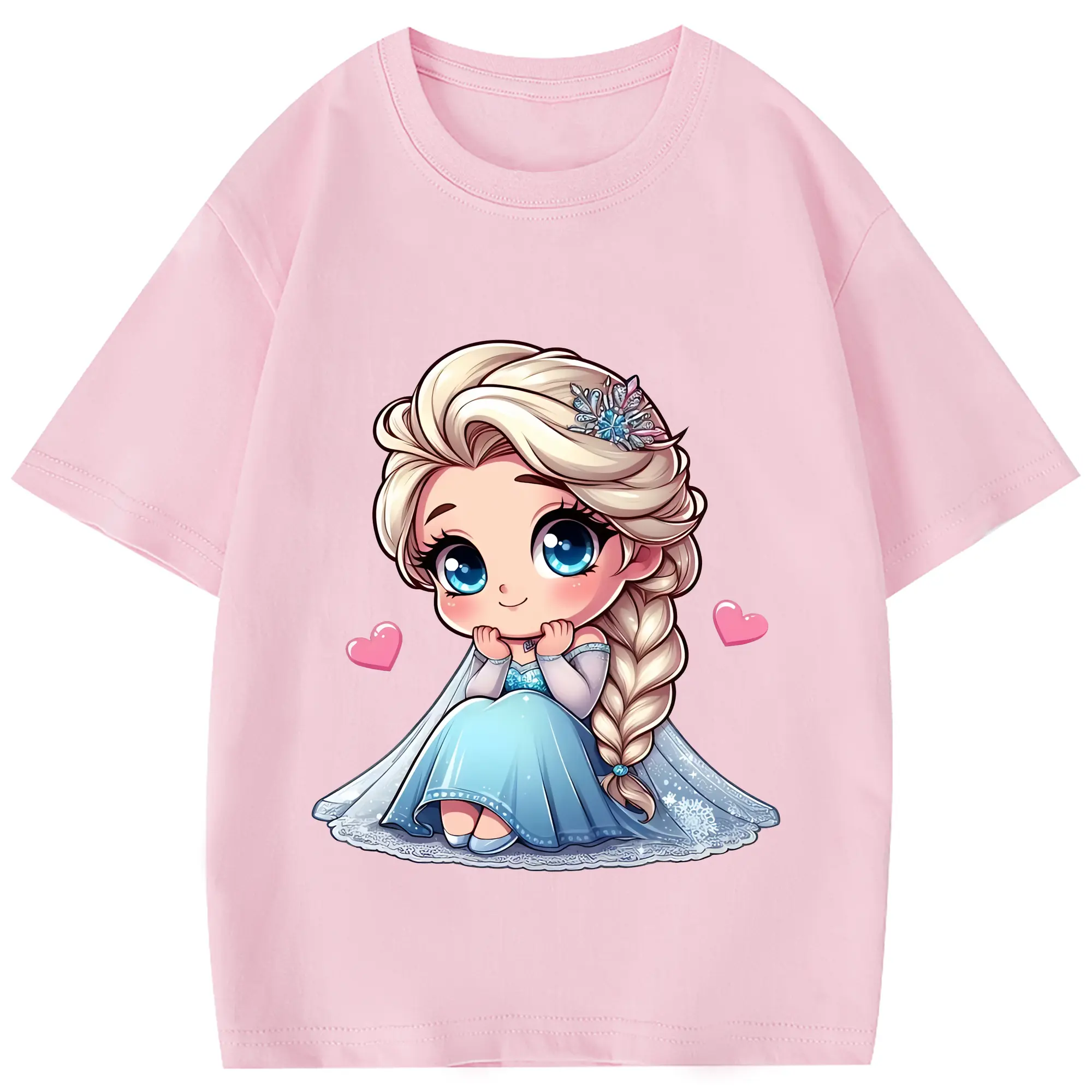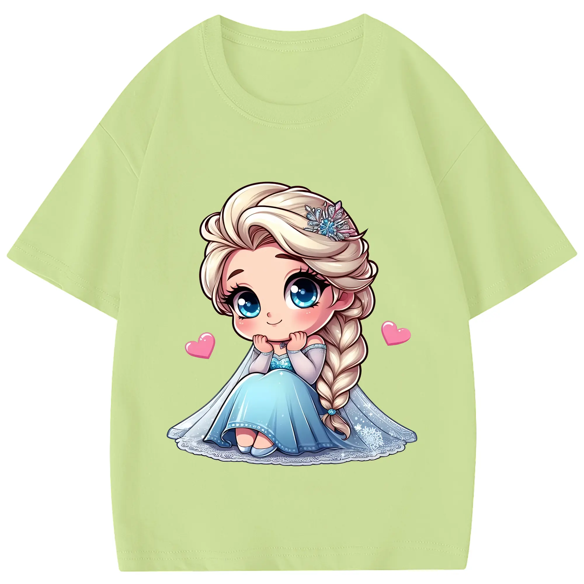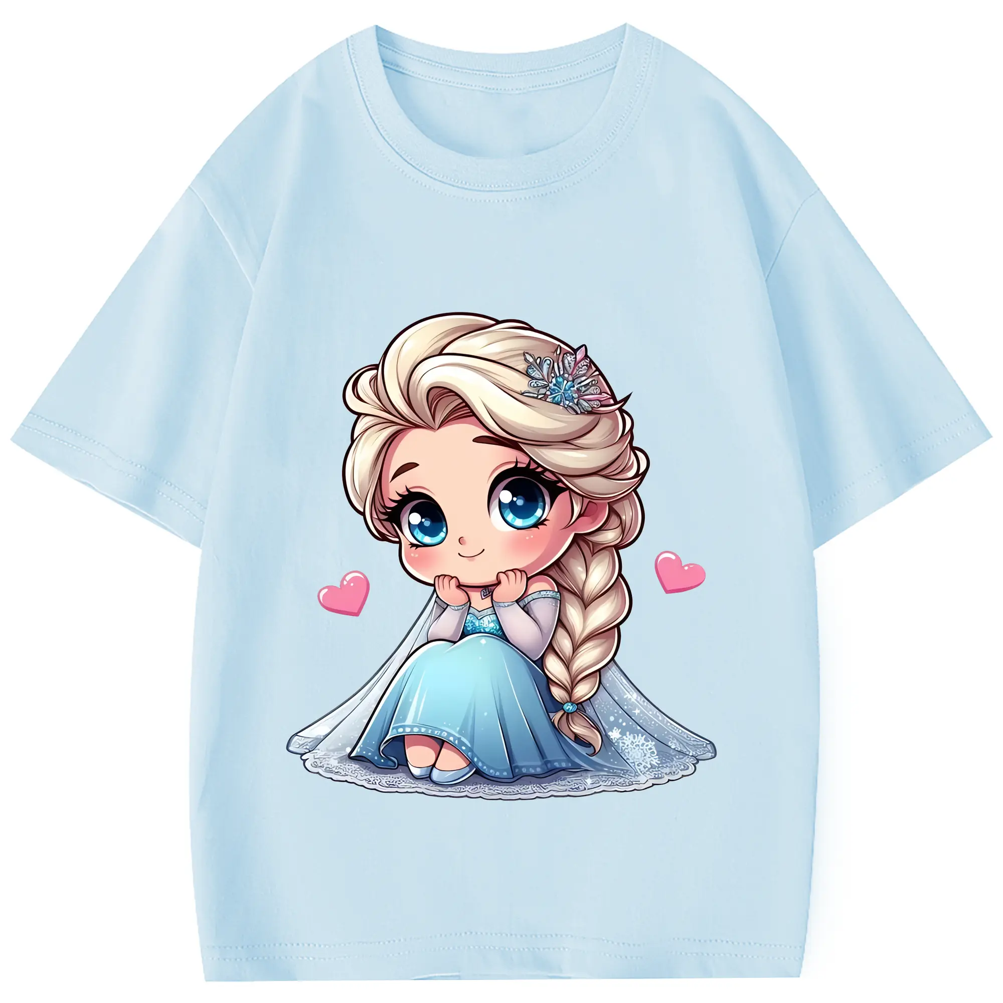 アナと雪の女王(Frozen) グッズ エルサ(Elsa) - 綿100% 半袖Tシャツ ・ フロントプリント ・ 快適 通気性 ・ 日常使い 散歩 スポーツ用