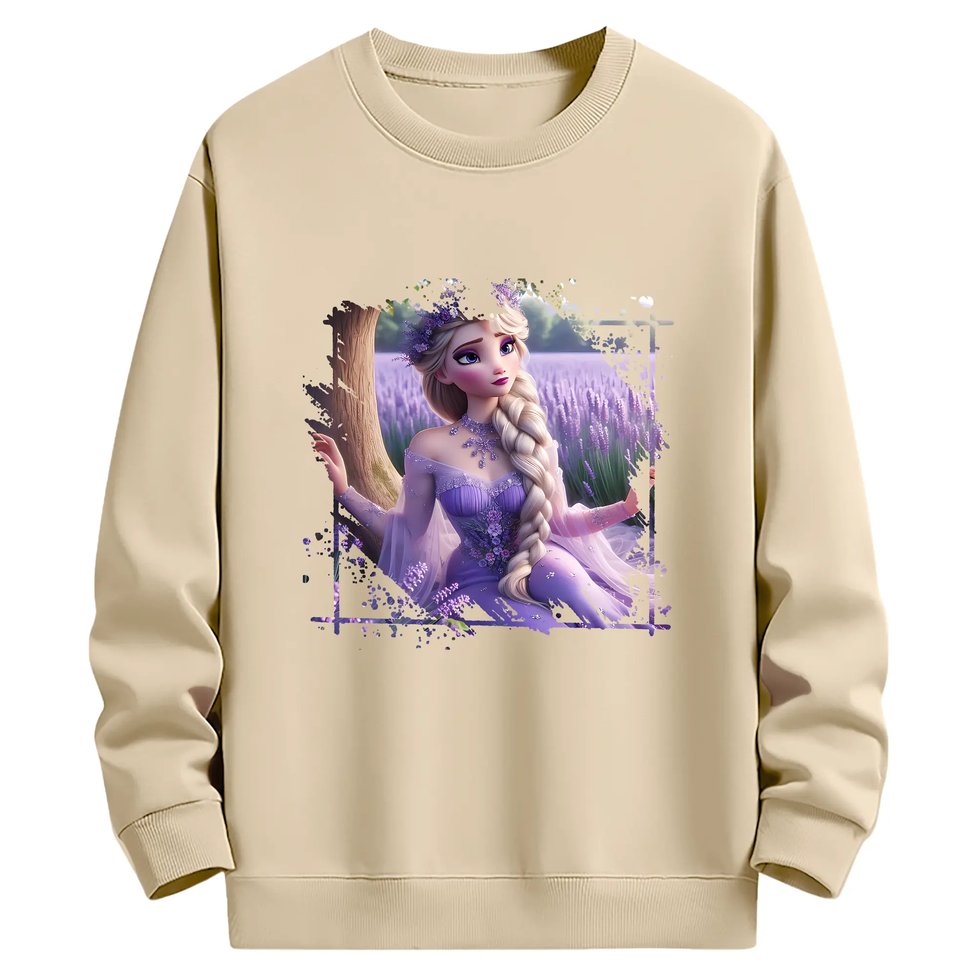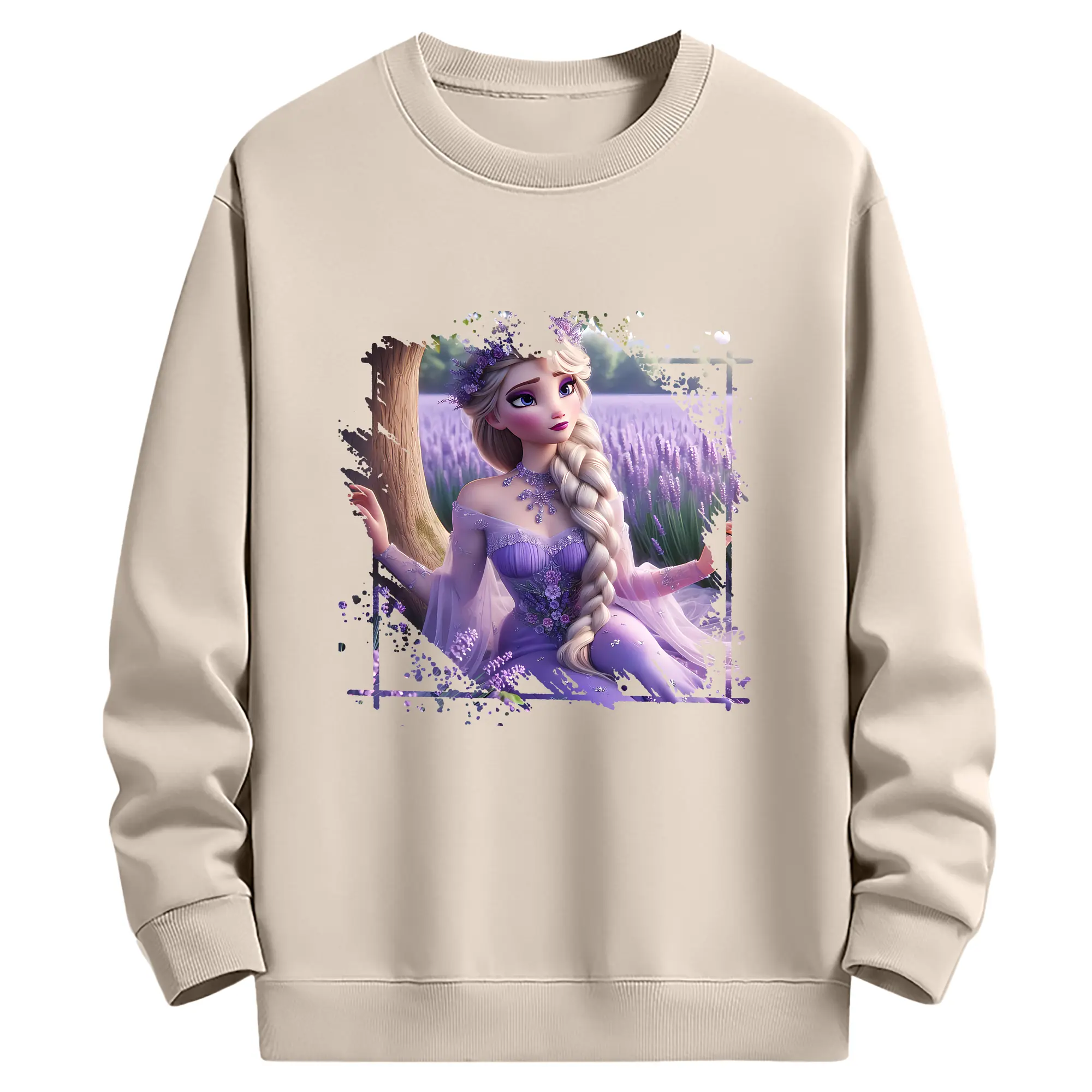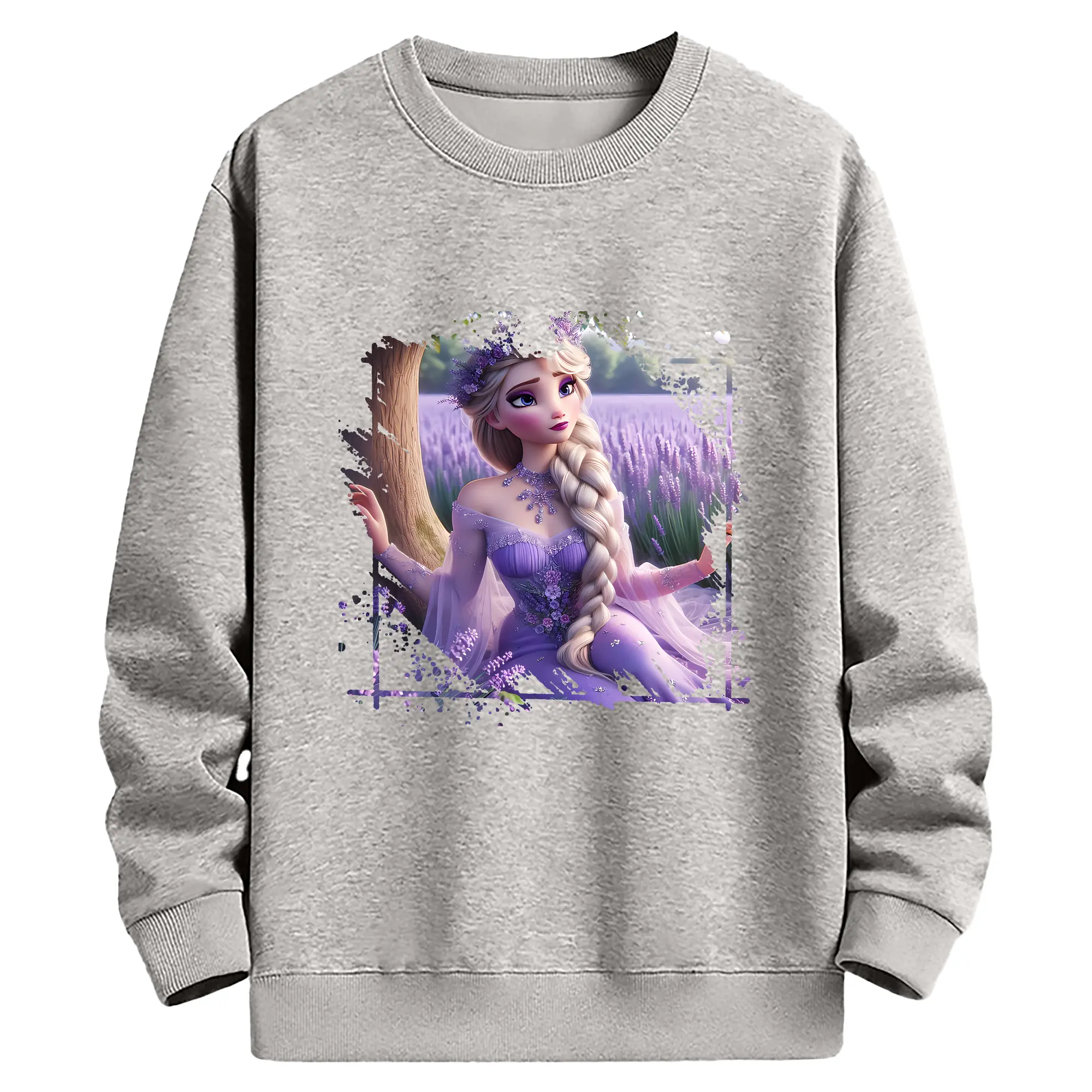 アナと雪の女王(Frozen) グッズ エルサ(Elsa) - 薄手 クルーネック スウェット 裏毛260g · ポリエステル 春秋向け カジュアル 男女兼用 · トレーナー デイリー スポーツ 散歩に最適