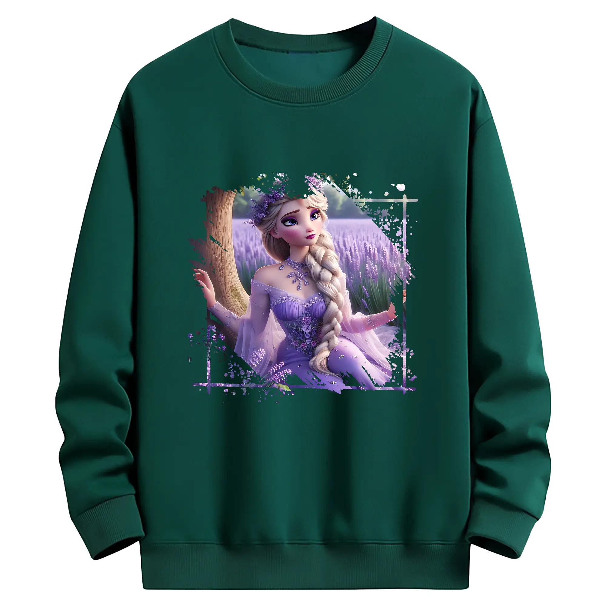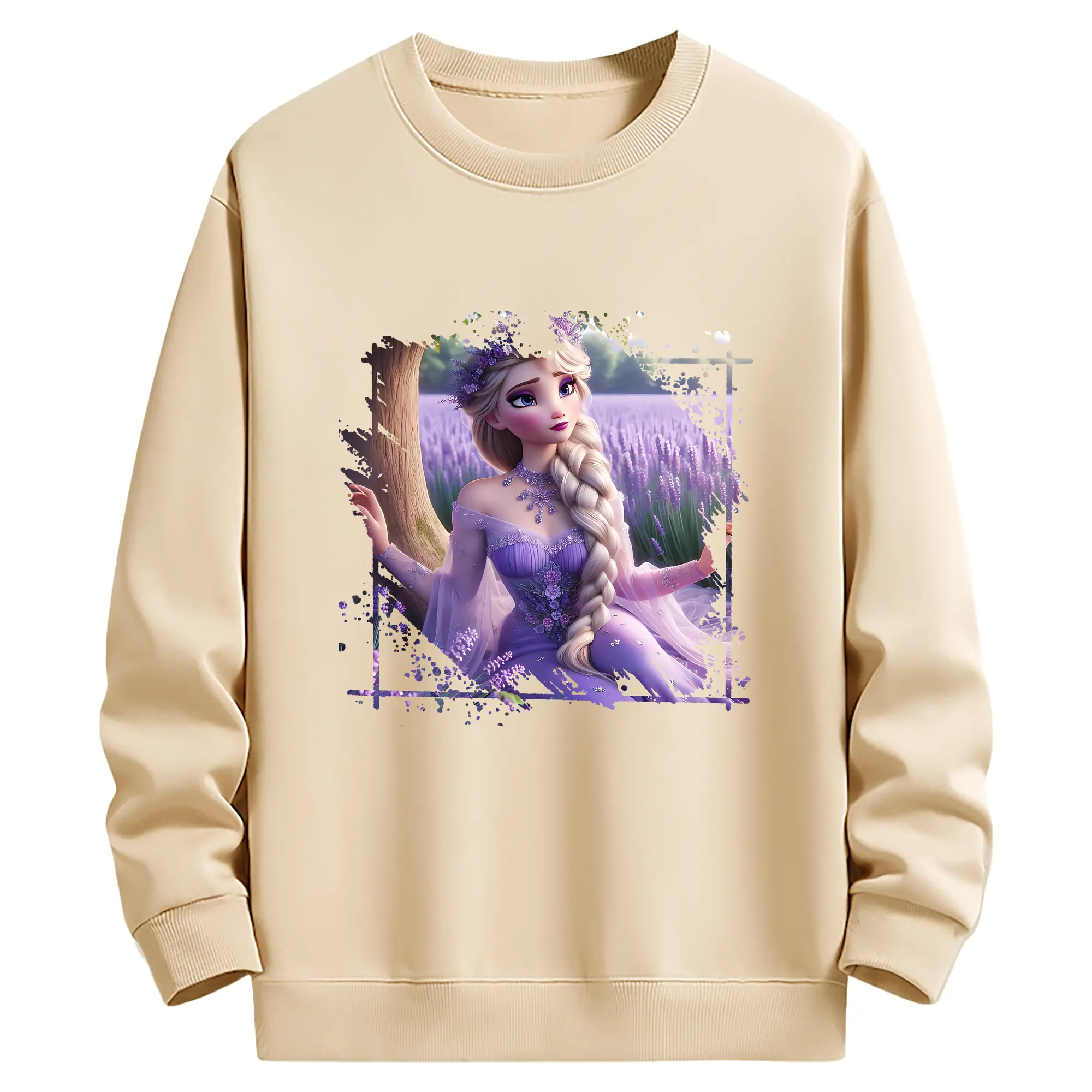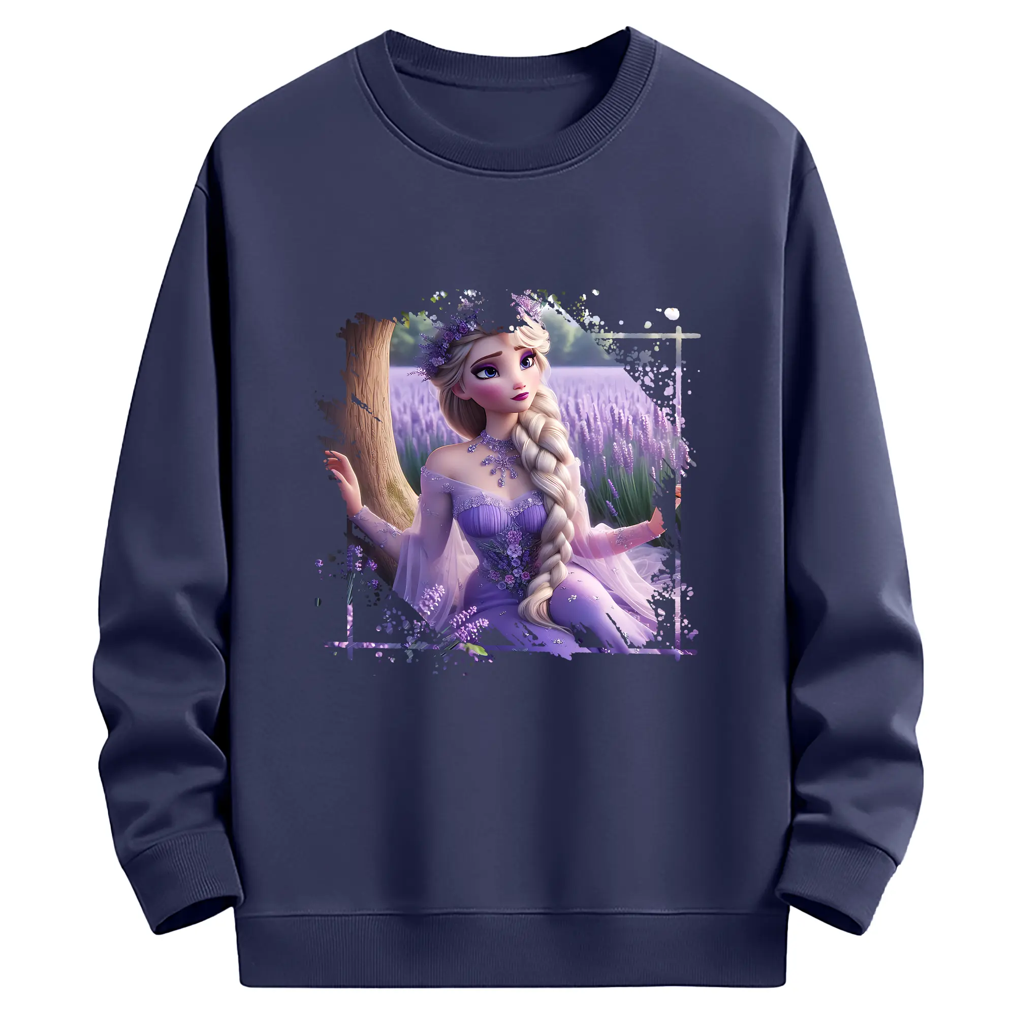 アナと雪の女王(Frozen) グッズ エルサ(Elsa) - 薄手 クルーネック スウェット 裏毛260g · ポリエステル 春秋向け カジュアル 男女兼用 · トレーナー デイリー スポーツ 散歩に最適
