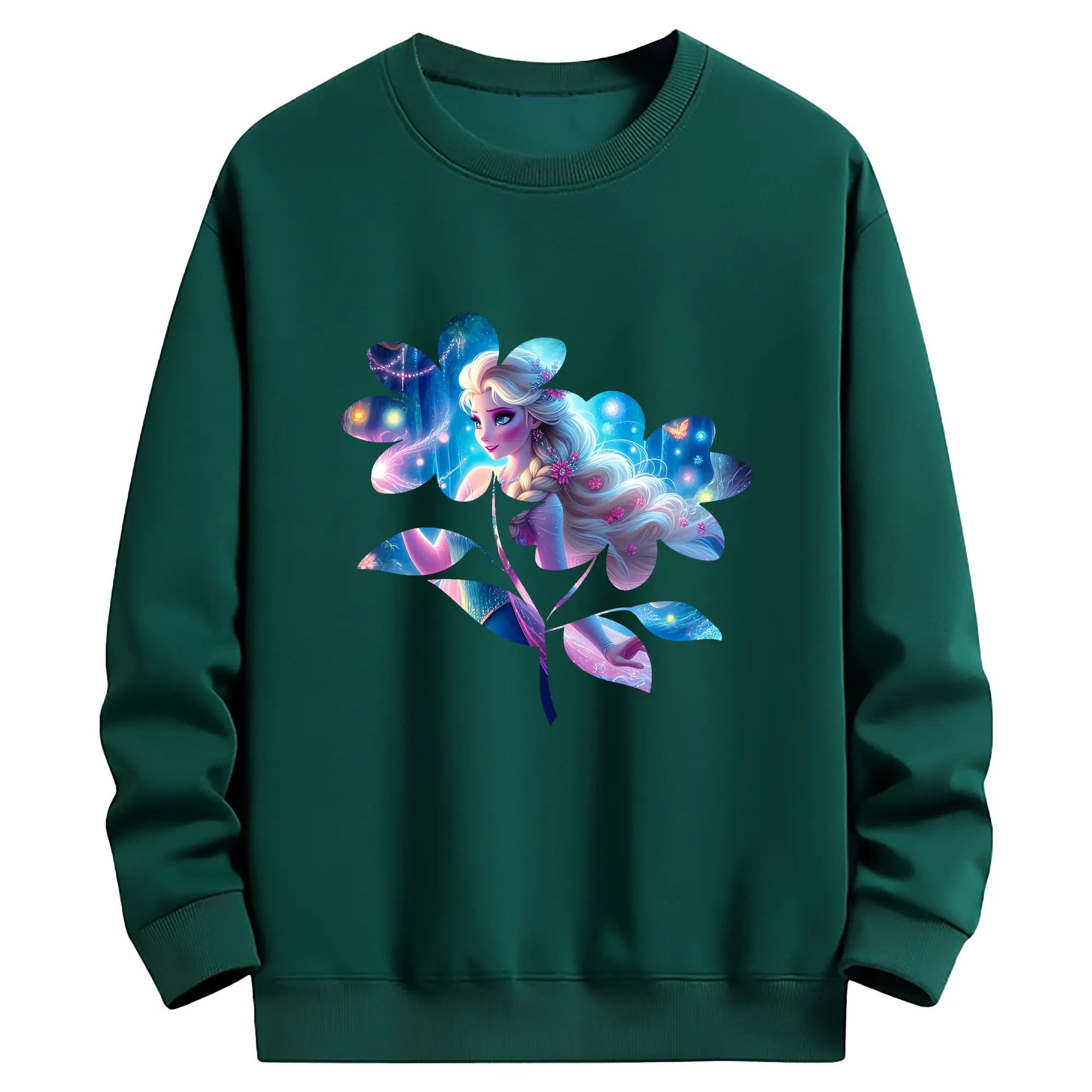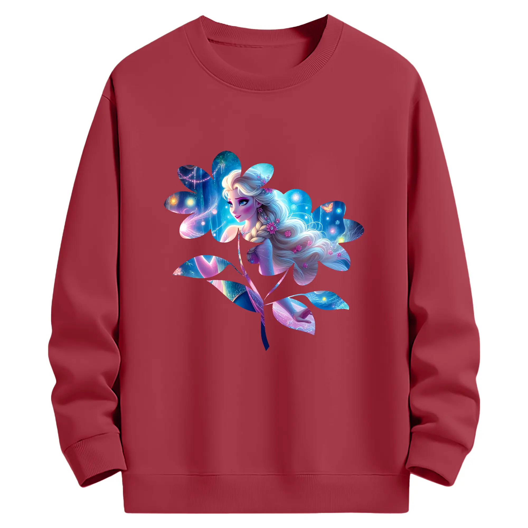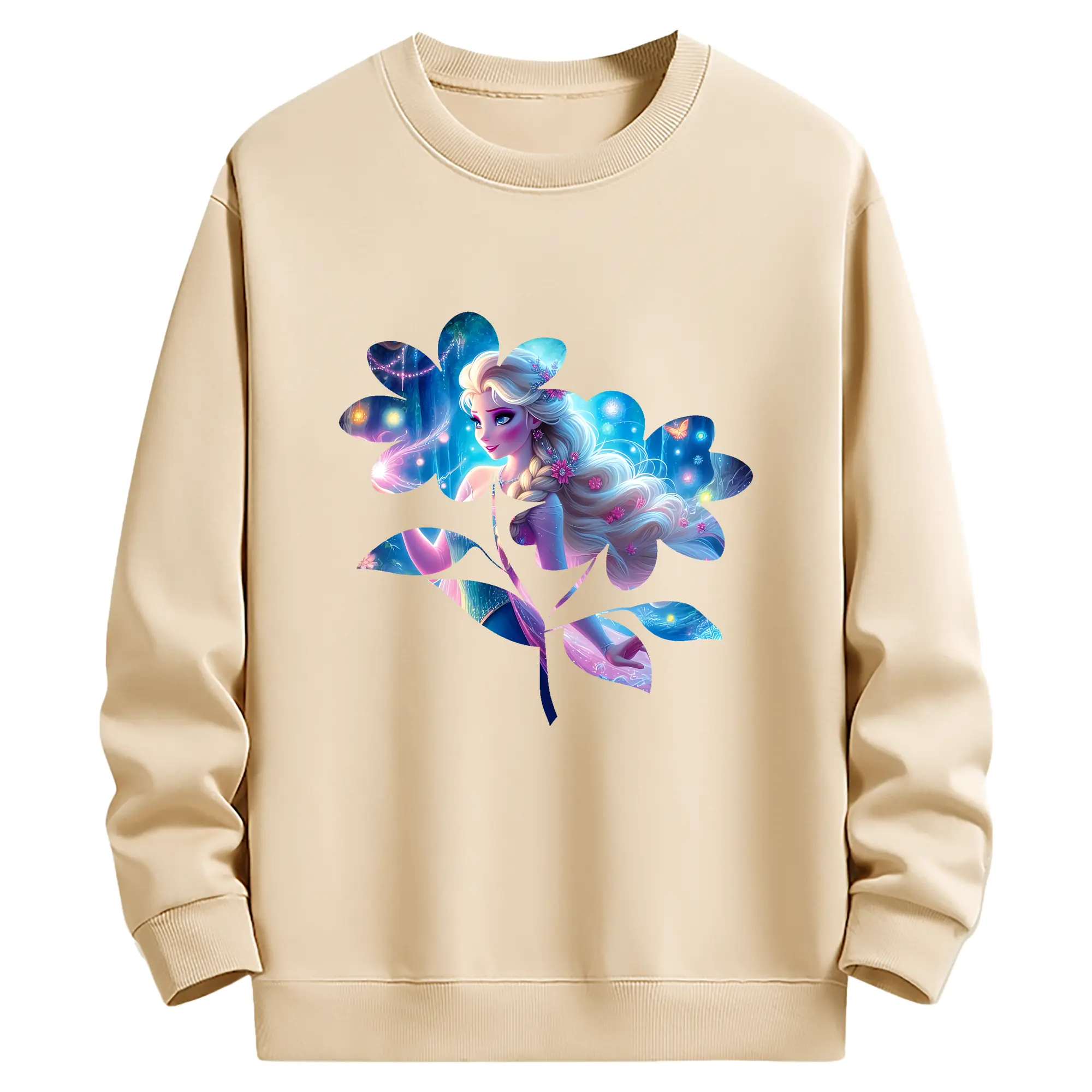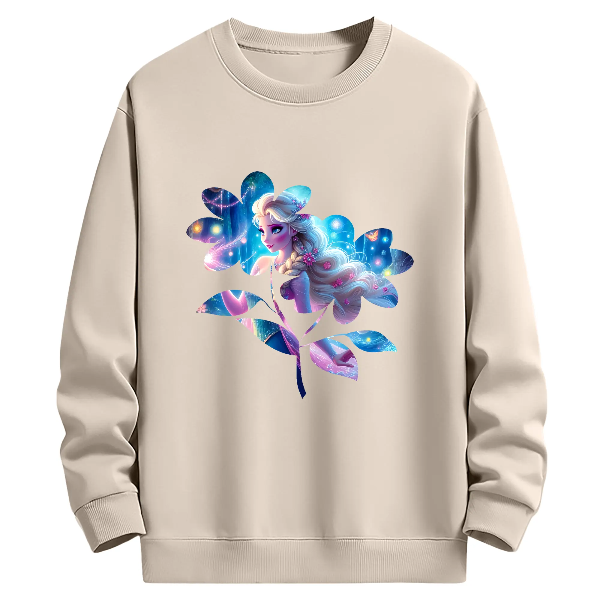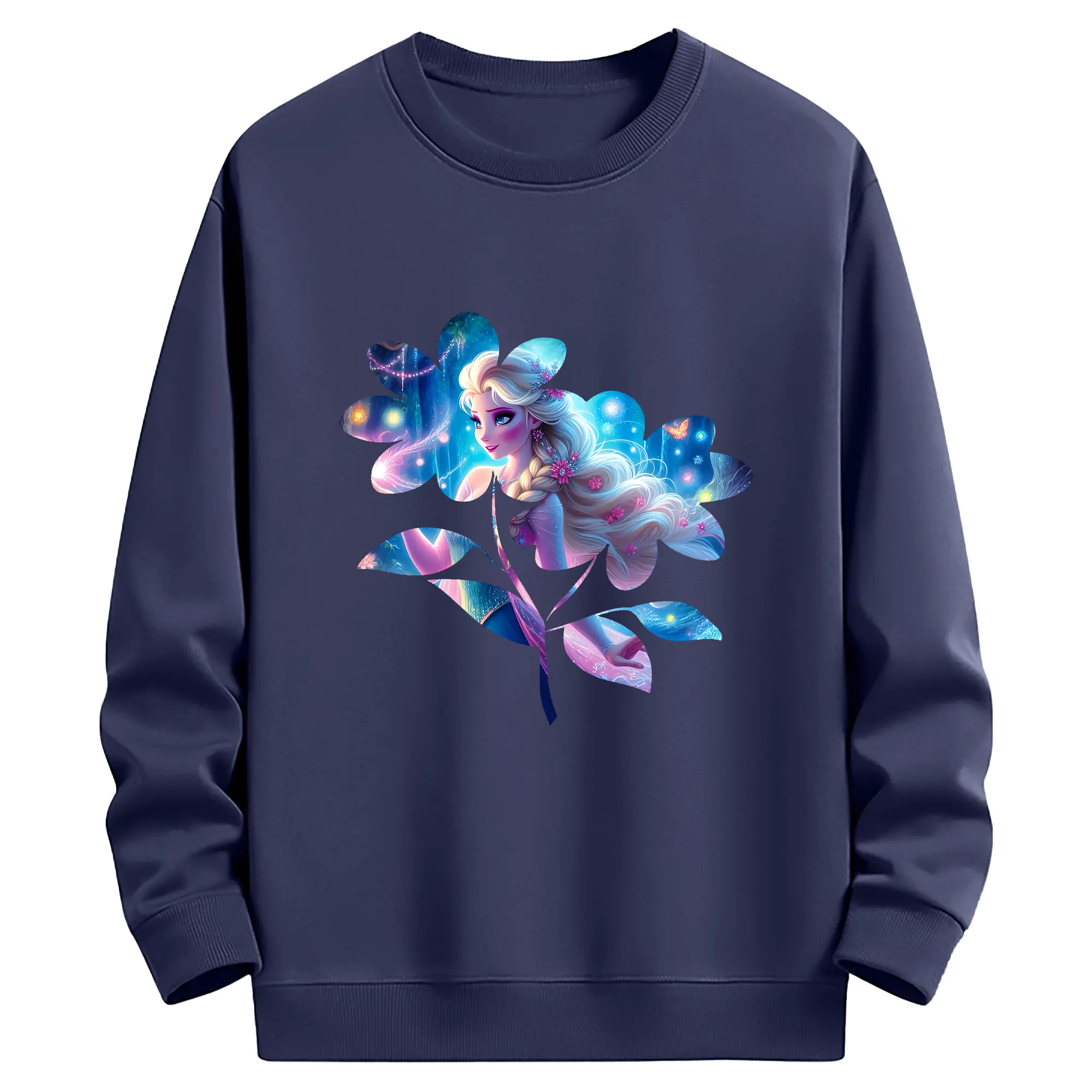 アナと雪の女王(Frozen) グッズ エルサ(Elsa) - 薄手 クルーネック スウェット 裏毛260g · ポリエステル 春秋向け カジュアル 男女兼用 · トレーナー デイリー スポーツ 散歩に最適