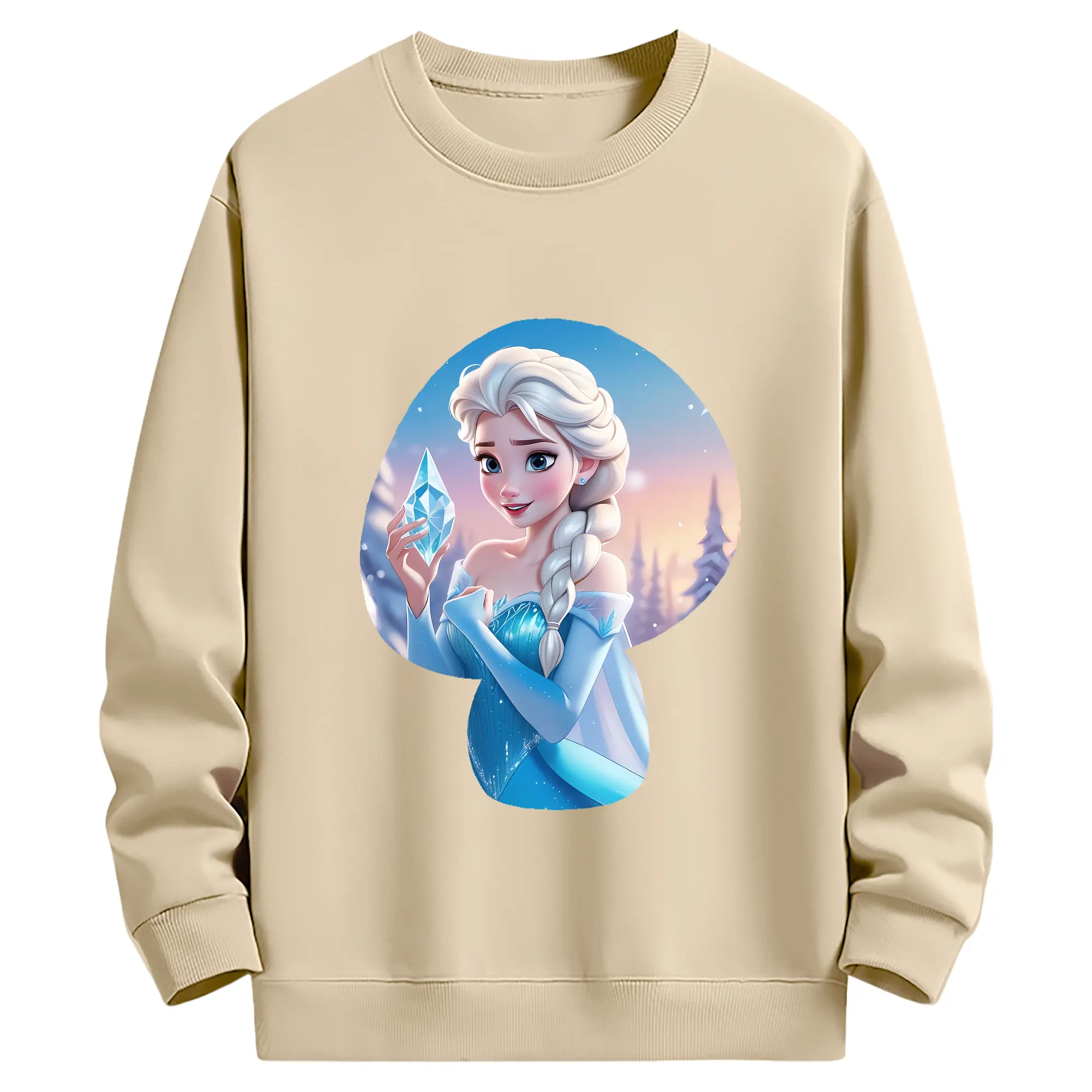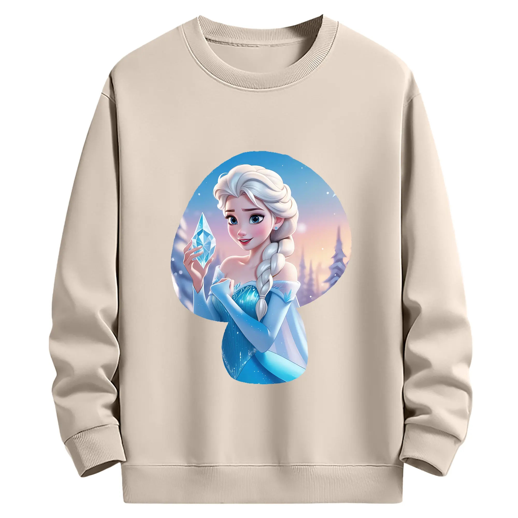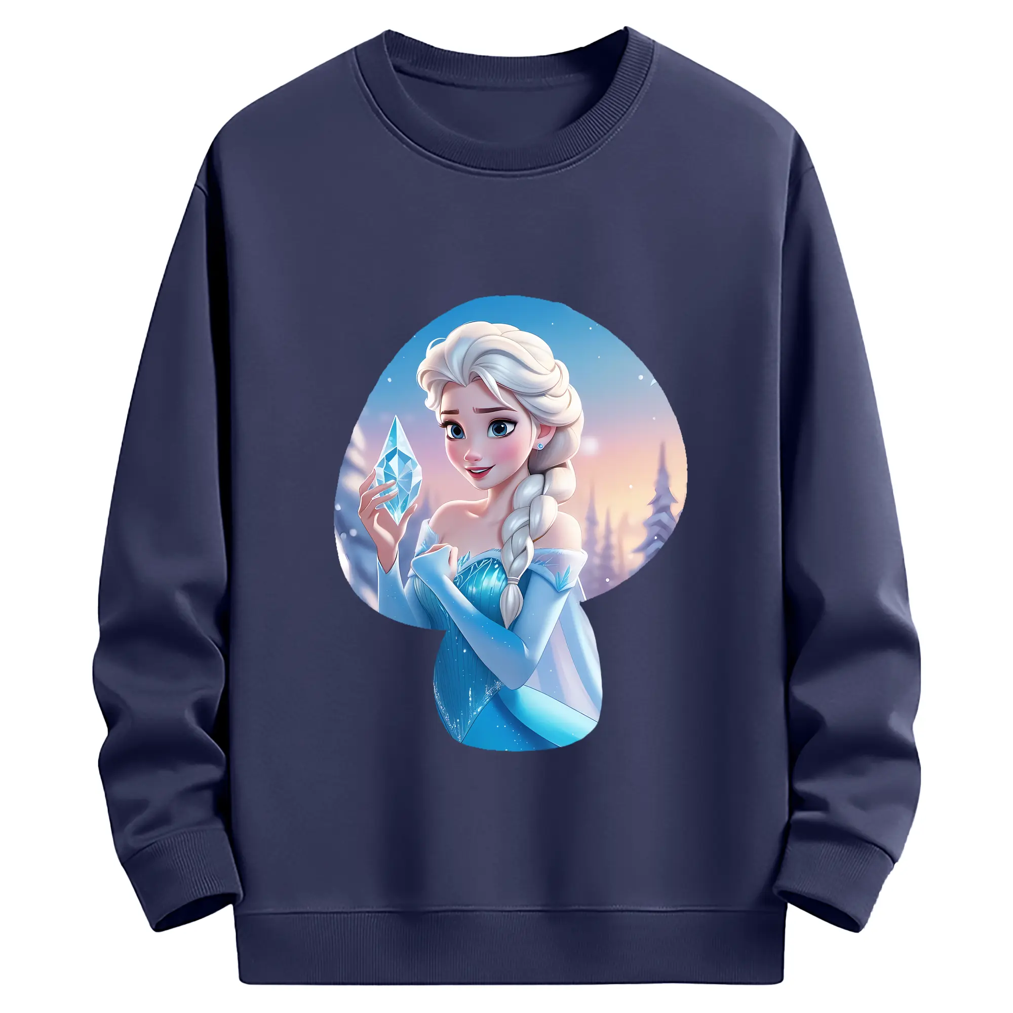 アナと雪の女王(Frozen) グッズ エルサ(Elsa) - 薄手 クルーネック スウェット 裏毛260g · ポリエステル 春秋向け カジュアル 男女兼用 · トレーナー デイリー スポーツ 散歩に最適