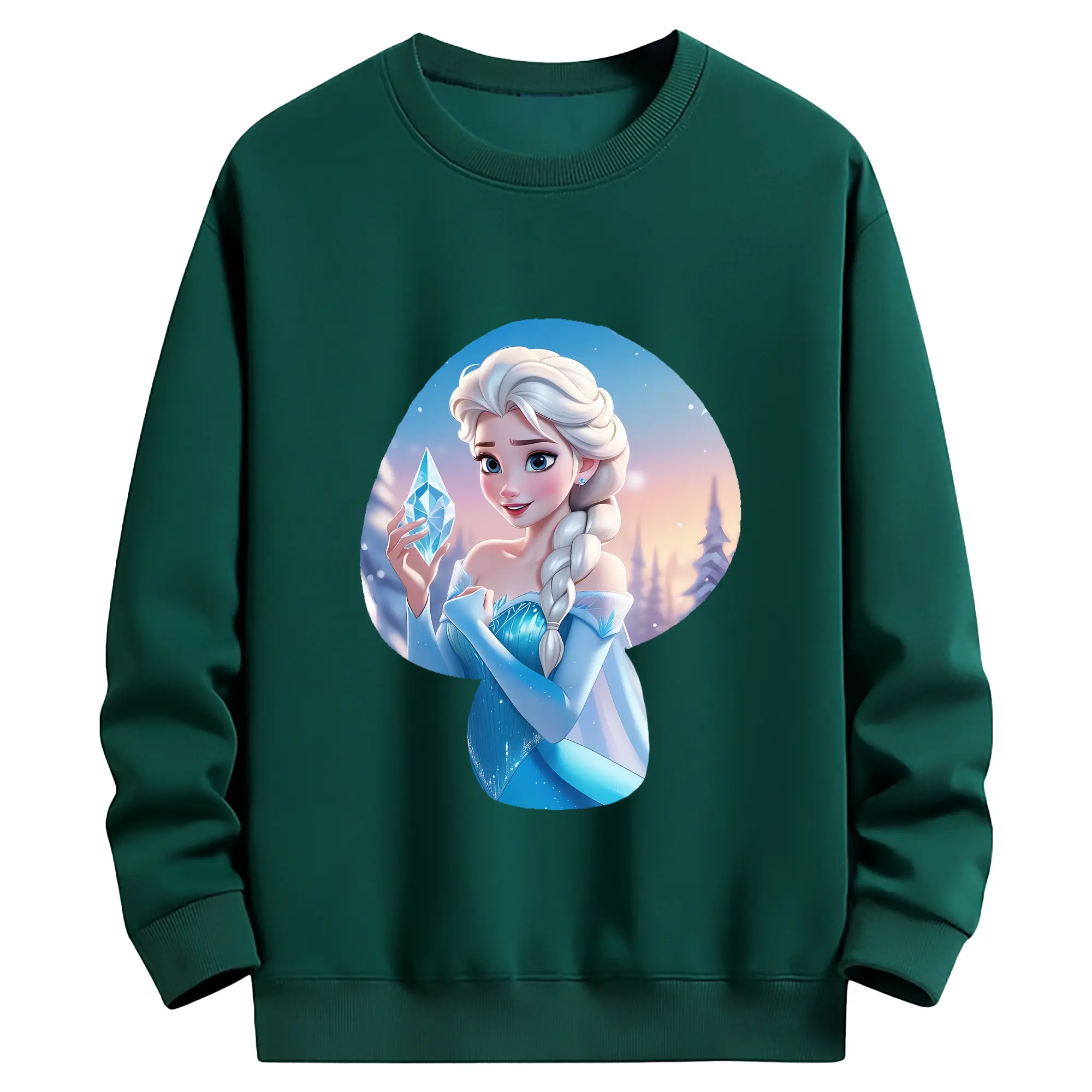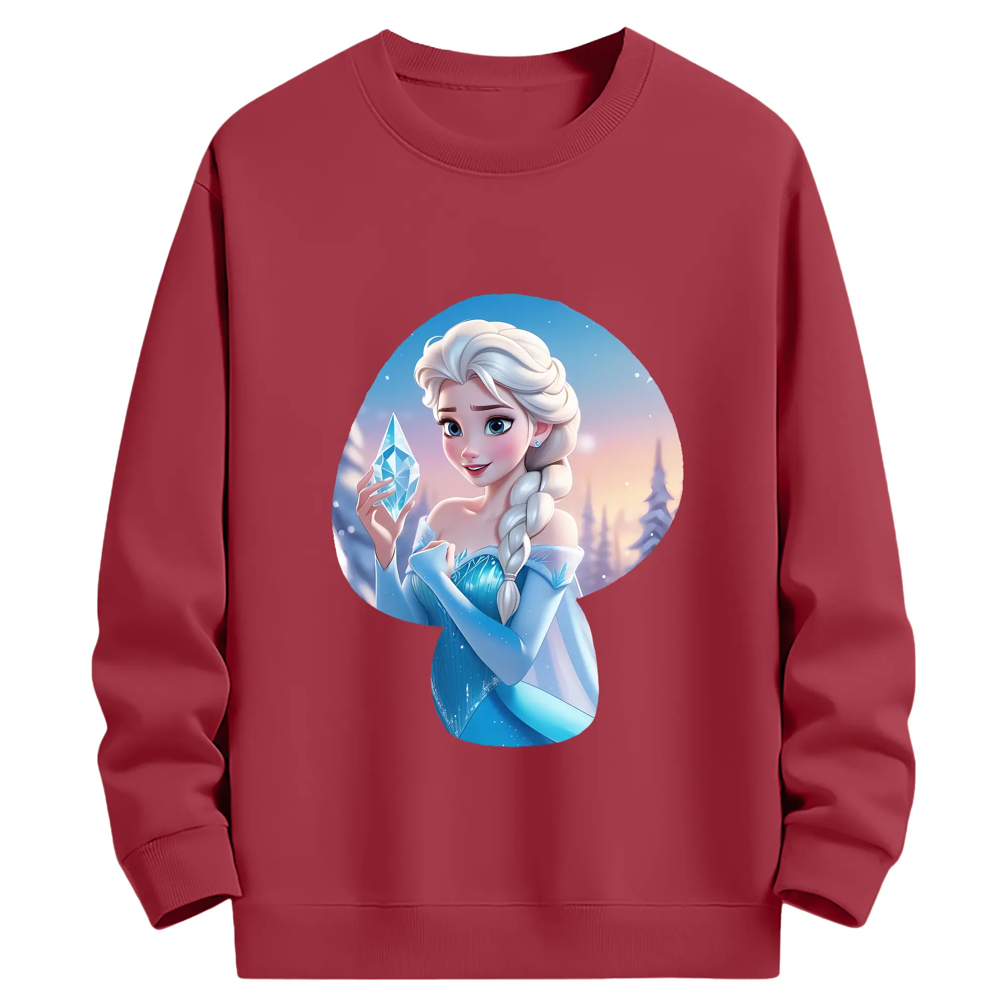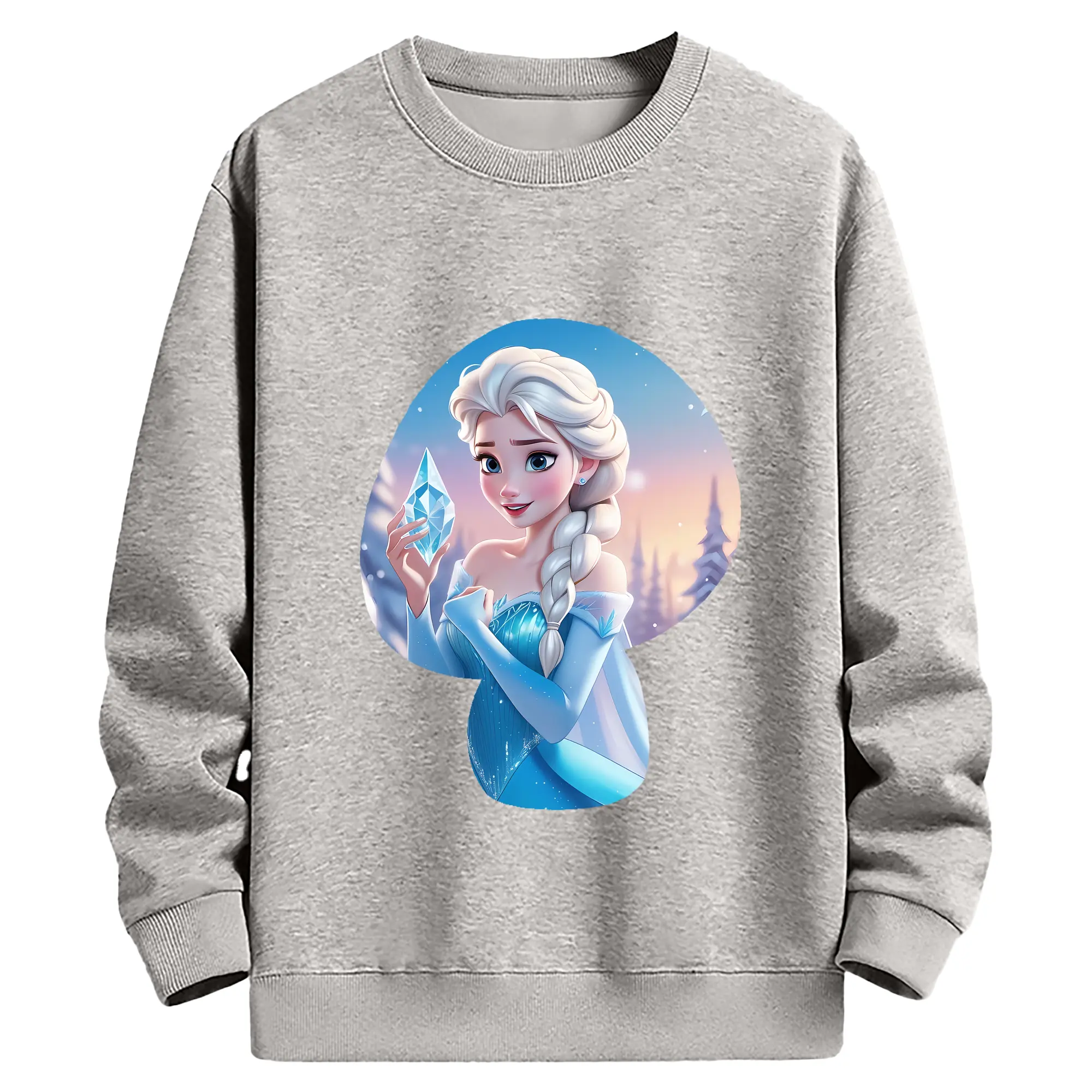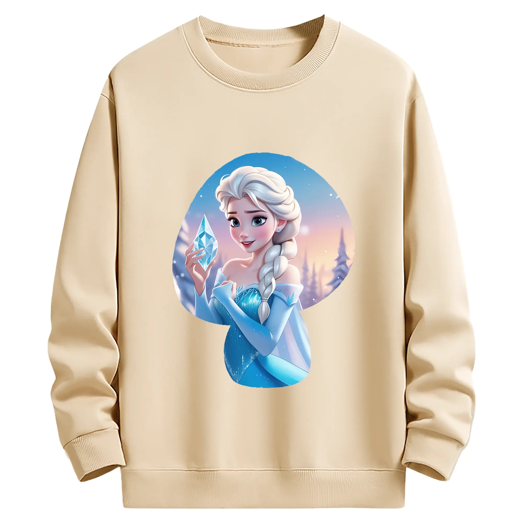 アナと雪の女王(Frozen) グッズ エルサ(Elsa) - 薄手 クルーネック スウェット 裏毛260g · ポリエステル 春秋向け カジュアル 男女兼用 · トレーナー デイリー スポーツ 散歩に最適