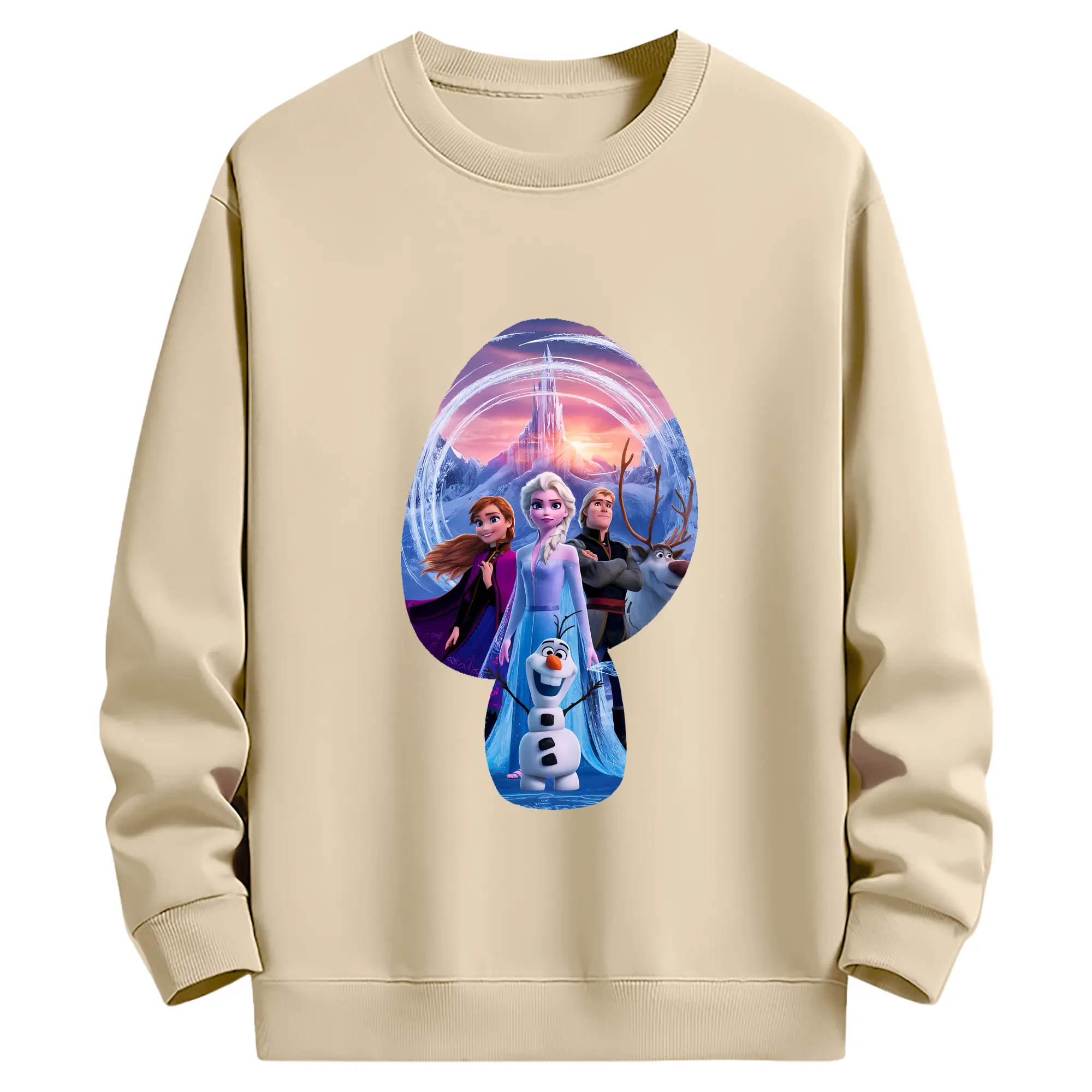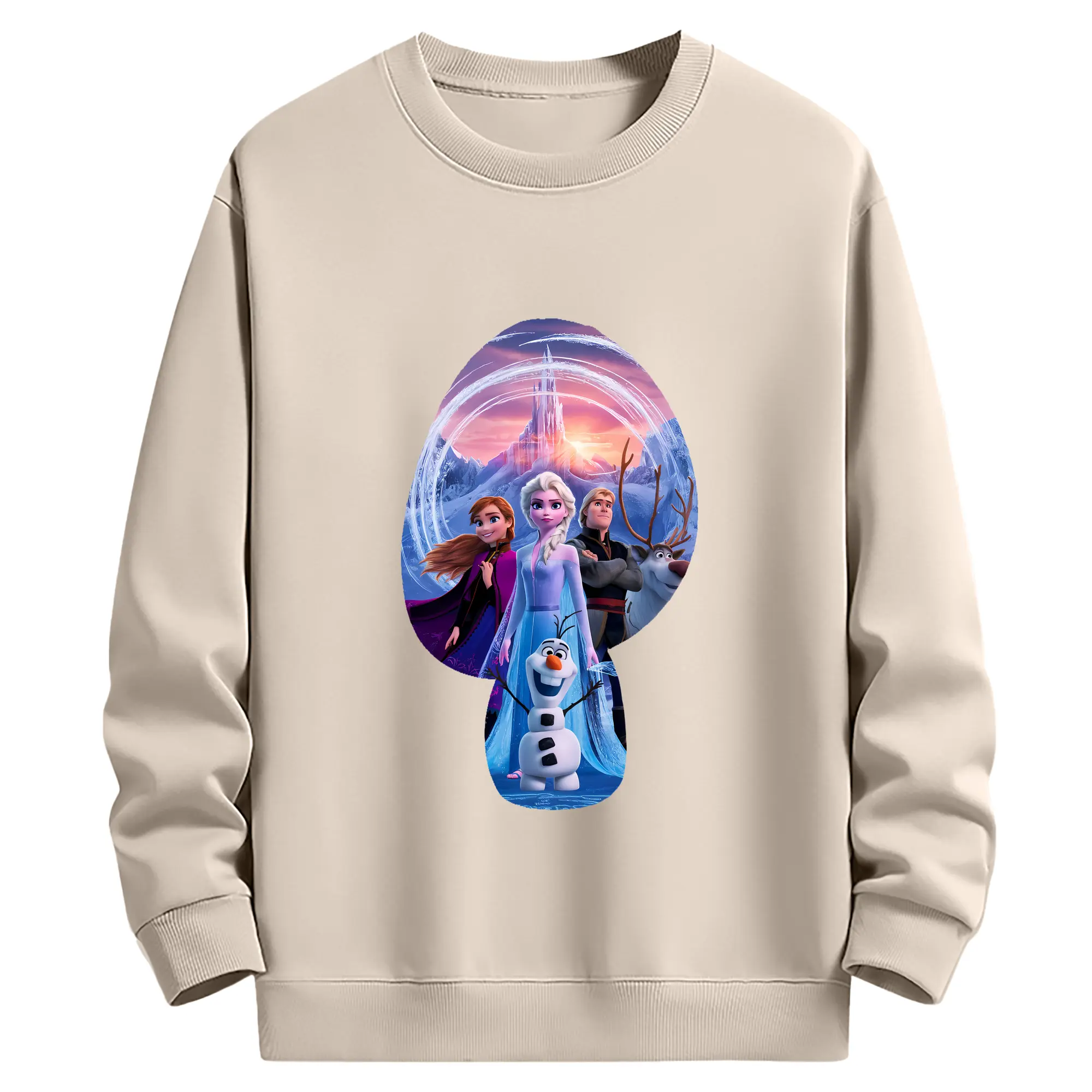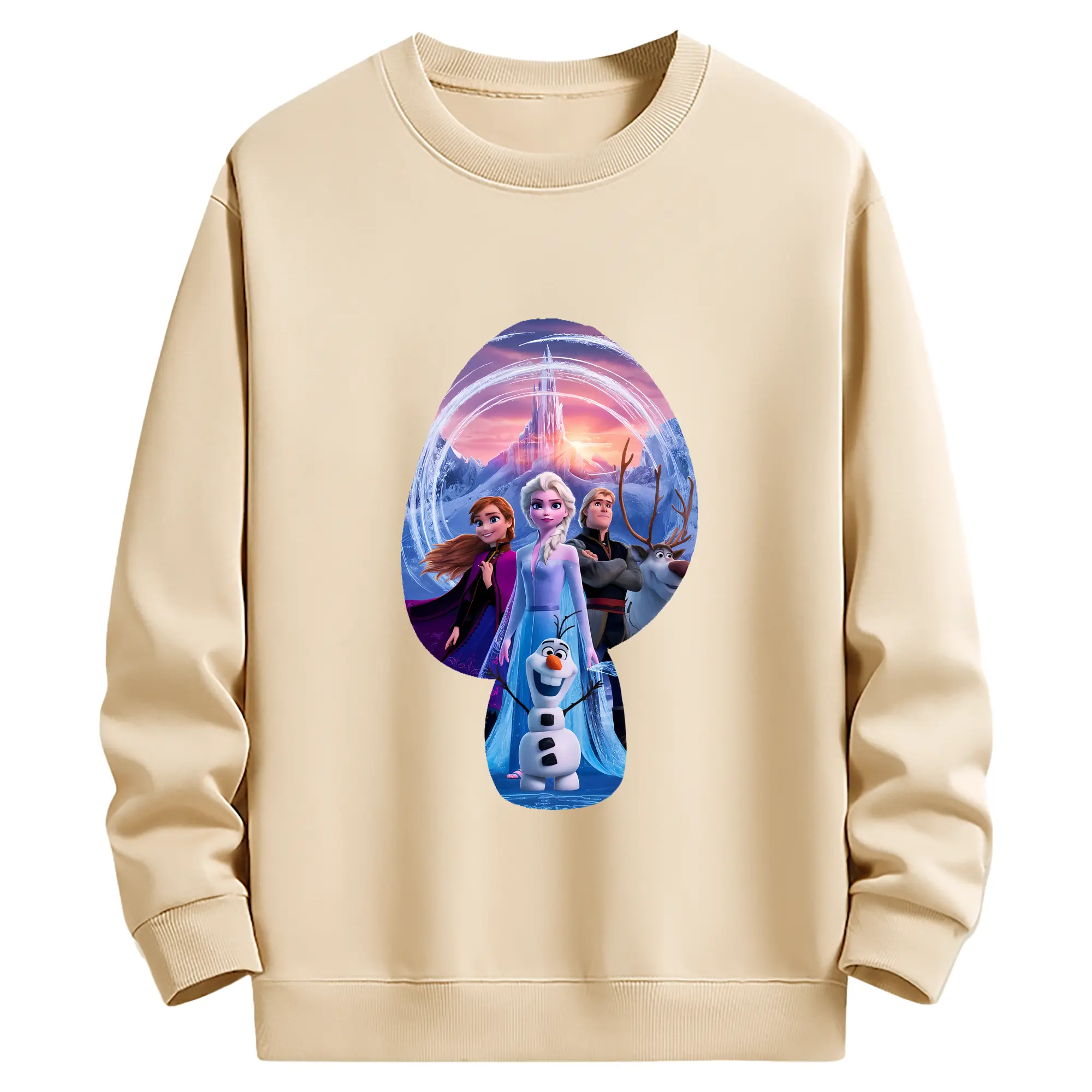 アナと雪の女王(Frozen) グッズ エルサ(Elsa) - 薄手 クルーネック スウェット 裏毛260g · ポリエステル 春秋向け カジュアル 男女兼用 · トレーナー デイリー スポーツ 散歩に最適