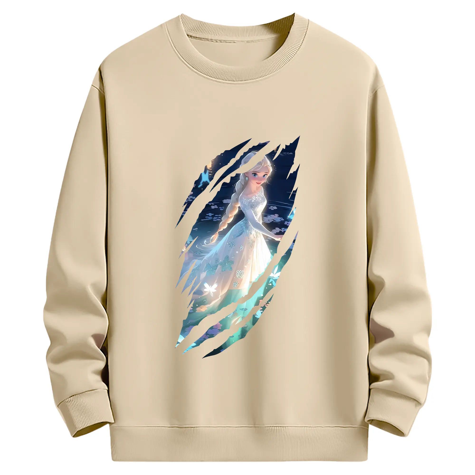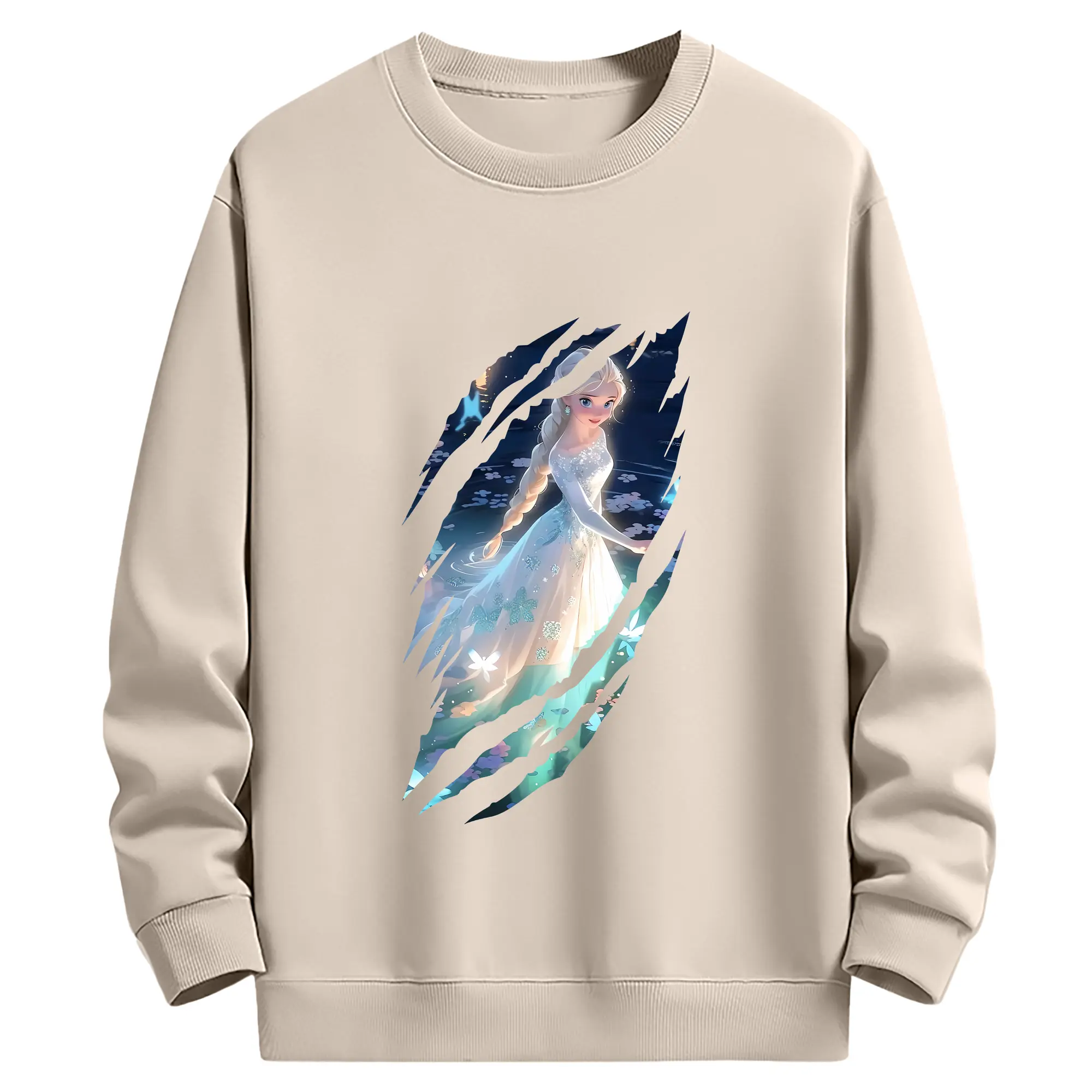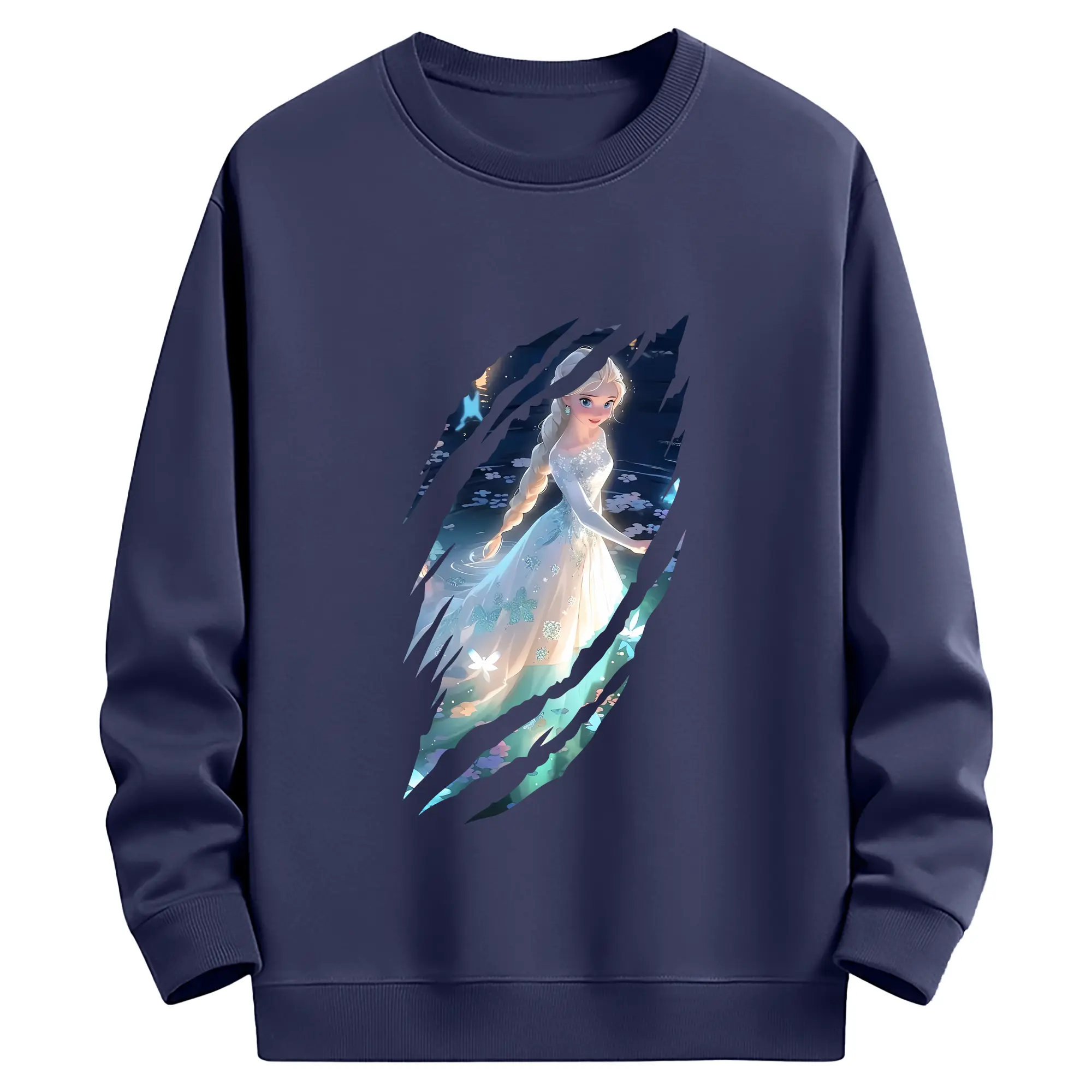 アナと雪の女王(Frozen) グッズ エルサ(Elsa) - 薄手 クルーネック スウェット 裏毛260g · ポリエステル 春秋向け カジュアル 男女兼用 · トレーナー デイリー スポーツ 散歩に最適