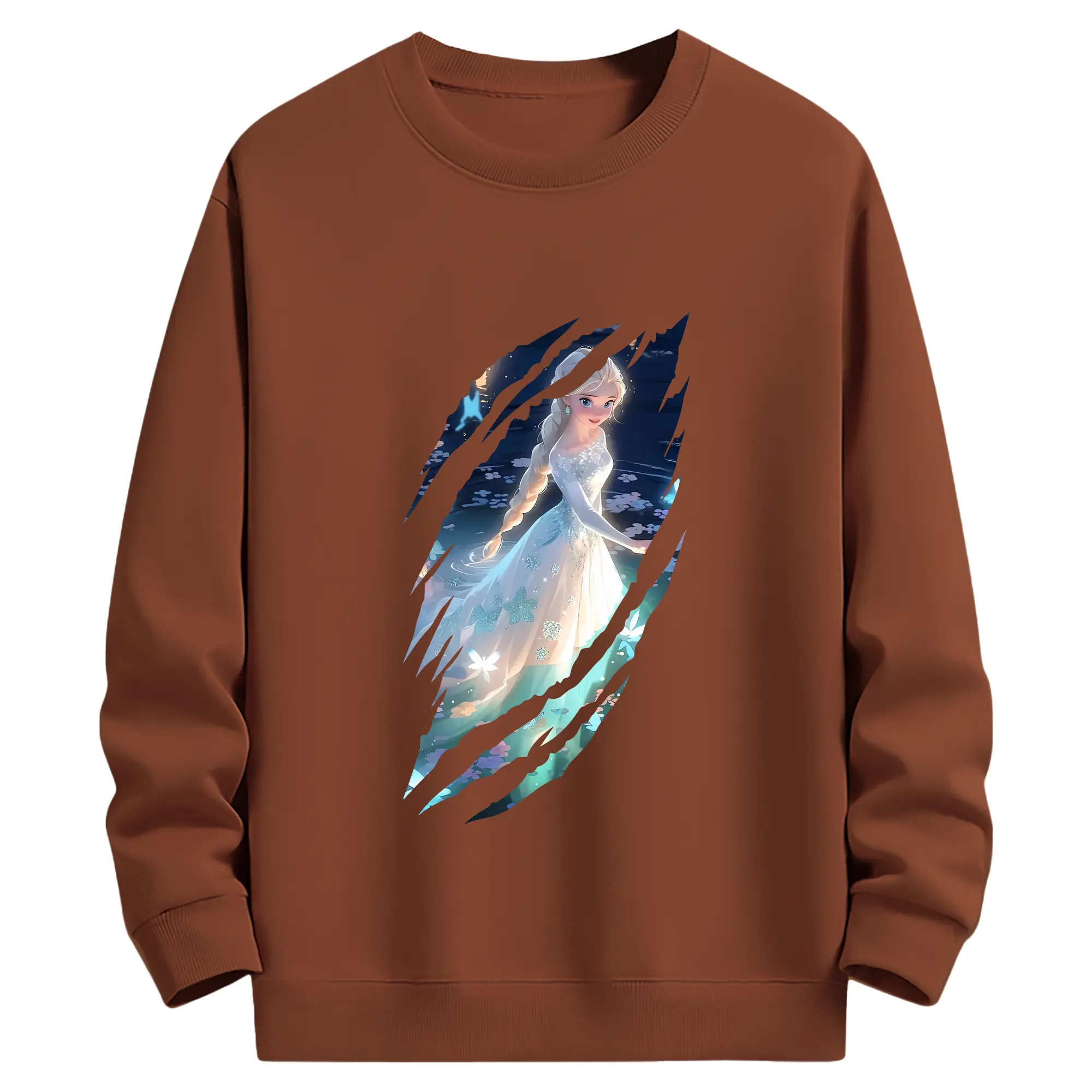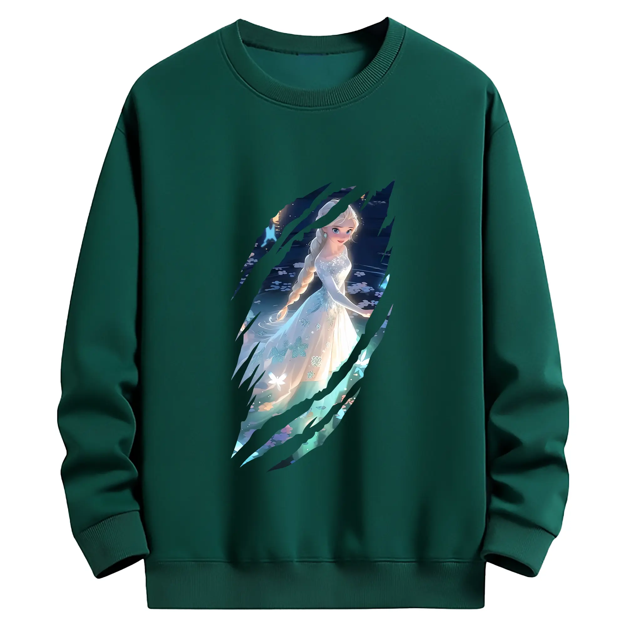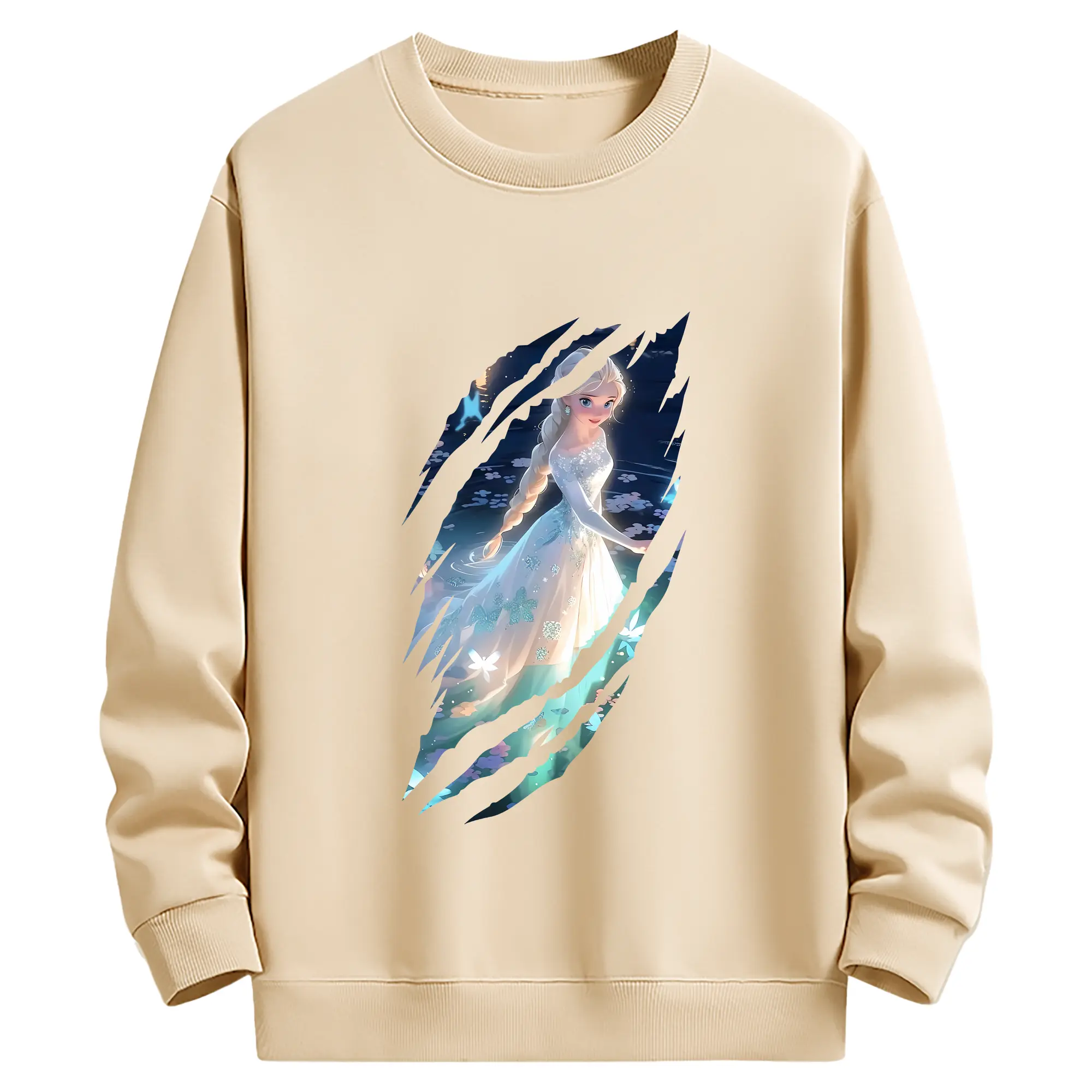 アナと雪の女王(Frozen) グッズ エルサ(Elsa) - 薄手 クルーネック スウェット 裏毛260g · ポリエステル 春秋向け カジュアル 男女兼用 · トレーナー デイリー スポーツ 散歩に最適