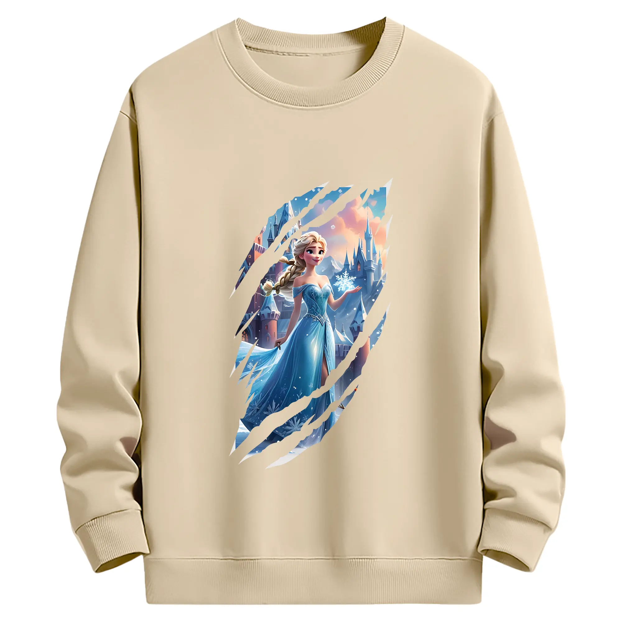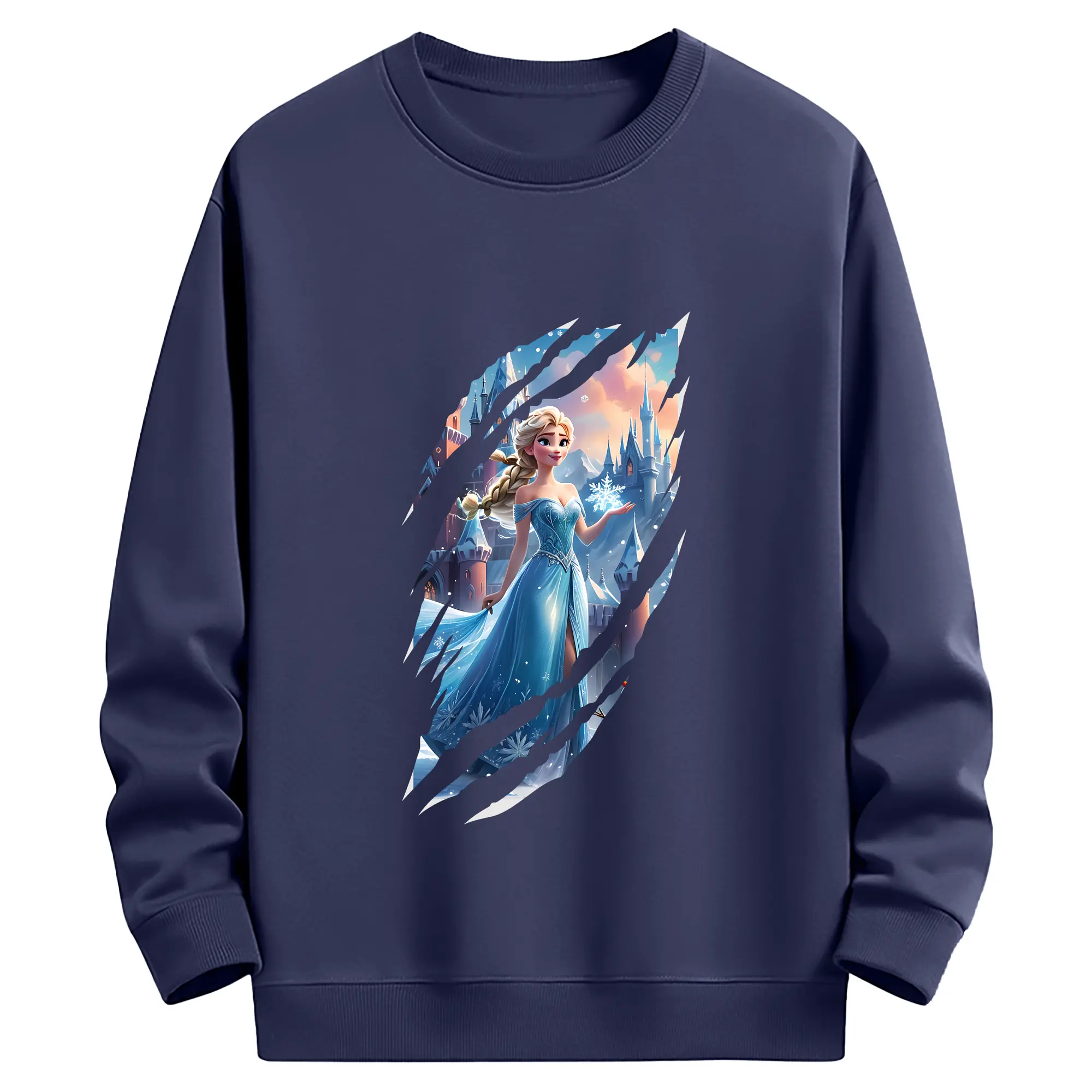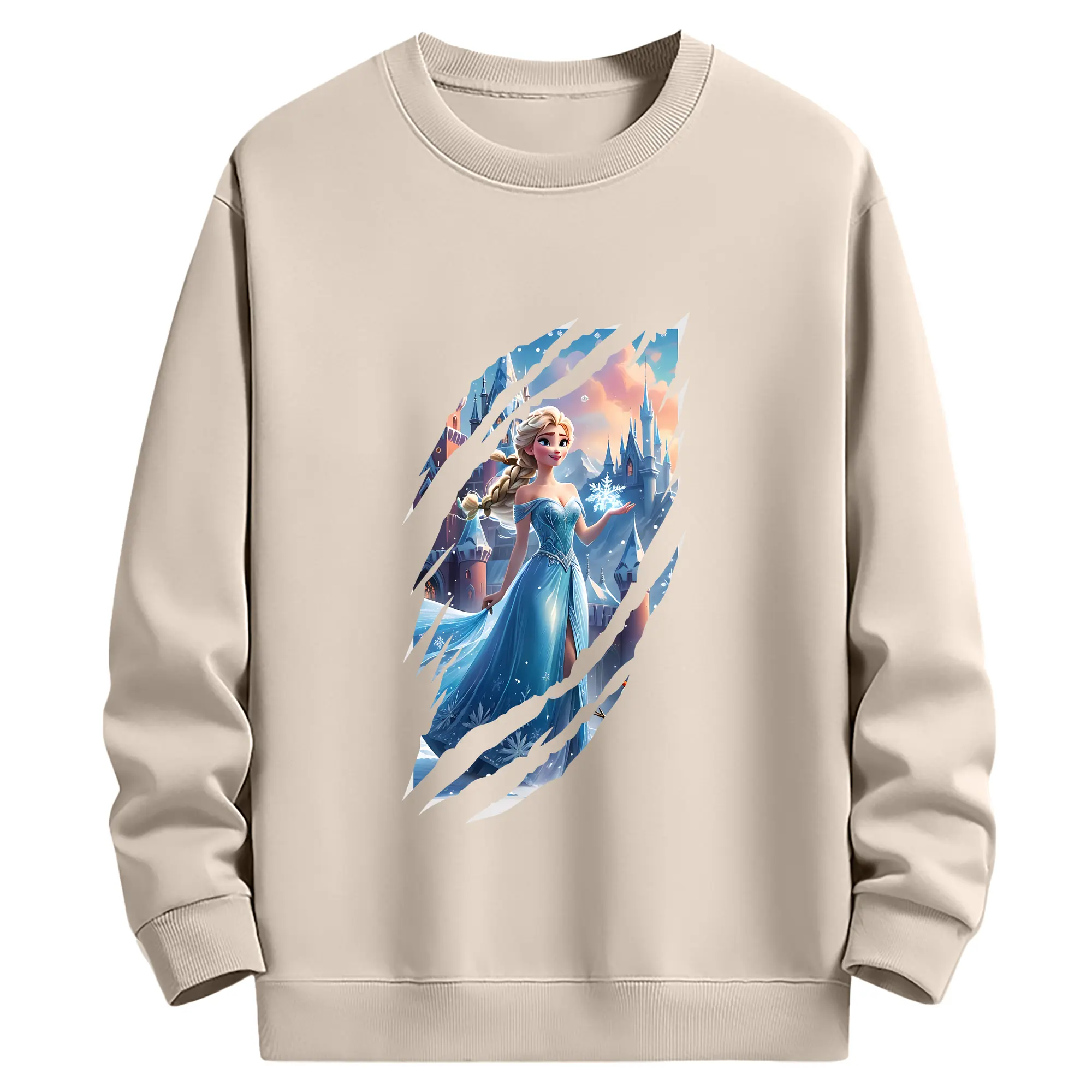 アナと雪の女王(Frozen) グッズ エルサ(Elsa) - 薄手 クルーネック スウェット 裏毛260g · ポリエステル 春秋向け カジュアル 男女兼用 · トレーナー デイリー スポーツ 散歩に最適
