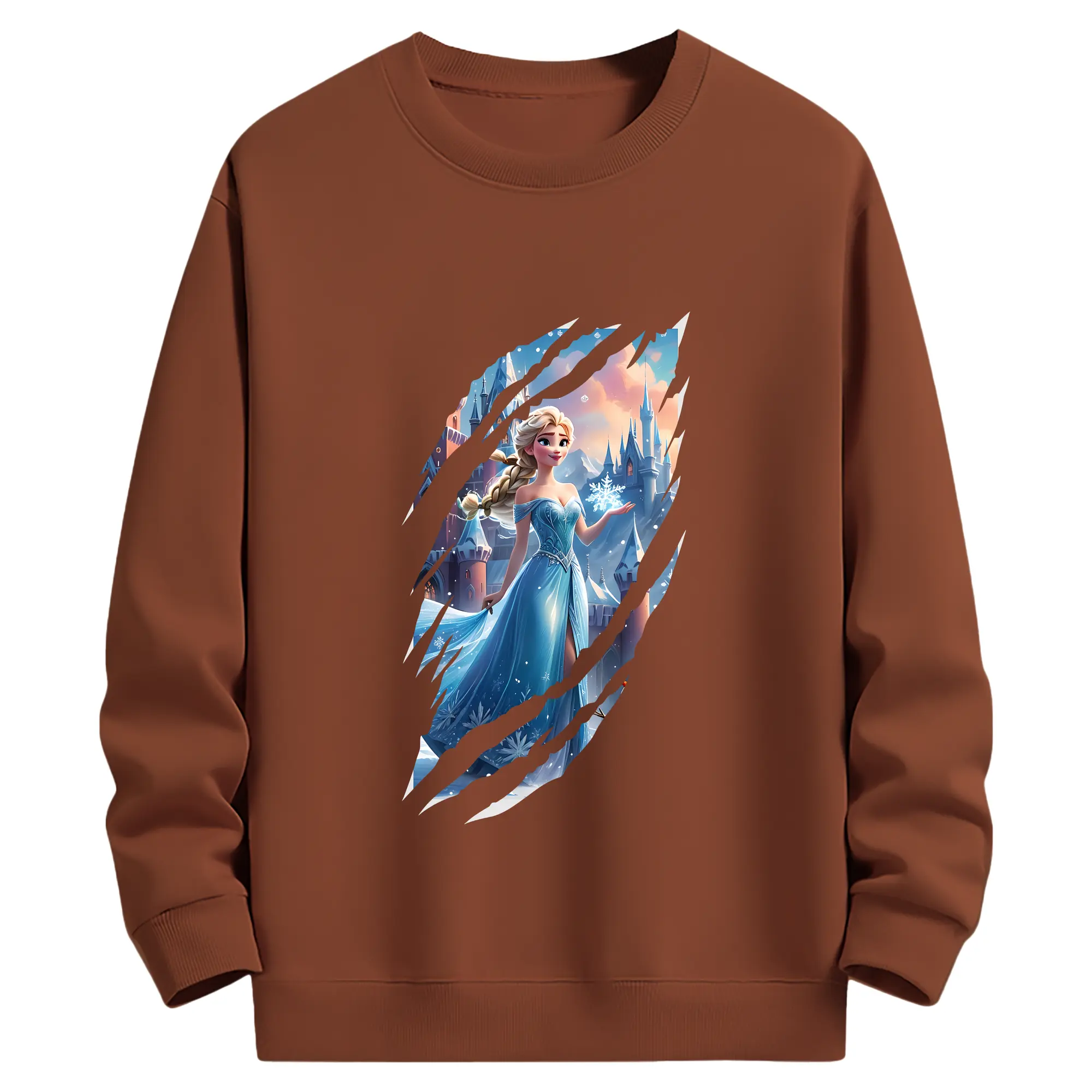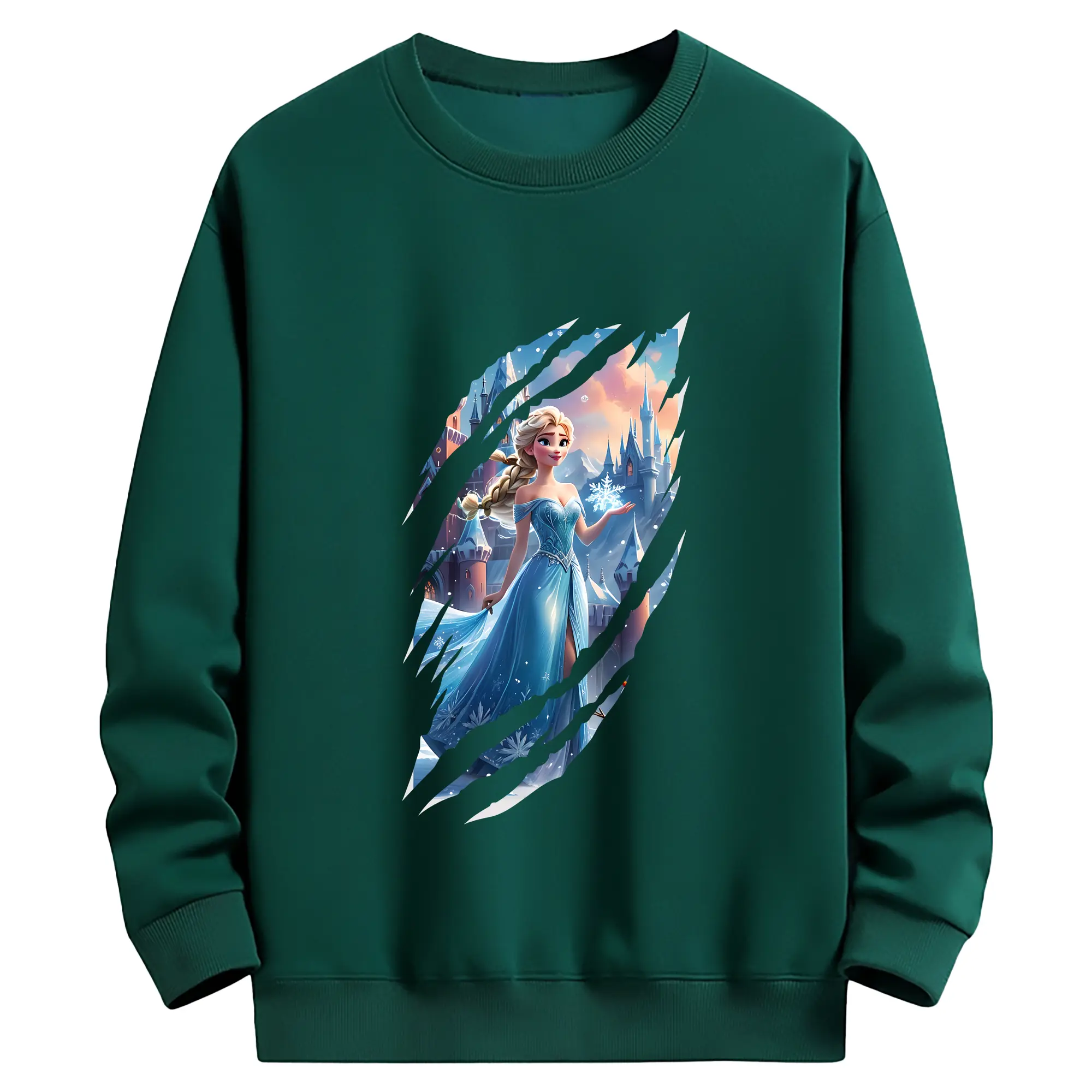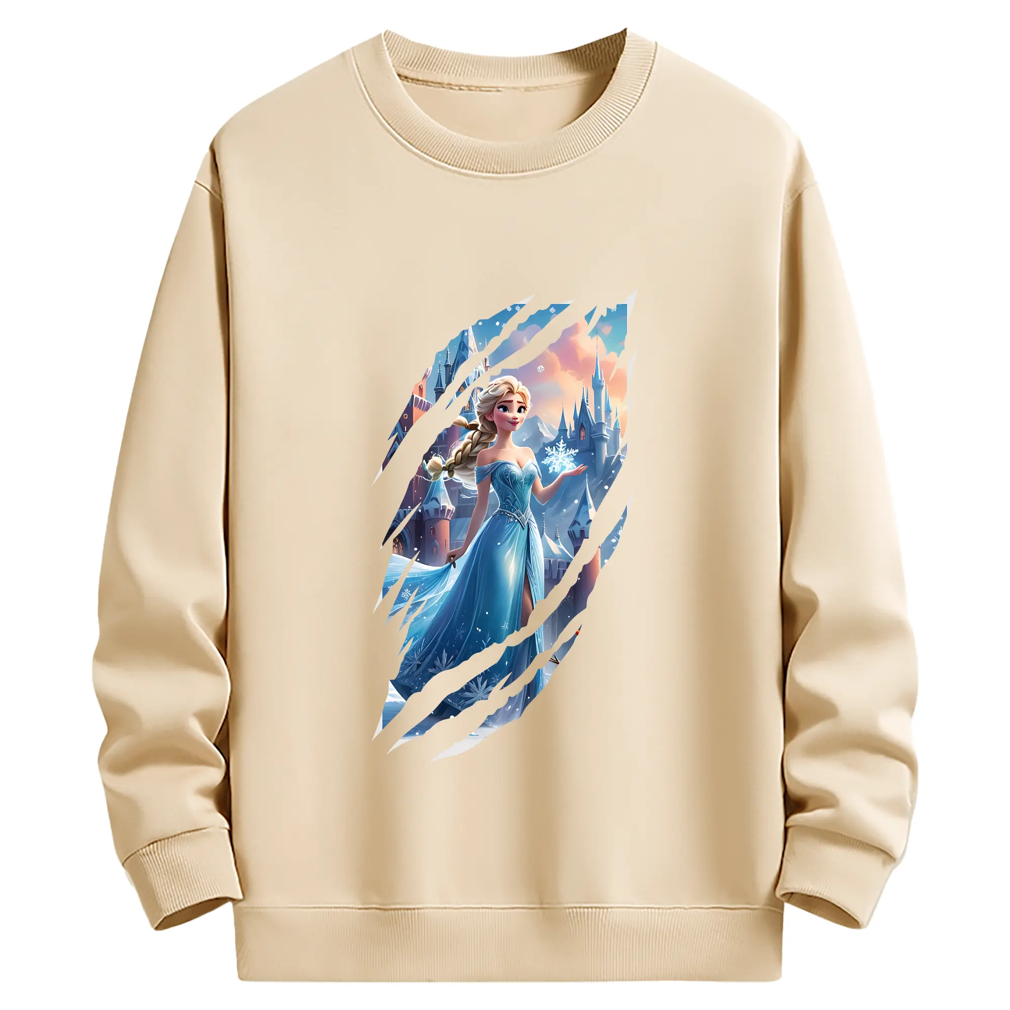 アナと雪の女王(Frozen) グッズ エルサ(Elsa) - 薄手 クルーネック スウェット 裏毛260g · ポリエステル 春秋向け カジュアル 男女兼用 · トレーナー デイリー スポーツ 散歩に最適