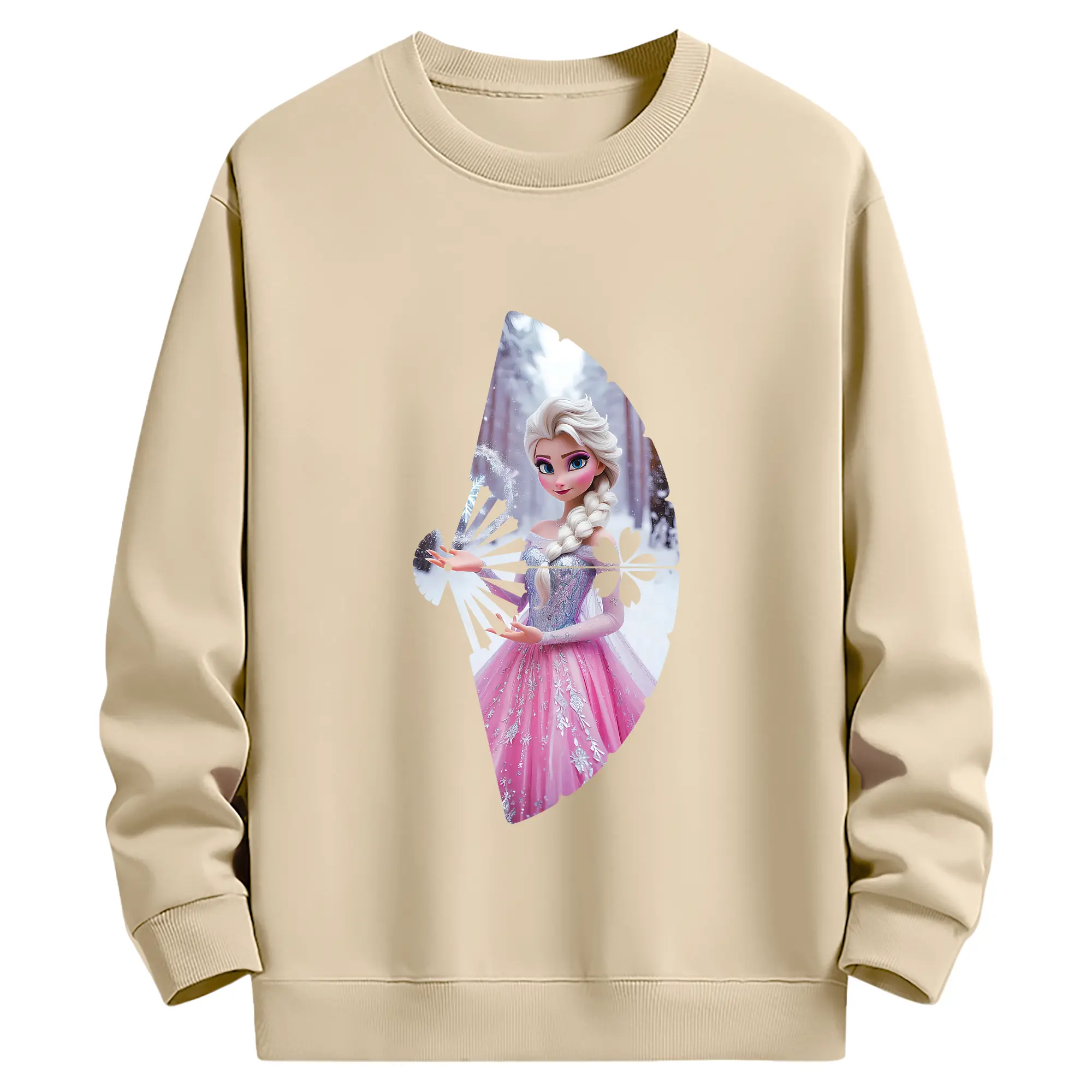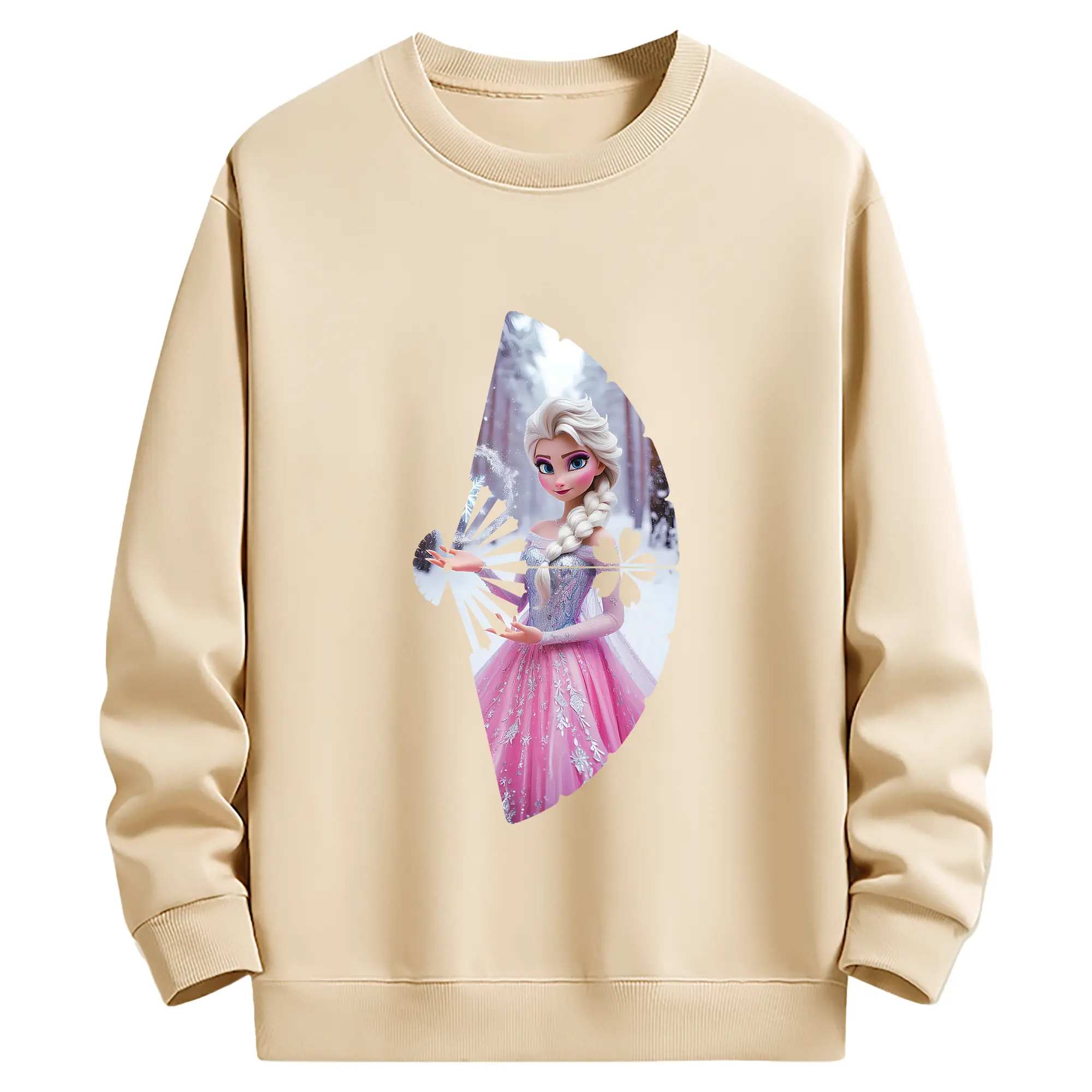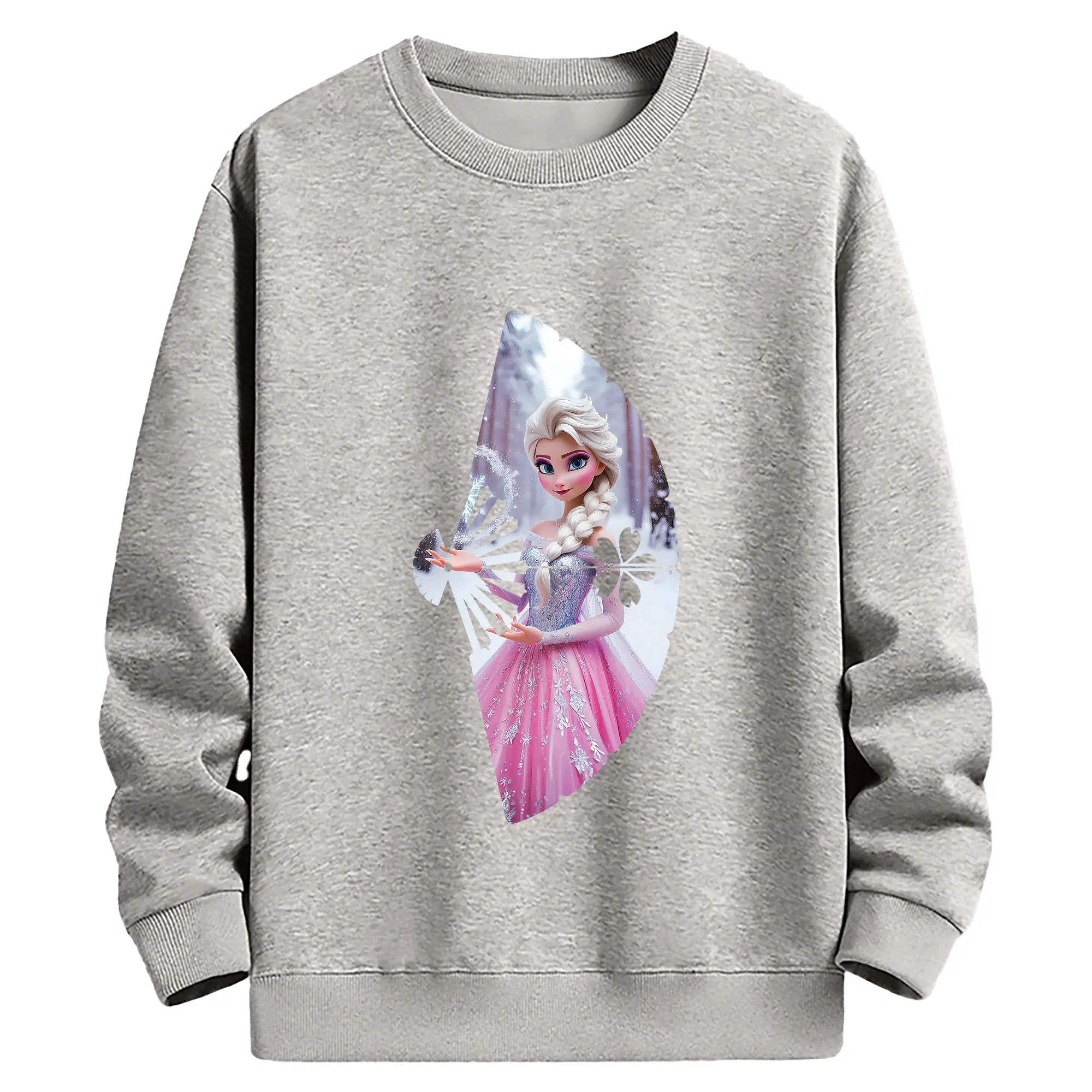 アナと雪の女王(Frozen) グッズ エルサ(Elsa) - 薄手 クルーネック スウェット 裏毛260g · ポリエステル 春秋向け カジュアル 男女兼用 · トレーナー デイリー スポーツ 散歩に最適