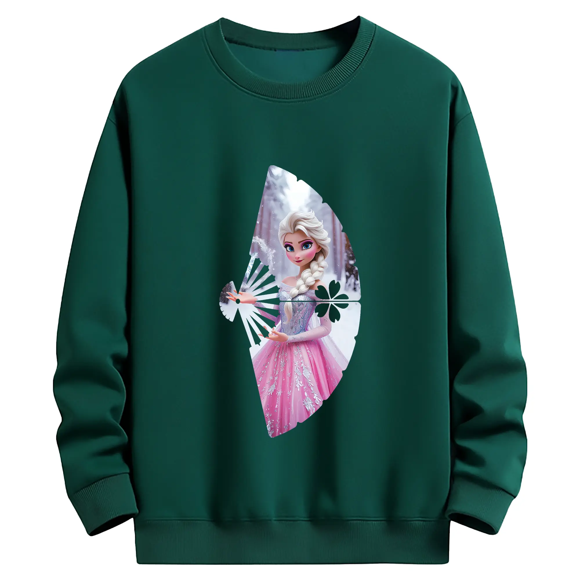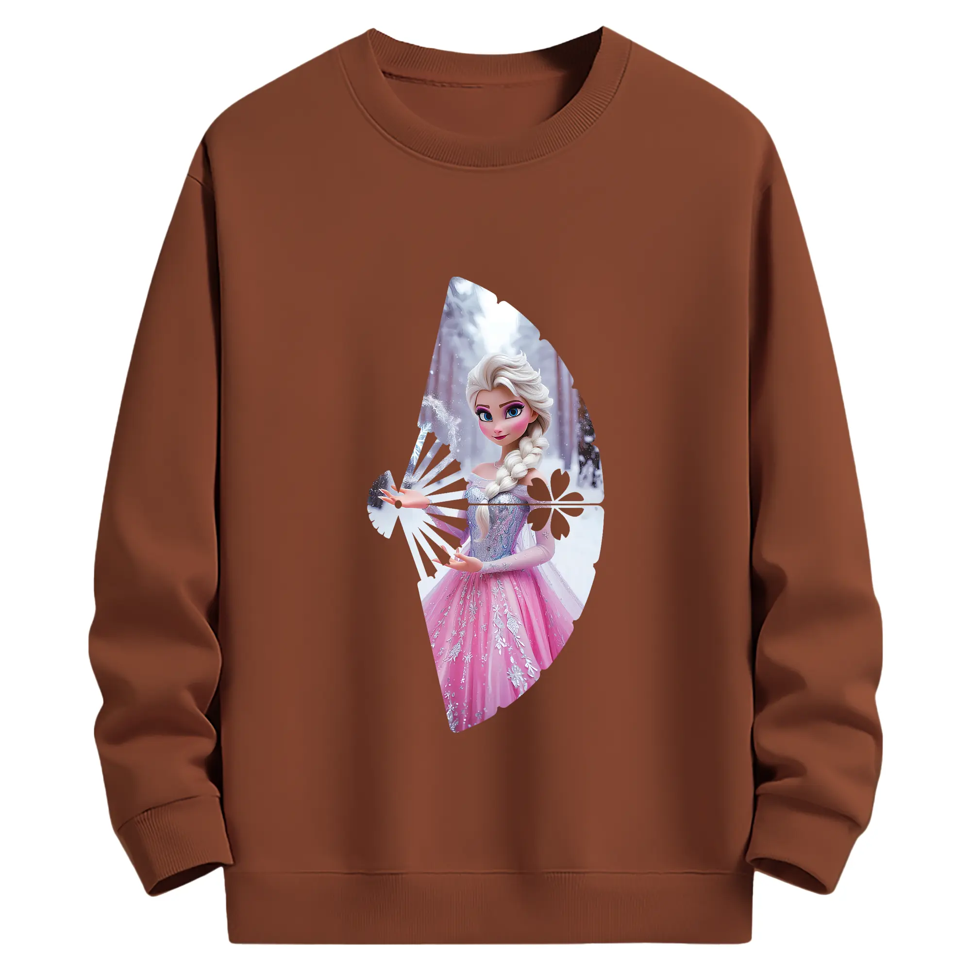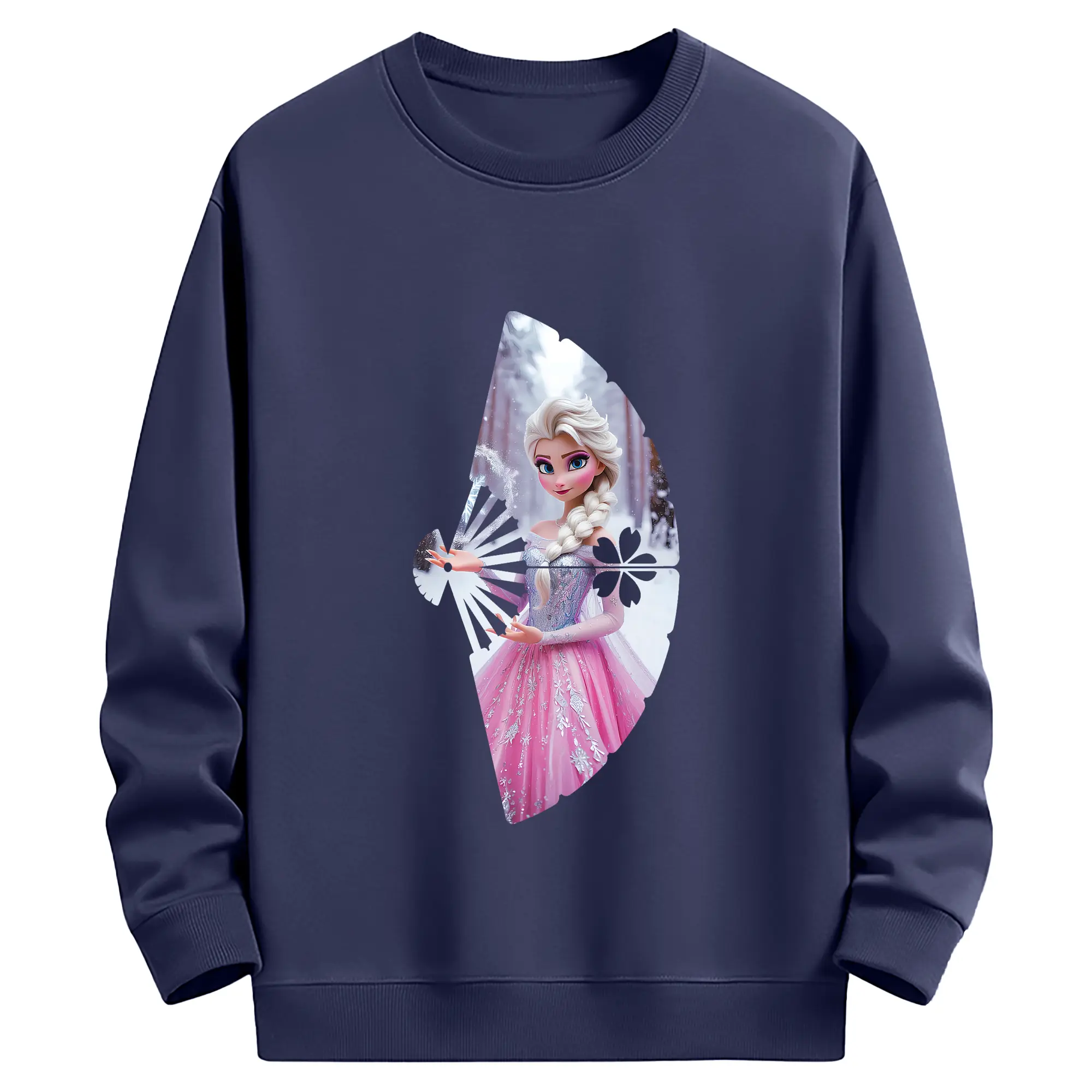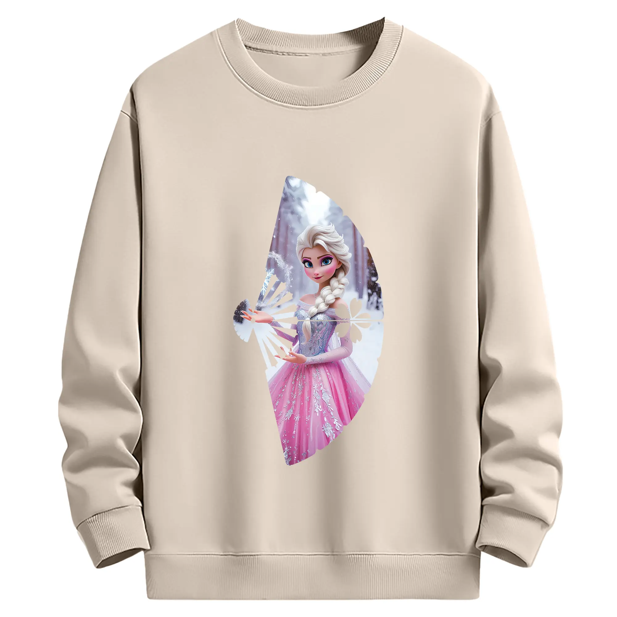 アナと雪の女王(Frozen) グッズ エルサ(Elsa) - 薄手 クルーネック スウェット 裏毛260g · ポリエステル 春秋向け カジュアル 男女兼用 · トレーナー デイリー スポーツ 散歩に最適