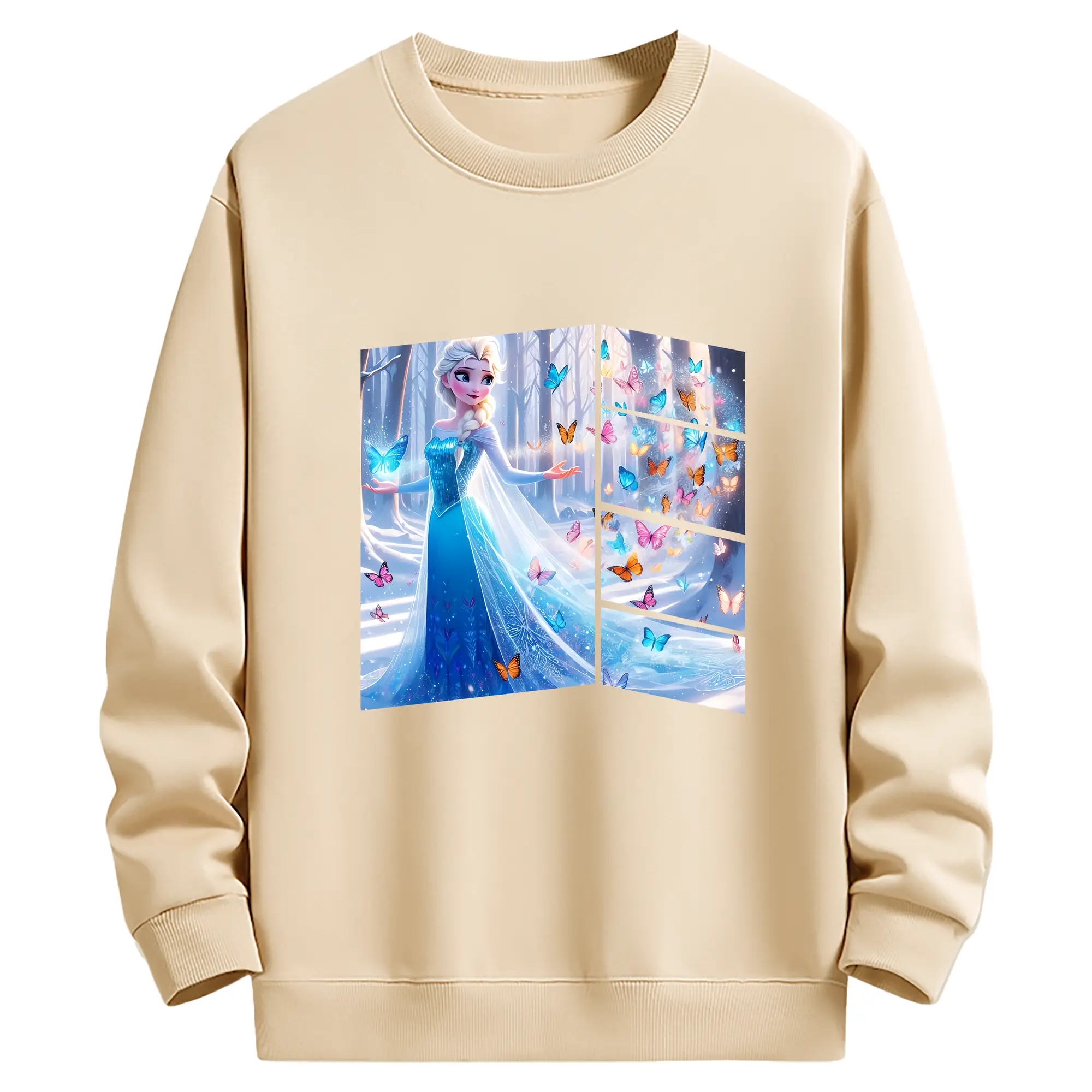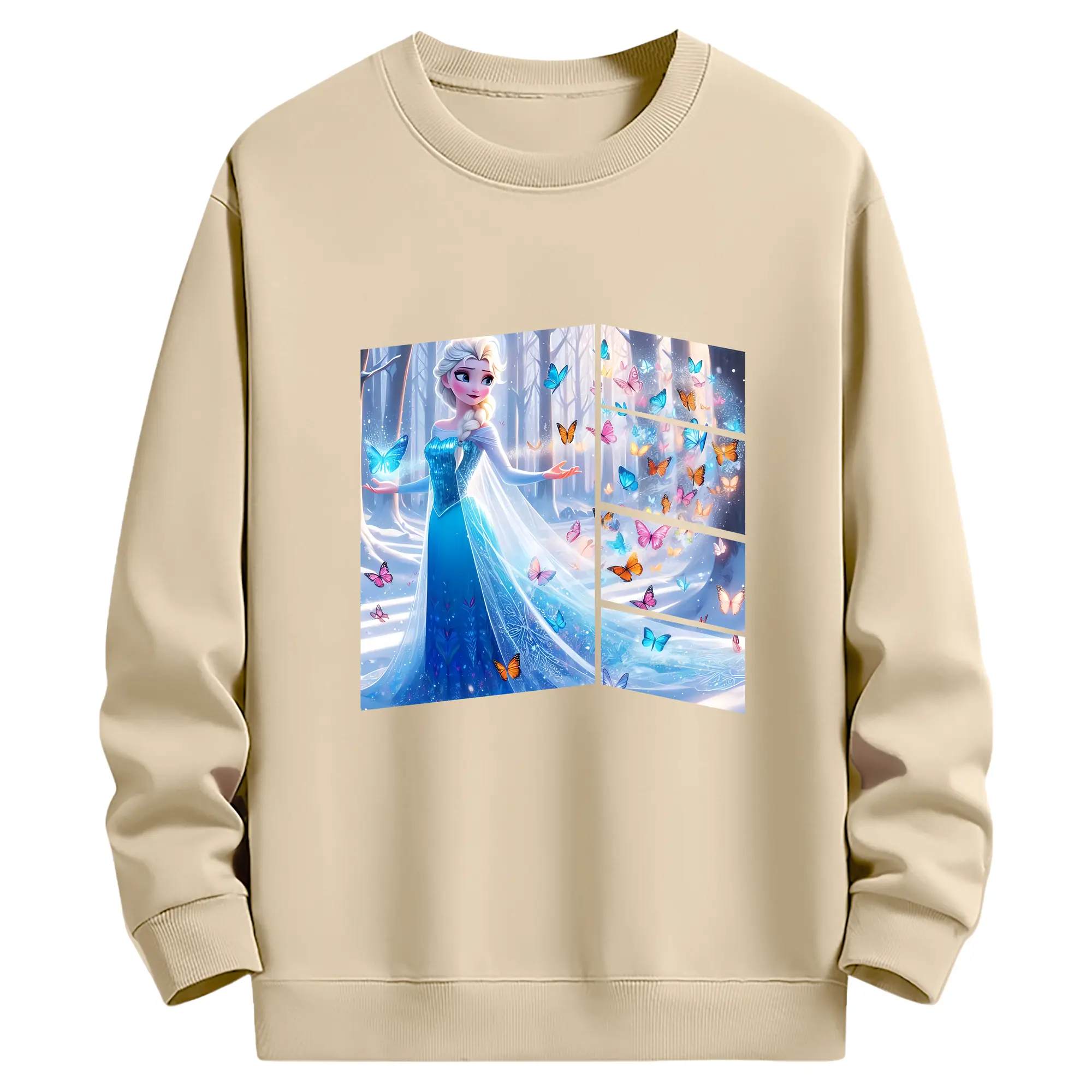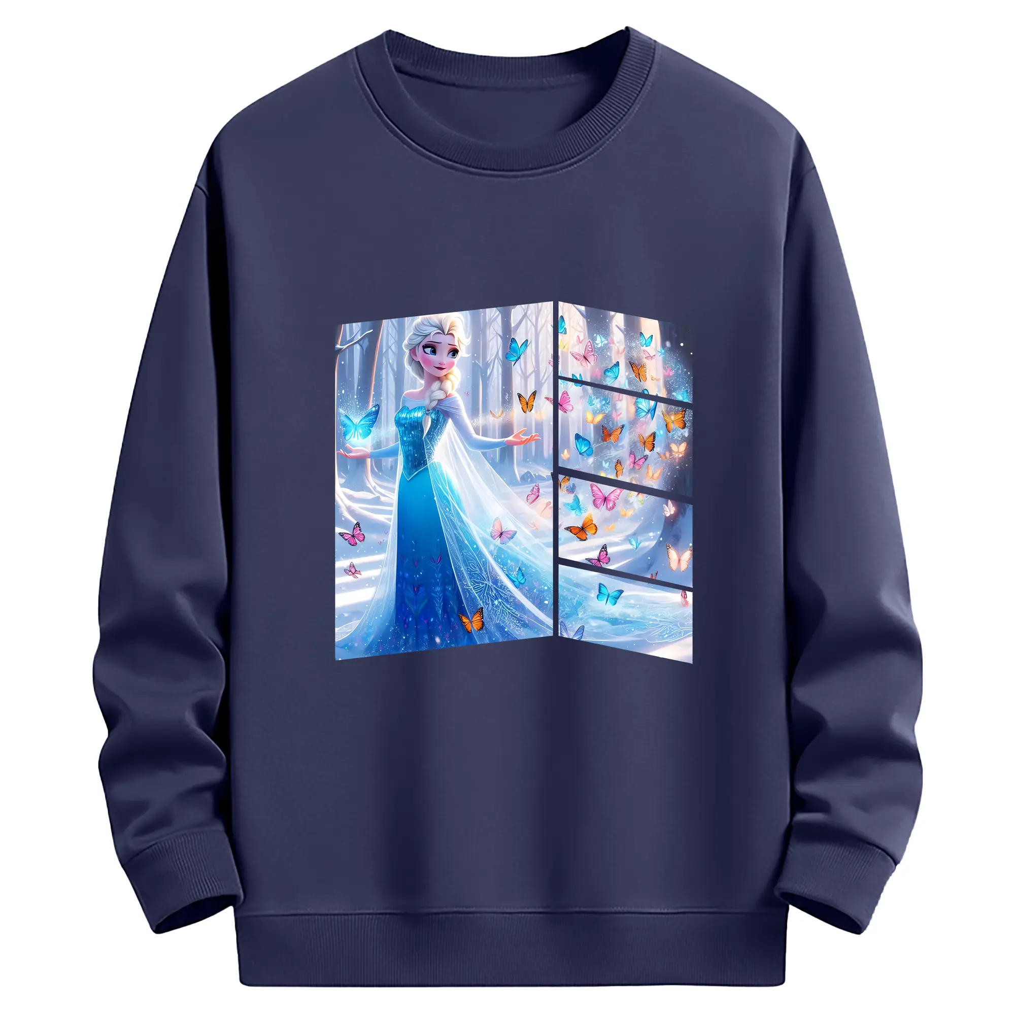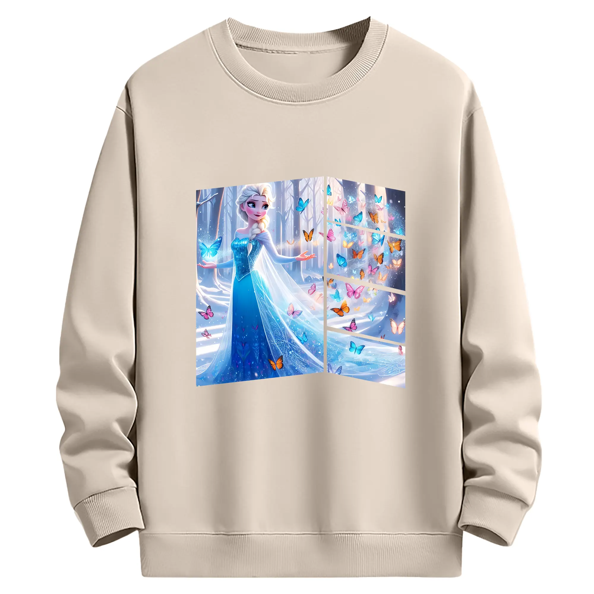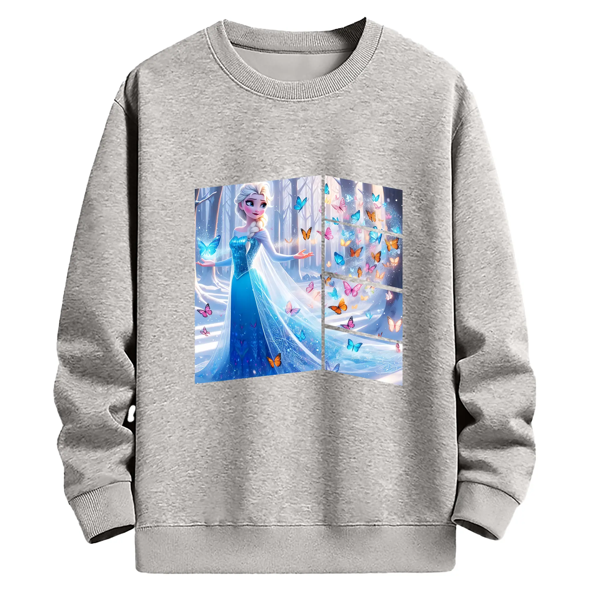 アナと雪の女王(Frozen) グッズ エルサ(Elsa) - 薄手 クルーネック スウェット 裏毛260g · ポリエステル 春秋向け カジュアル 男女兼用 · トレーナー デイリー スポーツ 散歩に最適