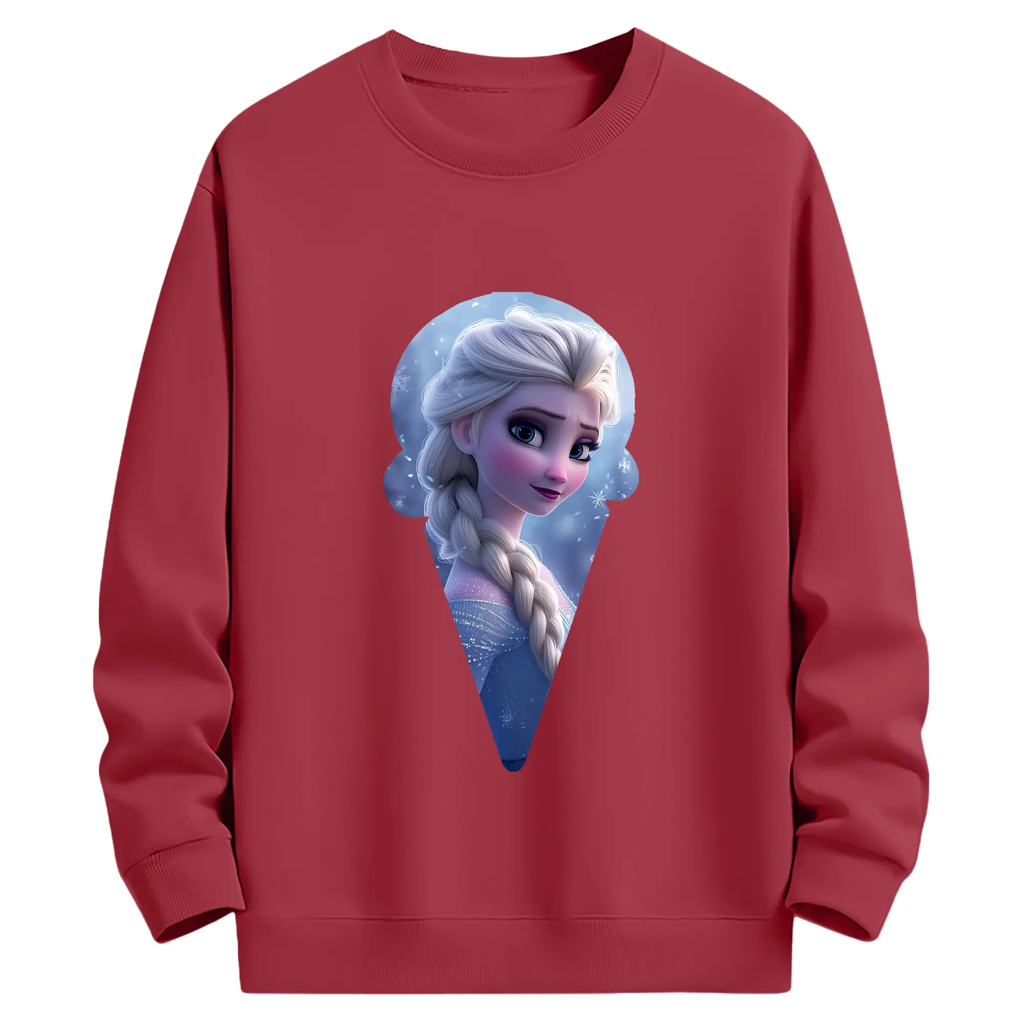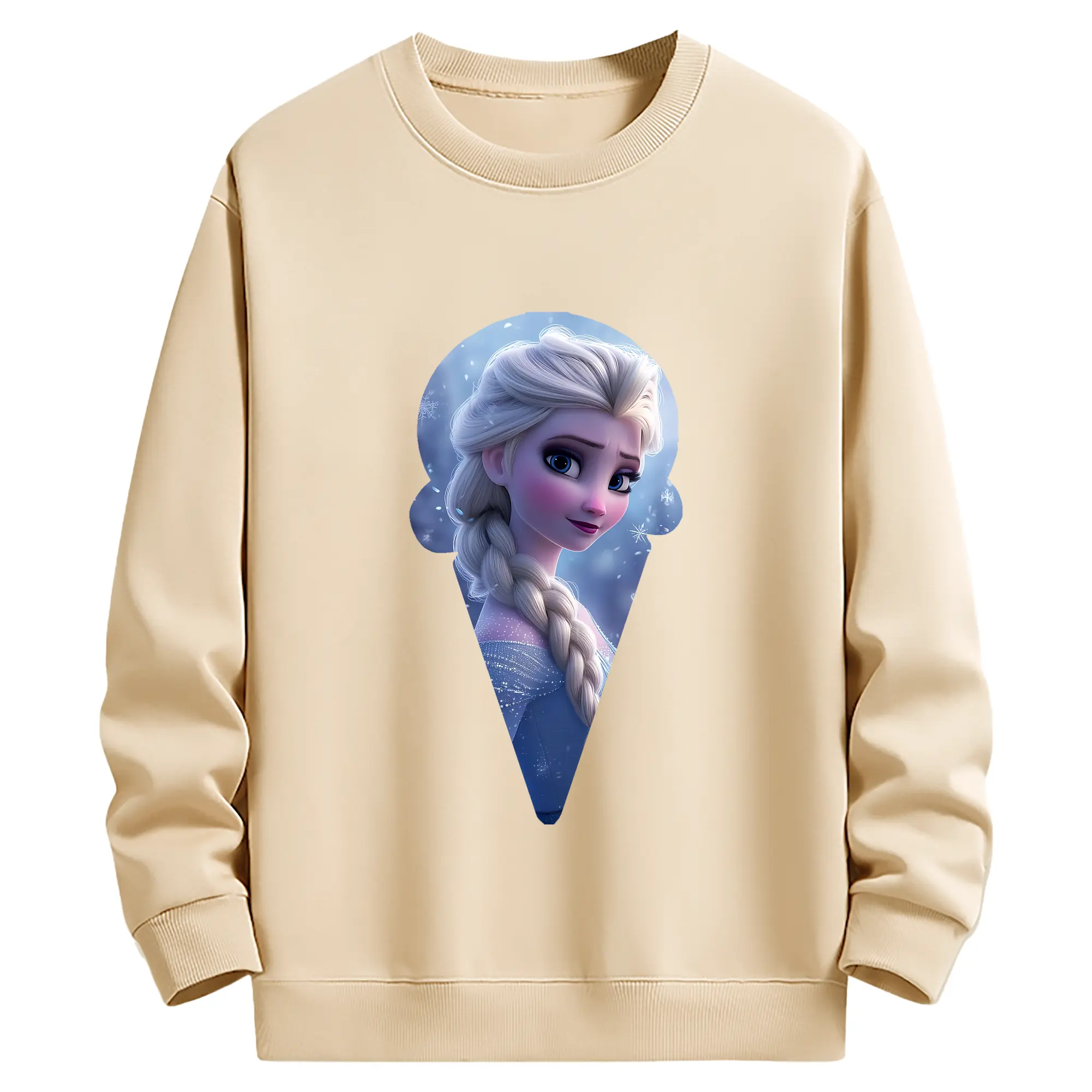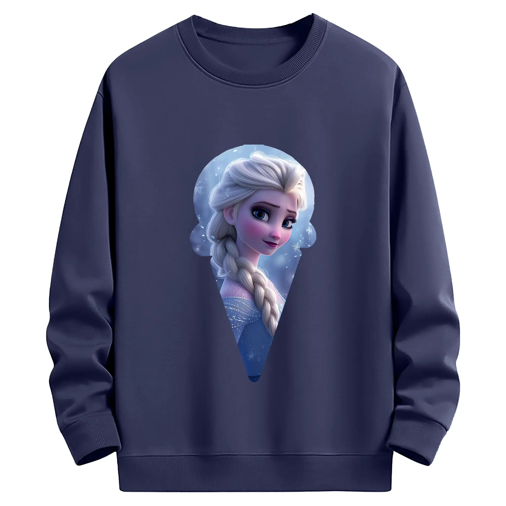アナと雪の女王(Frozen) グッズ エルサ(Elsa) - 薄手 クルーネック スウェット 裏毛260g · ポリエステル 春秋向け カジュアル 男女兼用 · トレーナー デイリー スポーツ 散歩に最適