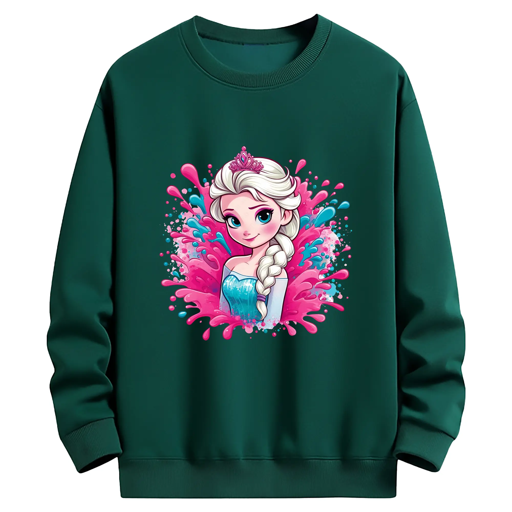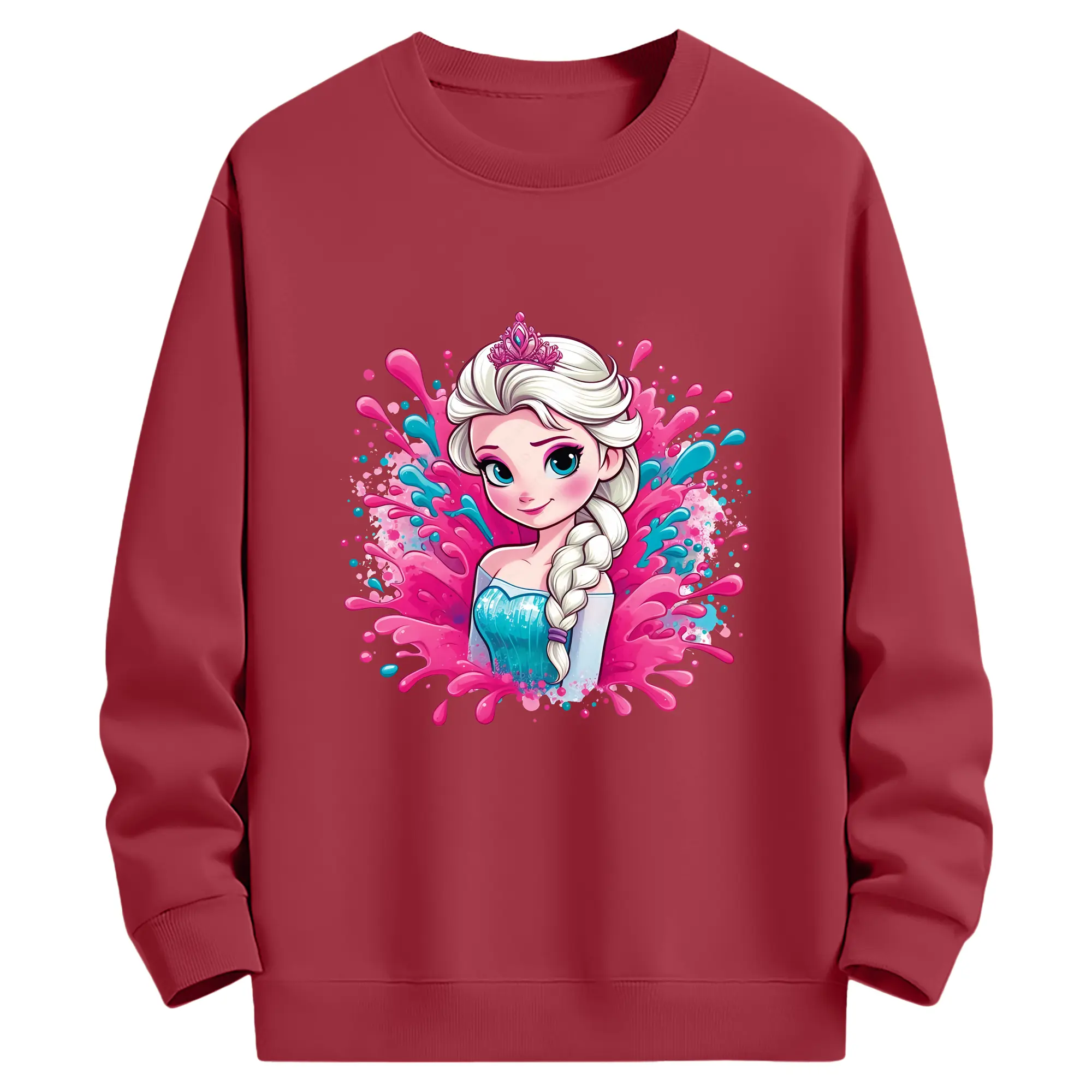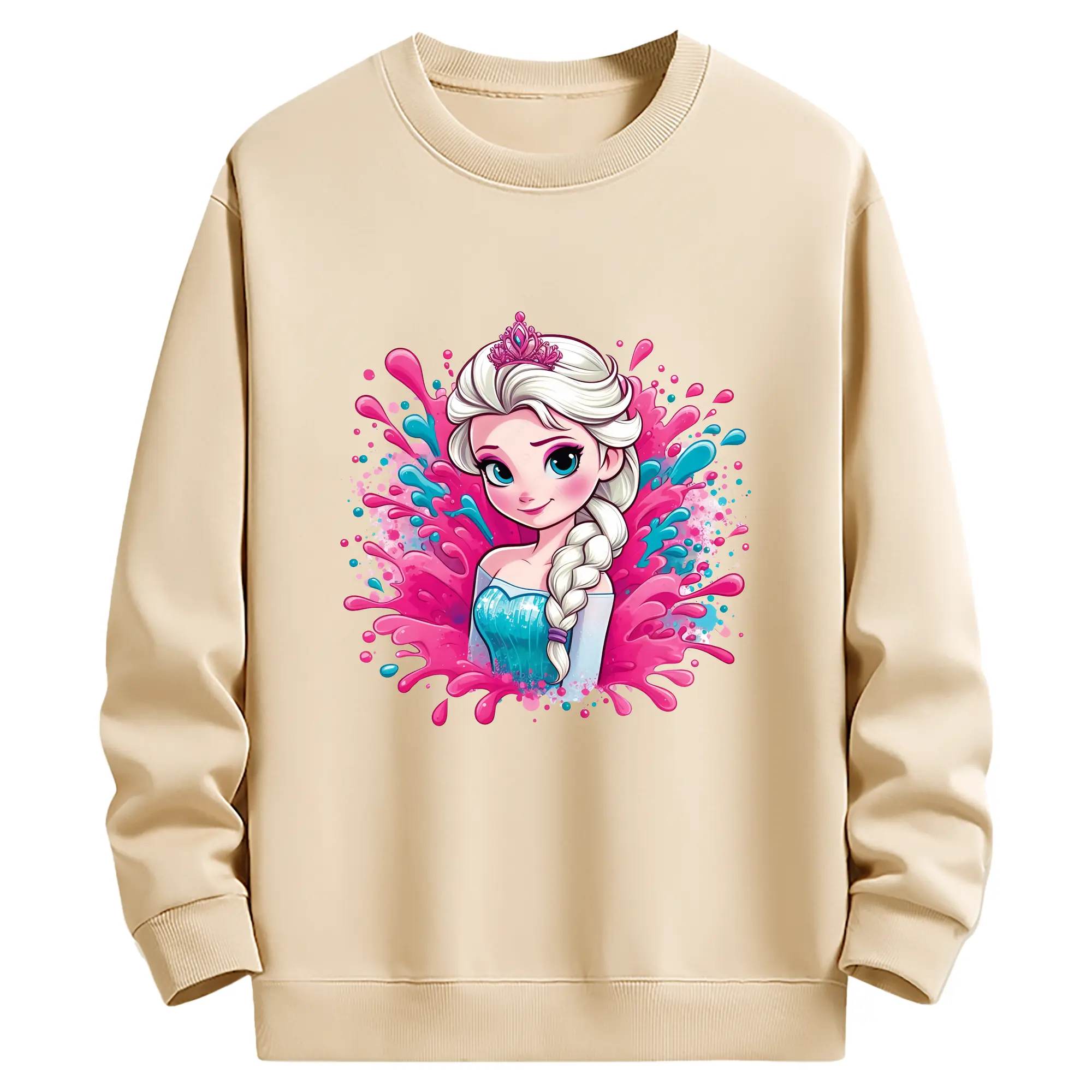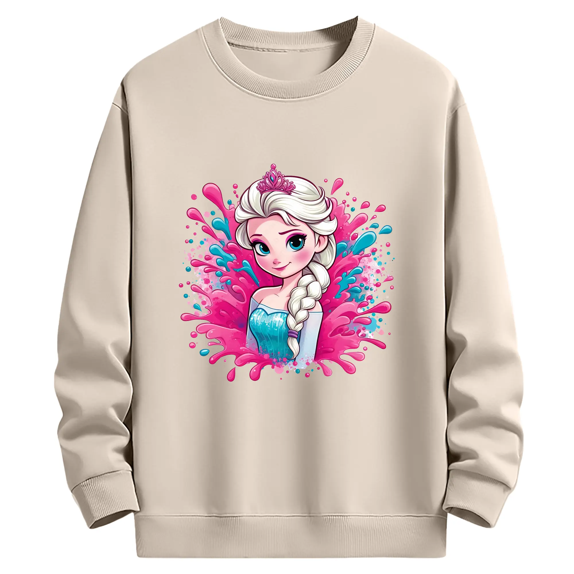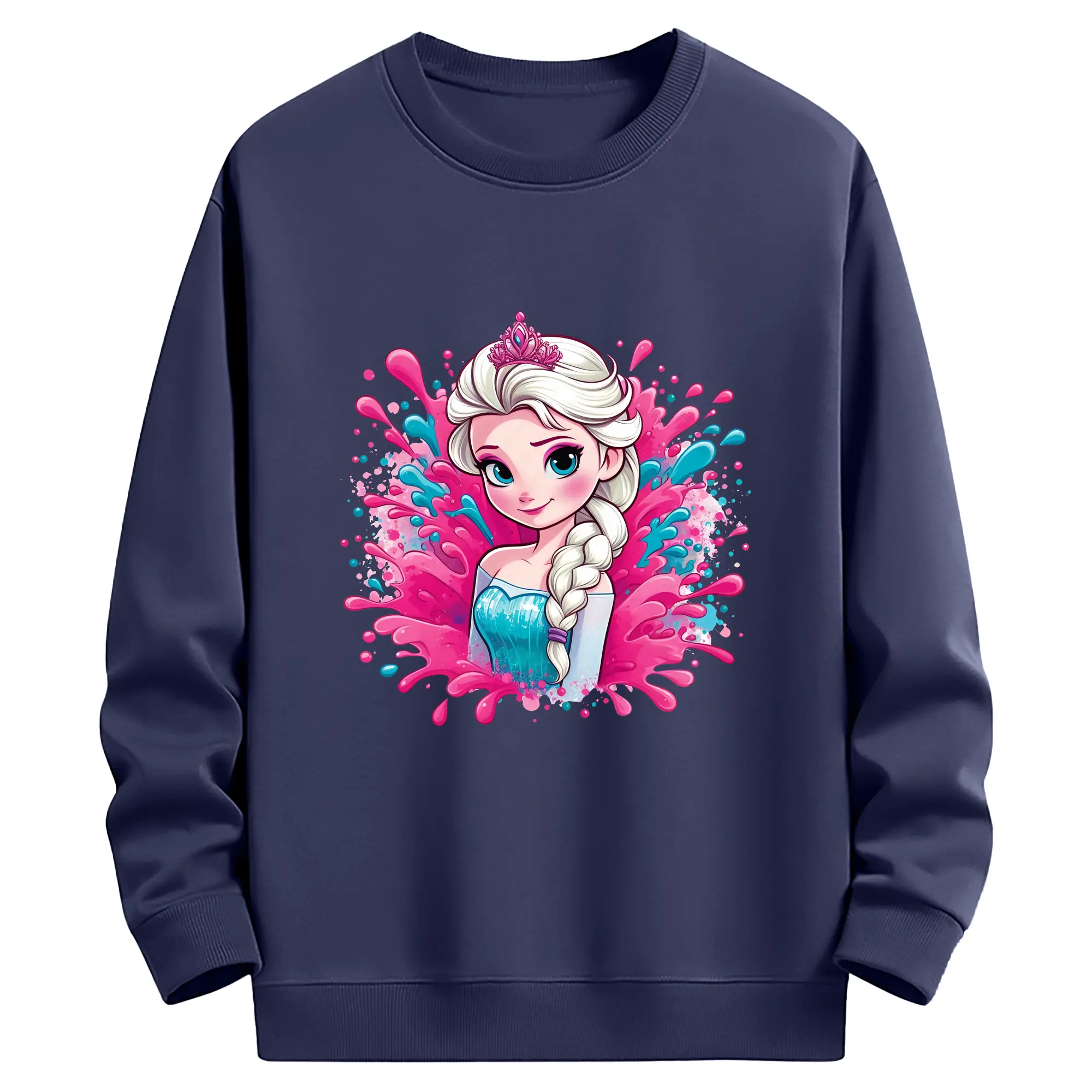 アナと雪の女王(Frozen) グッズ エルサ(Elsa) - 薄手 クルーネック スウェット 裏毛260g · ポリエステル 春秋向け カジュアル 男女兼用 · トレーナー デイリー スポーツ 散歩に最適