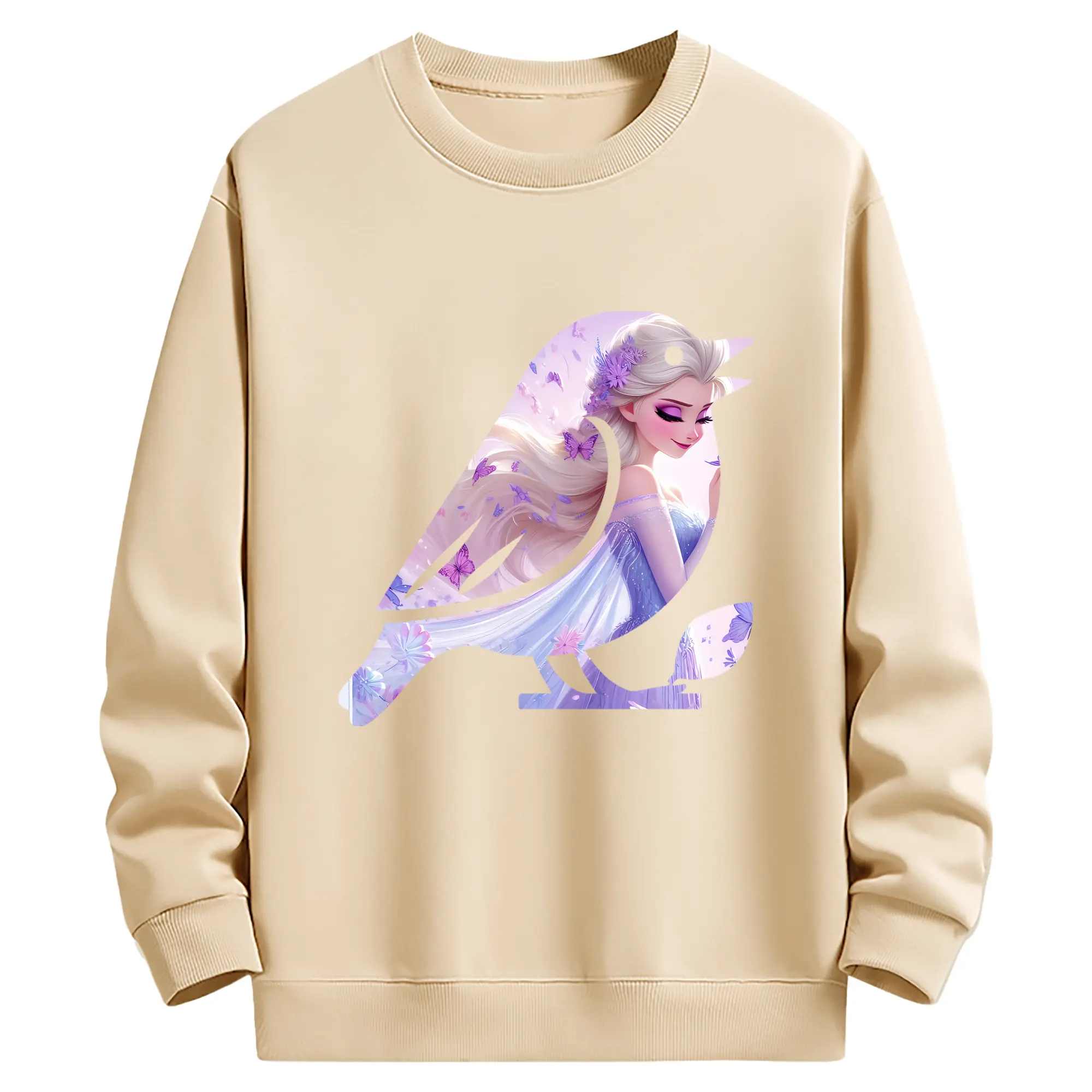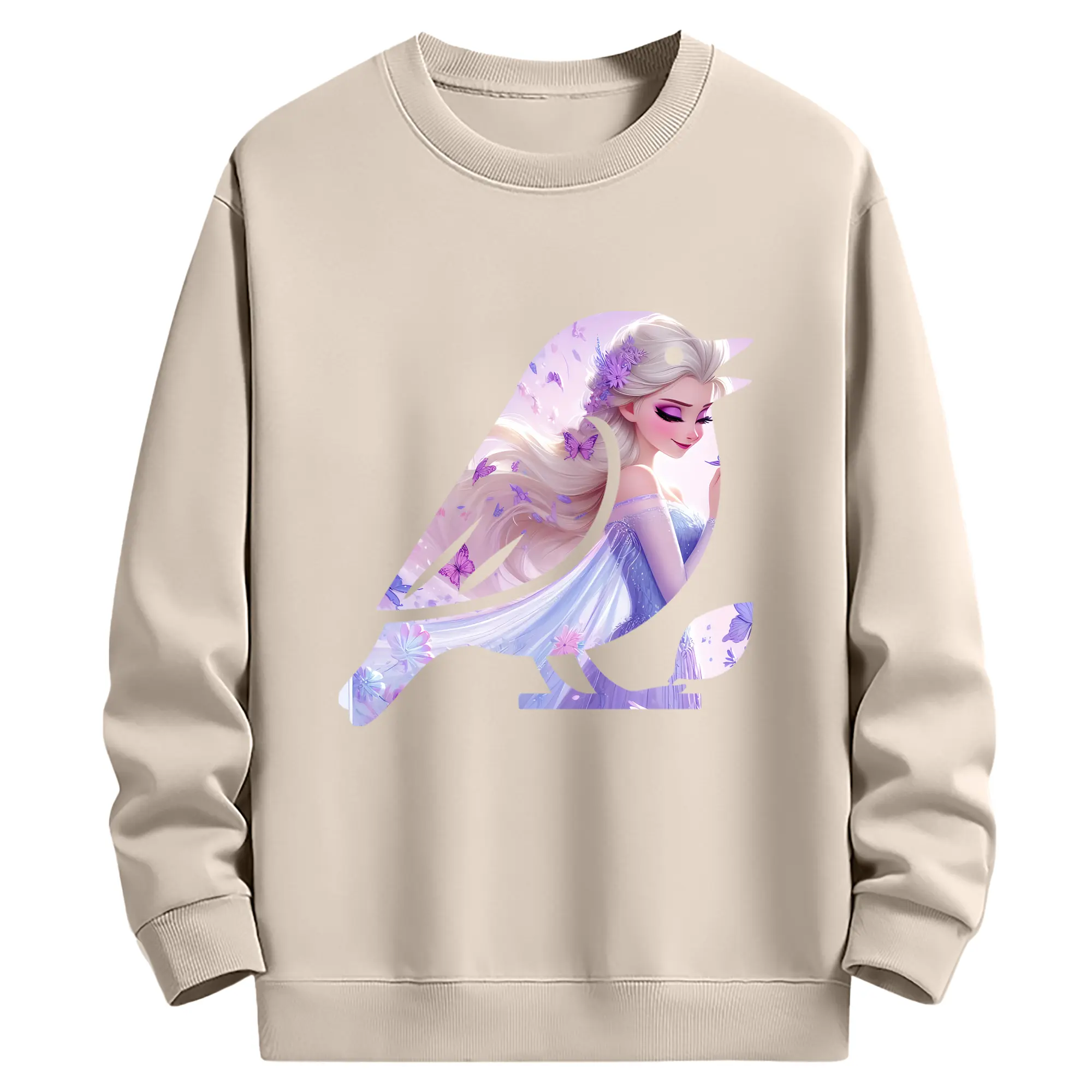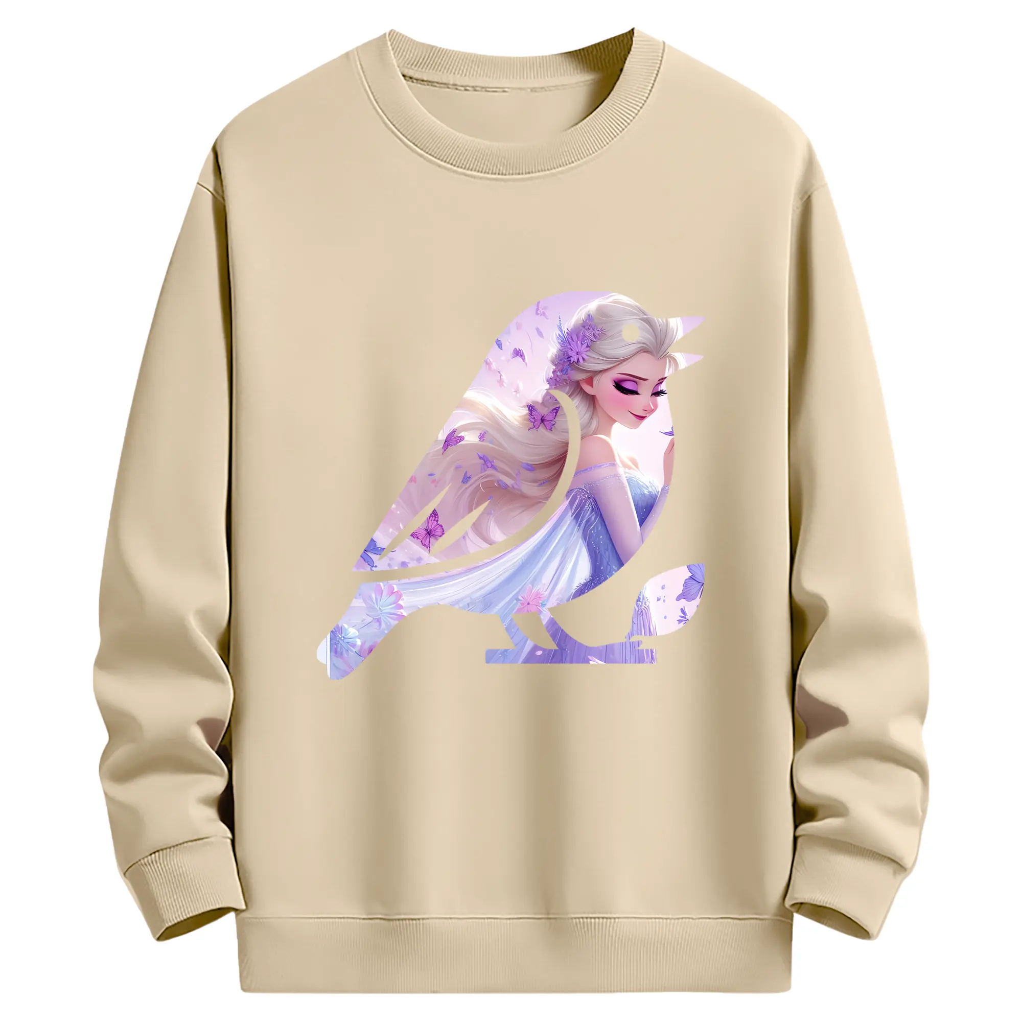 アナと雪の女王(Frozen) グッズ エルサ(Elsa) - 薄手 クルーネック スウェット 裏毛260g · ポリエステル 春秋向け カジュアル 男女兼用 · トレーナー デイリー スポーツ 散歩に最適
