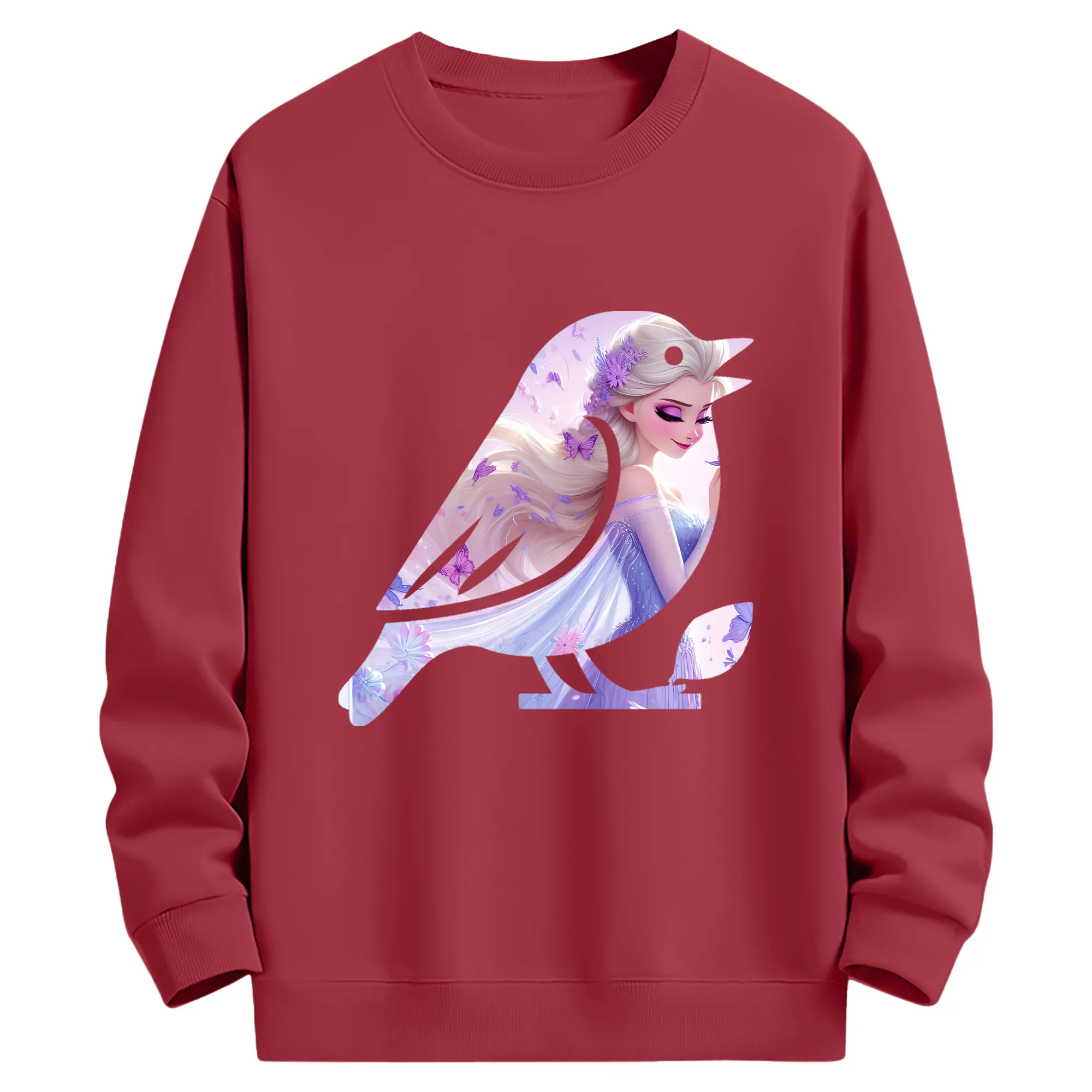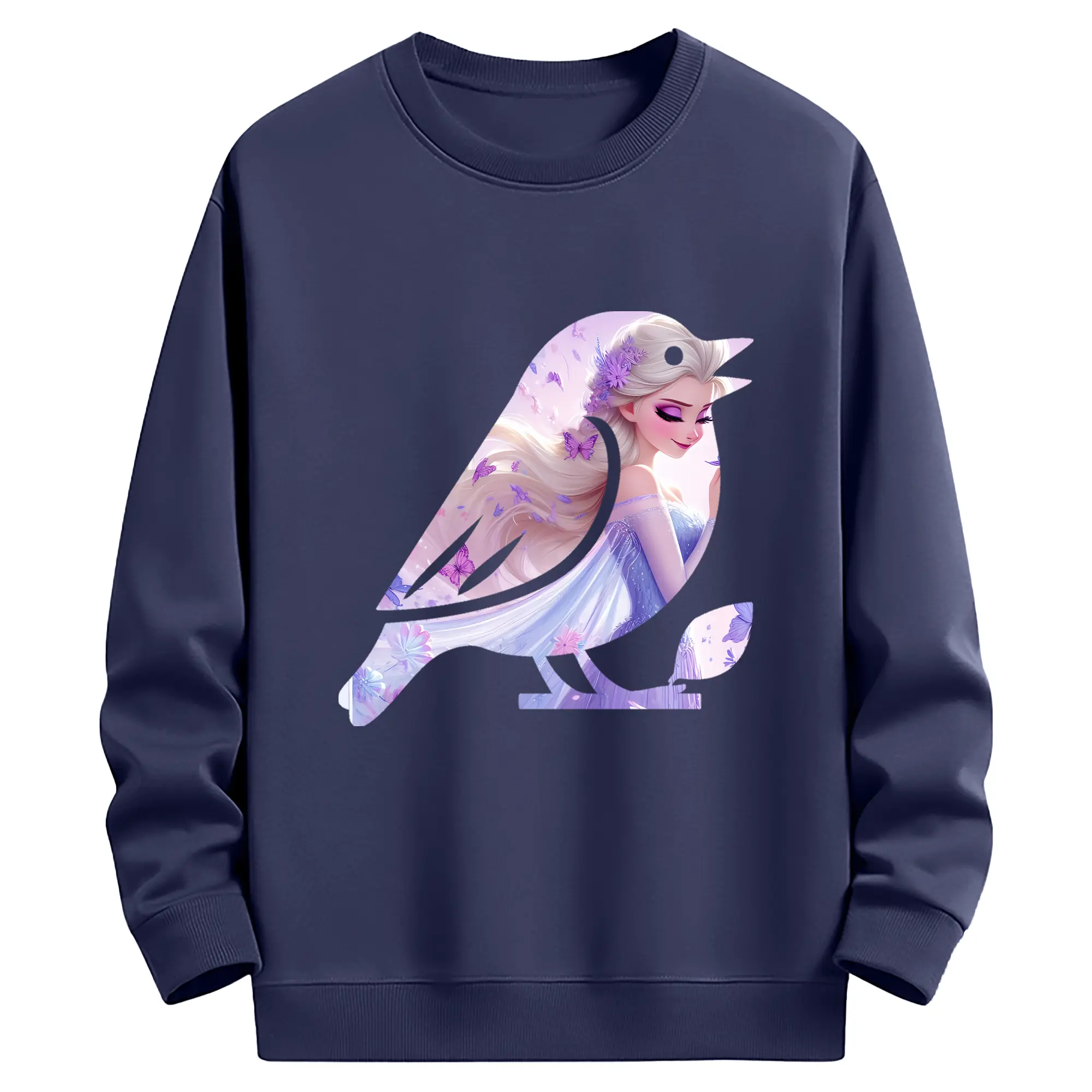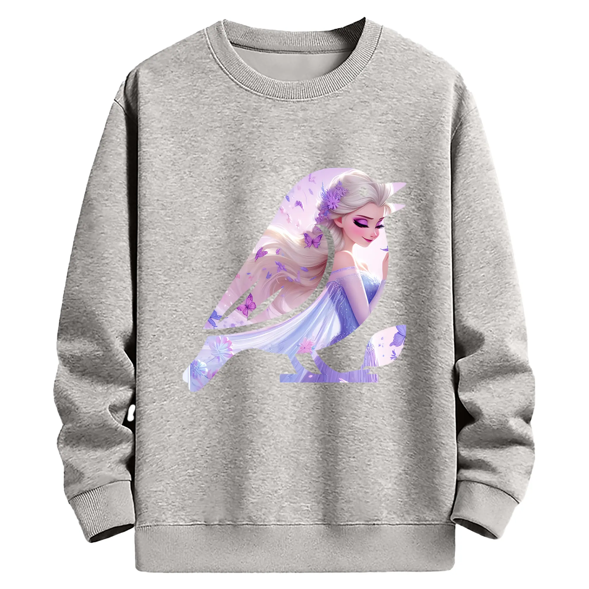 アナと雪の女王(Frozen) グッズ エルサ(Elsa) - 薄手 クルーネック スウェット 裏毛260g · ポリエステル 春秋向け カジュアル 男女兼用 · トレーナー デイリー スポーツ 散歩に最適