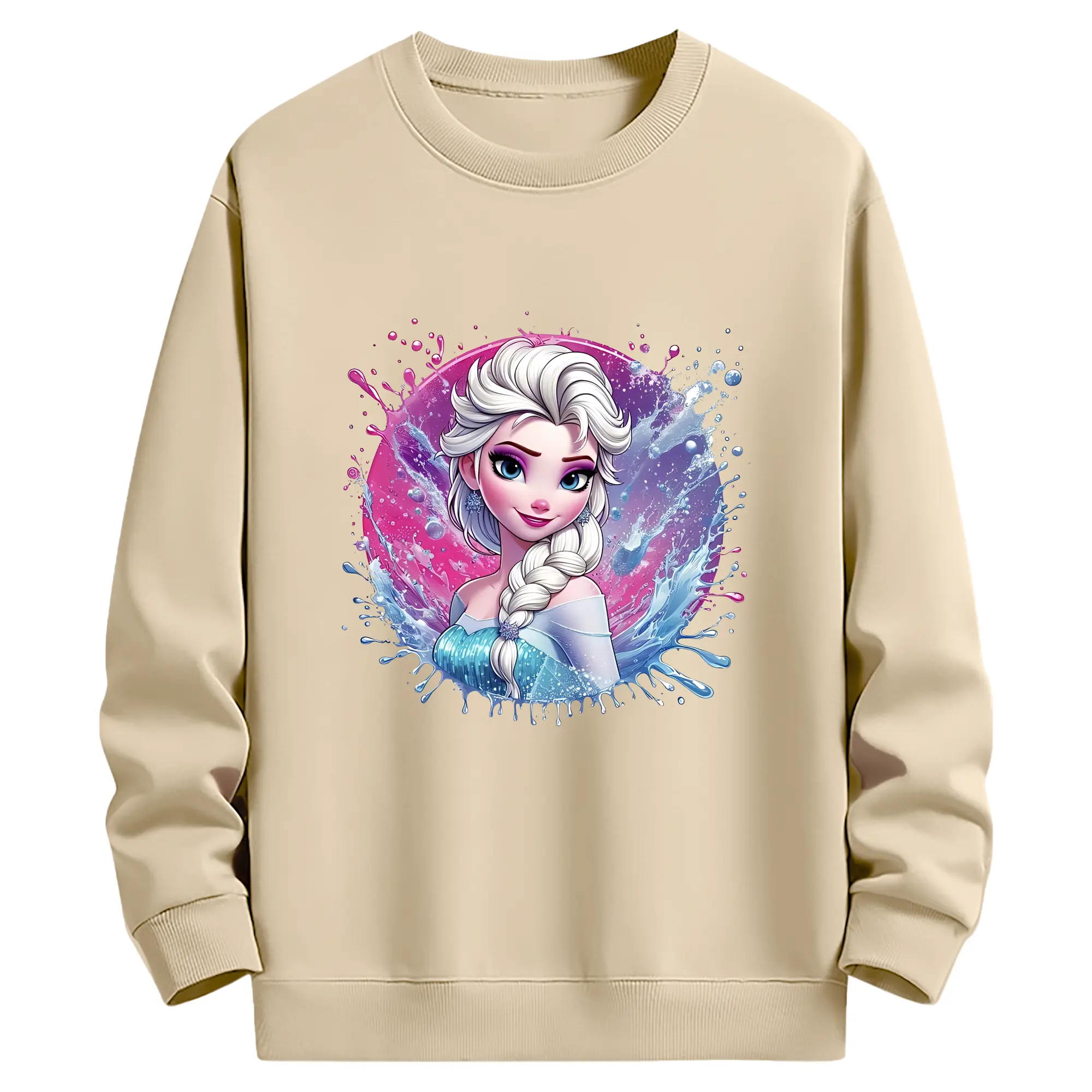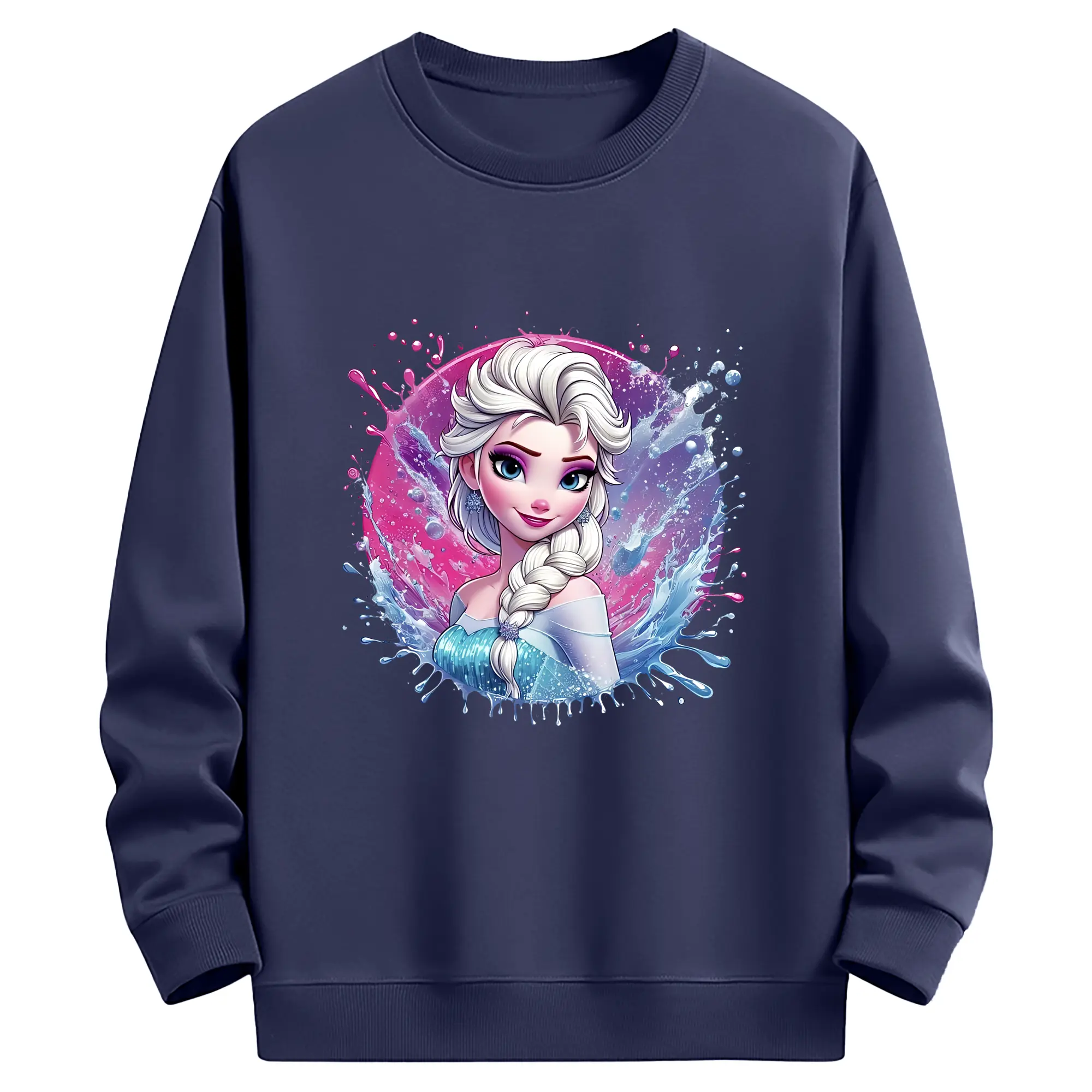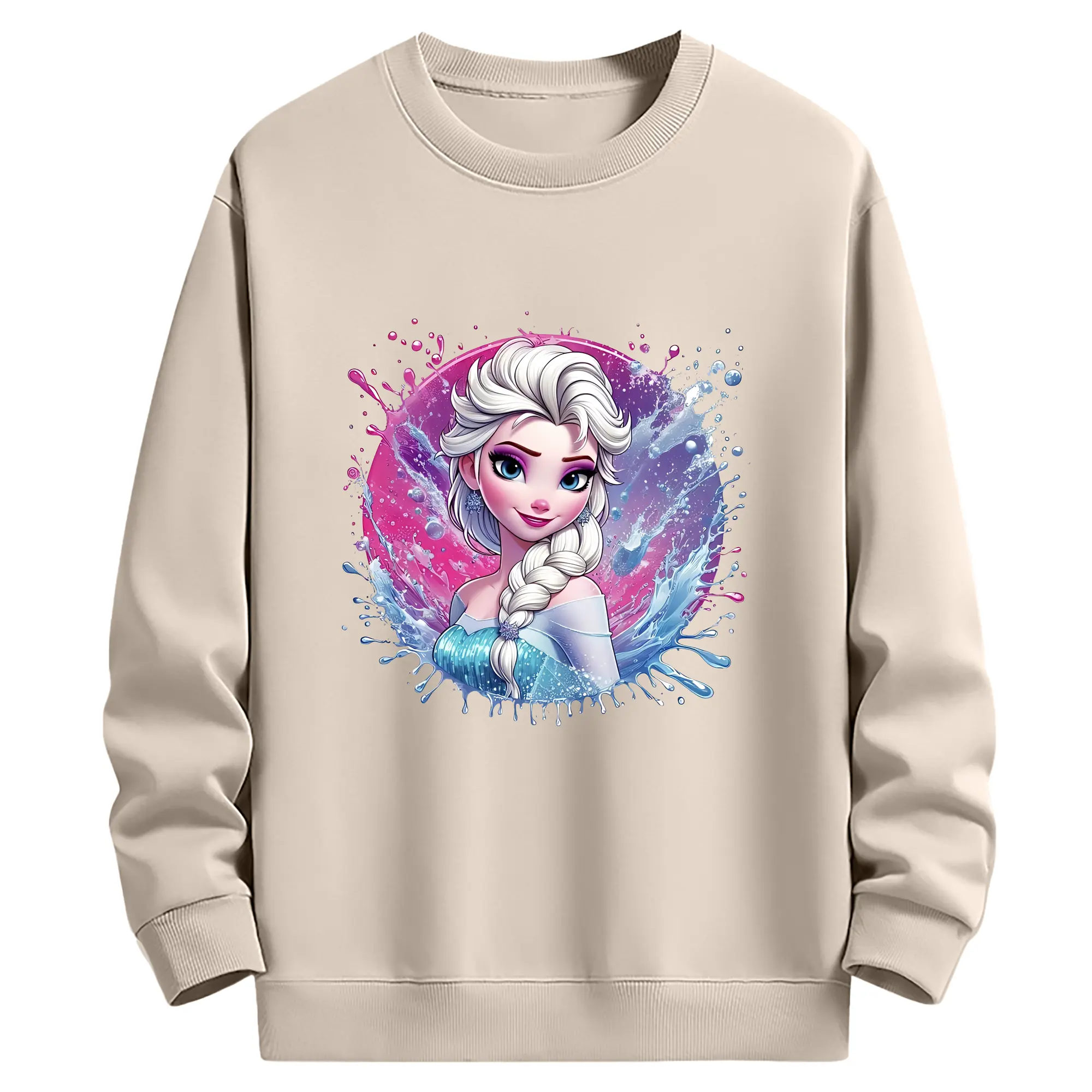 アナと雪の女王(Frozen) グッズ エルサ(Elsa) - 薄手 クルーネック スウェット 裏毛260g · ポリエステル 春秋向け カジュアル 男女兼用 · トレーナー デイリー スポーツ 散歩に最適