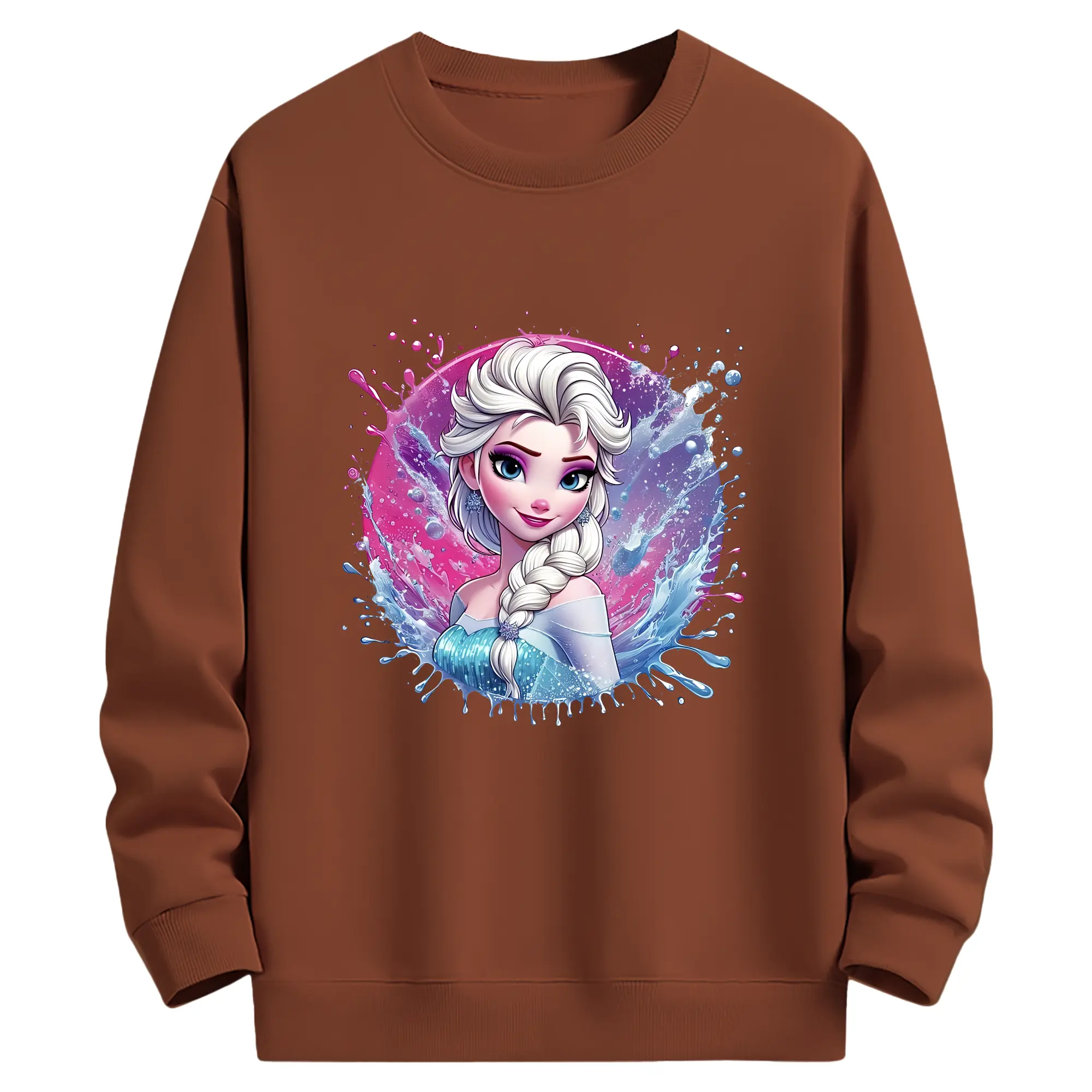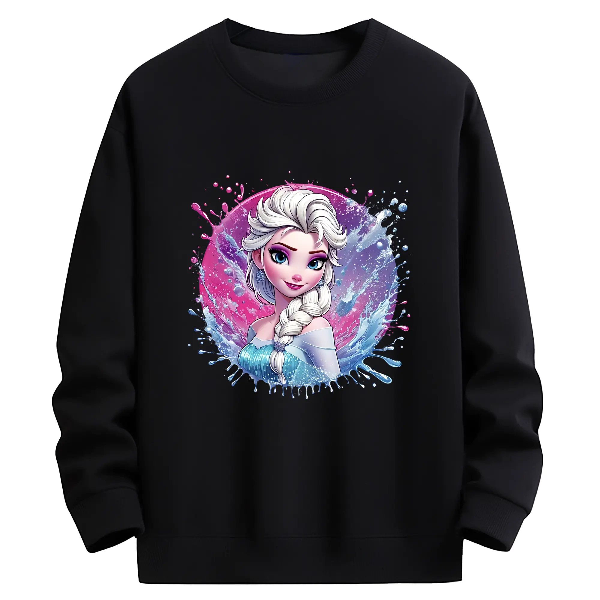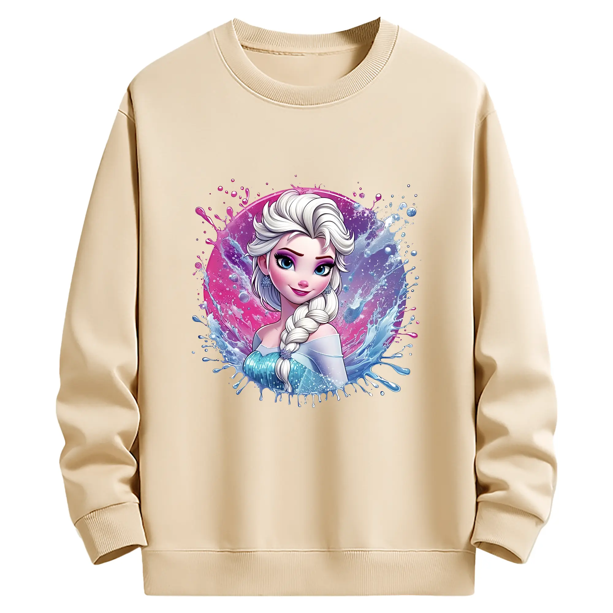 アナと雪の女王(Frozen) グッズ エルサ(Elsa) - 薄手 クルーネック スウェット 裏毛260g · ポリエステル 春秋向け カジュアル 男女兼用 · トレーナー デイリー スポーツ 散歩に最適