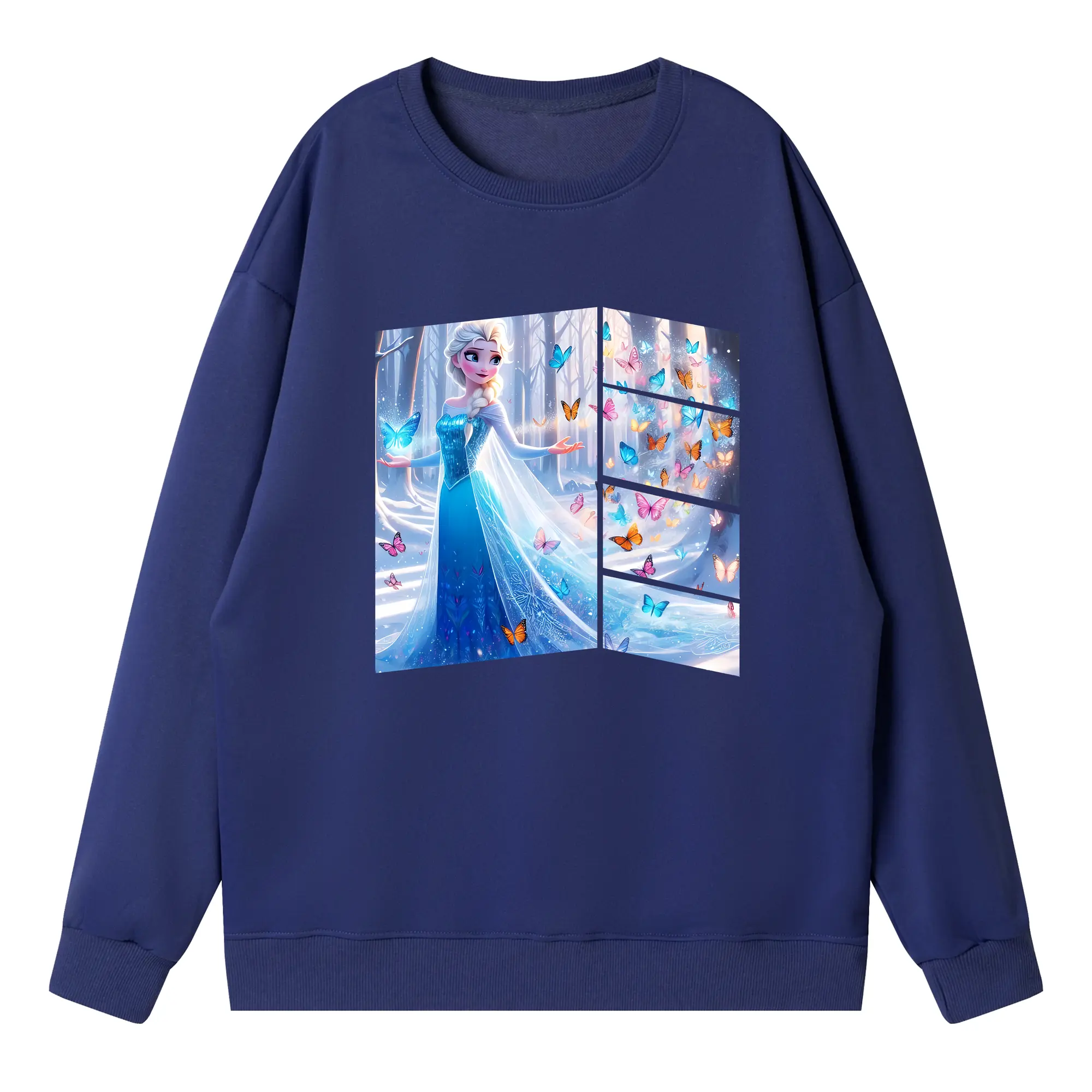 アナと雪の女王(Frozen) グッズ エルサ(Elsa) - 高品質 クルーネック スウェット ・ コットン59% ポリエステル41% ・ ユニセックス 長袖 トレーナー ・ カジュアル デイリー スポーツ 散歩用