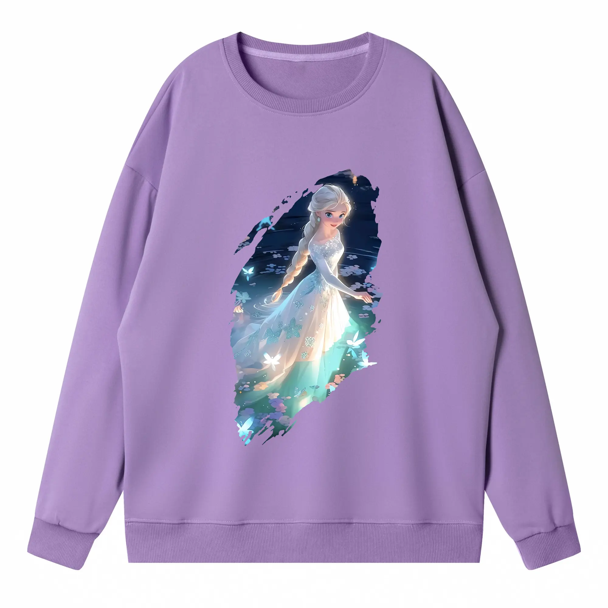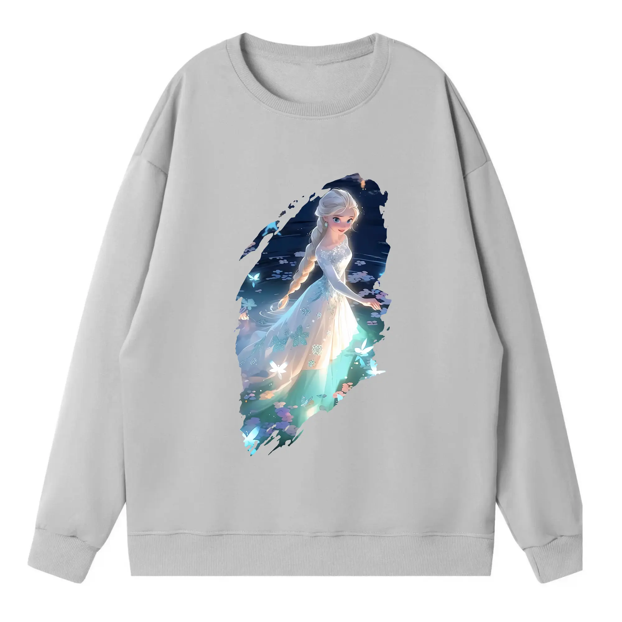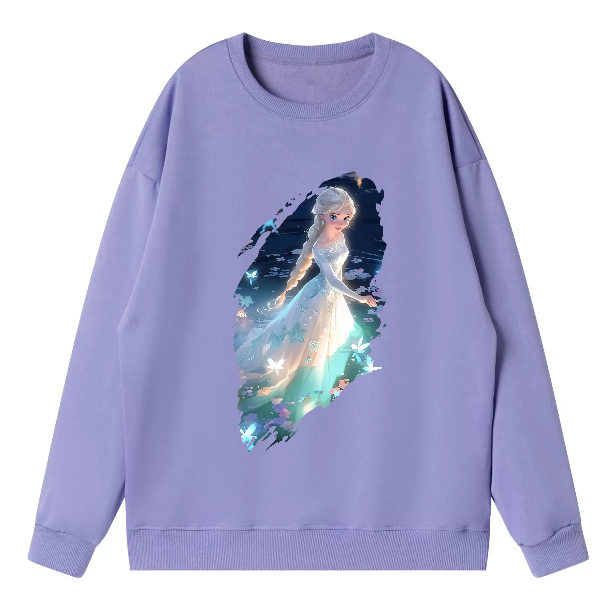 アナと雪の女王(Frozen) グッズ エルサ(Elsa) - 薄手 クルーネック スウェット 裏毛260g · ポリエステル 春秋向け カジュアル 男女兼用 · トレーナー デイリー スポーツ 散歩に最適