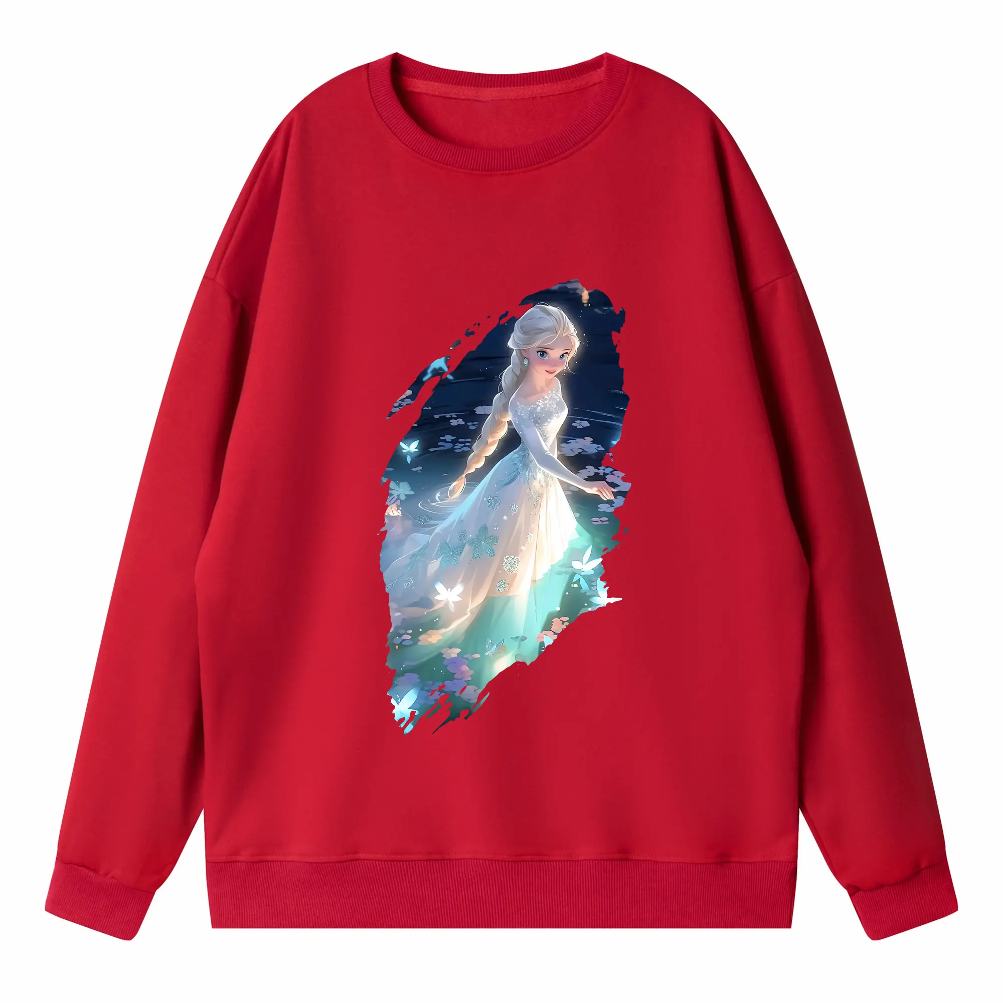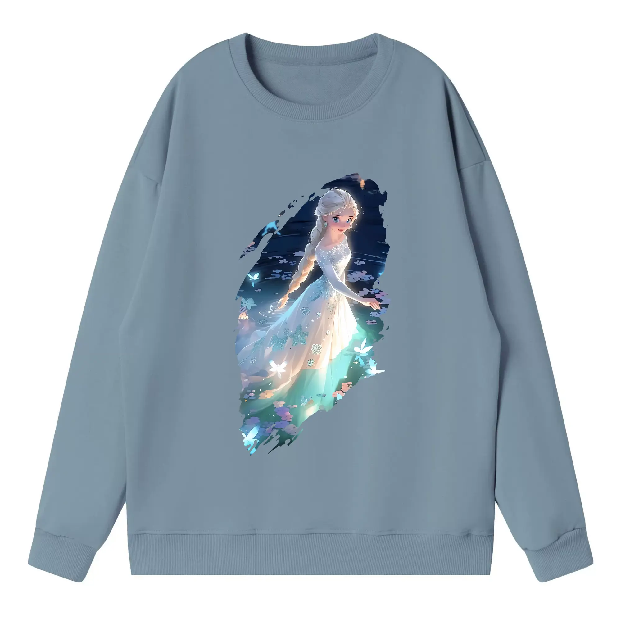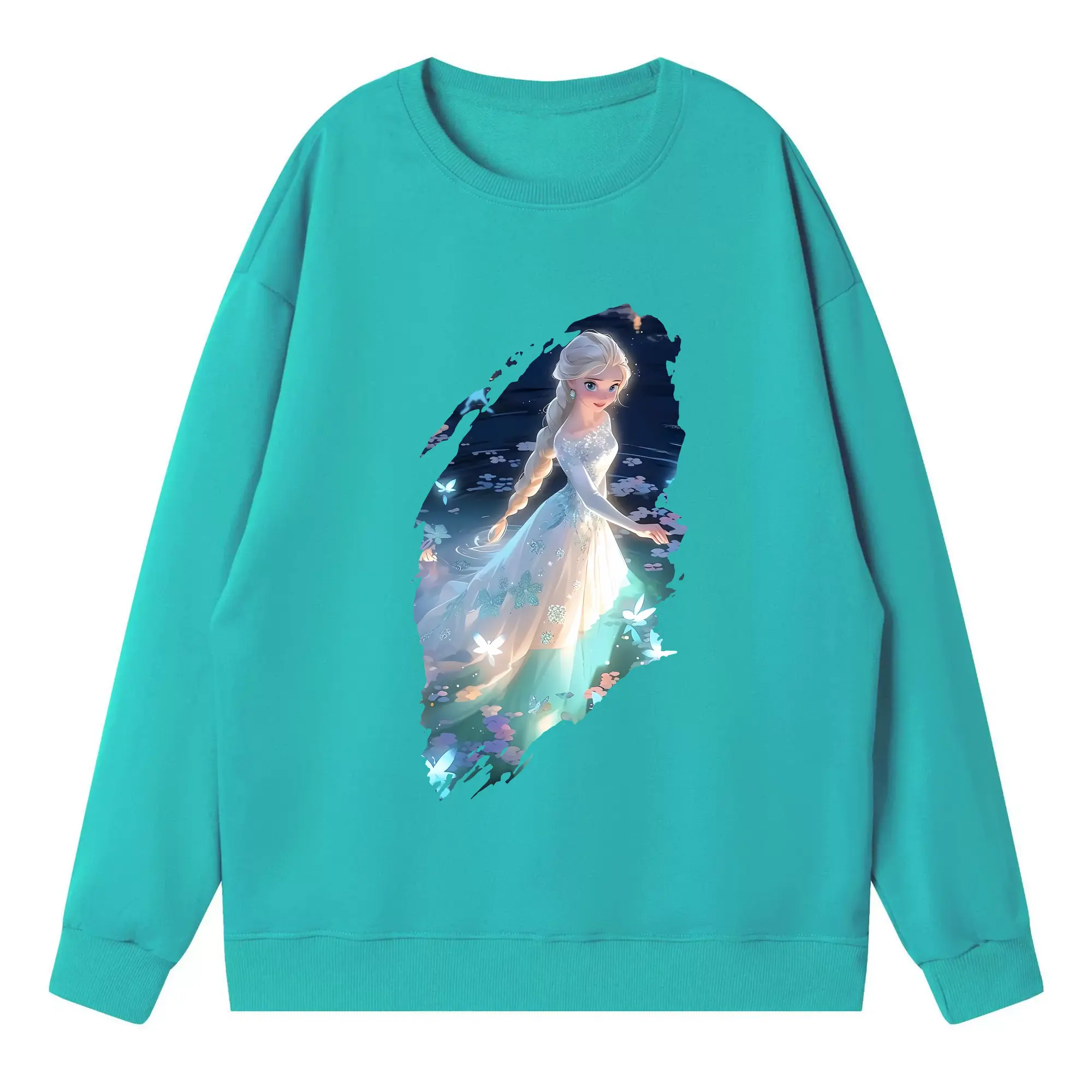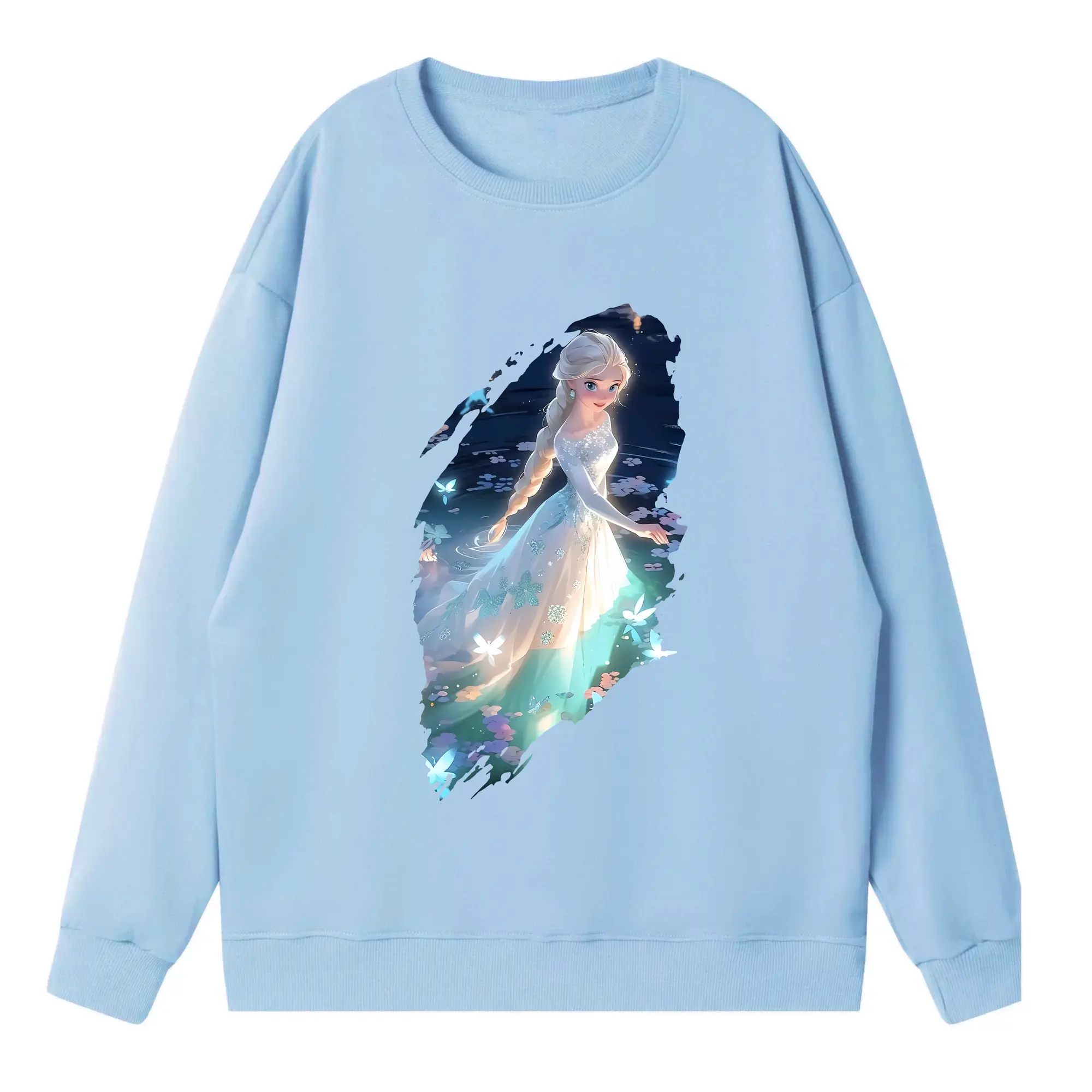 アナと雪の女王(Frozen) グッズ エルサ(Elsa) - 薄手 クルーネック スウェット 裏毛260g · ポリエステル 春秋向け カジュアル 男女兼用 · トレーナー デイリー スポーツ 散歩に最適