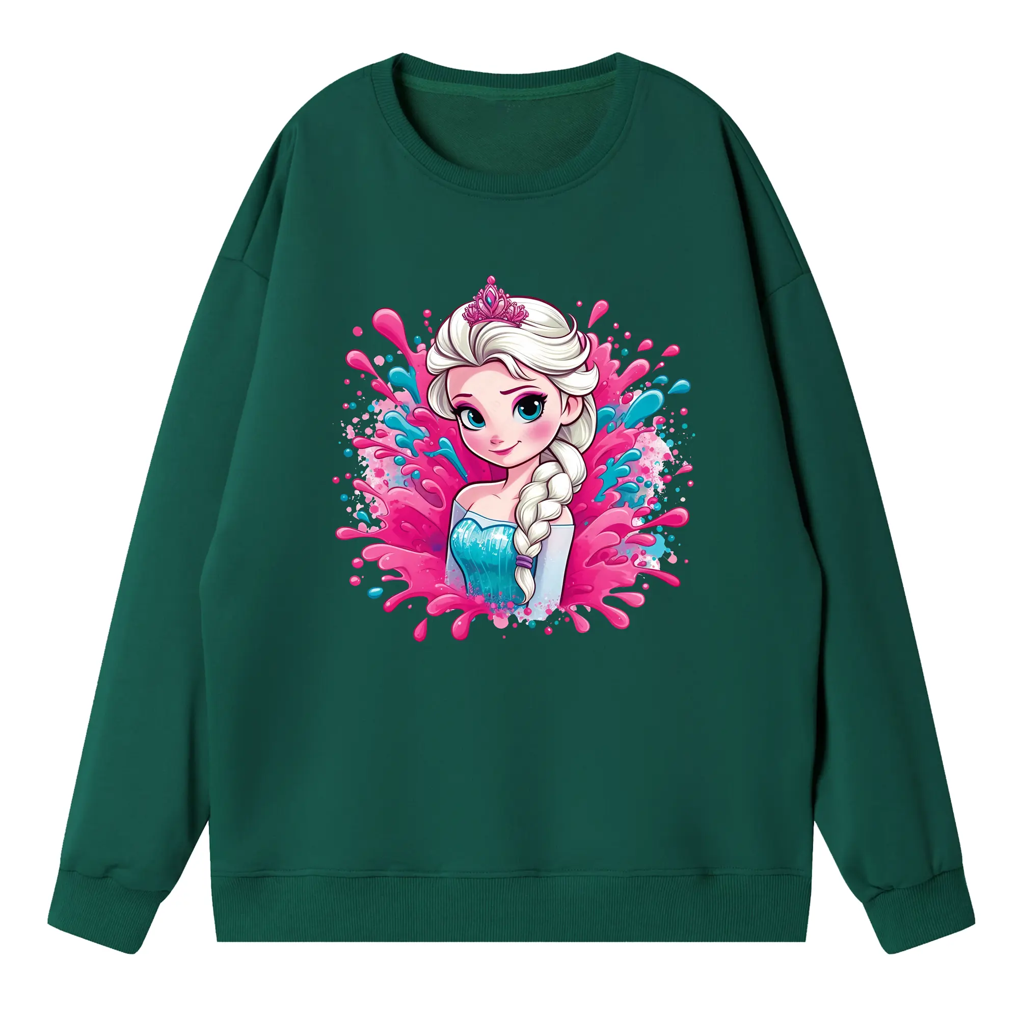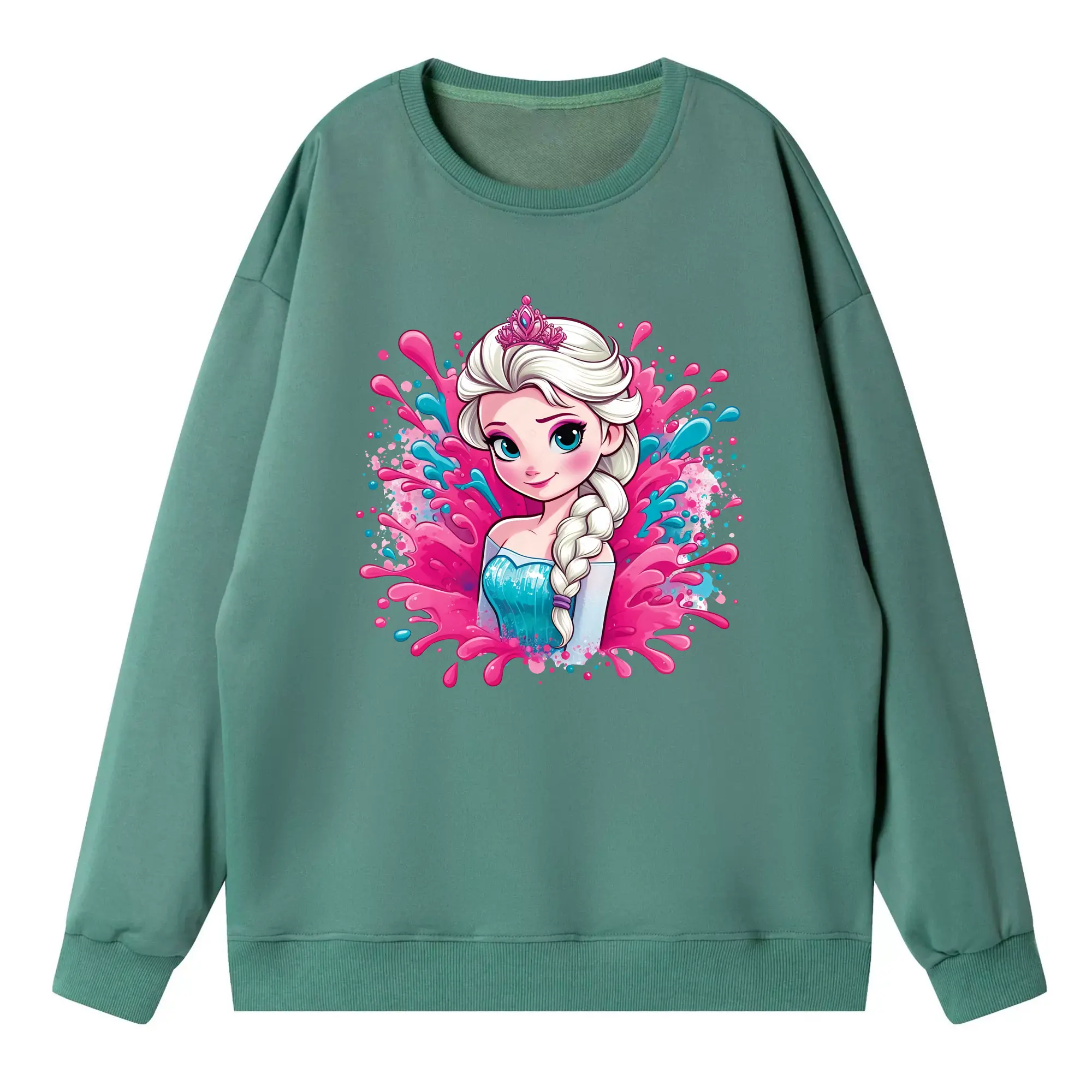 アナと雪の女王(Frozen) グッズ エルサ(Elsa) - 高品質 クルーネック スウェット ・ コットン59% ポリエステル41% ・ ユニセックス 長袖 トレーナー ・ カジュアル デイリー スポーツ 散歩用