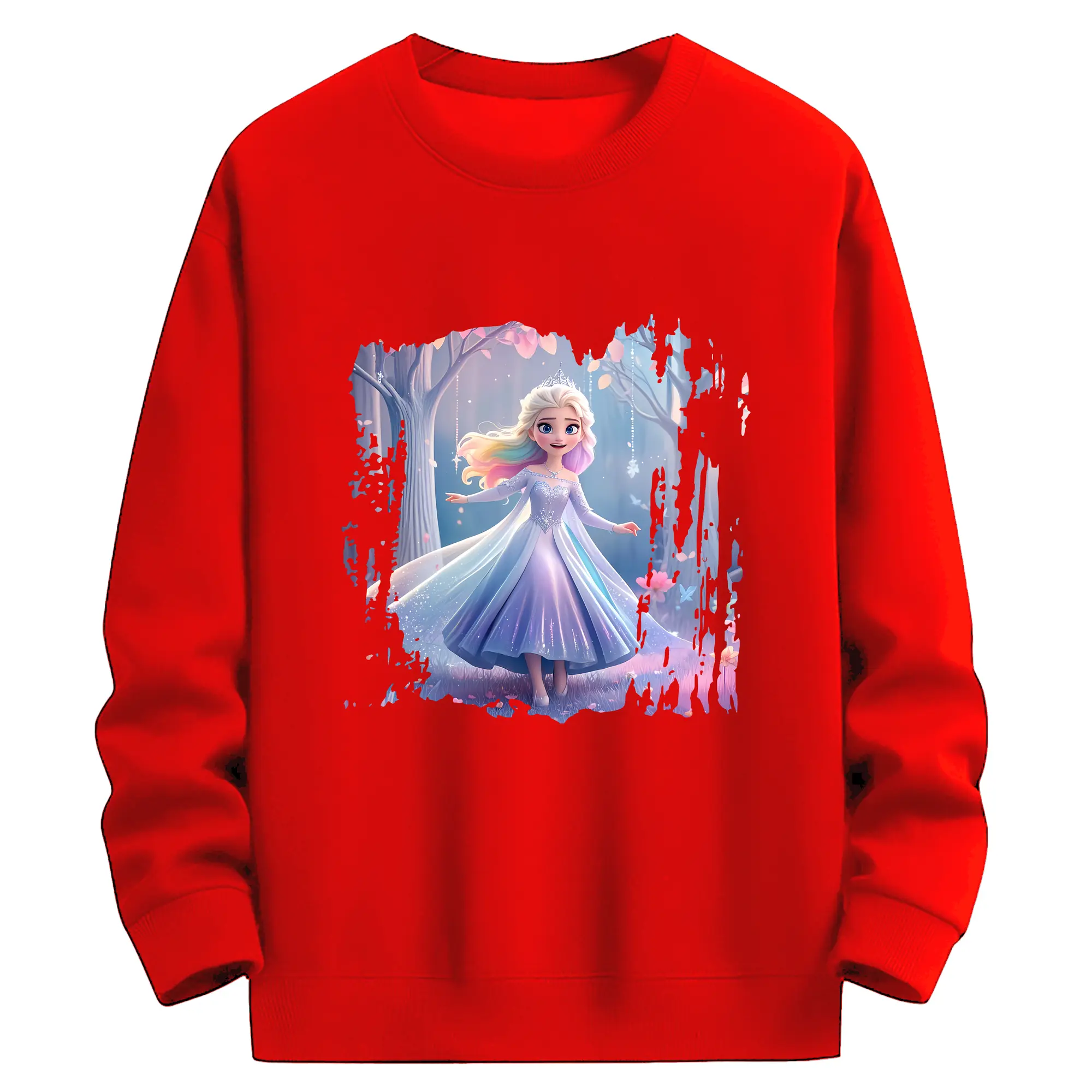 アナと雪の女王(Frozen) グッズ エルサ(Elsa) - 薄手 クルーネック スウェット 裏毛260g · ポリエステル 春秋向け カジュアル 男女兼用 · トレーナー デイリー スポーツ 散歩に最適