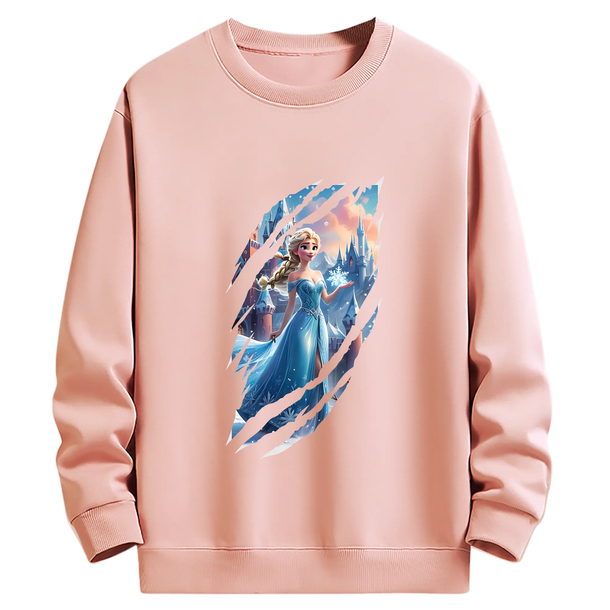アナと雪の女王(Frozen) グッズ エルサ(Elsa) - 薄手 クルーネック スウェット 裏毛260g · ポリエステル 春秋向け カジュアル 男女兼用 · トレーナー デイリー スポーツ 散歩に最適