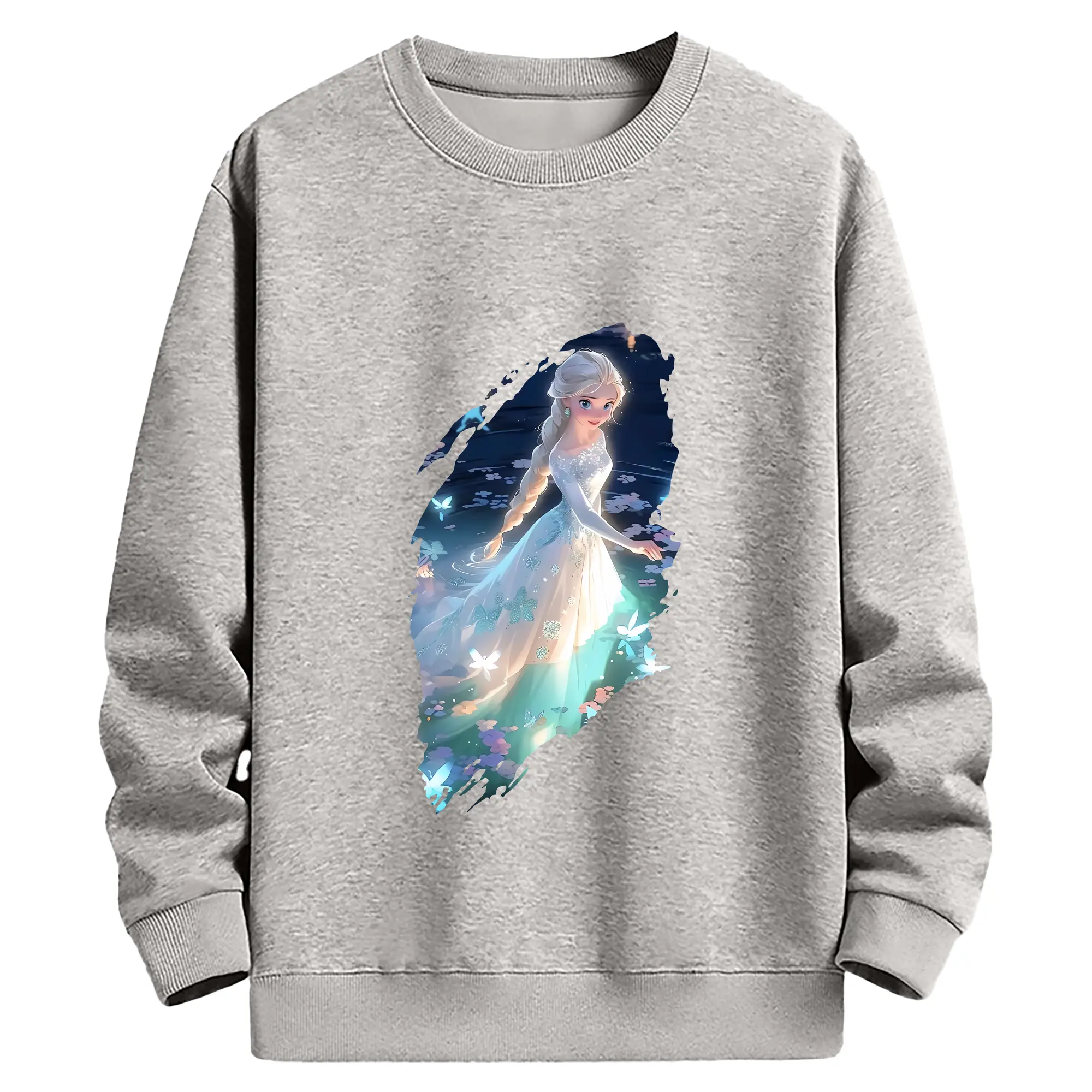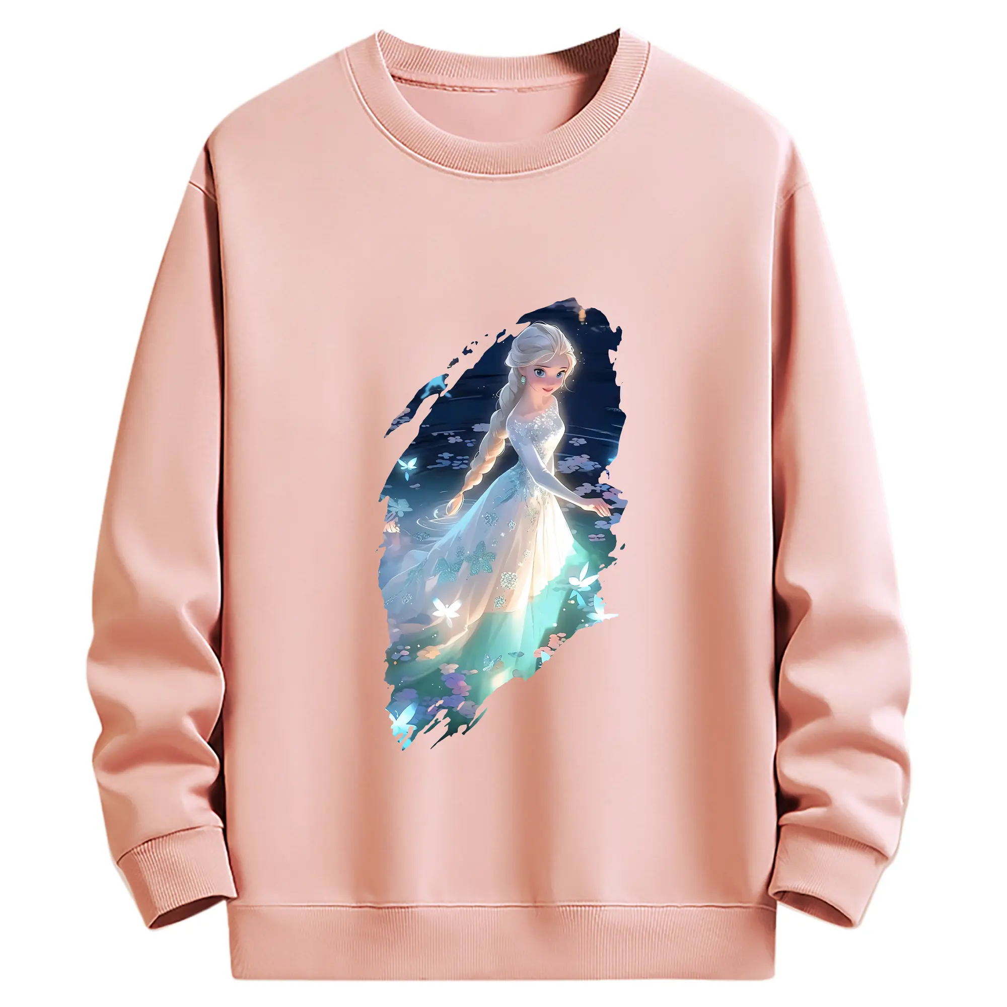 アナと雪の女王(Frozen) グッズ エルサ(Elsa) - 薄手 クルーネック スウェット 裏毛260g · ポリエステル 春秋向け カジュアル 男女兼用 · トレーナー デイリー スポーツ 散歩に最適